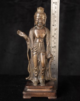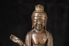 I have Buddhas for sale that are Antique Buddhist, Hindu, and Jain bronze sculptures from Thailand, Burma, Laos, Cambodia, Nepal, Tibet, Mongolia, China, Japan, Korea, Sri Lanka, India, Vietnam, and Indonesia. Deities for sale include Buddha, Quanyin, Ganesh, Hanuman, Vishnu, Shiva images, plus many others. Most Buddhas for sale are antique and most are made of bronze. The site also has an extensive inventory of miniature antique bronze Buddha figures which can be found nowhere else. We also have Mongolian, Tibetan, and Nepalese Thangkas. Our ritual implements and other related items are varied. Whether Chinese bronze statue, Hindu bronze statue, miniature bronze statue, miniature antique bronze Buddha, or antique bodhisattva statue, all are examined closely by an expert with 30+ years of experience before being posted and described on the website. The same is true for every antique Thangka, whether it be a Mongolian Thangka, or a Nepalese or Tibetan antique Thangka. If you do not see something you are looking for please
