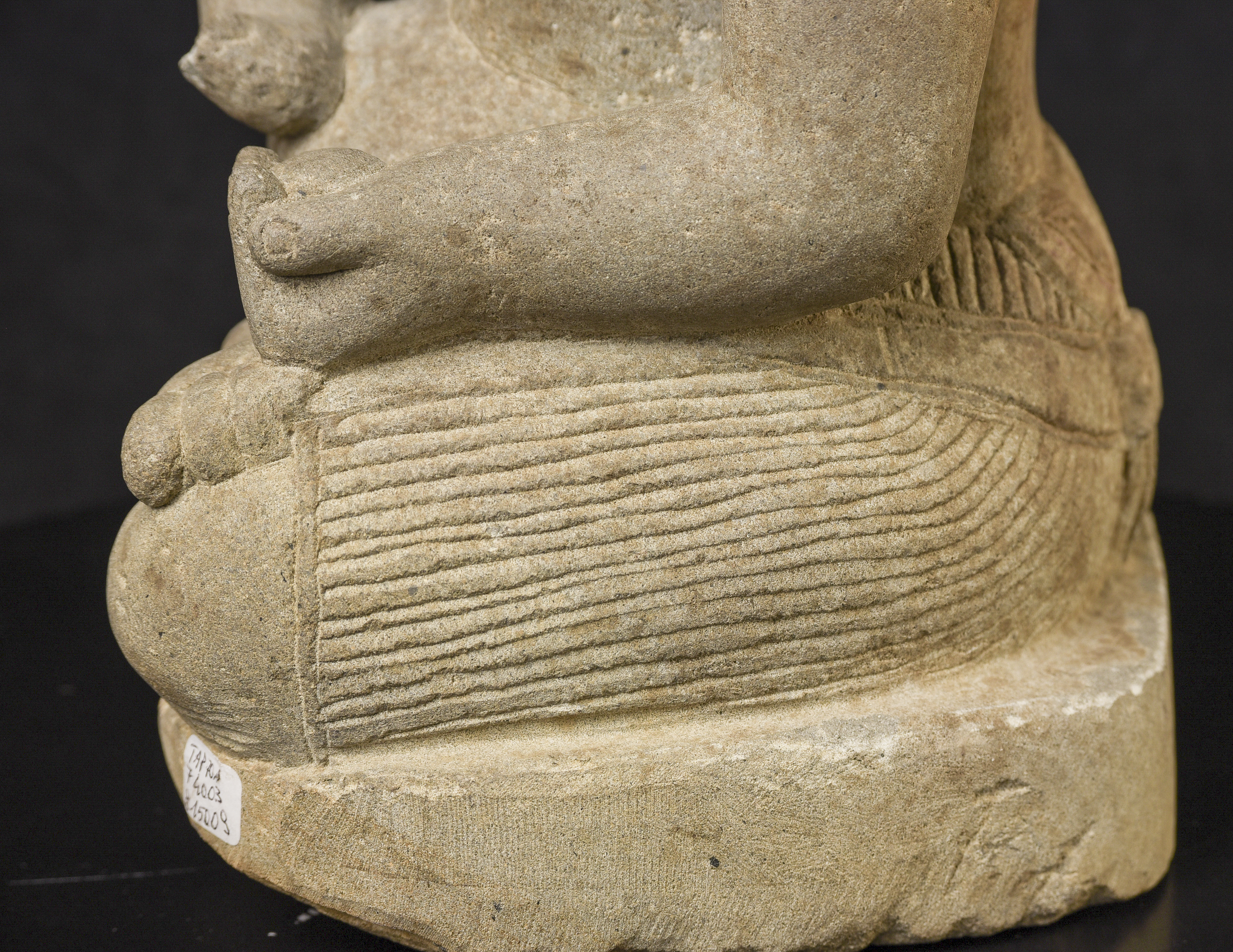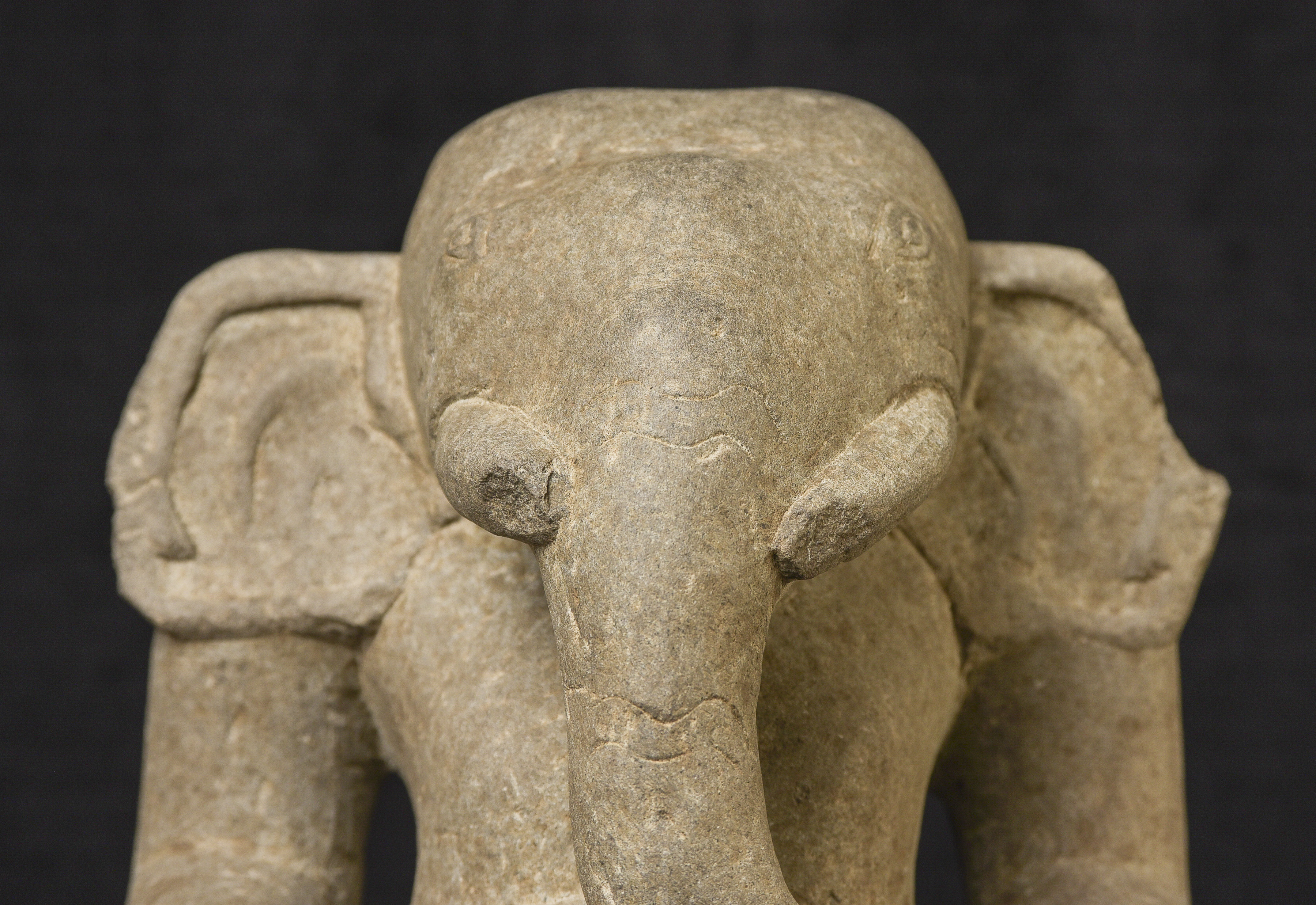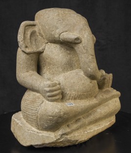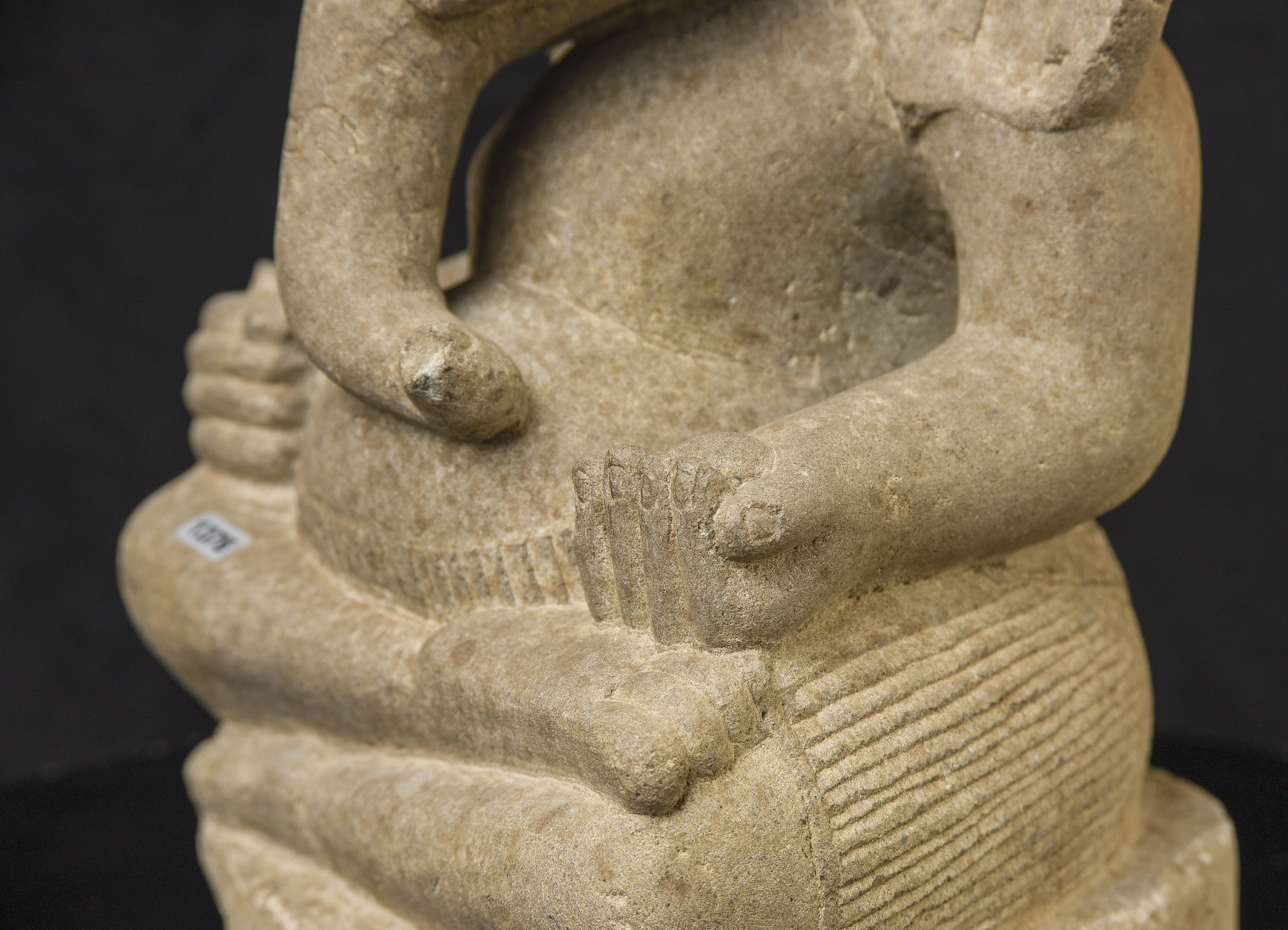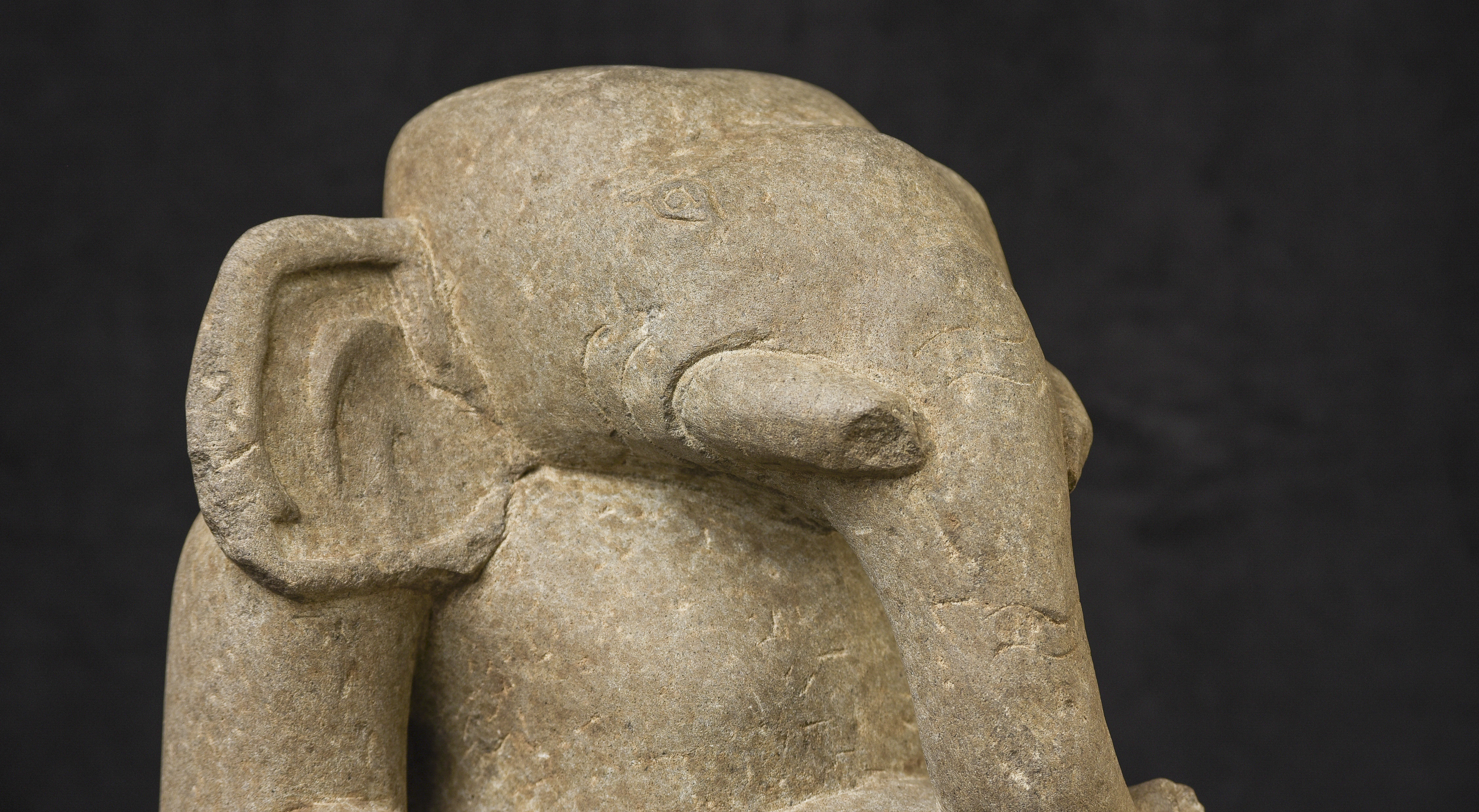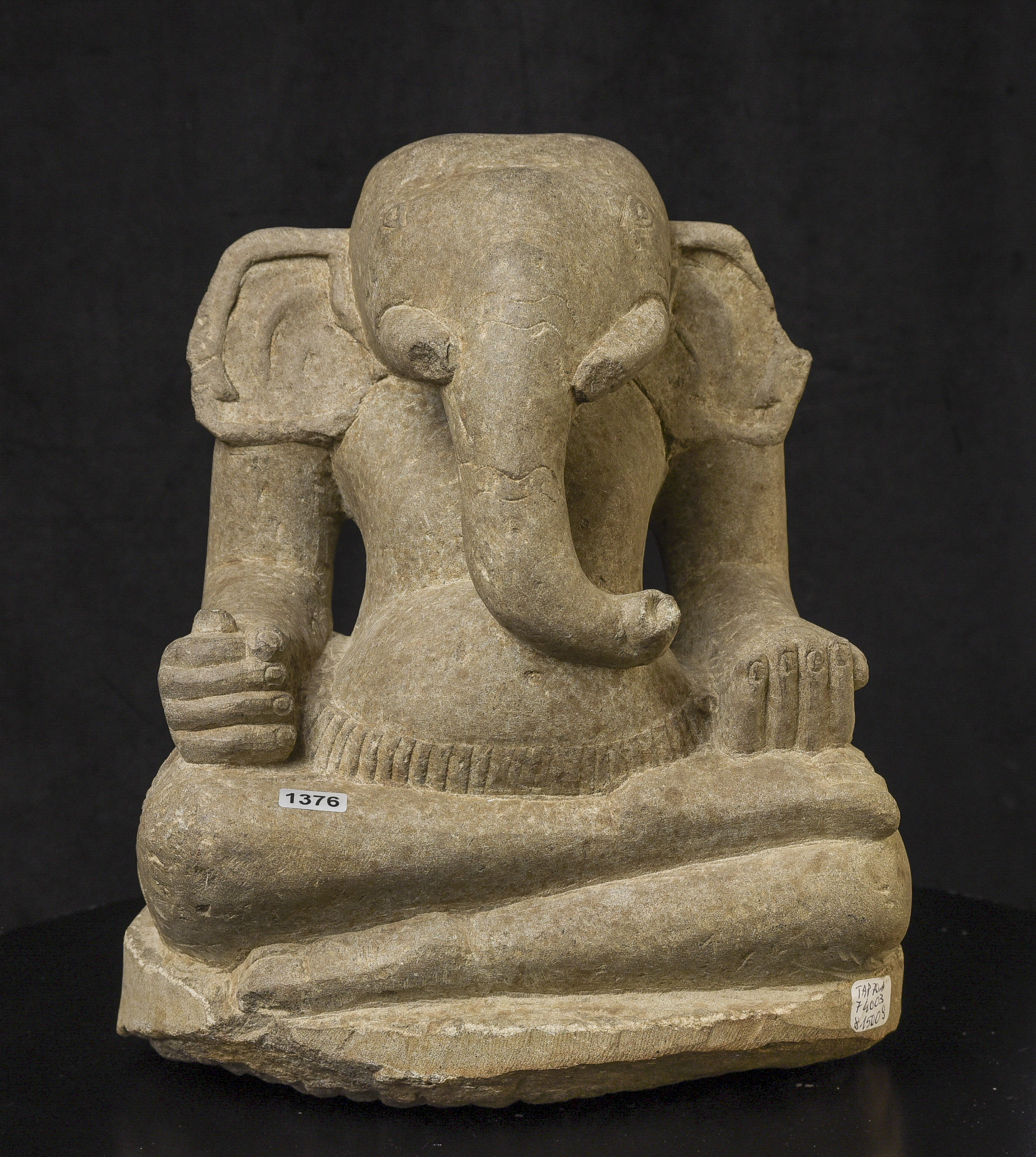 Early Cambodian Ganesh. Beautiful form.Appears Pre-Khmer, which, if period, would make it over 1000 years old. The patina is soft and smooth all over. It looks like it inserted precisely into a base. It is sculpted from a very hard stone. 12"H x 9.75"W x 7.5"D - 38.85lbs / 17.6 kilo.