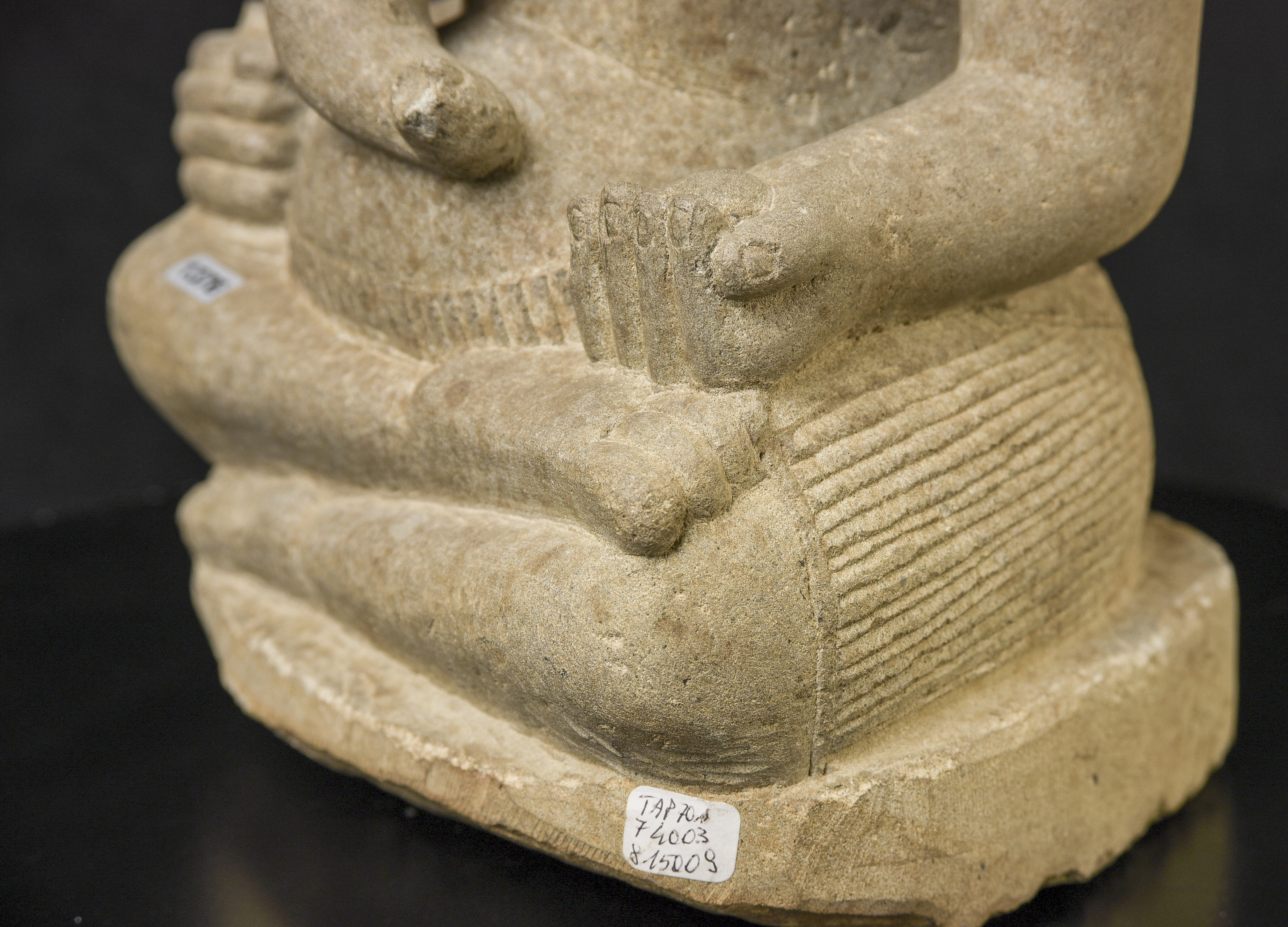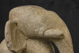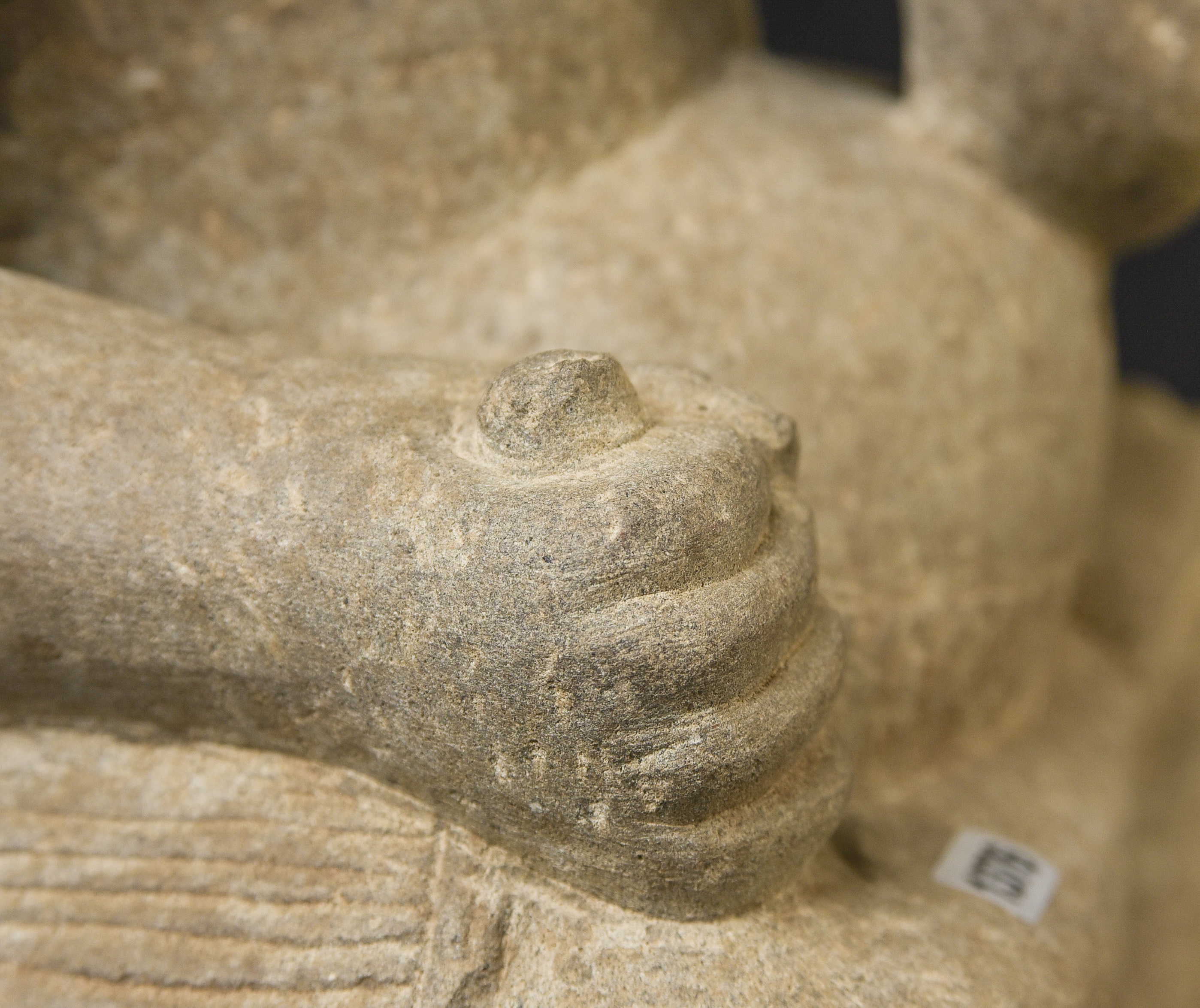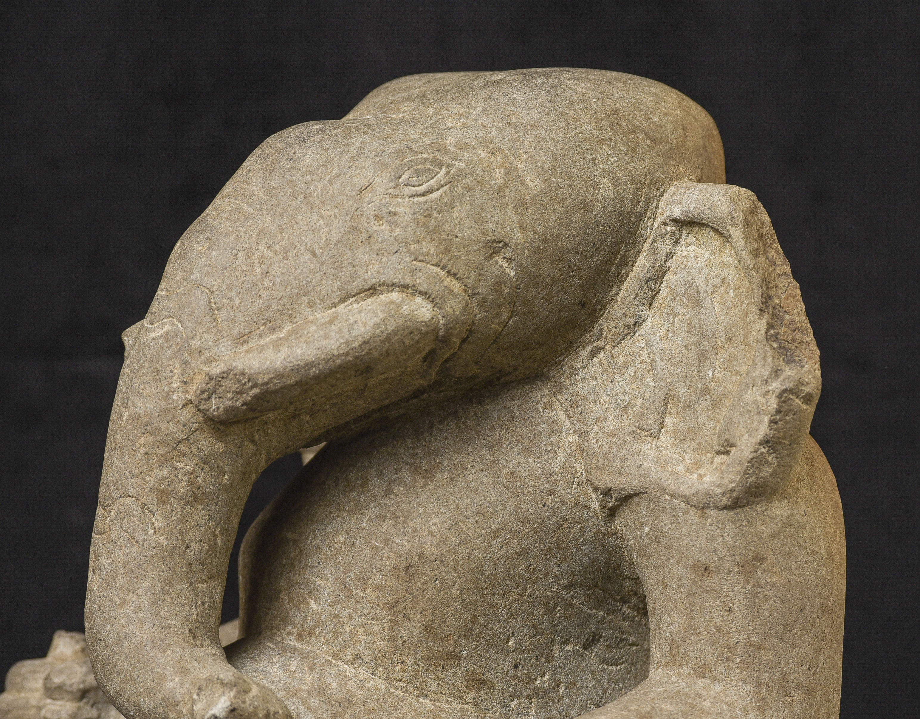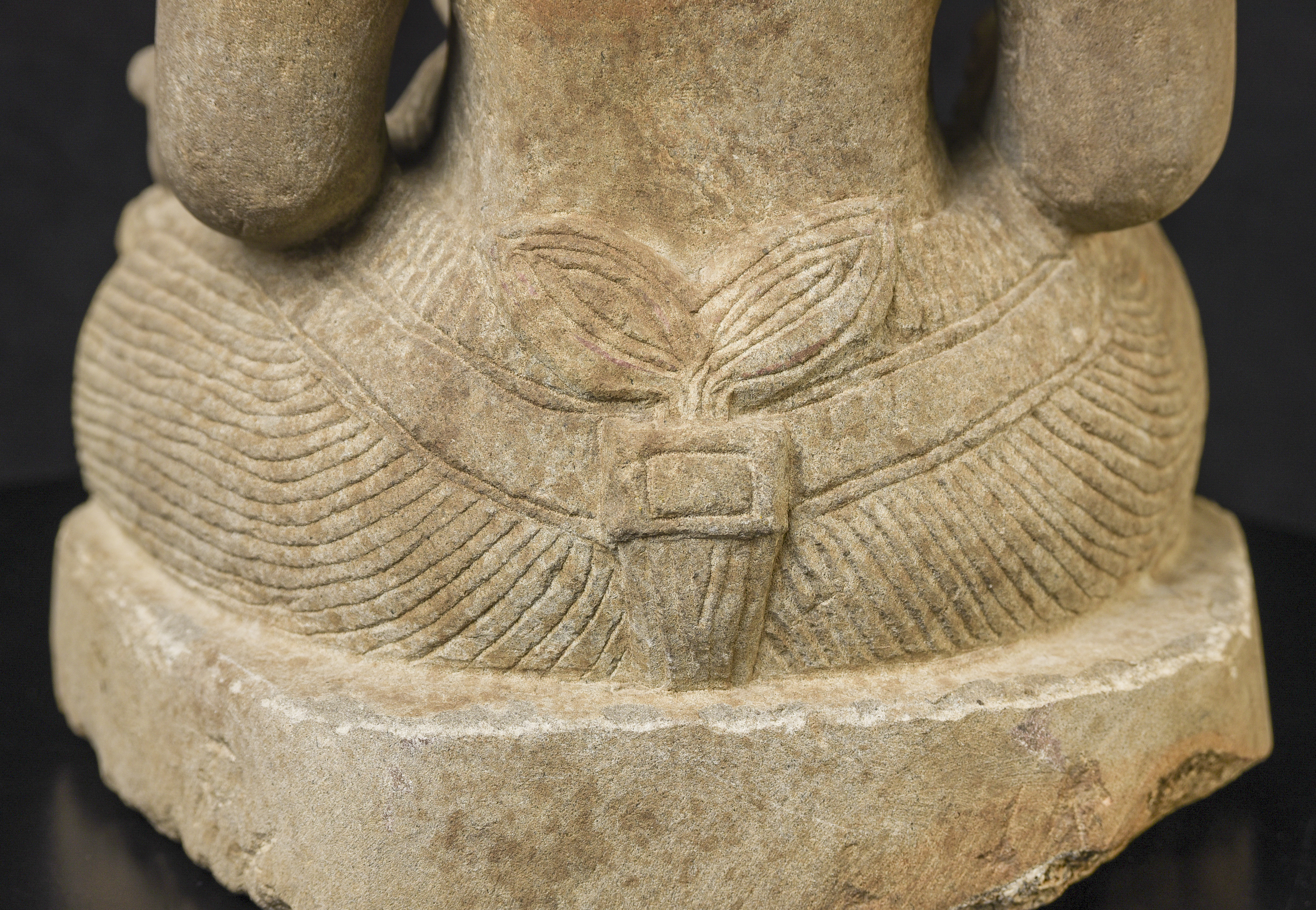 Early Cambodian Ganesh. Beautiful form.Appears Pre-Khmer, which, if period, would make it over 1000 years old. The patina is soft and smooth all over. It looks like it inserted precisely into a base. It is sculpted from a very hard stone. 12"H x 9.75"W x 7.5"D - 38.85lbs / 17.6 kilo.