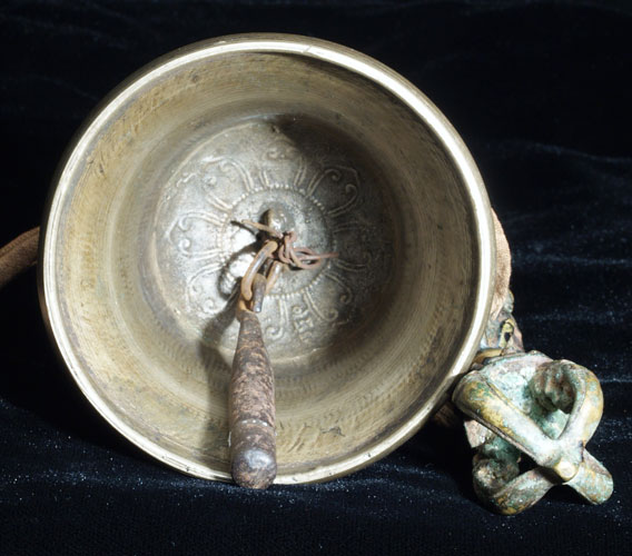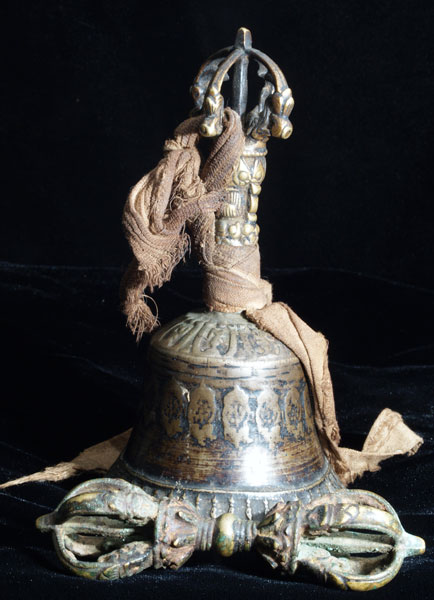Nicely cast Bell and Dorge Set. Bell has nice tone. Based on traces of puja powder may have been used in Nepal. Nice ritual wear. Hard to date precisely, but appear to be at least 19th century, and probably earlier. Bell is 6.5 inches. dorge is 4.5 inches.