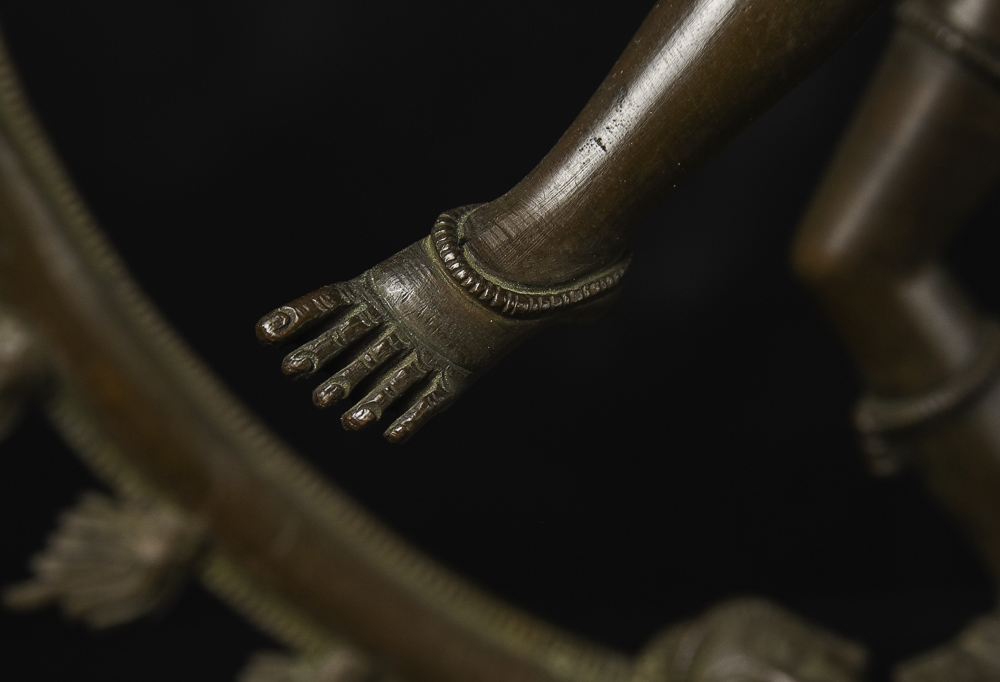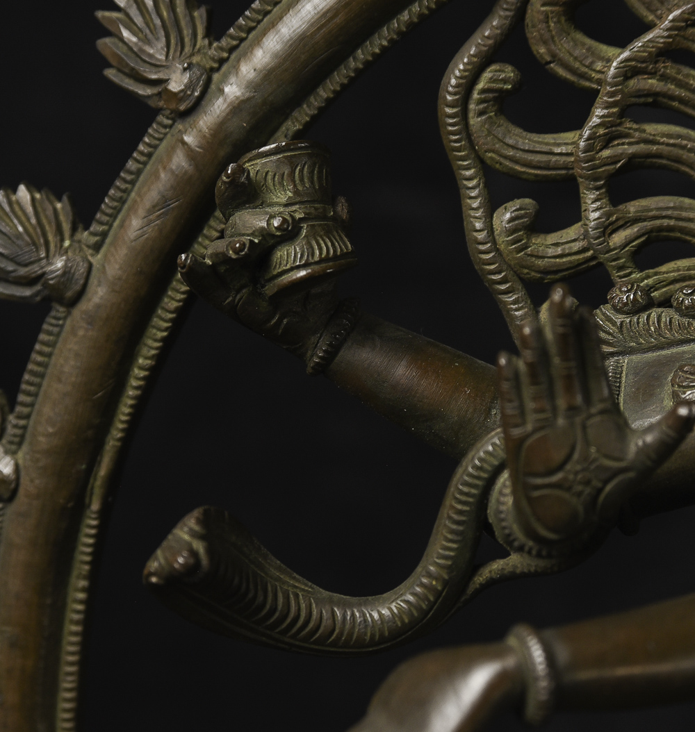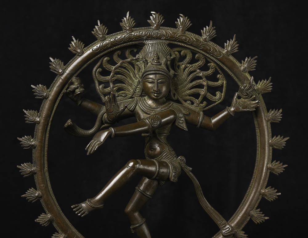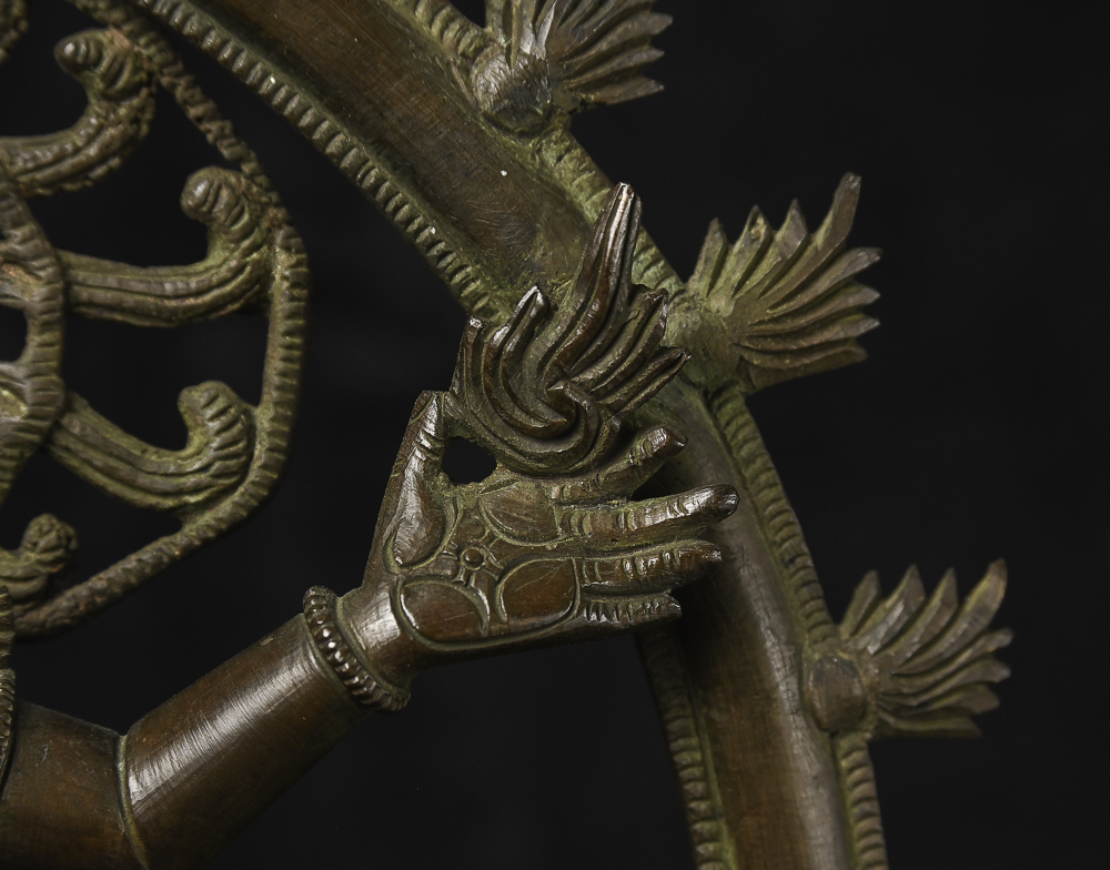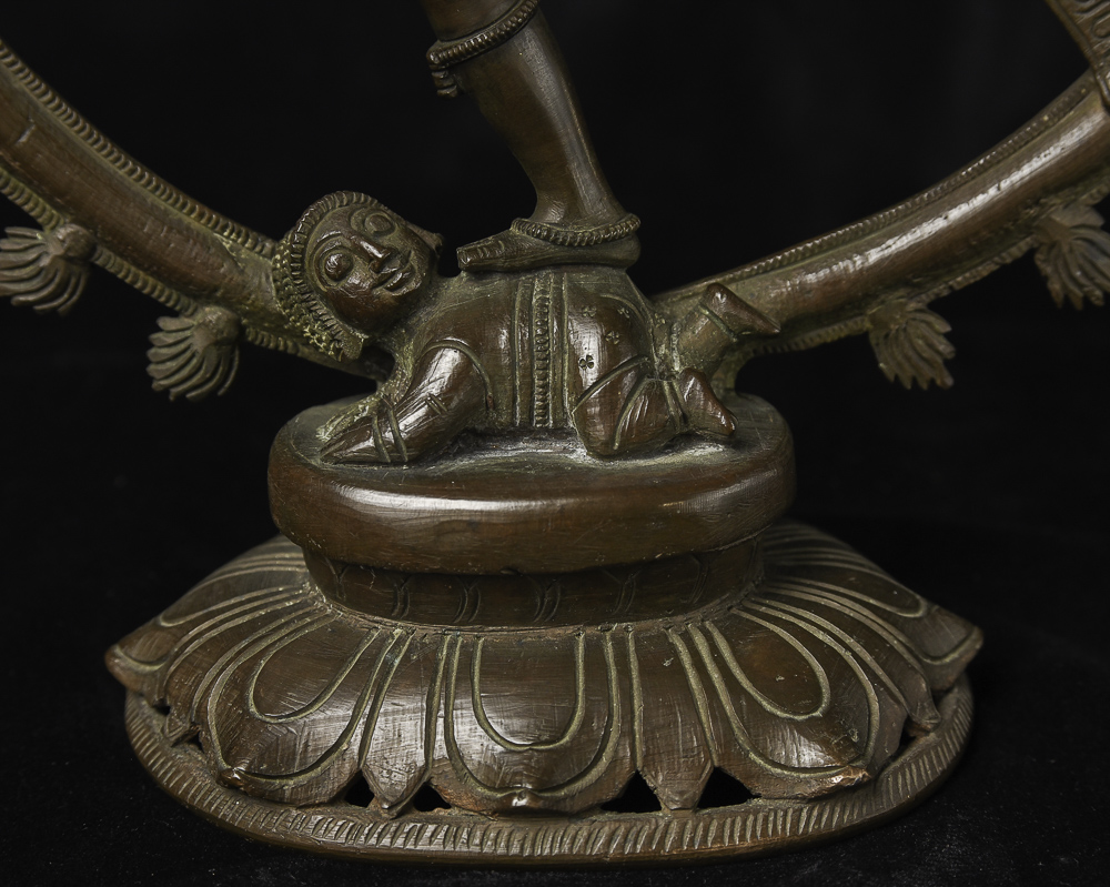 Extremely fine early 20th century Indian Bronze Shiva Natara. I've had a few from this later period that were as well cast and sculpted. The piece has exceptionally beautiful faces on both the central figure and the small figure he is standing on. If he were much older, he would be extremely expensive. - Beautiful! - ( 12.25"H x 10.625"W x 4"D ) 6lbs/ 2.715kg