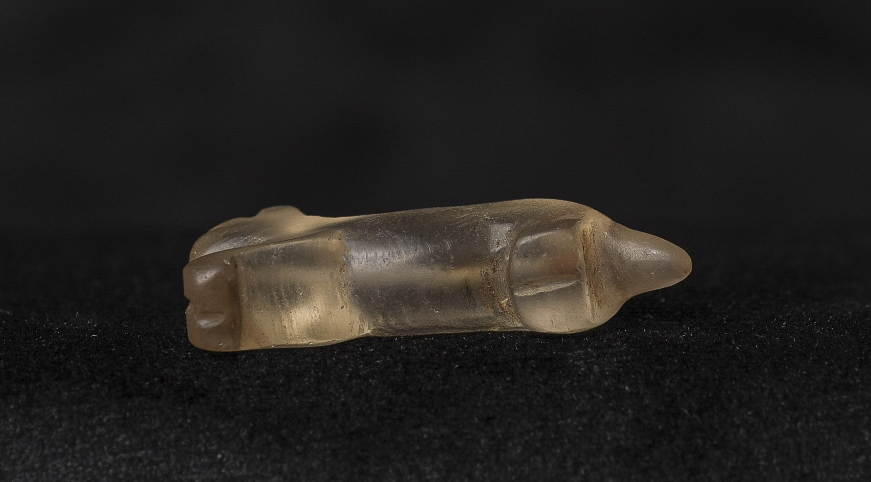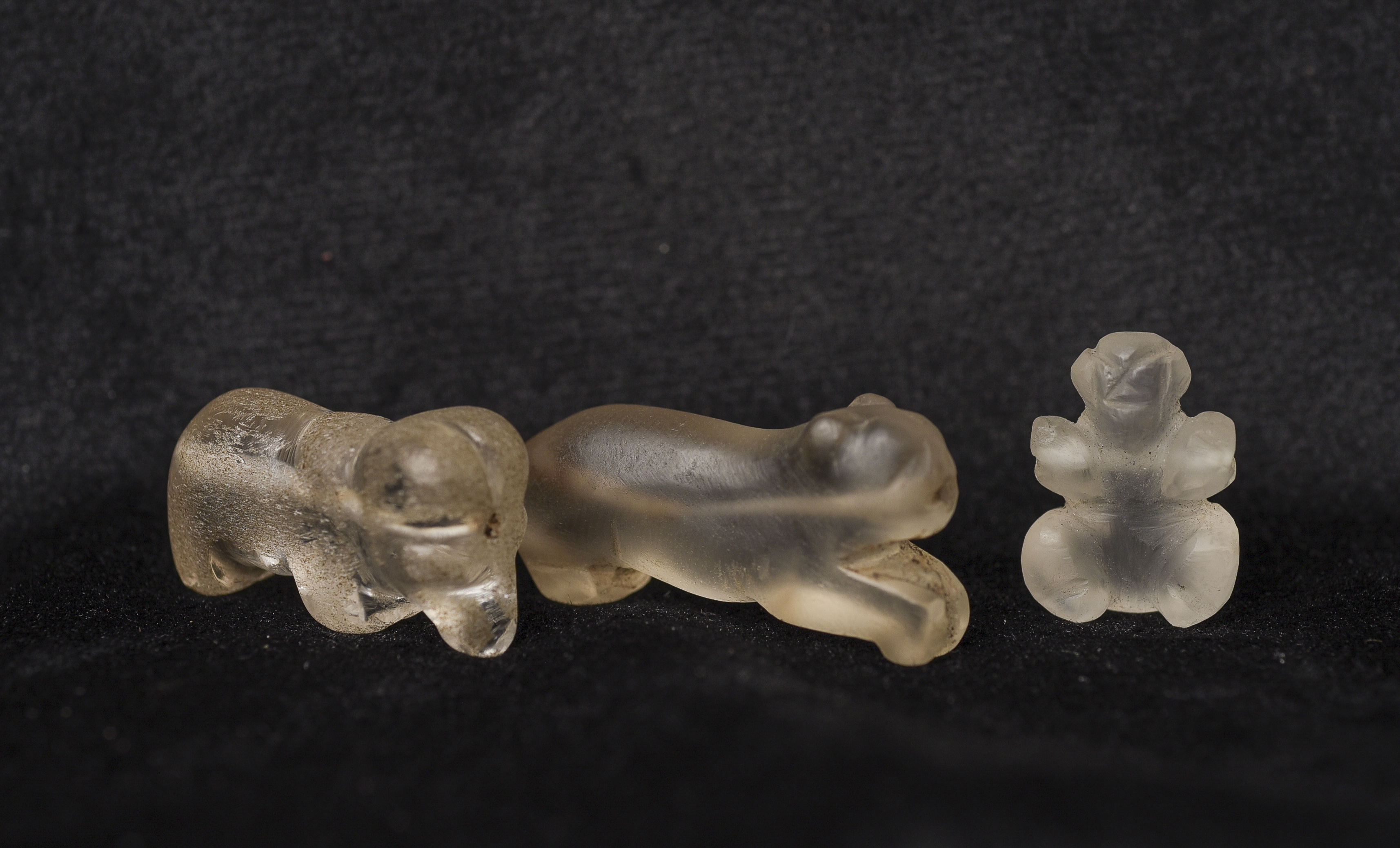 Group of 2 Pyu beads quartz or ancient glass beads of mythical animals plus one other mystery bead also carved out of quartz/ancient glass. Purchased on the Burmese border in the 1990's. I sold the restof this collection almost 30 years ago. These are the last remaining. Domestic packing and shipping are included. International packing and shipping included for an additional $25