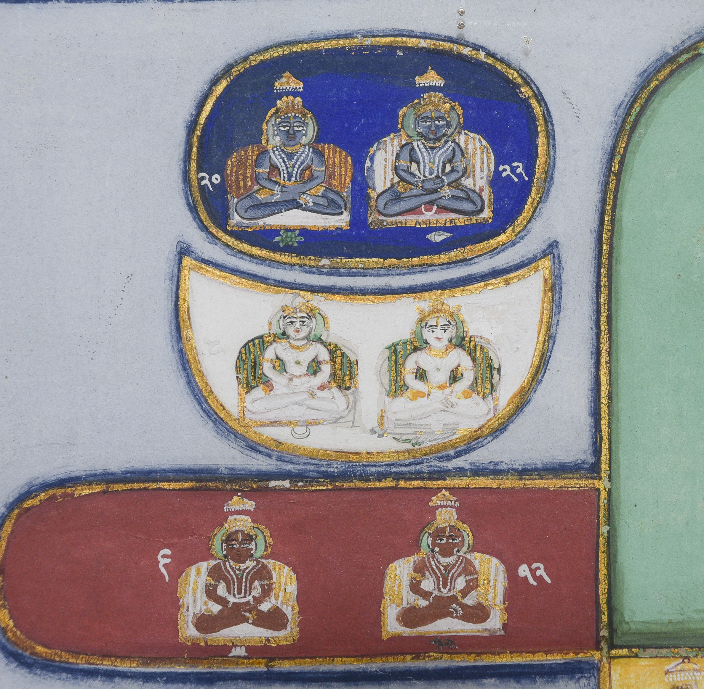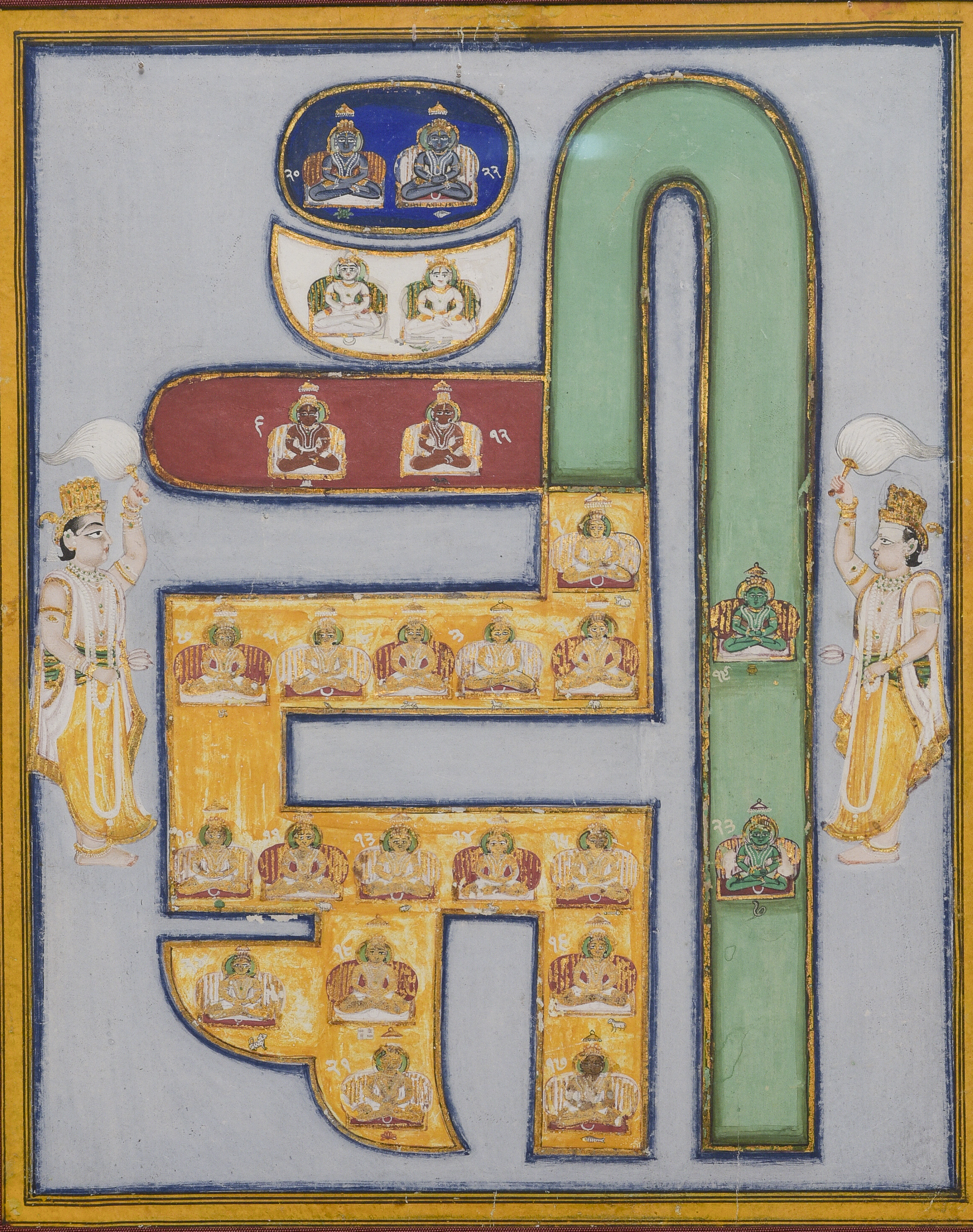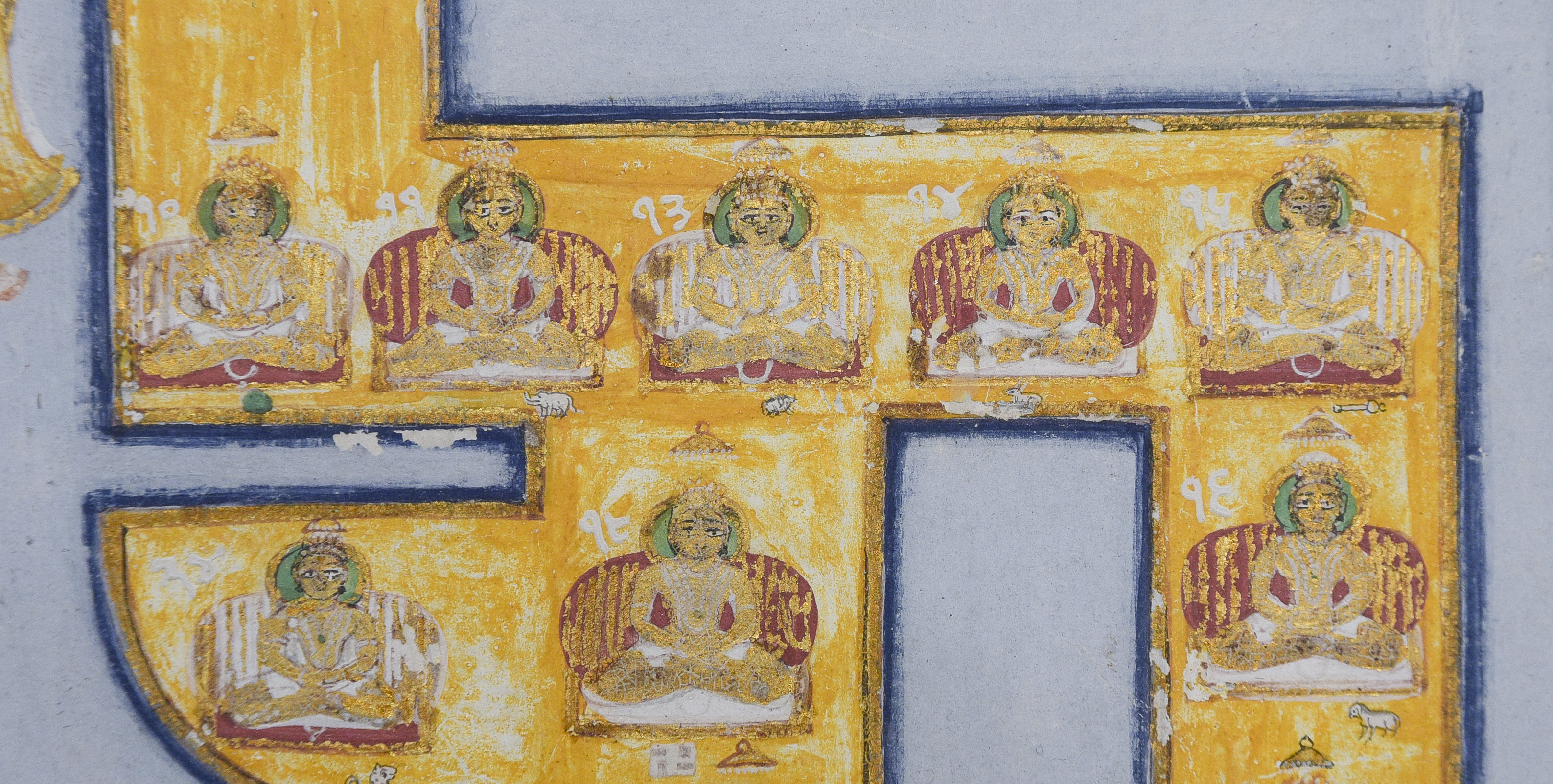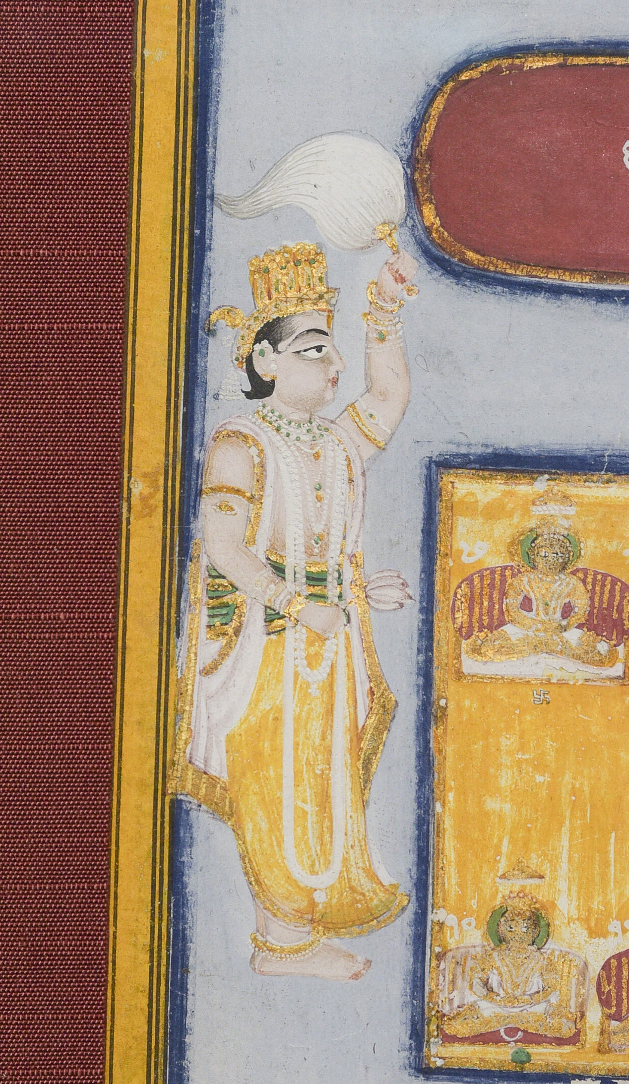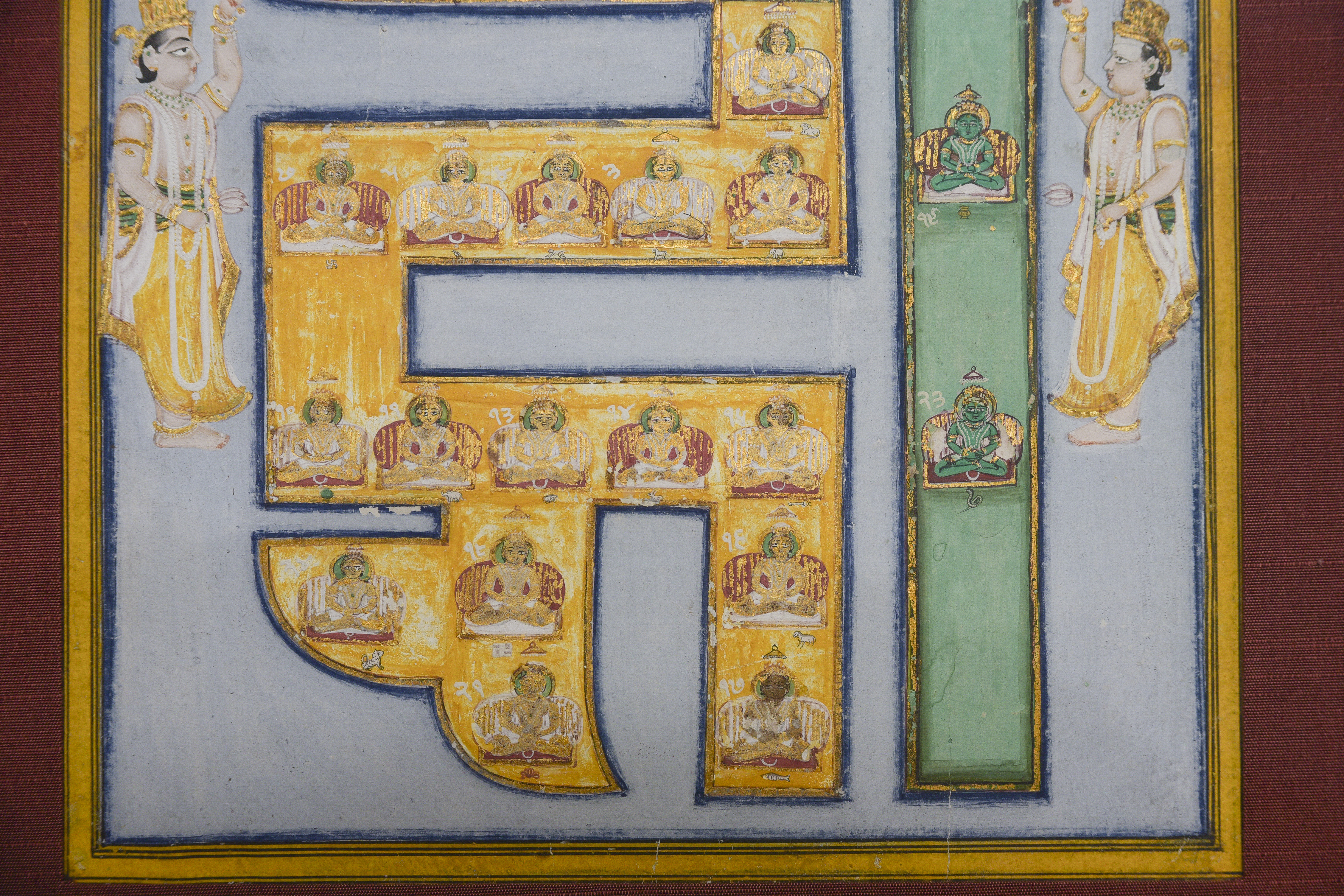 Distinctive 19thC Jain Painting. 12" x 14". Exquisite detail! Expensively framed, using museum glass and hand wrapped silk matting.