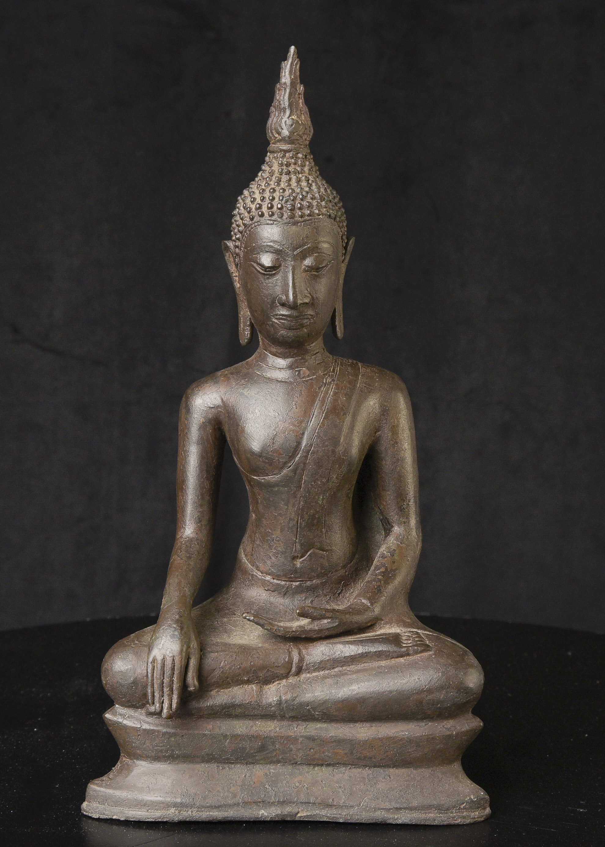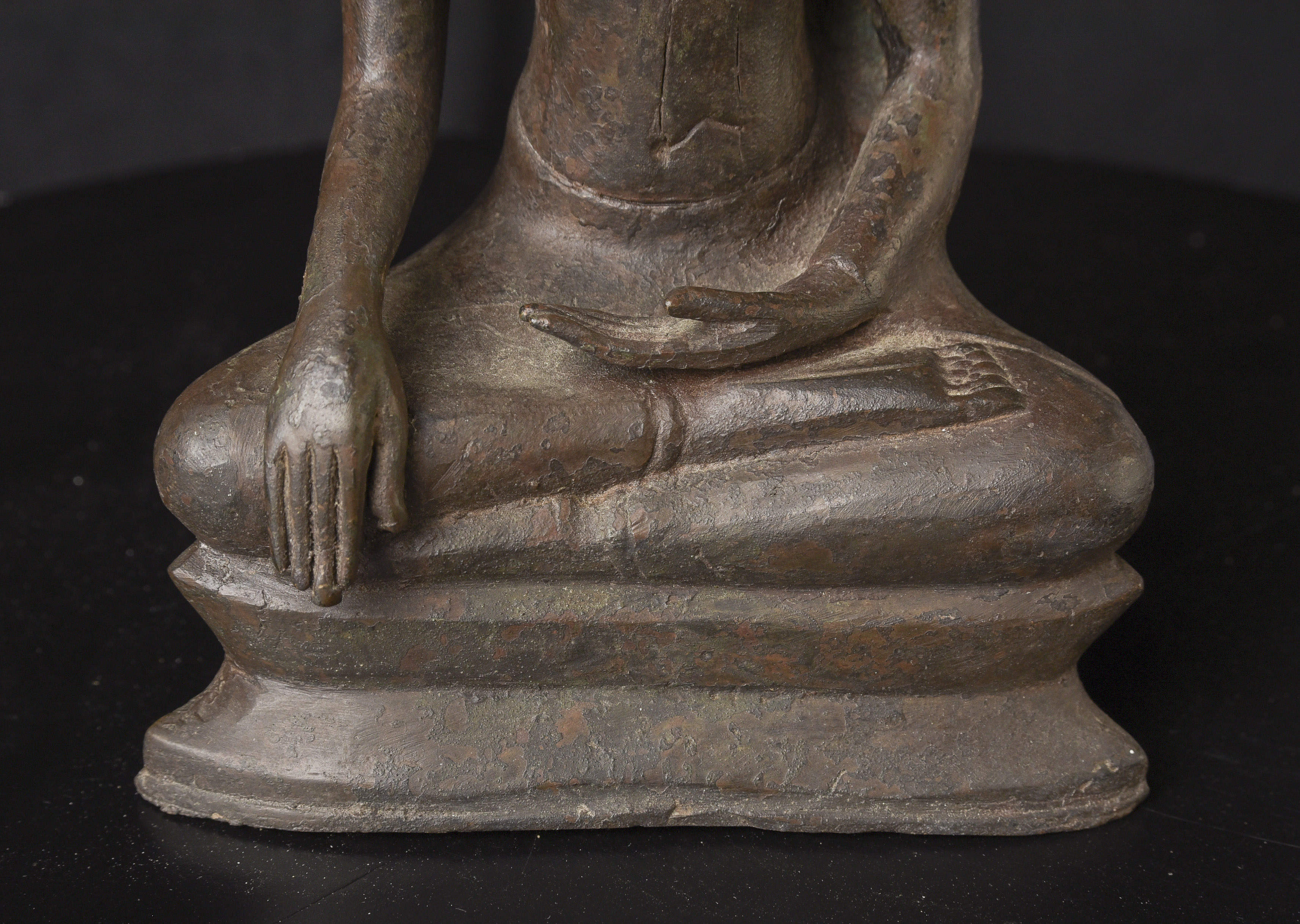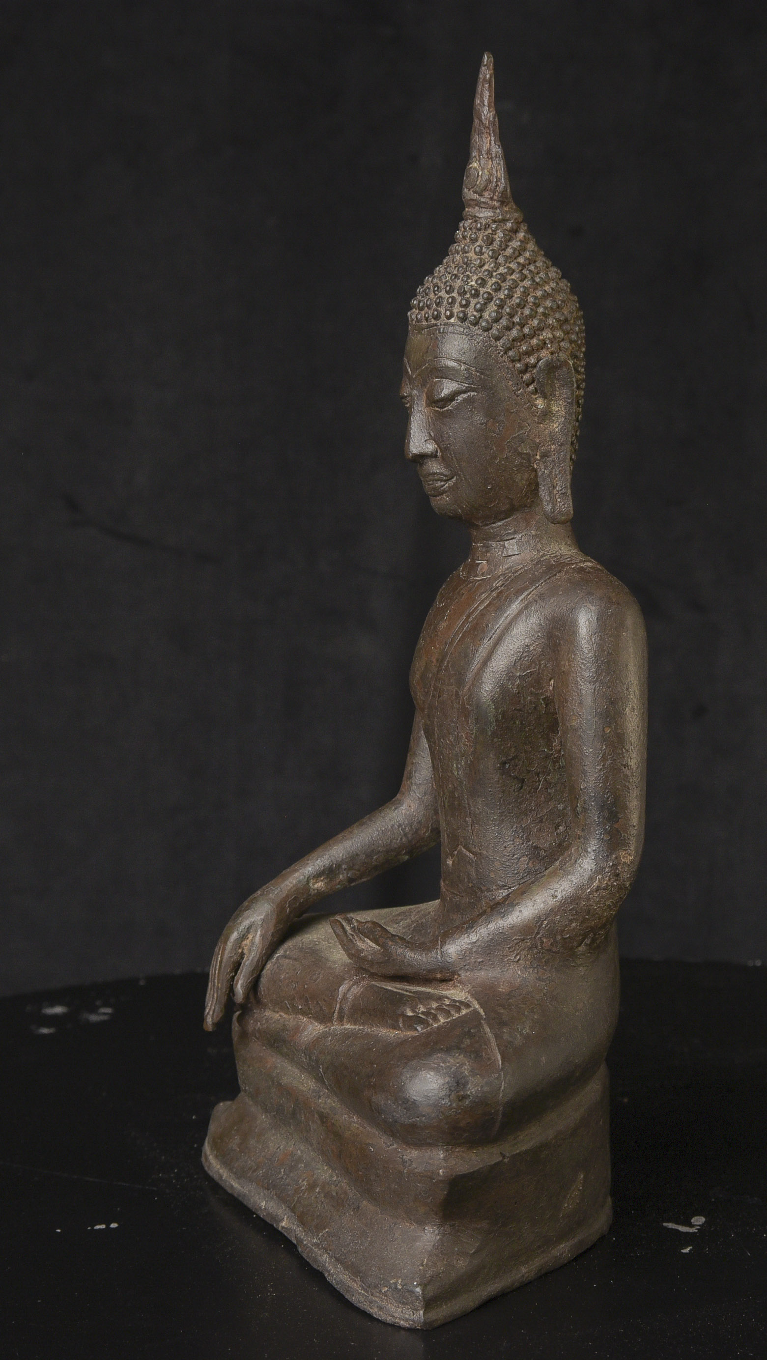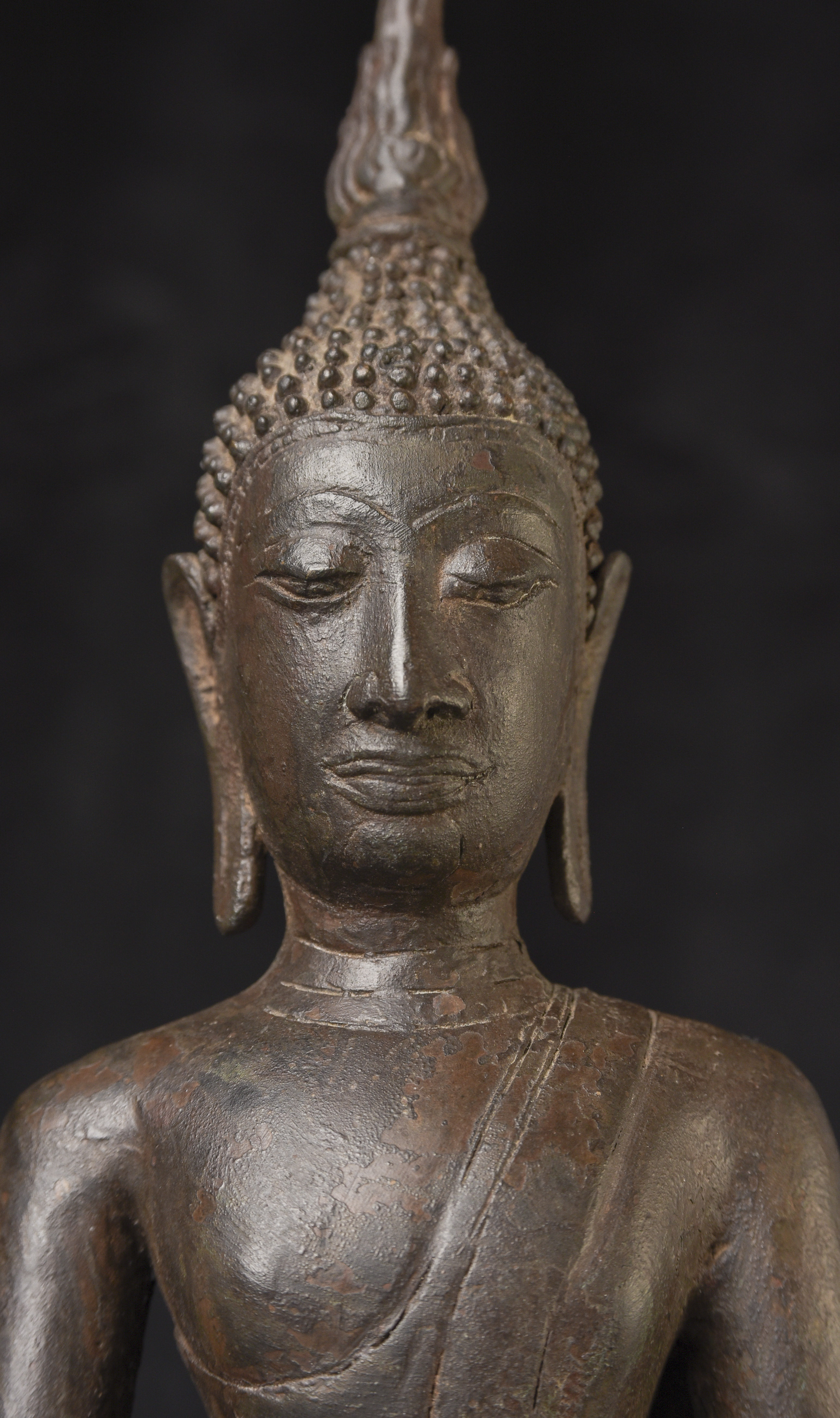 16thC Style Thai Bronze Buddha- Utong C type. Probably 19th to 20thC, possibly older (10.25"H x 5.5"W x 3.25"D ) - Heavy at 3.11lbs - Very attractive example of its type.