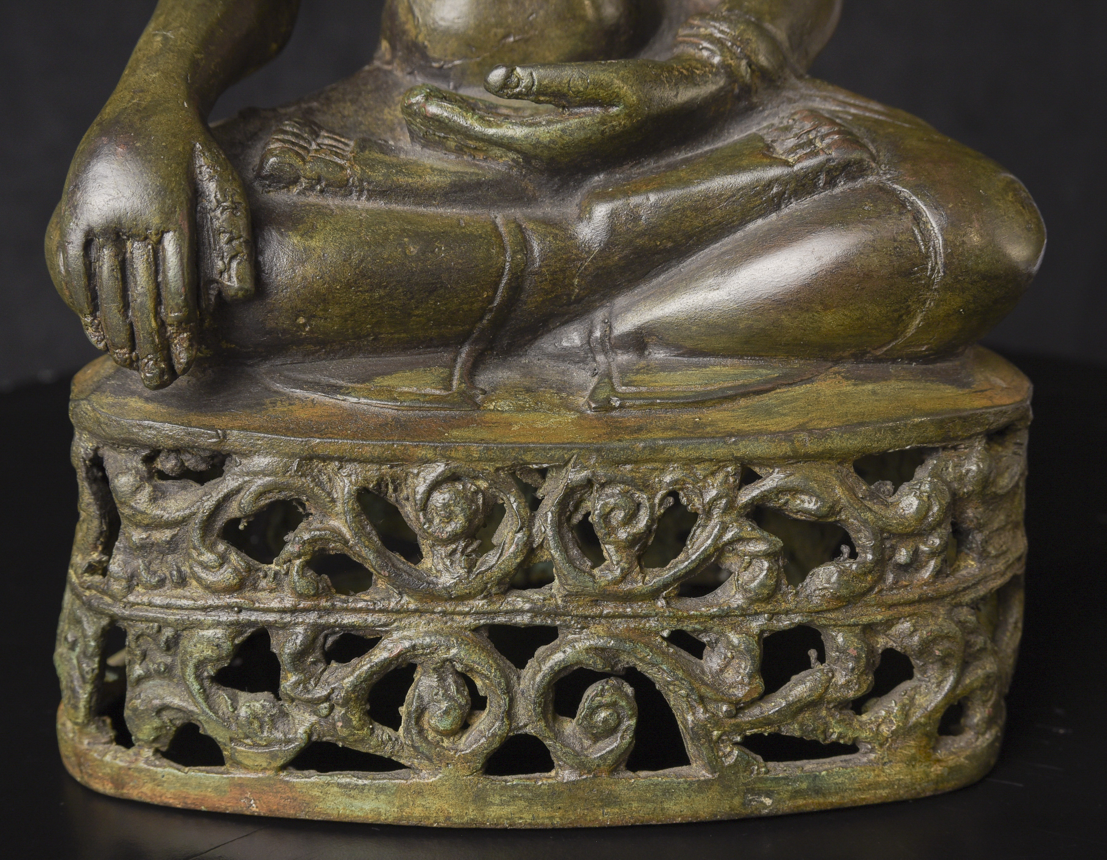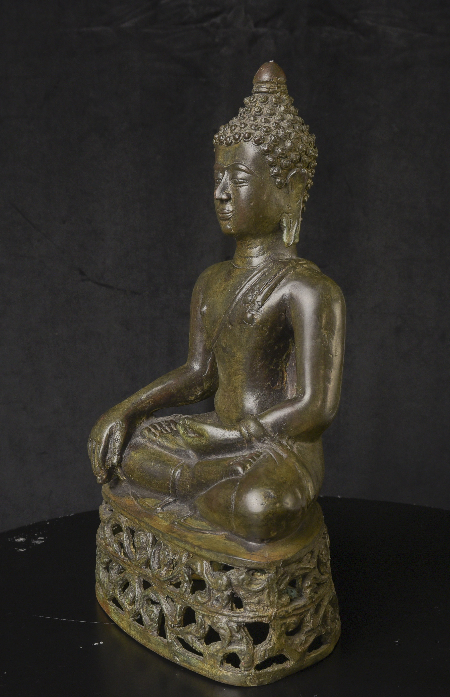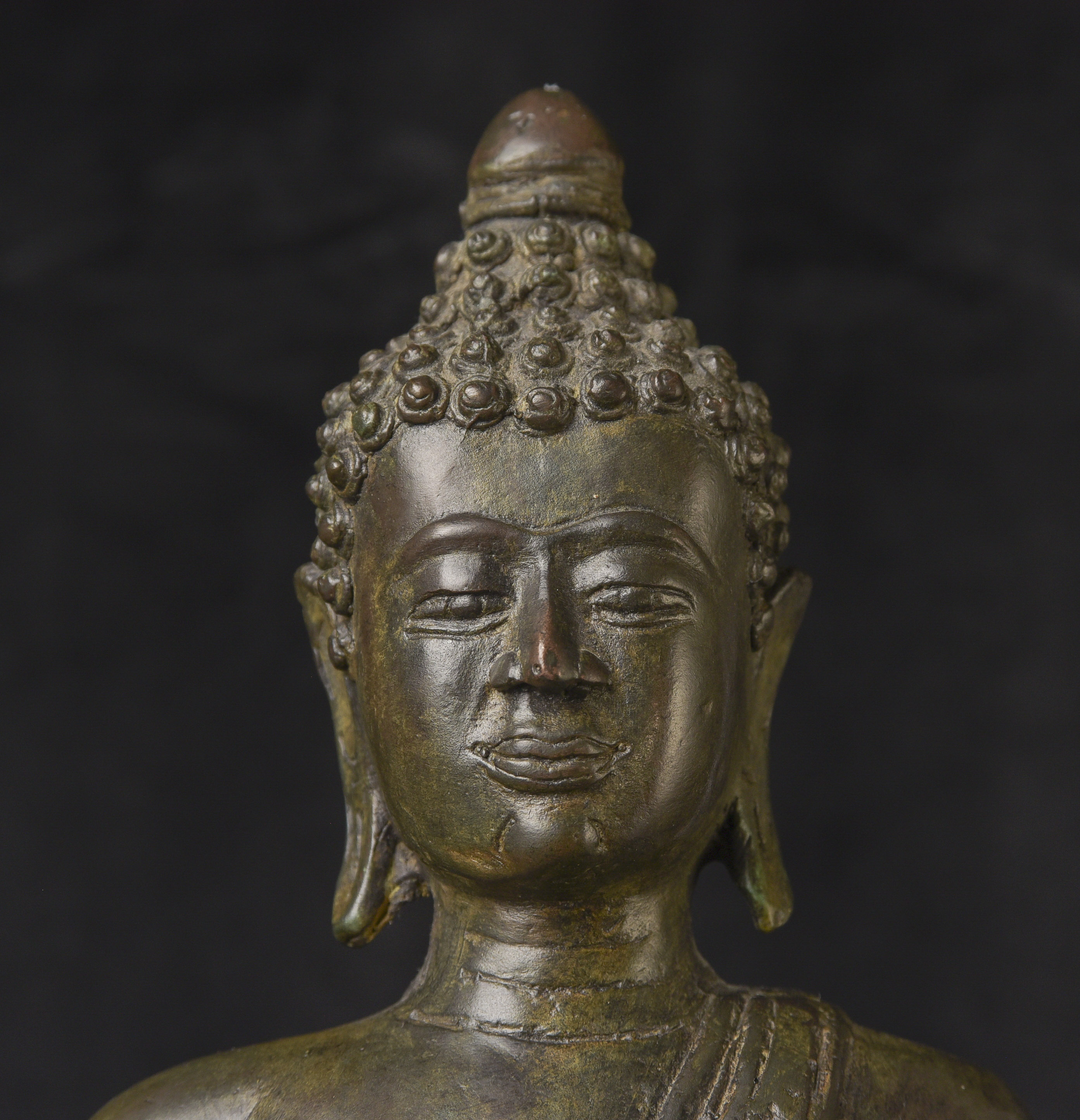 Circa 1900 Buddha with a pleasing face and an outstanding base. It is hard to find an authentic older Buddha of this size, and this is nice at this price. - ( 13"H x 7"W x 4.5"D ) - 8.30lbs
