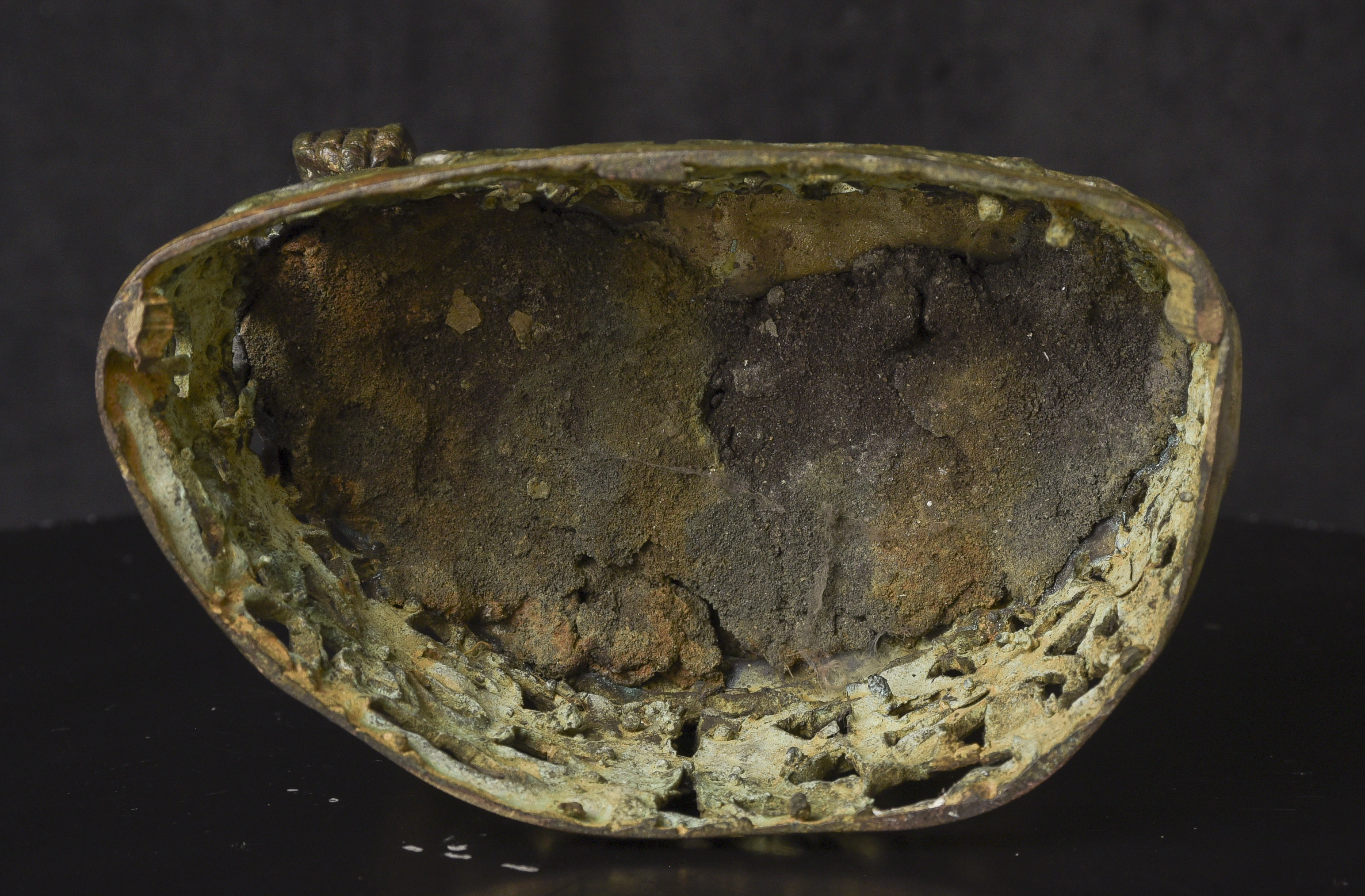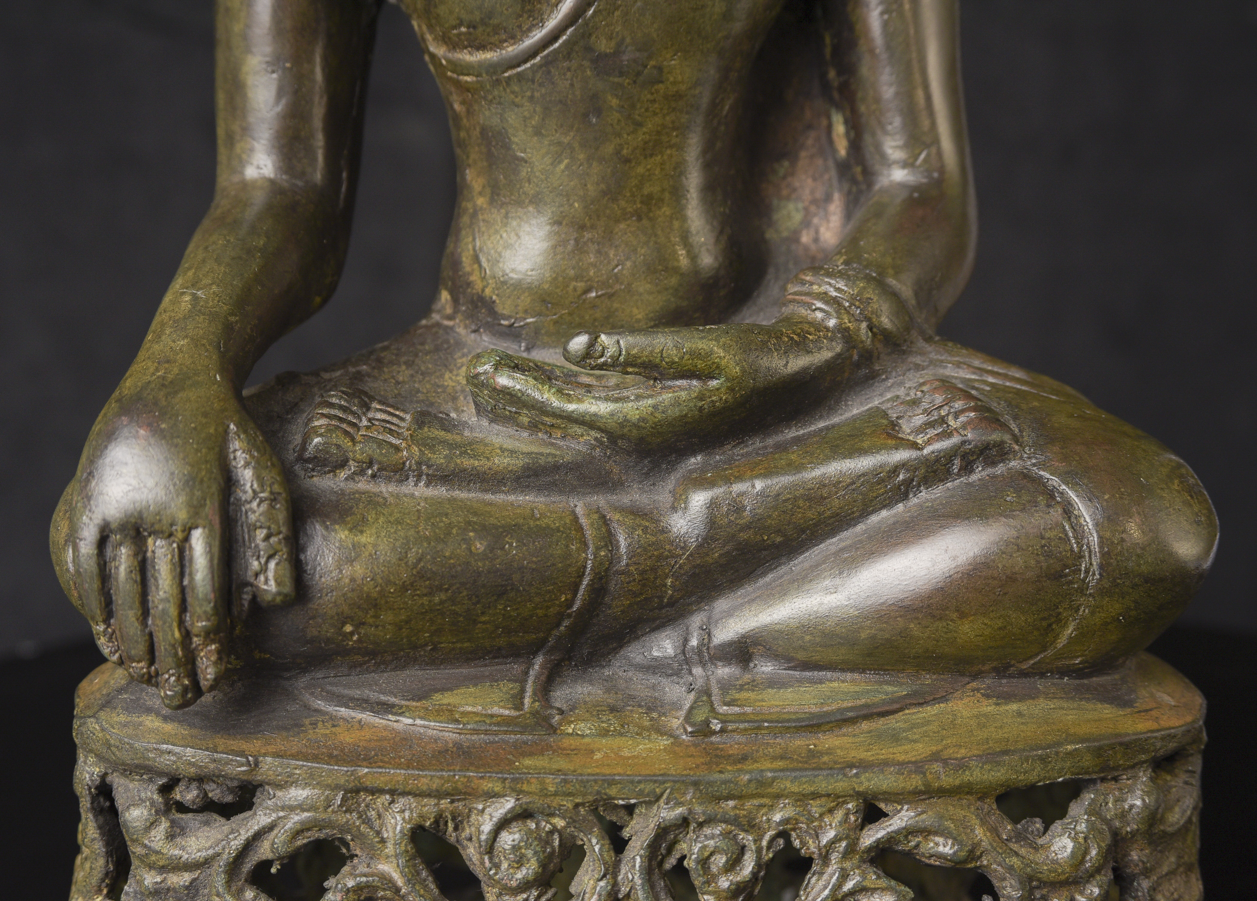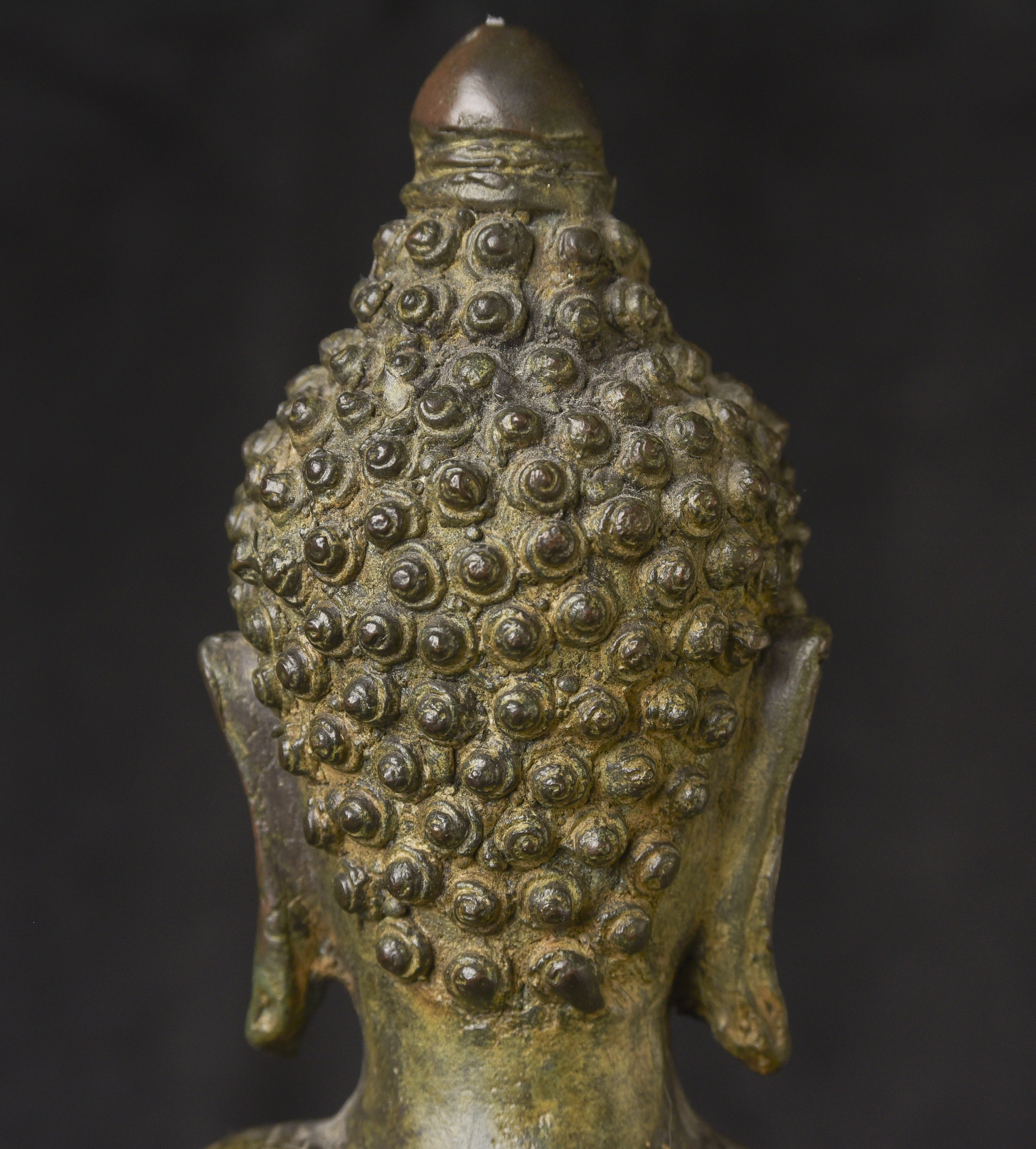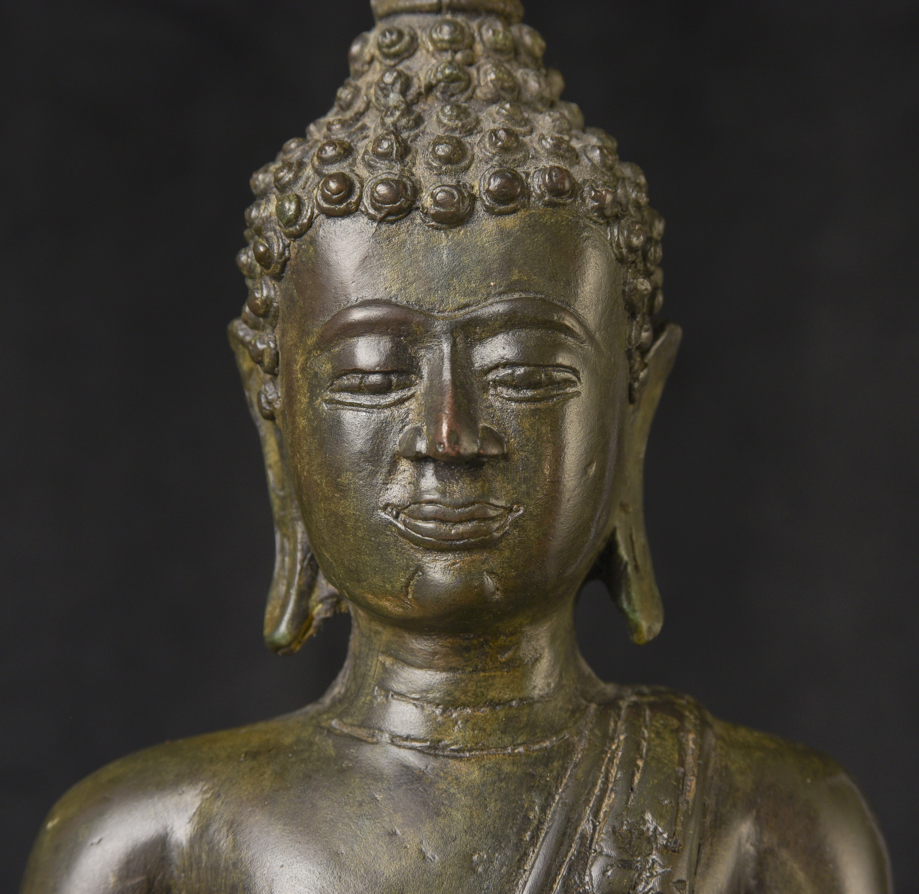 Circa 1900 Buddha with a pleasing face and an outstanding base. It is hard to find an authentic older Buddha of this size, and this is nice at this price. - ( 13"H x 7"W x 4.5"D ) - 8.30lbs