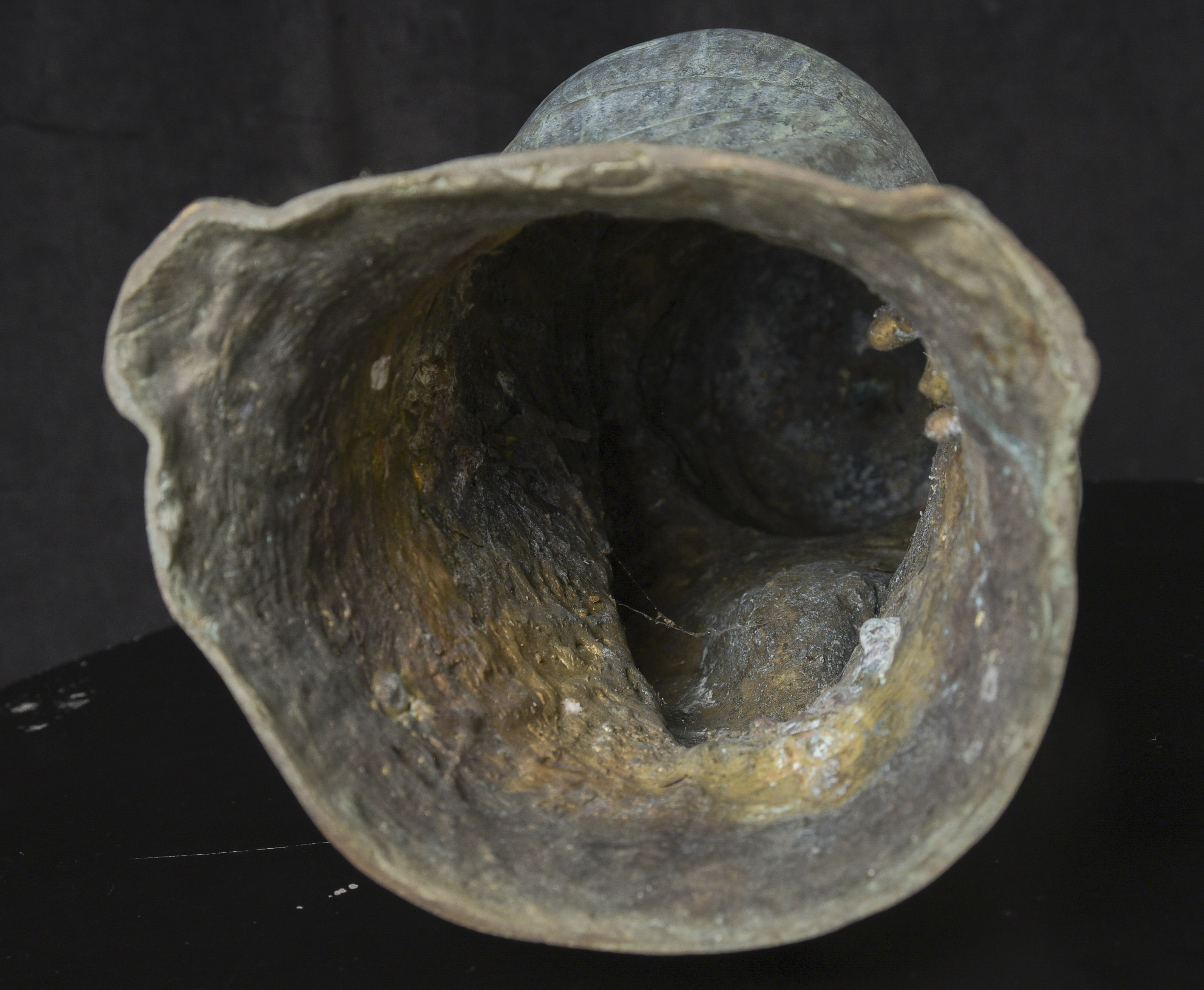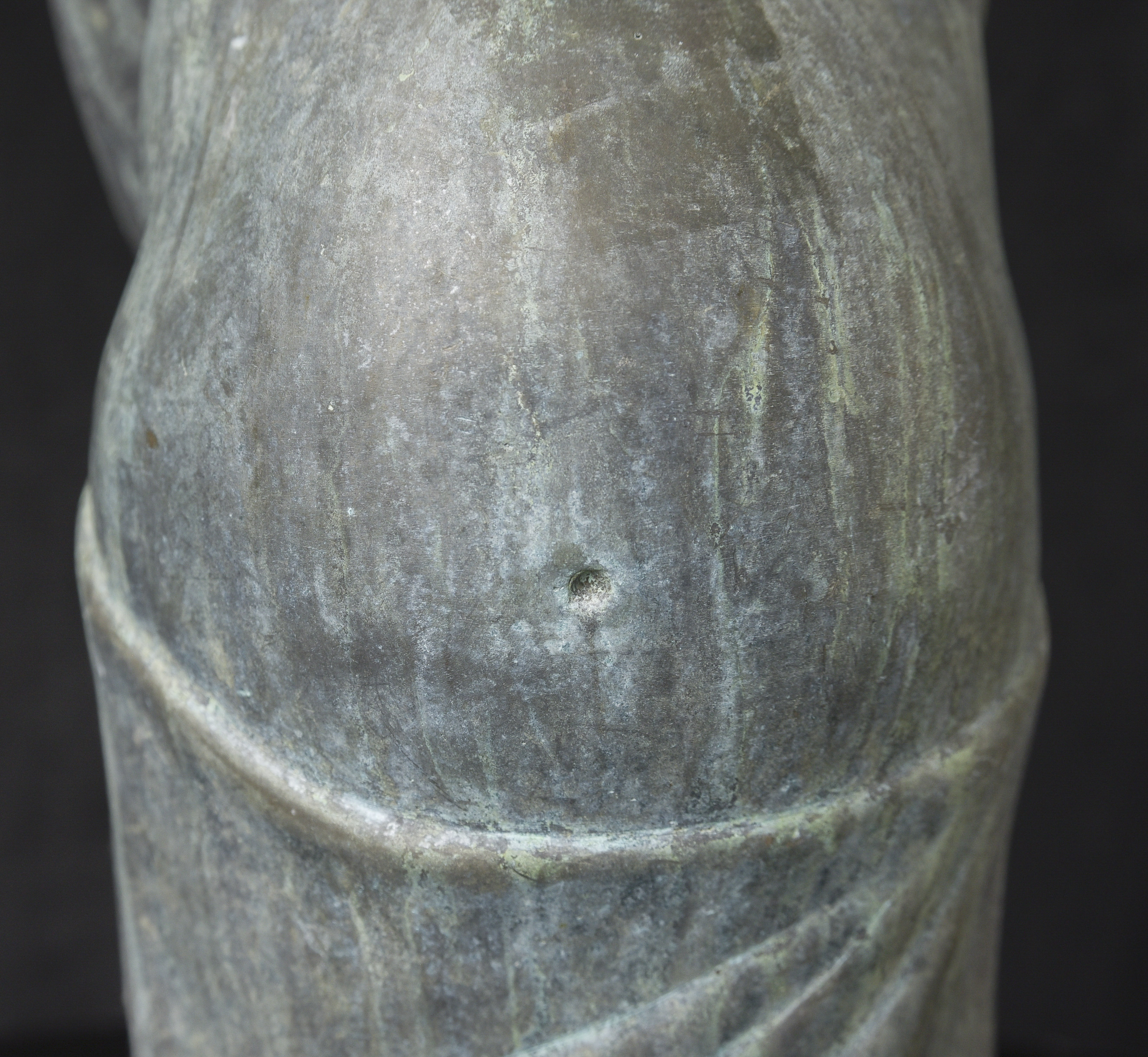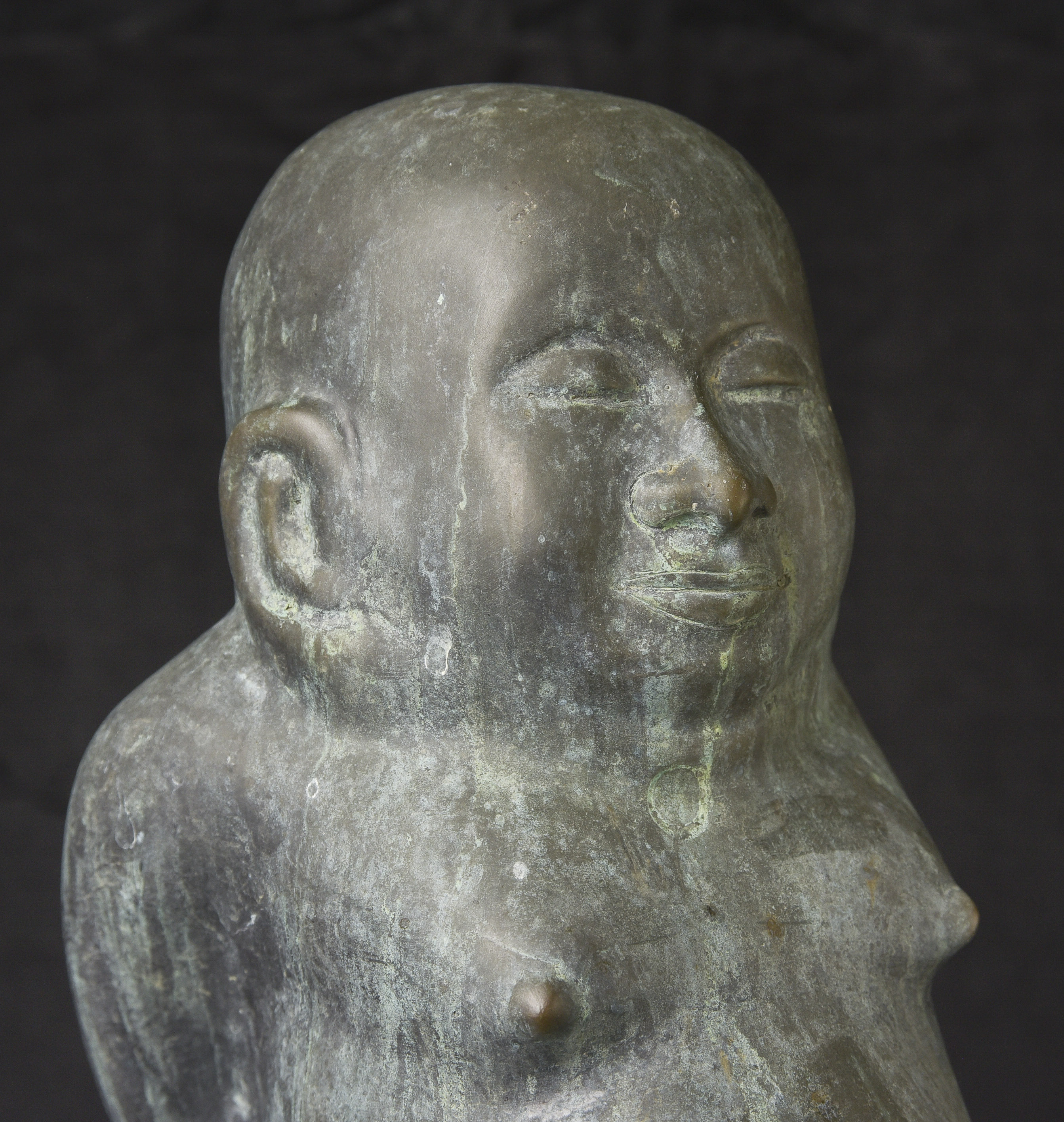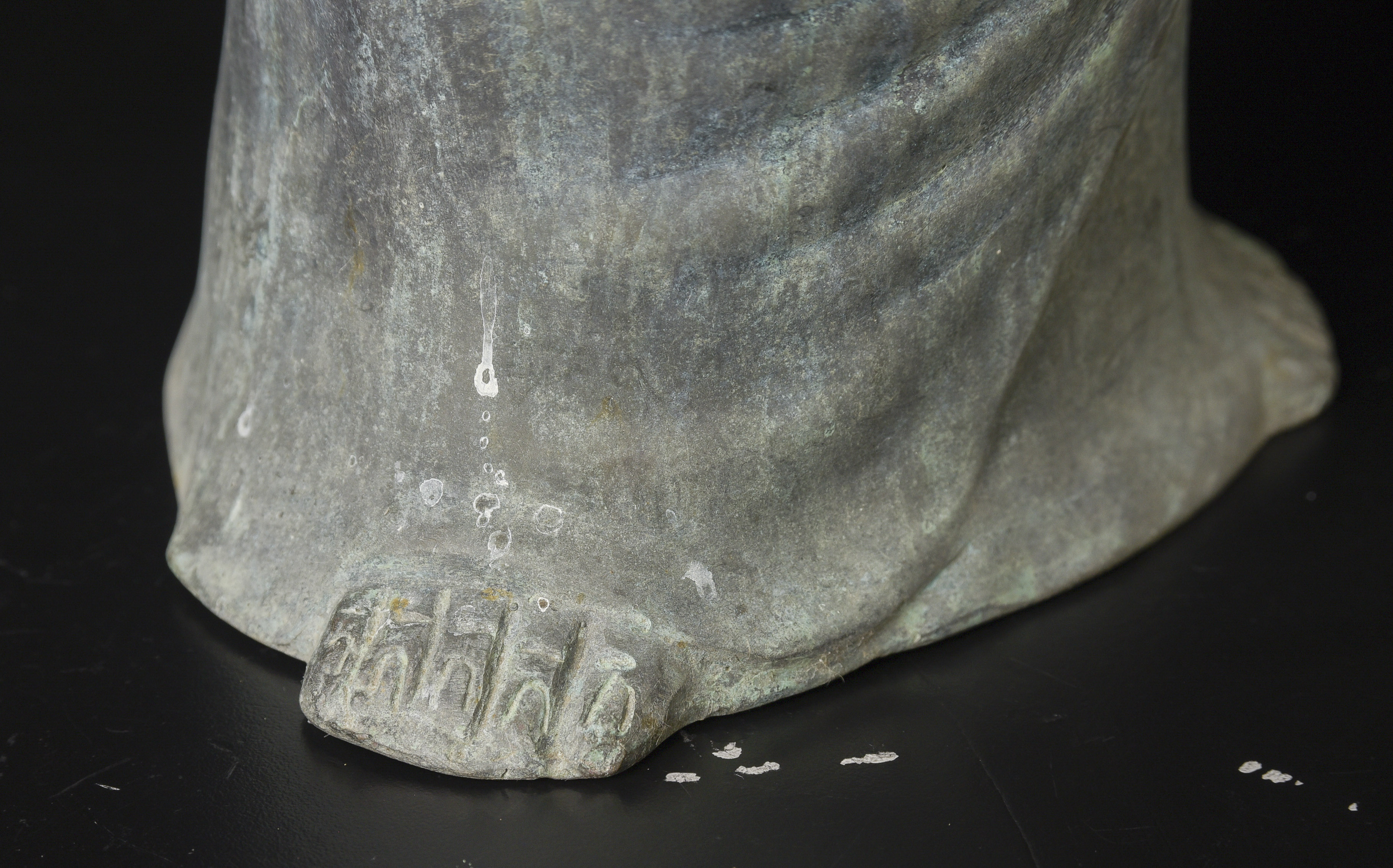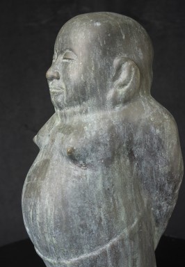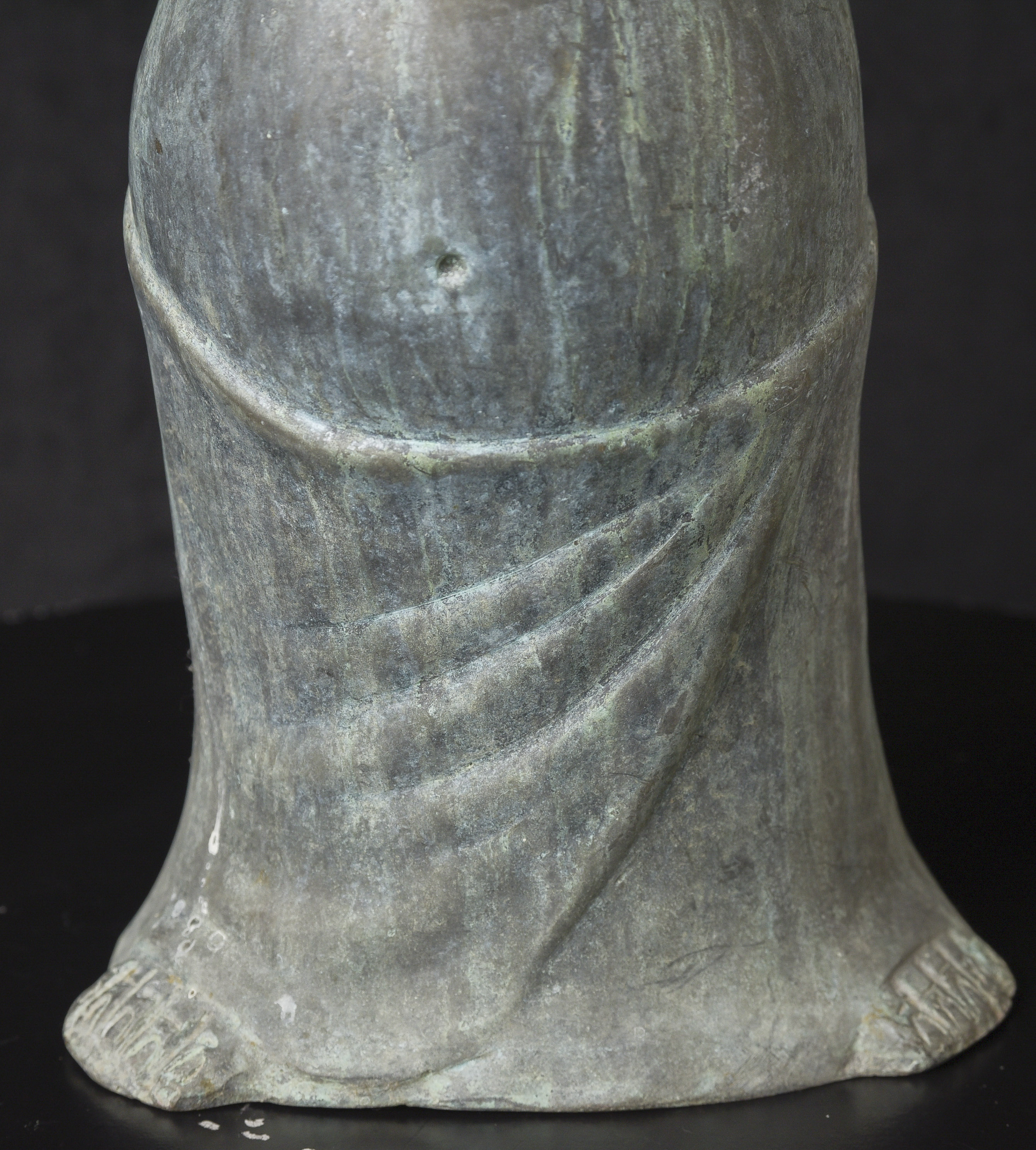 Large Vintage/Antique Standing Chinese Bronze Hotai/Buddha- It was likely in a covered garden or other protected outside area for a long time, as it appears to show significant effects of the elements, with the condition remaining very good. It looks to be early to mid-20thC. Deeply expressive. ( 13.25"H x 6.25"W x 6"D ) - 6.45lbs