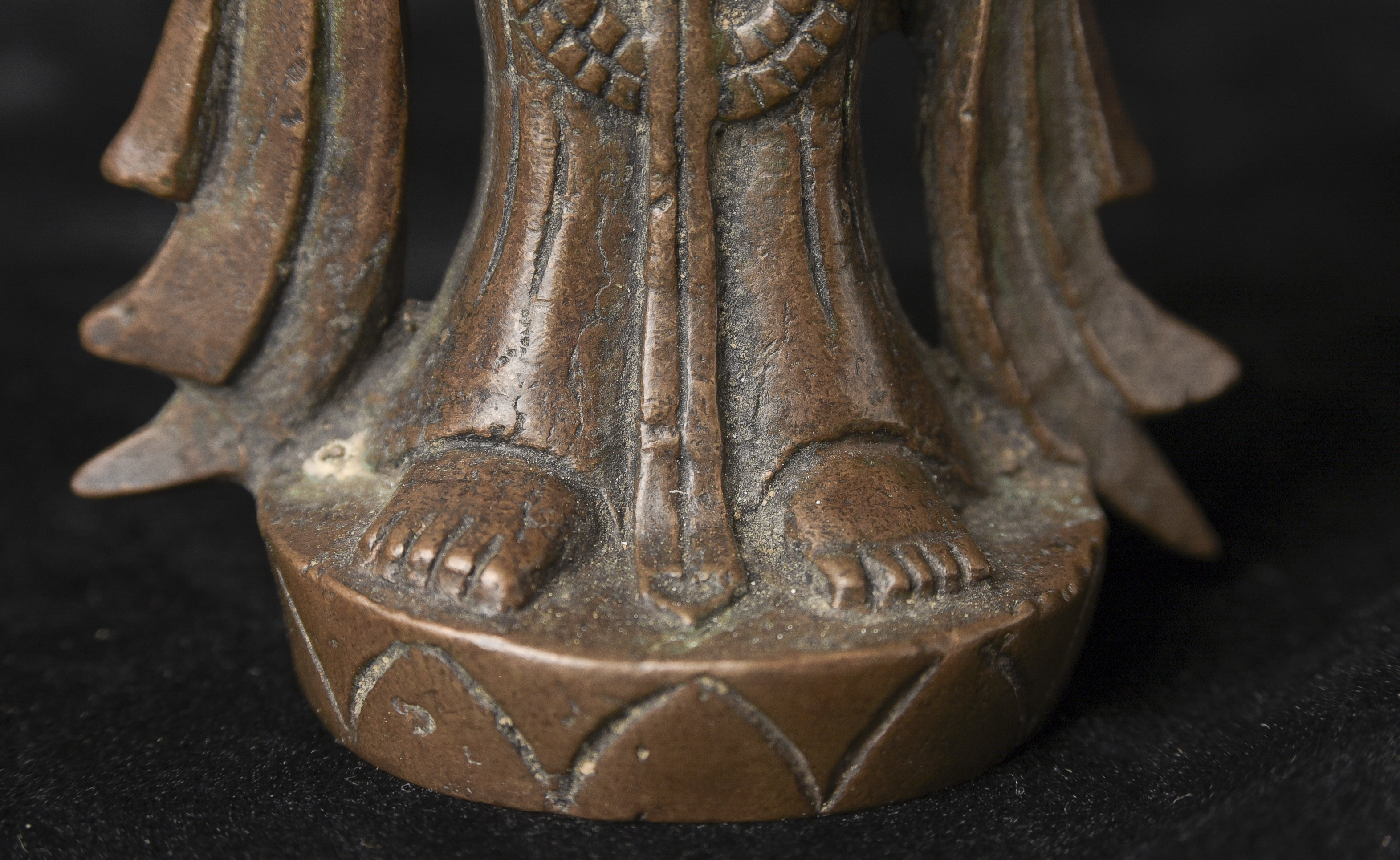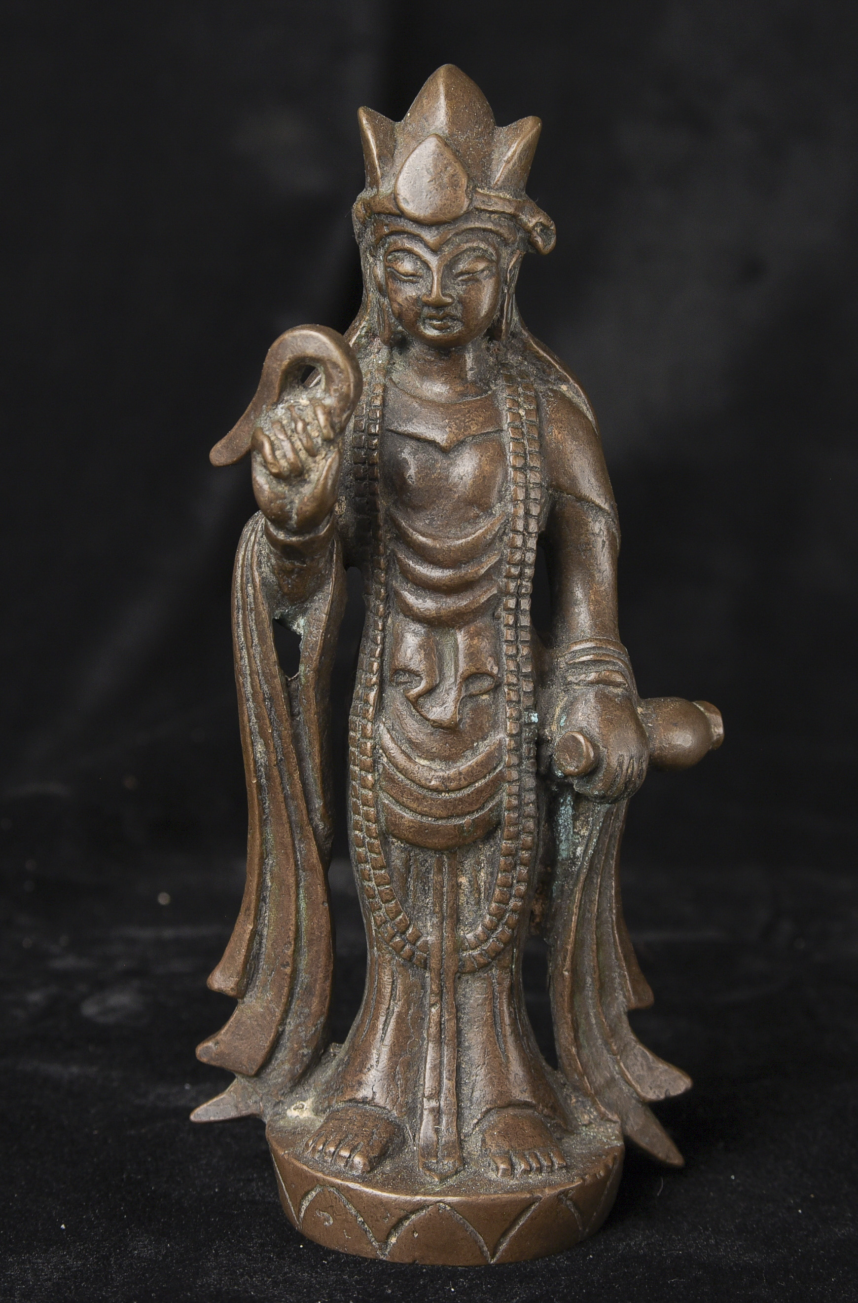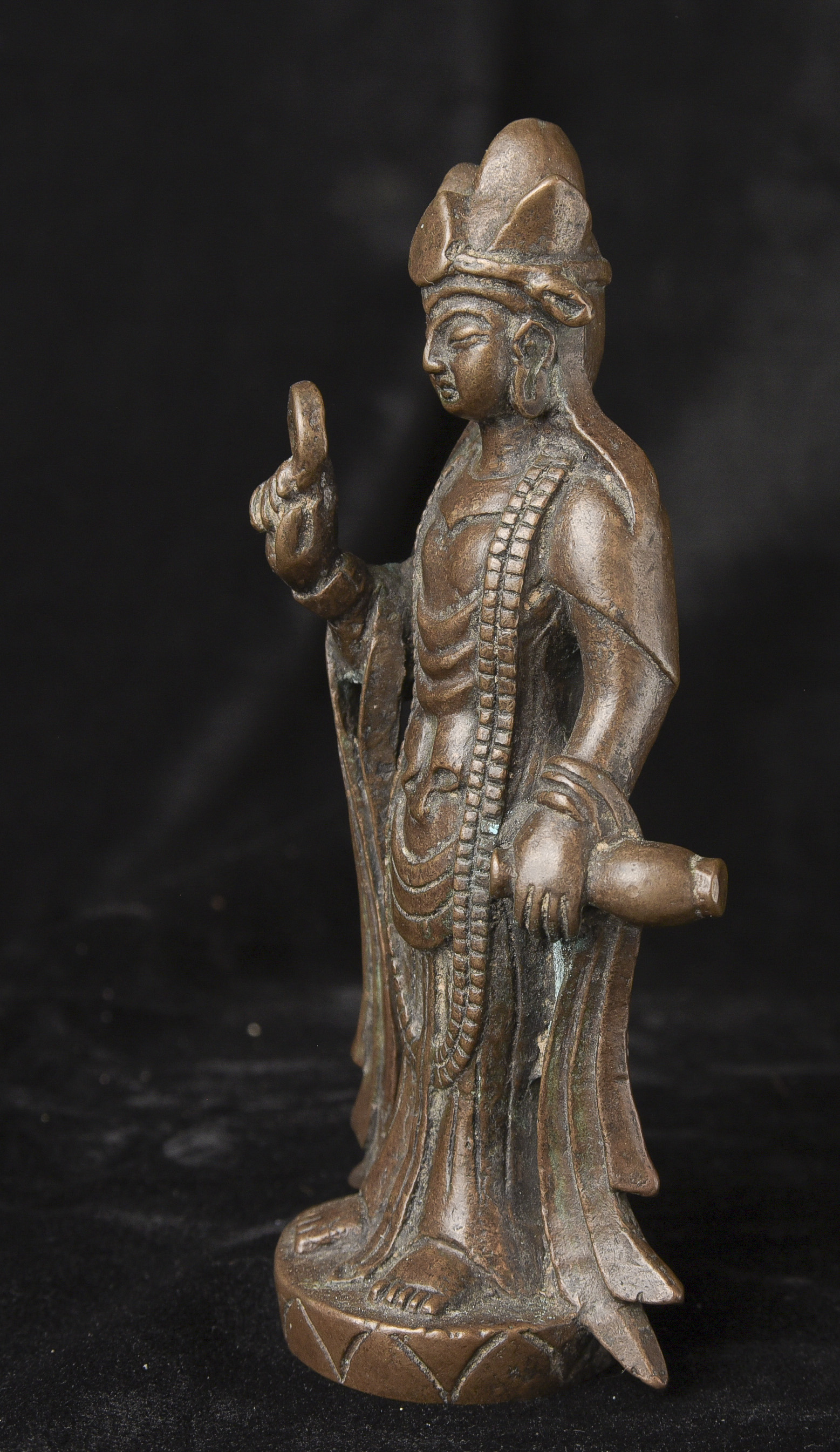 17/18th or earlier solid-cast Korean Bronze Buddha - Sculpted and cast to the highest standard. Nice, even buttery, soft patina. Right cheek more worn because 8/9 people are right handed (authentic ritual wear!). At first, I thought it was 17-19thC, but the longer I own it, the more I suspect it may be much older. ( 5.75"H x 2.5"W x 1.75"D ) - 360g.