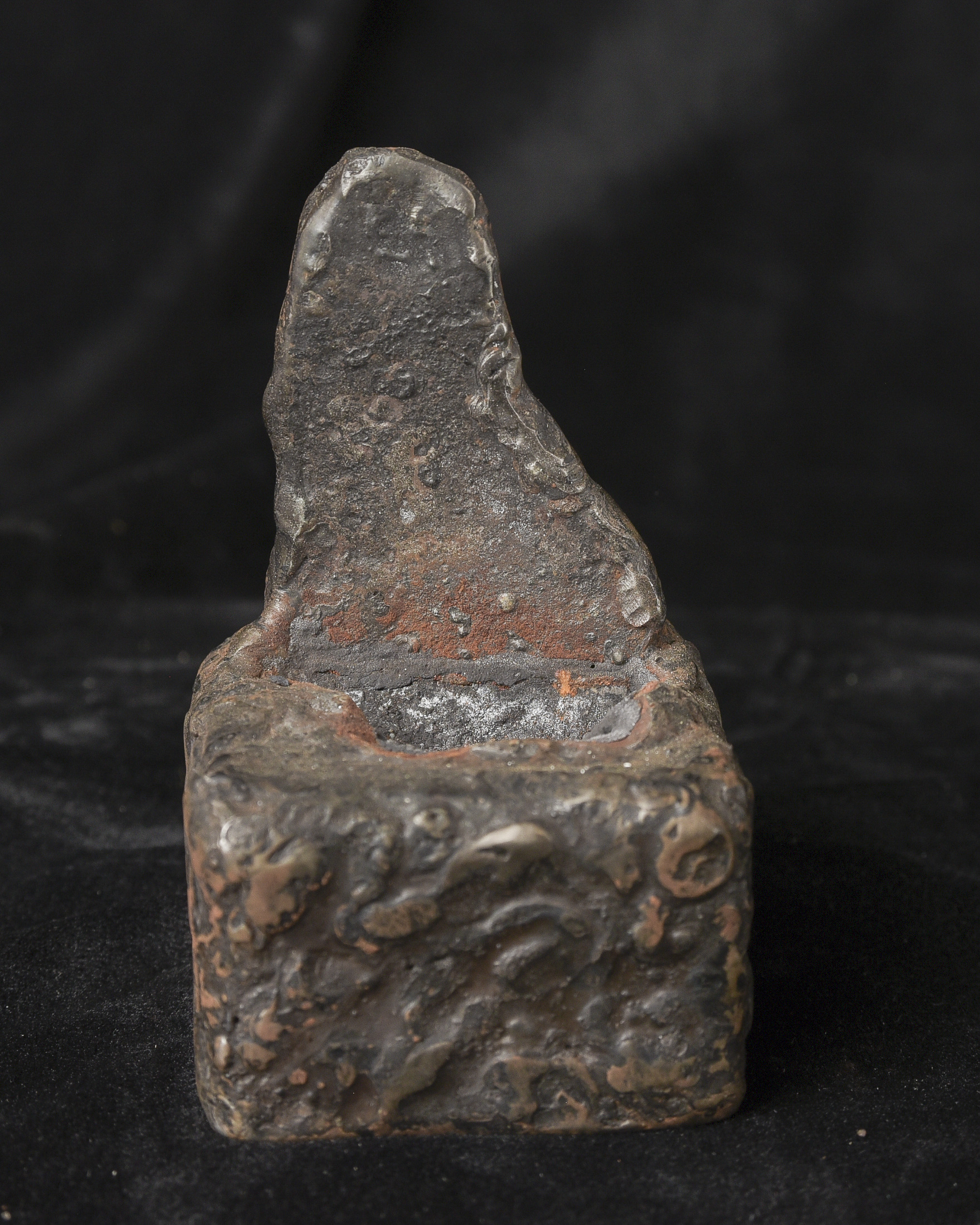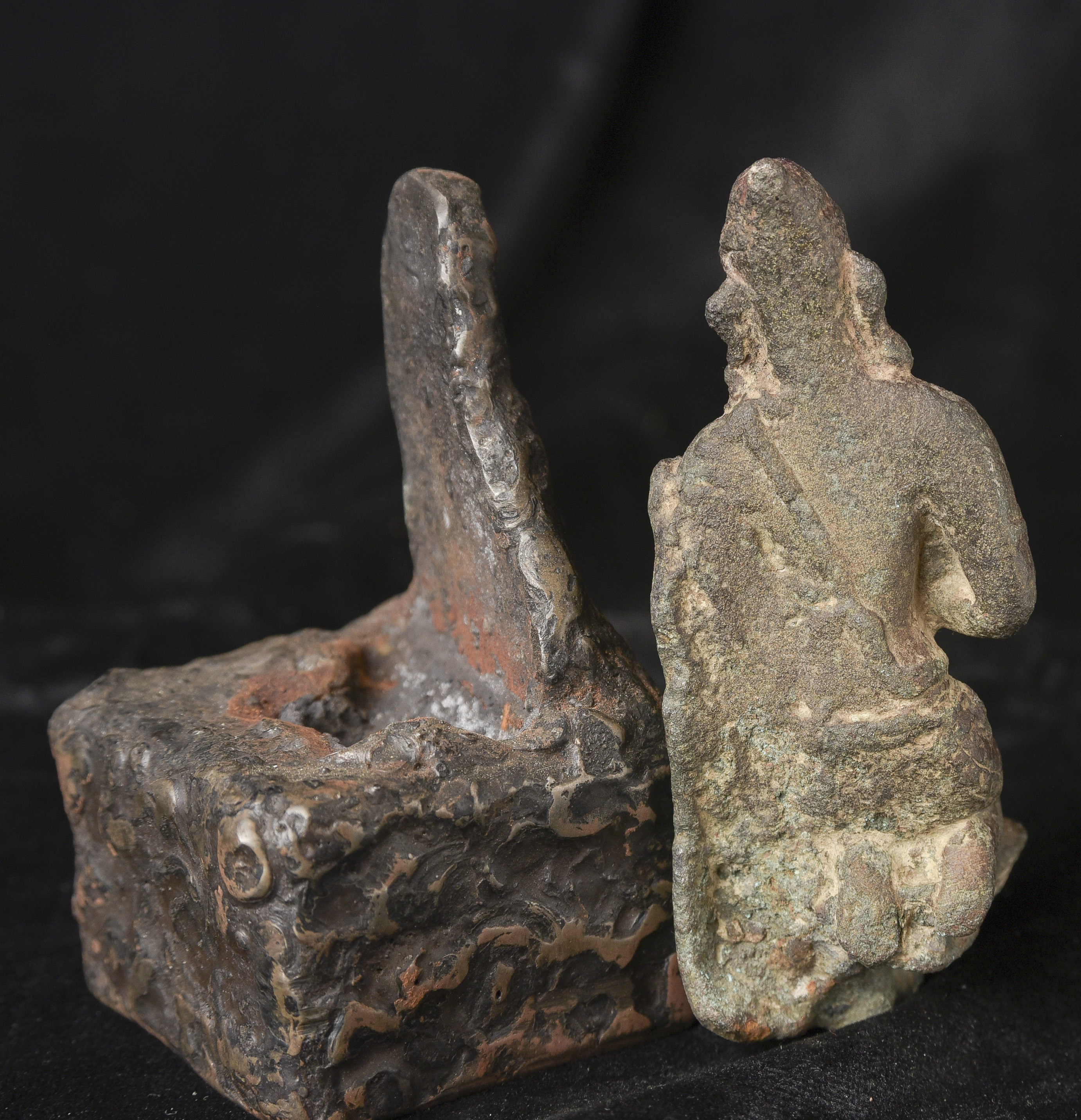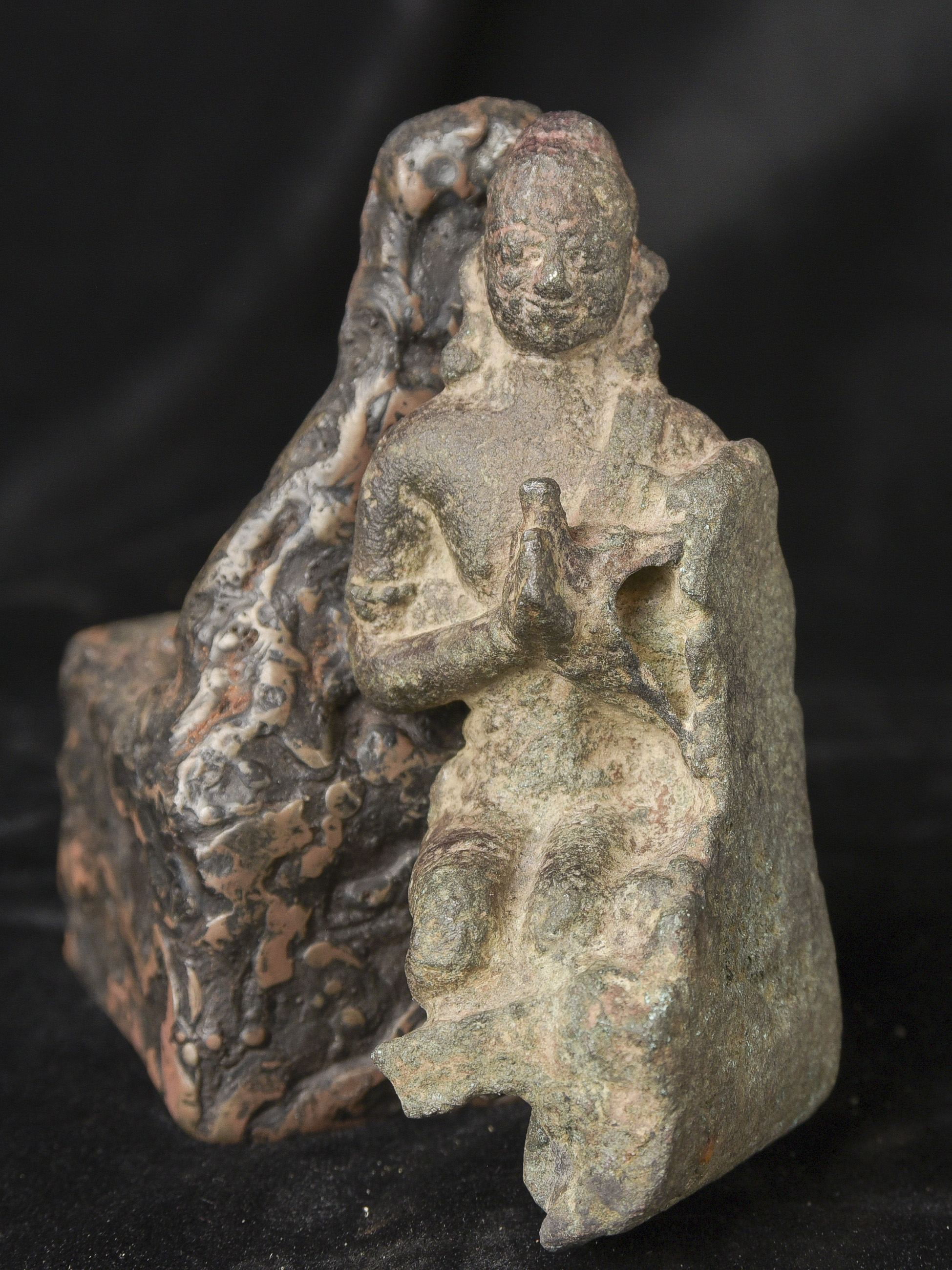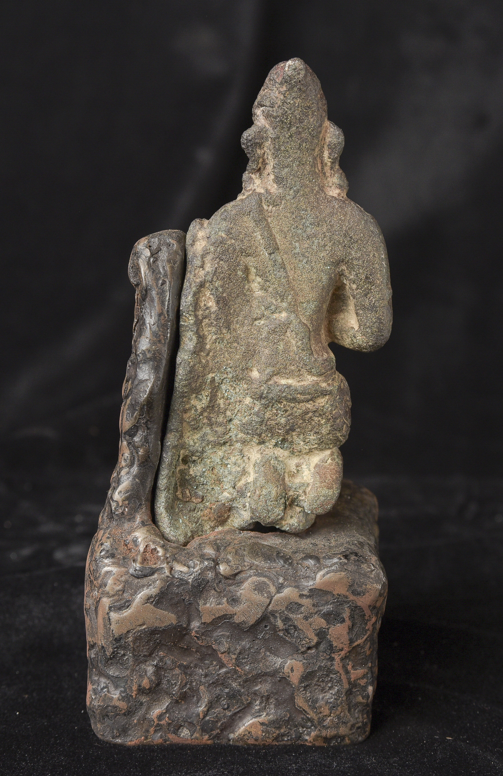9-11thC Pala Era, but from Bangladesh. The previous owner purchased it in Bangladesh in the 1970s while working with an international non-profit. I had the base custom-made by a well-regarded metal sculptor, specifically for this piece in the 1990s to complement the shape and patina. I've never seen another like it, though it is similar in many ways to the Northern Indian and Early Southern Himalayan Sculpture of the same period. The great face has the radiance found in the great bronzes of this period. It's a true collector's piece and extremely rare. ( 5.25"H x 2.25"W x 2.25"D ) - 2lbs.