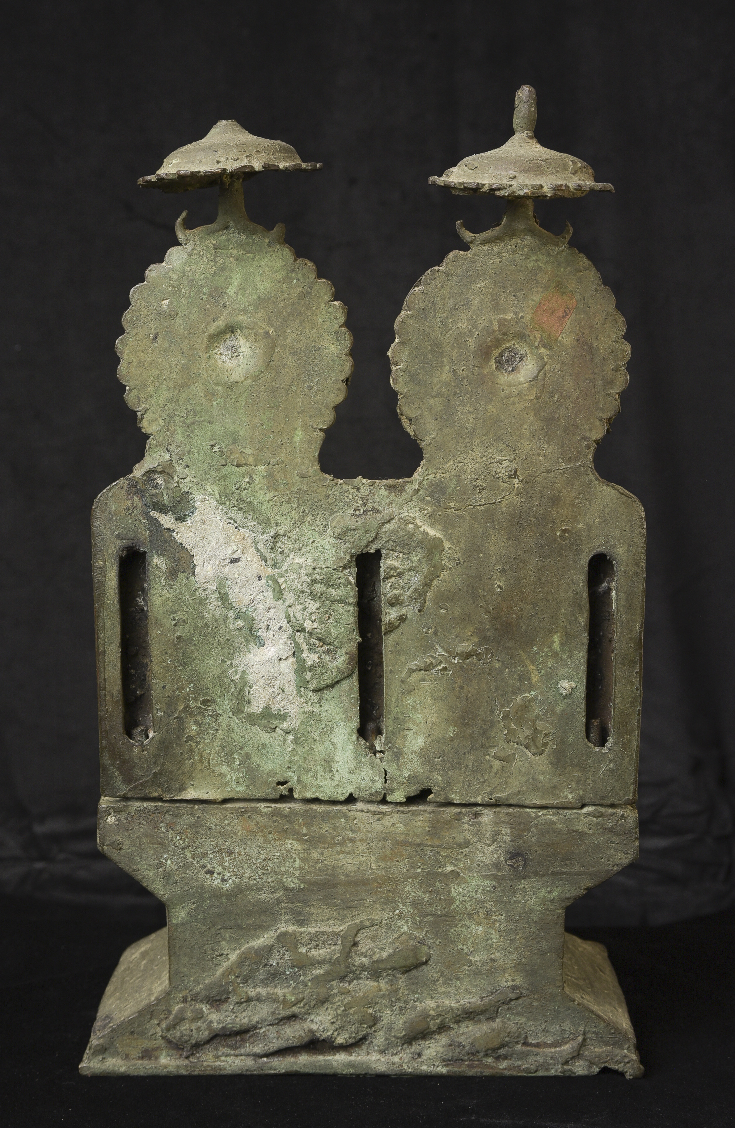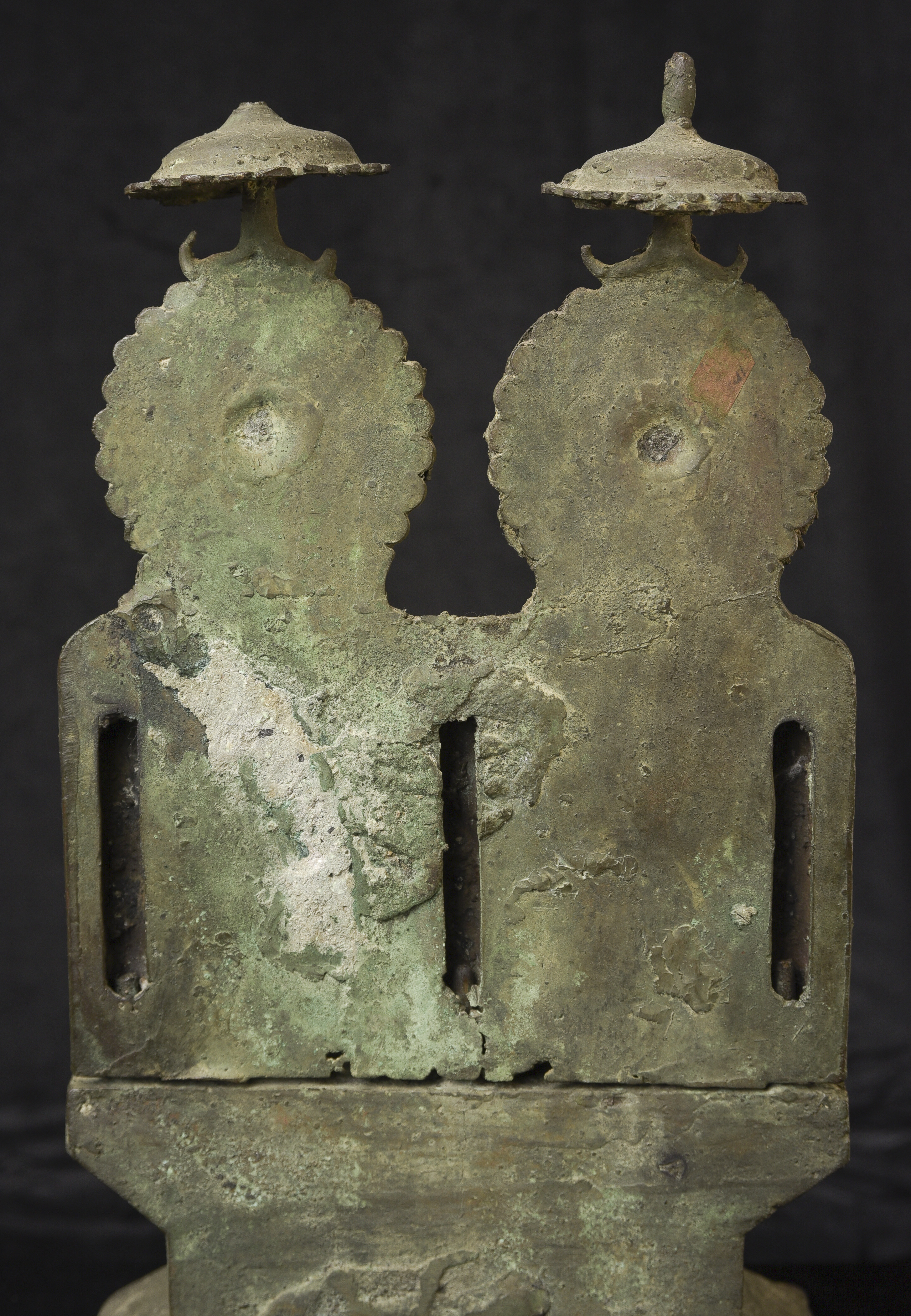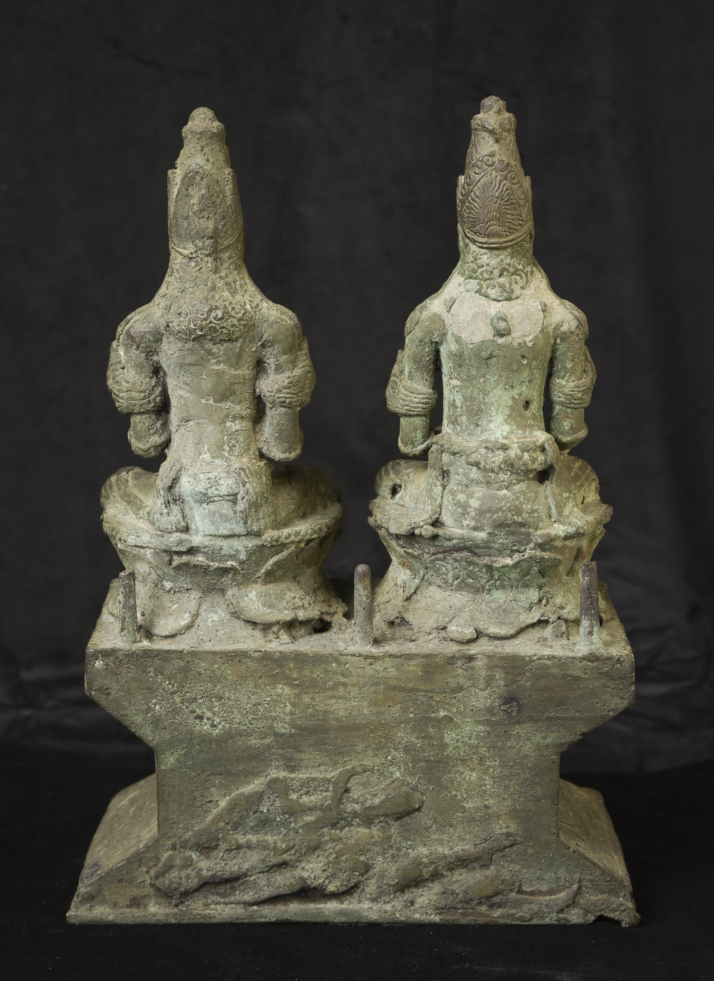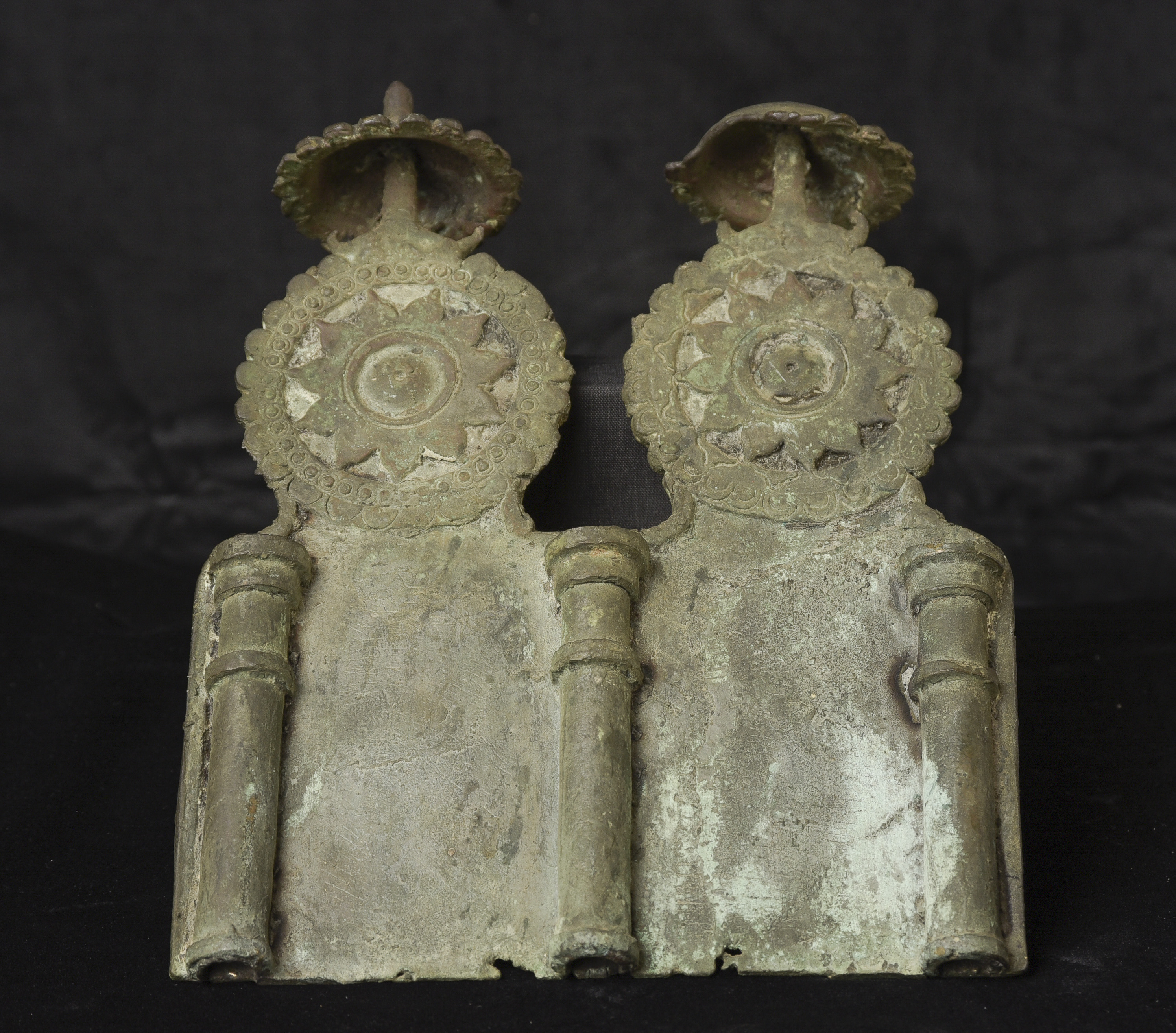 Rare Javanese double Deity. Looks to have a very good age, at least a few hundred years old. Backplate looks original. Some bits missing as can be seen in the photos. The backplate is detachable. Possibly buried. I do not think any major repairs. Something I've only seen in books. Not had anything like it in 30+ years. ( 14.75"H x 8"W x 4"D ) - 13.5lbs