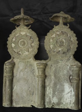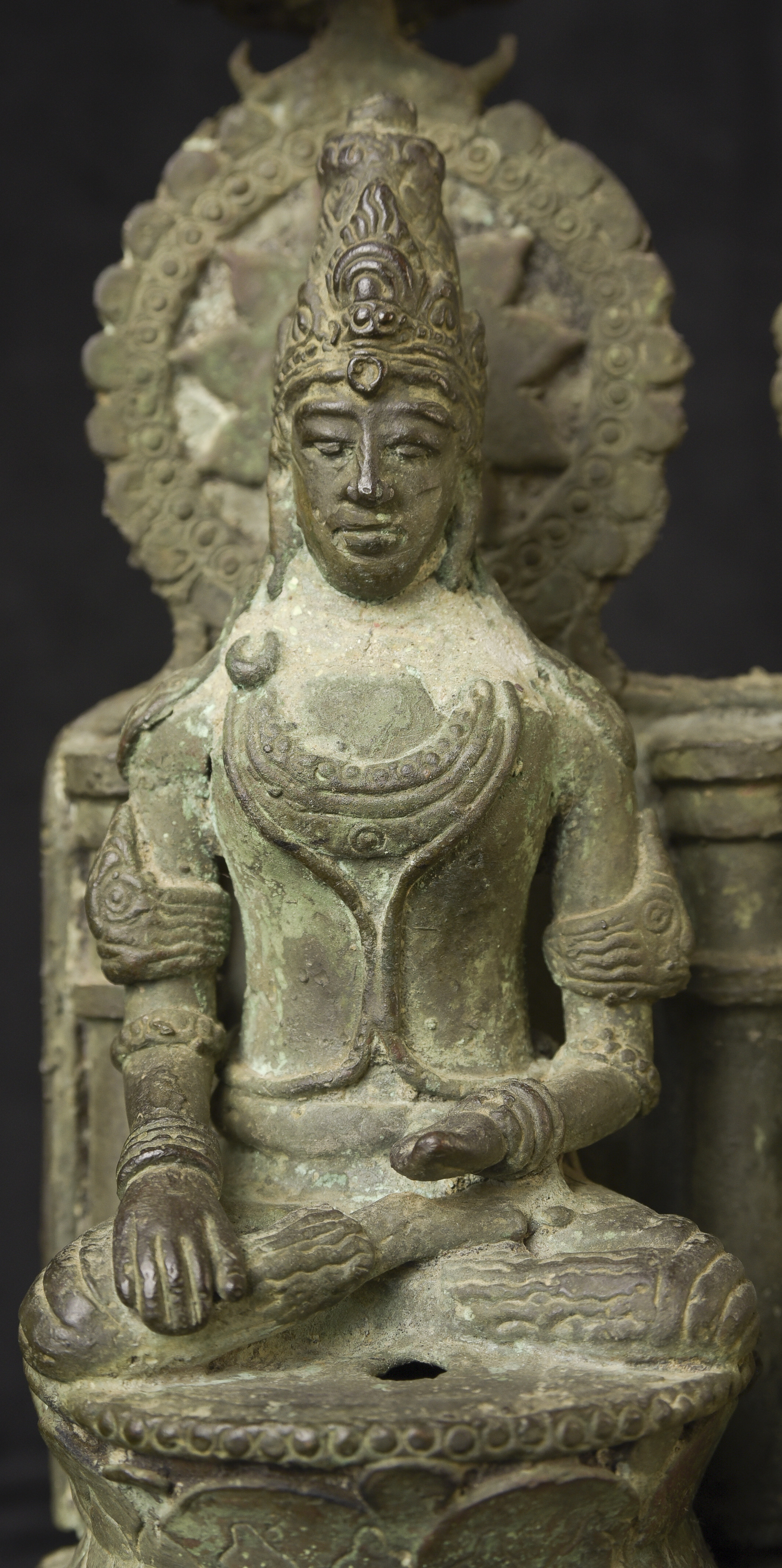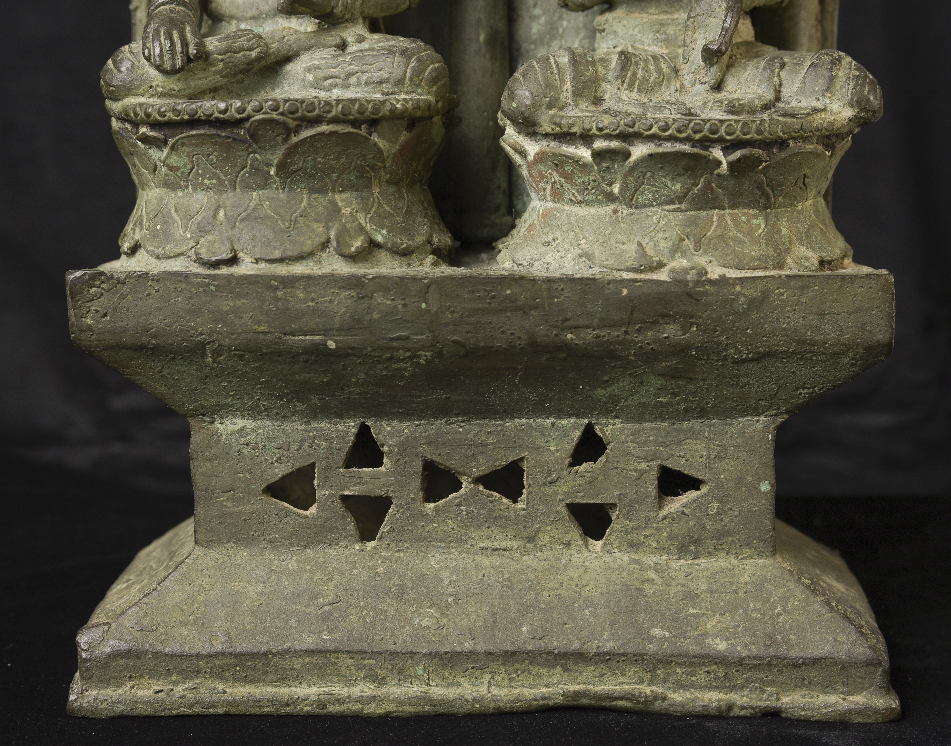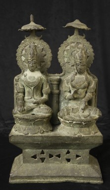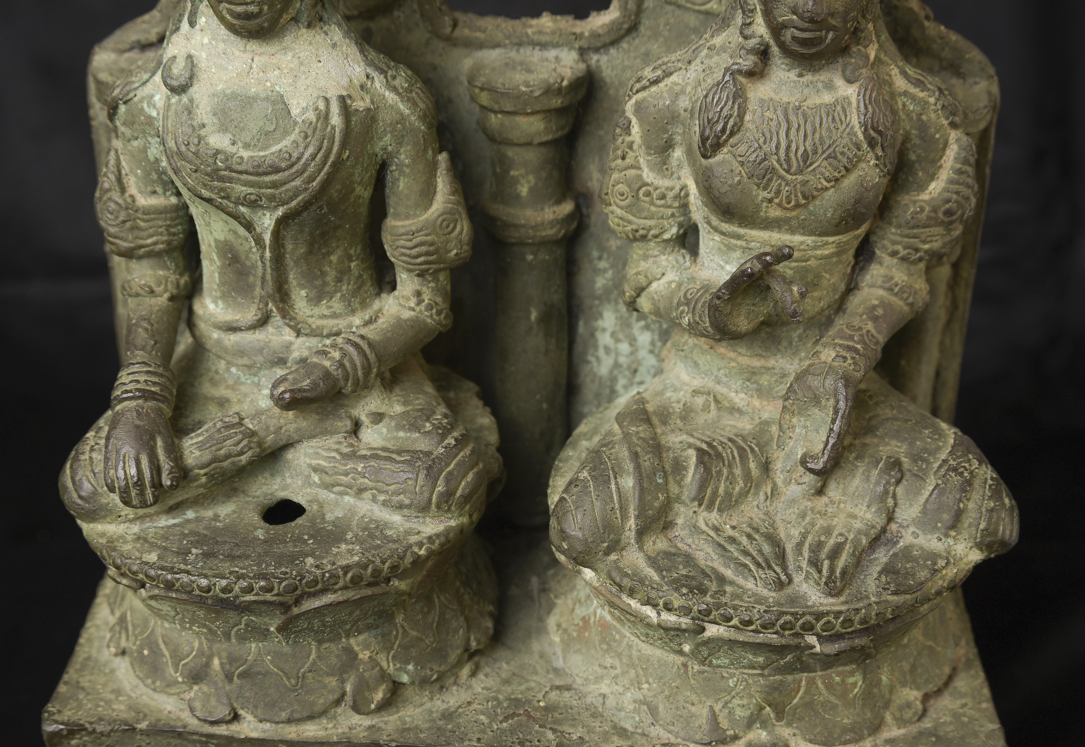 Rare Javanese double Deity. Looks to have a very good age, at least a few hundred years old. Backplate looks original. Some bits missing as can be seen in the photos. The backplate is detachable. Possibly buried. I do not think any major repairs. Something I've only seen in books. Not had anything like it in 30+ years. ( 14.75"H x 8"W x 4"D ) - 13.5lbs