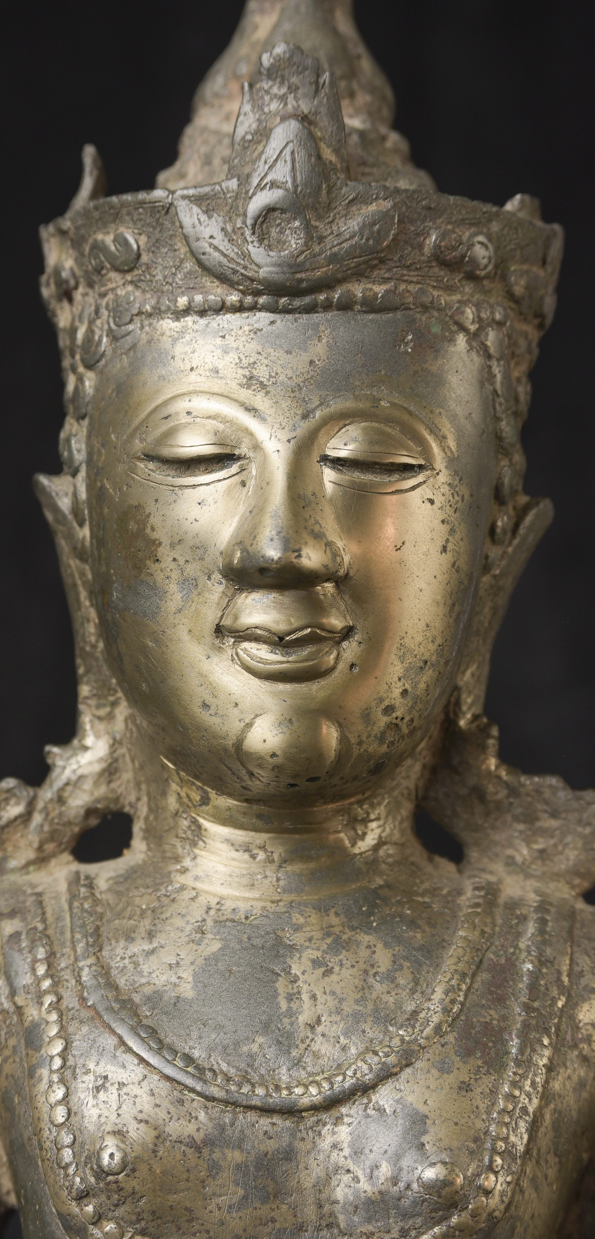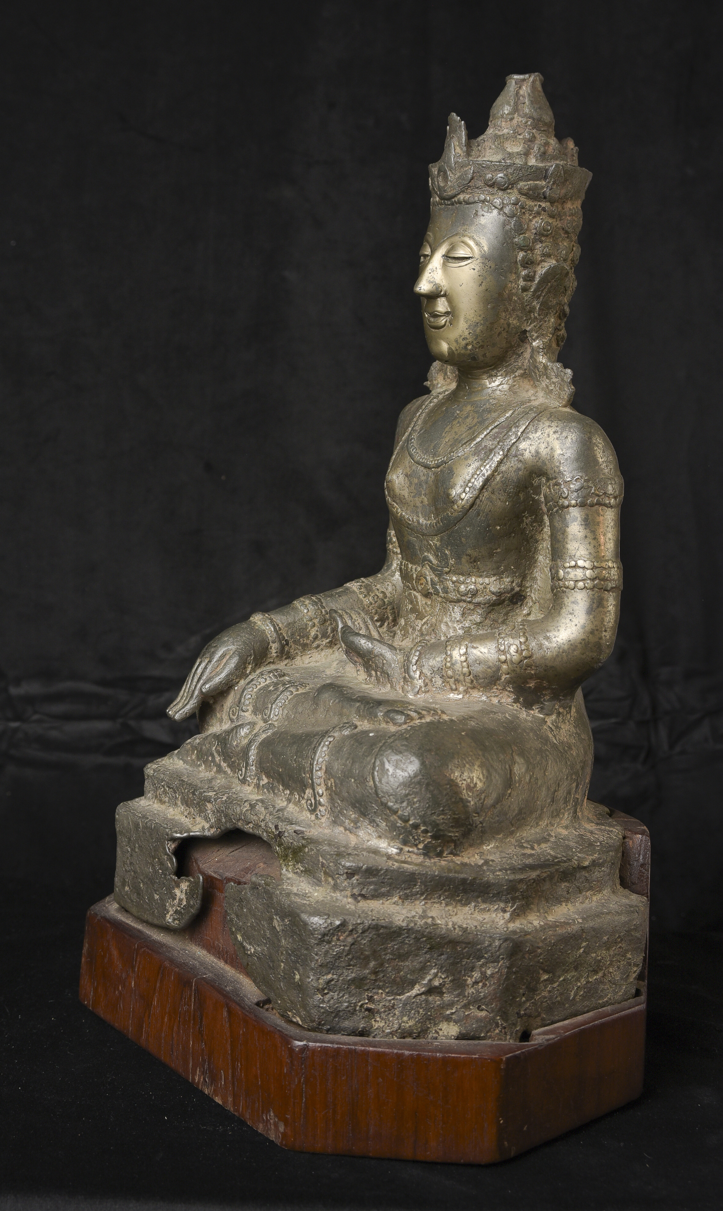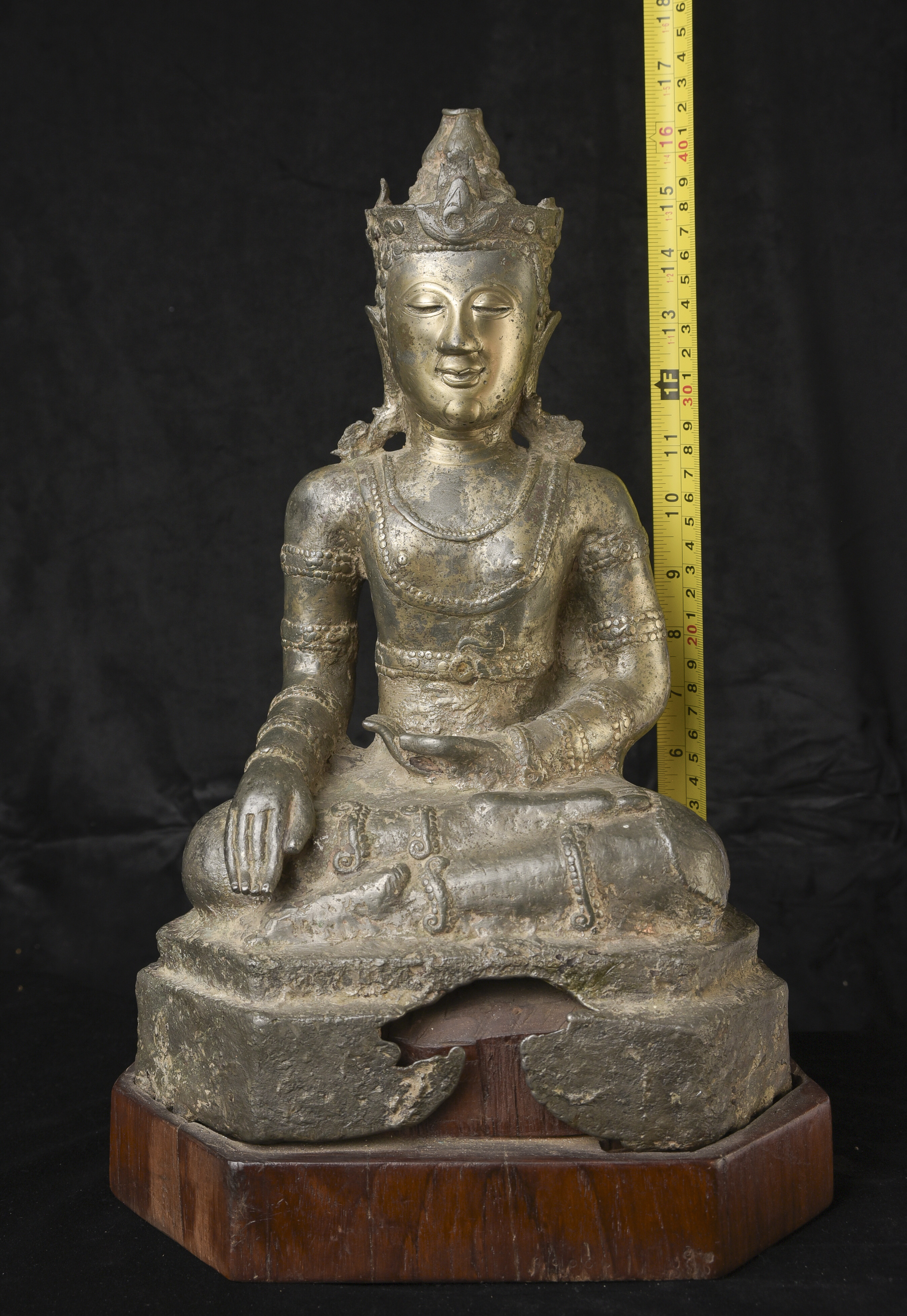 Large 15th Century Thai Bronze Buddha. Considerable wear from ritual use. Quite large on its attached base, Very sweet face!( 16"H x 10.75"W x 8"D ) - 25lbs