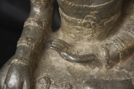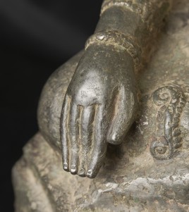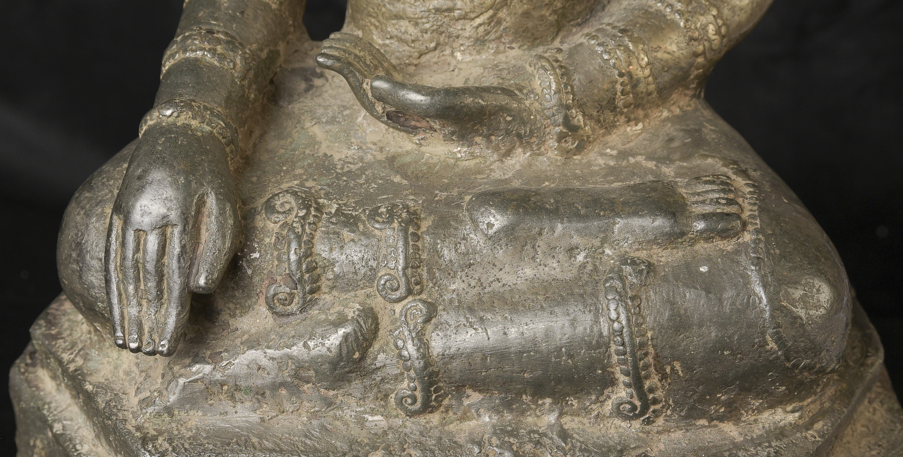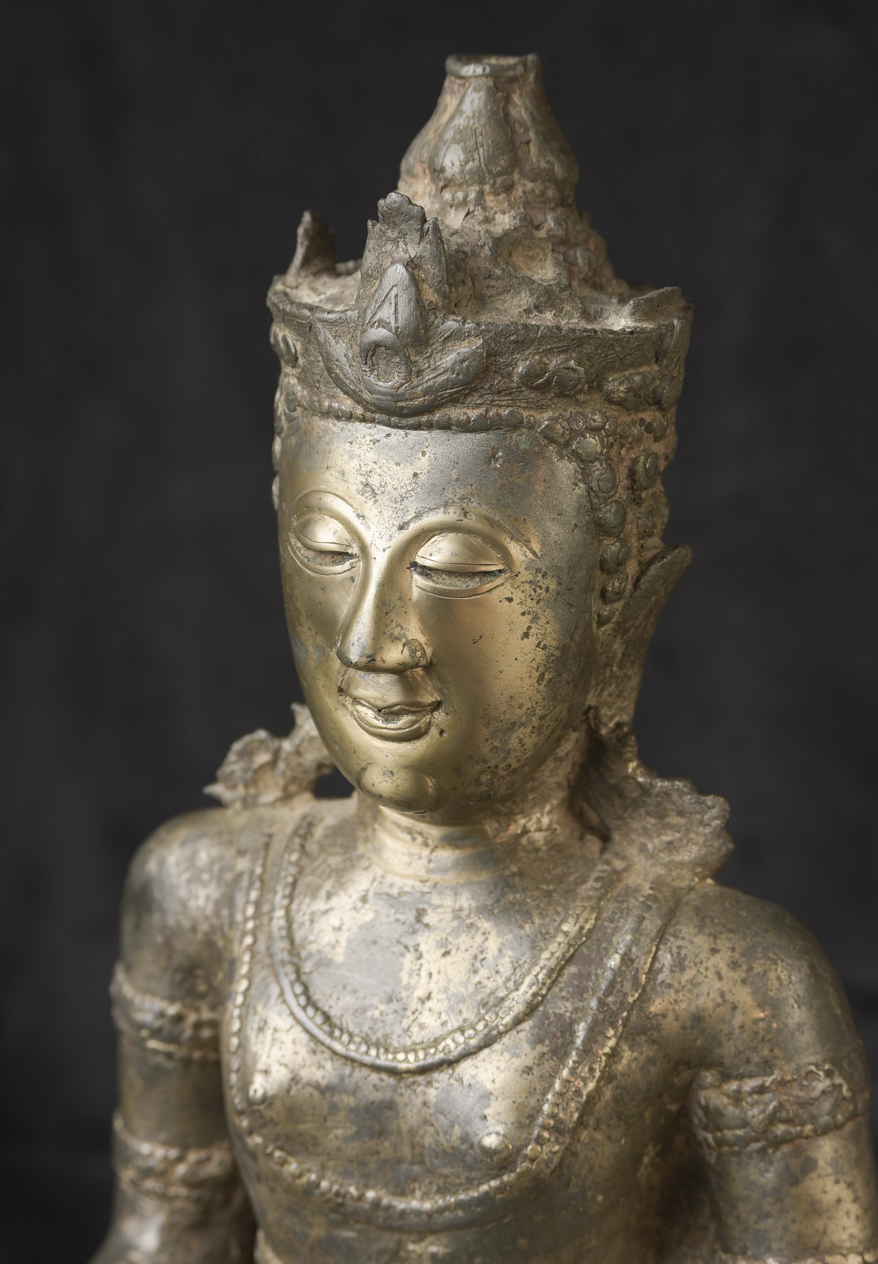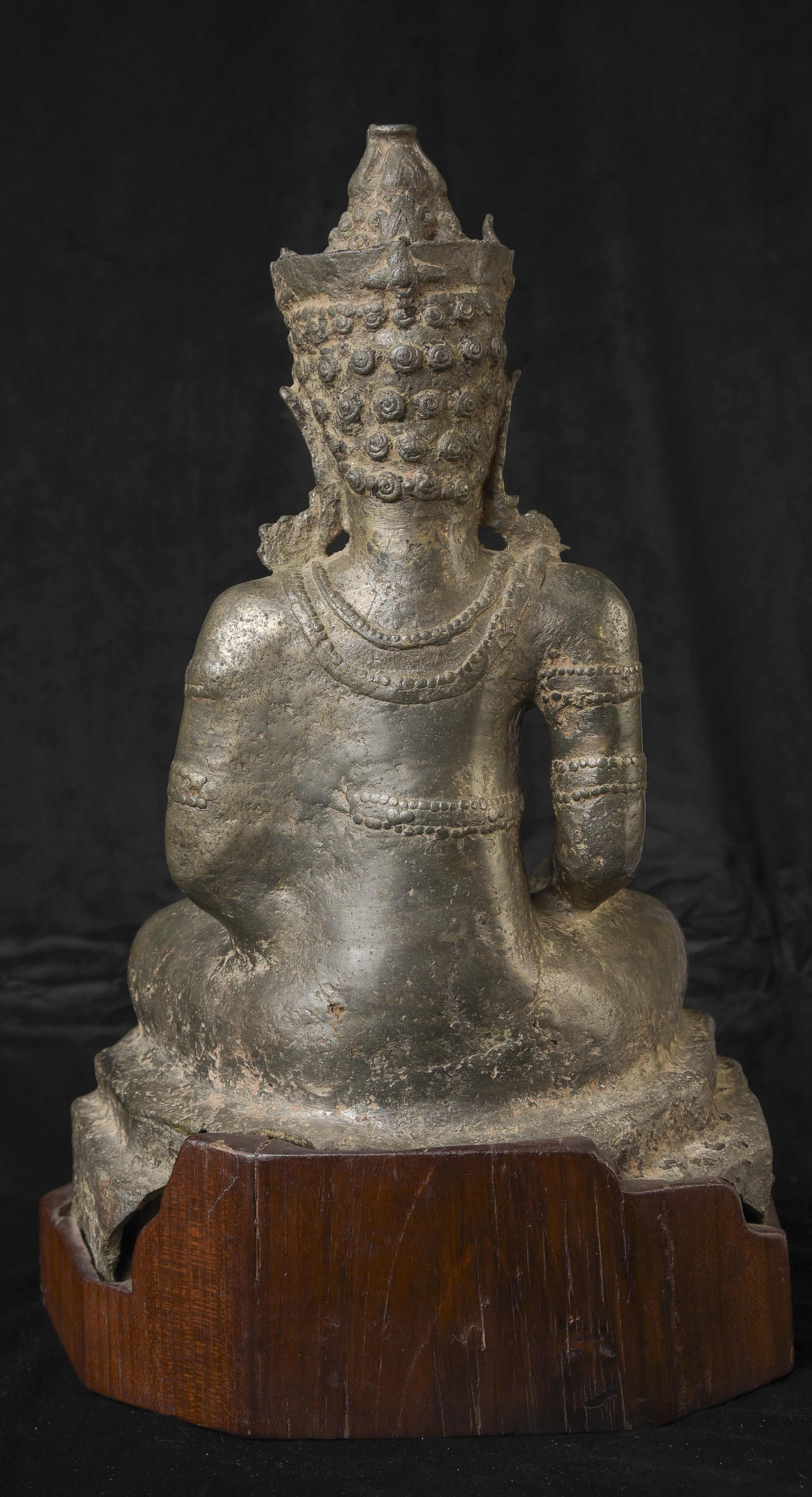 Large 15th Century Thai Bronze Buddha. Considerable wear from ritual use. Quite large on its attached base, Very sweet face!( 16"H x 10.75"W x 8"D ) - 25lbs