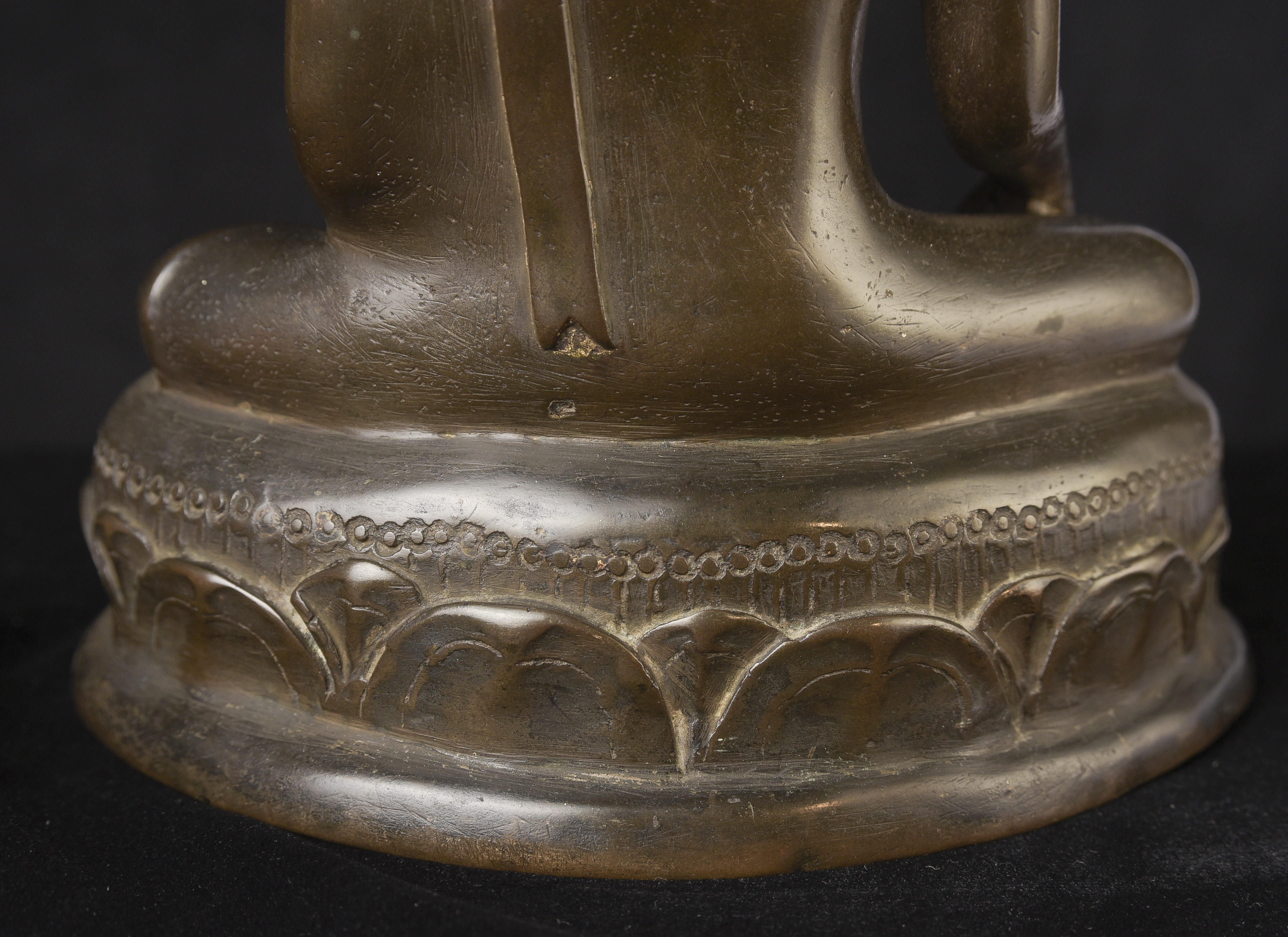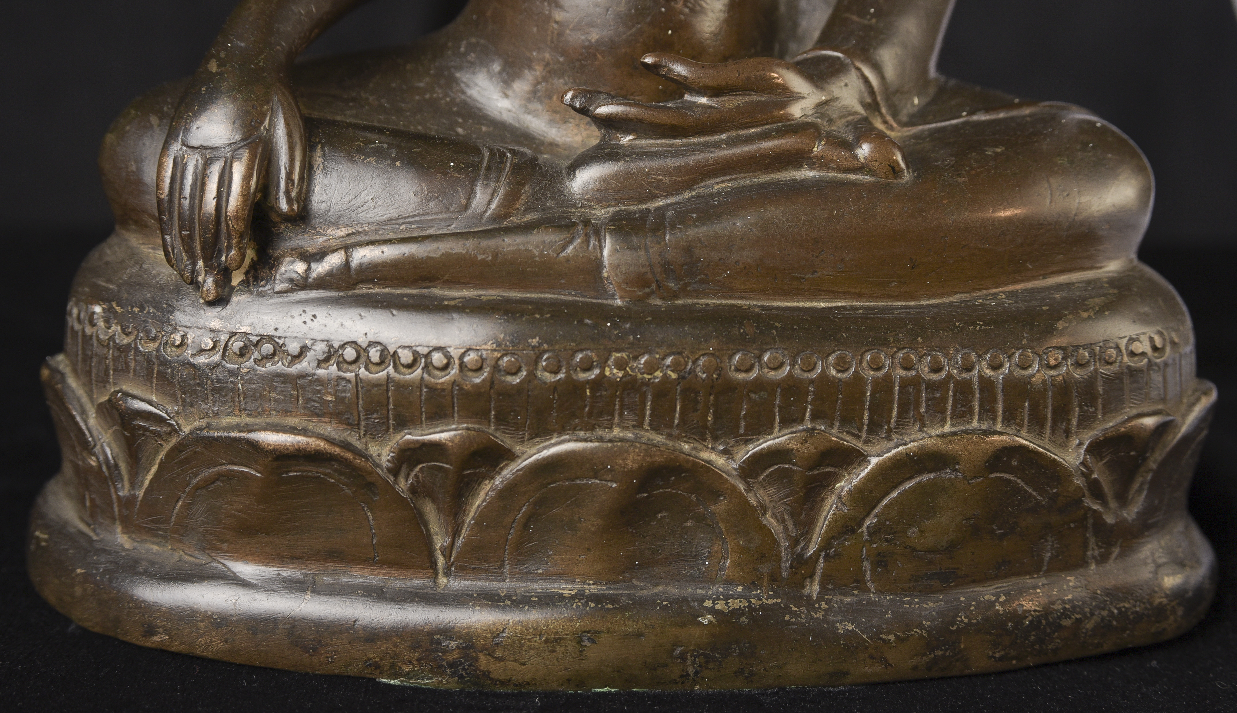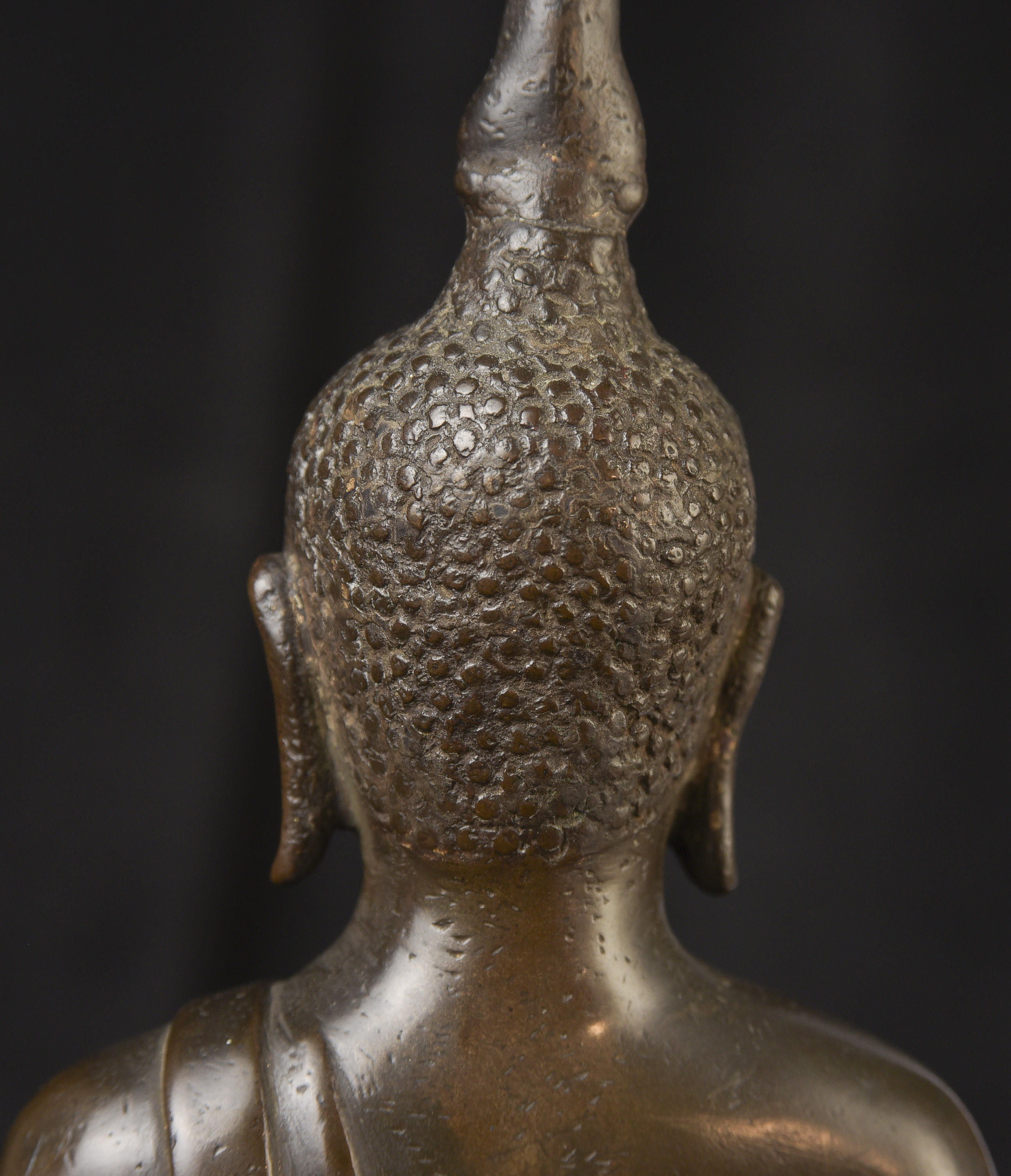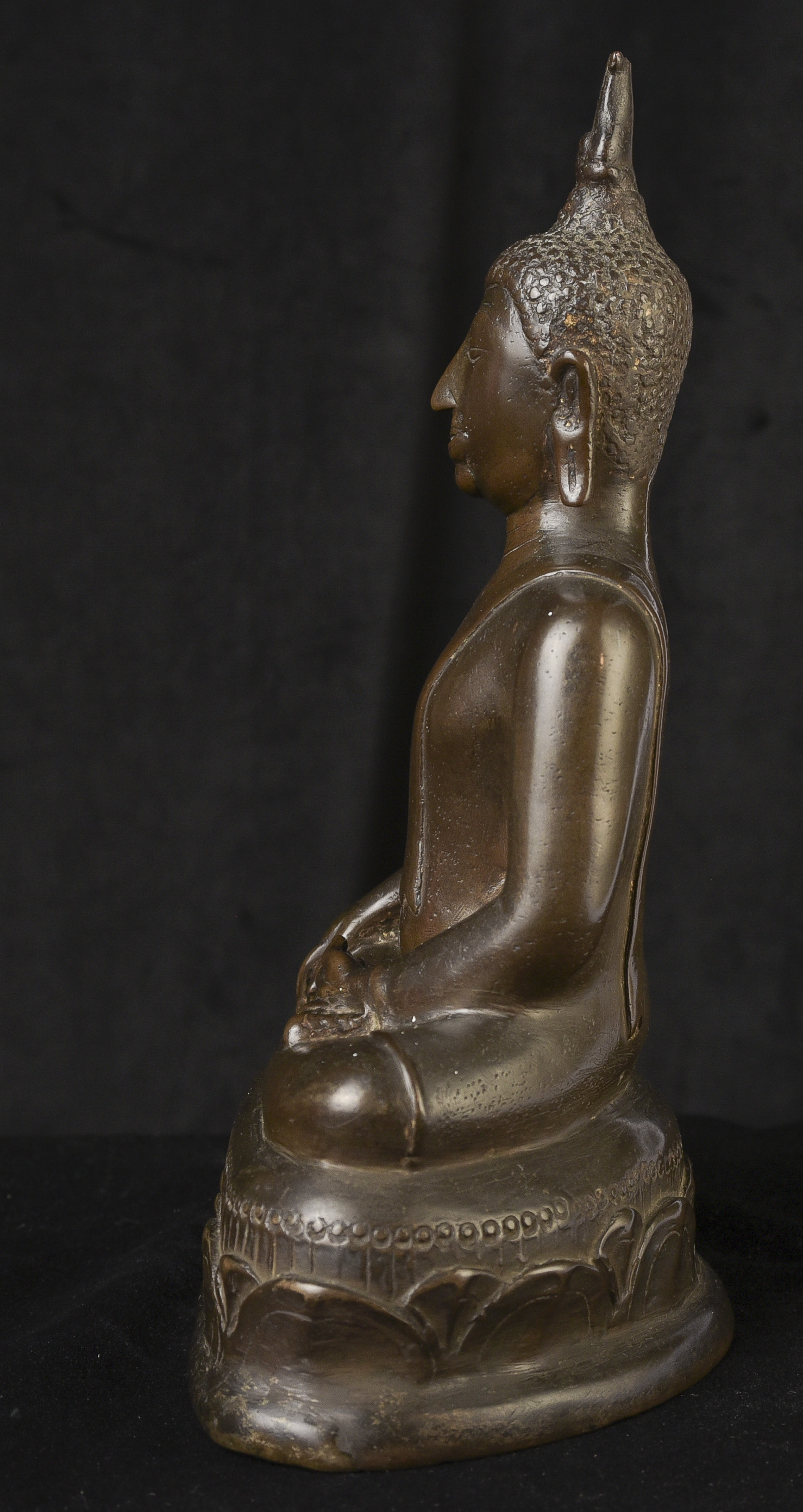 14/15thC Northern Sukhothai Buddha. This is one of my favorite styles- the joy that radiates from the expressive face is strong and inspirational. The way this one has worn makes it much more special. Nice simple lotus form base. In 30 years I've run across only 2 or 3 of this type that were of comparable quality, age, size, and that had worn in such an exquisite way. The last one was more than 10 years ago. (9.5"H x 7"W x 4"D) - 5.48lbs