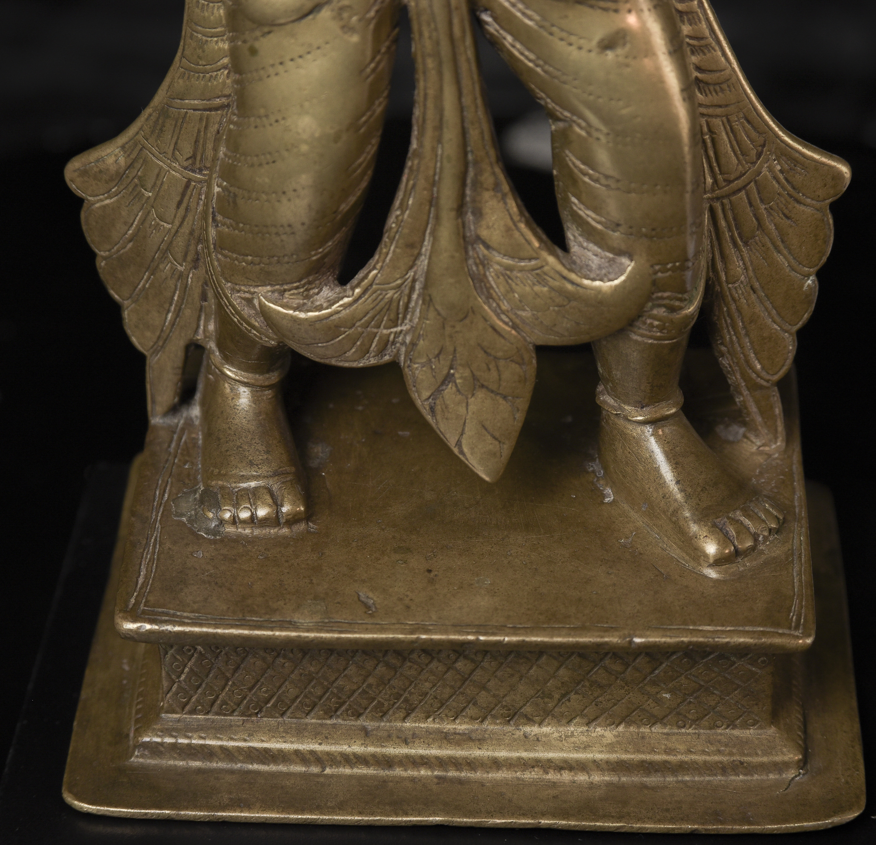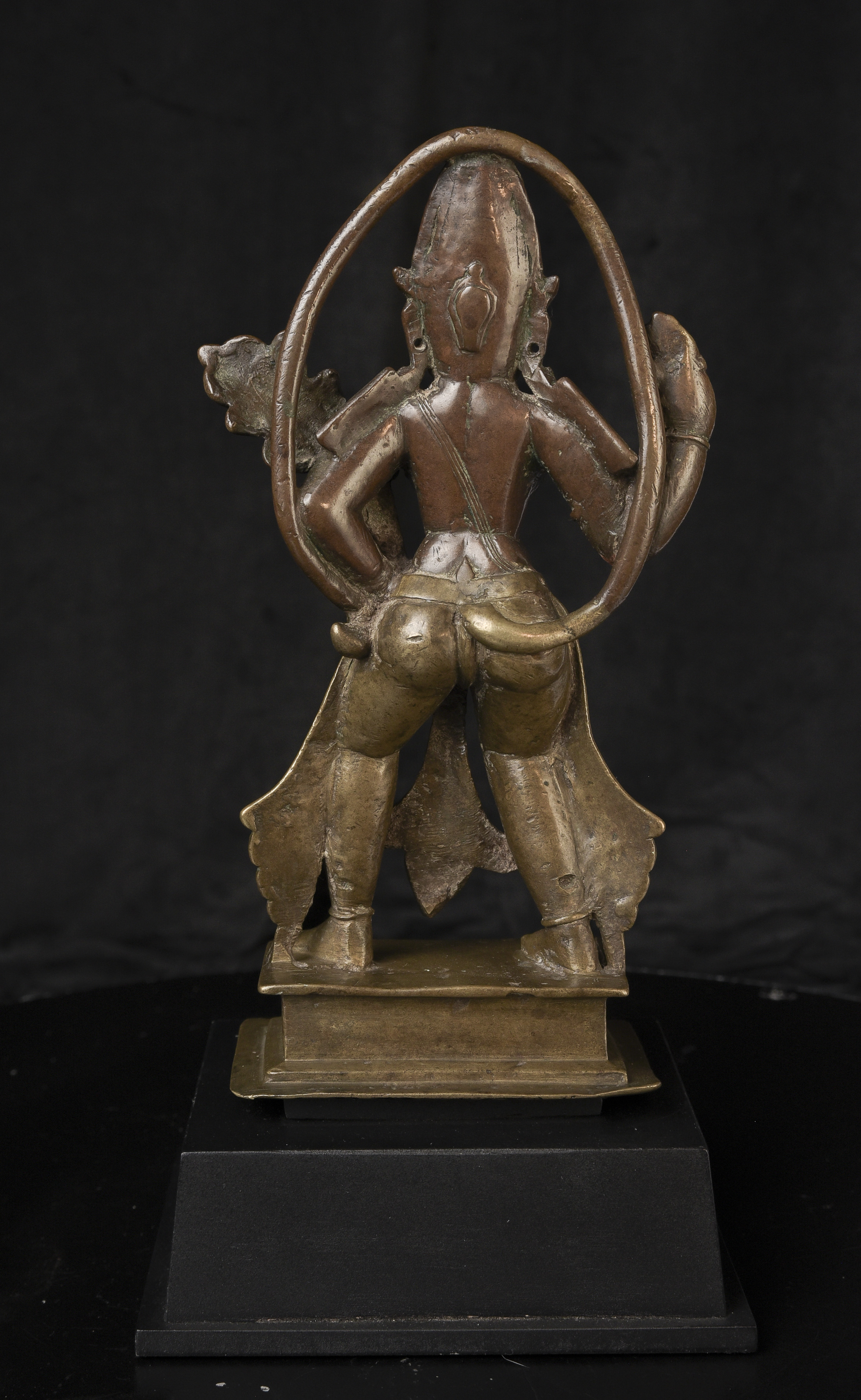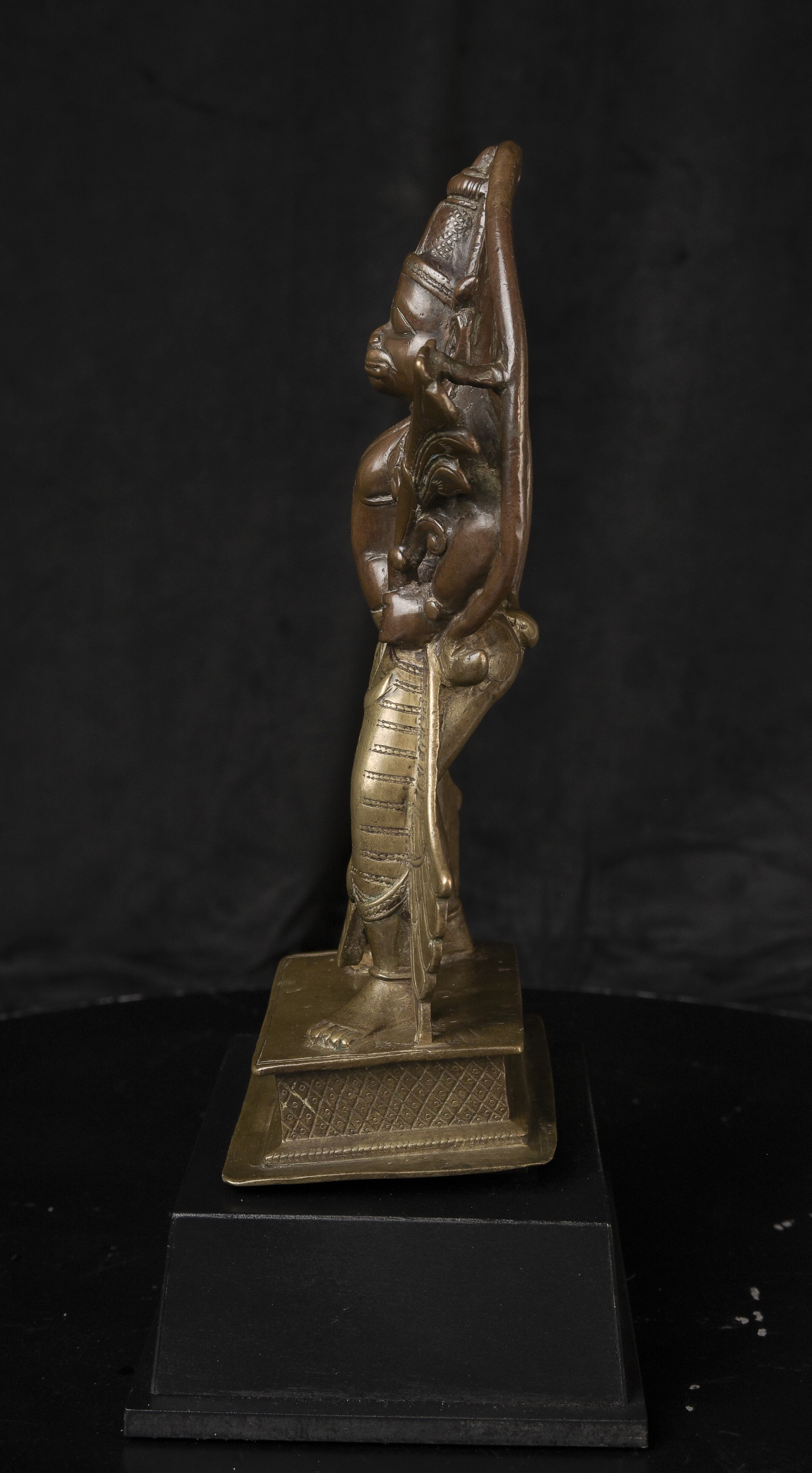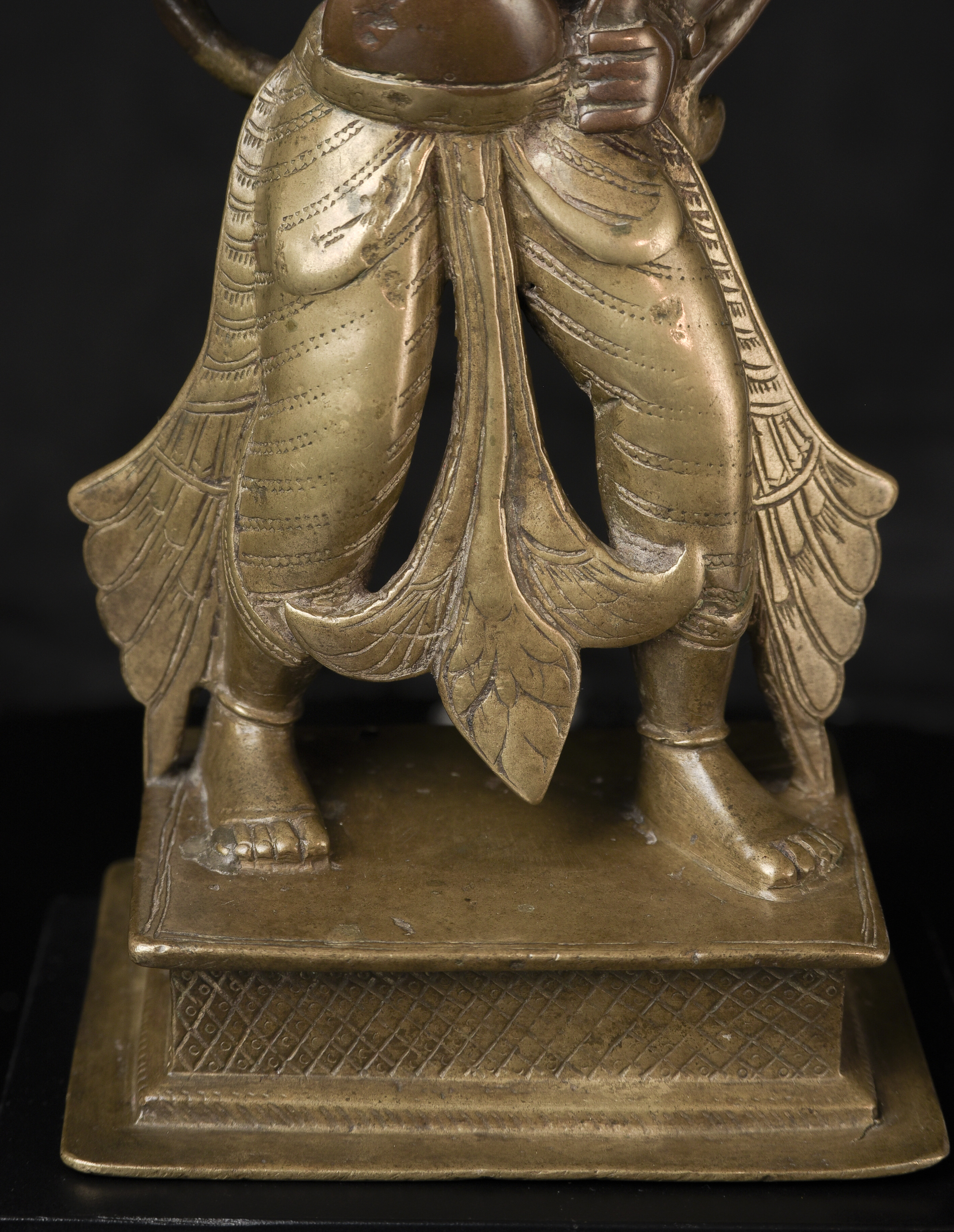 Best Hanuman I have found in 20+years 18thC, and from the estate of an "British titled gentleman". Bi-metal technique. ( 8.5"H x 4.5"W x 2.75"D ) - 3.64lbs. // Base: ( 1.75"H x 5.5"W ) 1lbs. He has an elegance to him that elevates him to a category of the very best of type. The only Hanuman sculptures that I have seen that were finer were made for temple use.