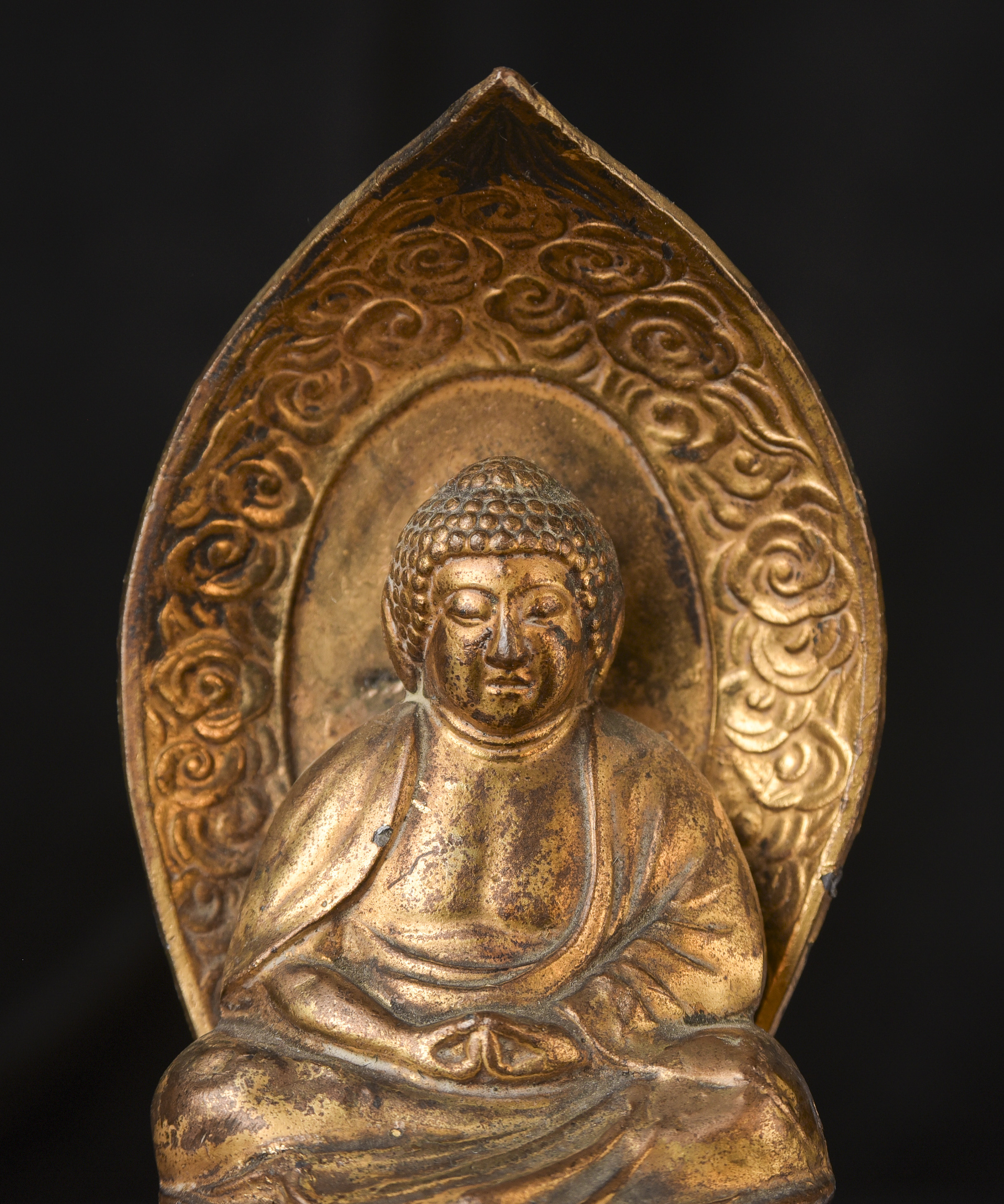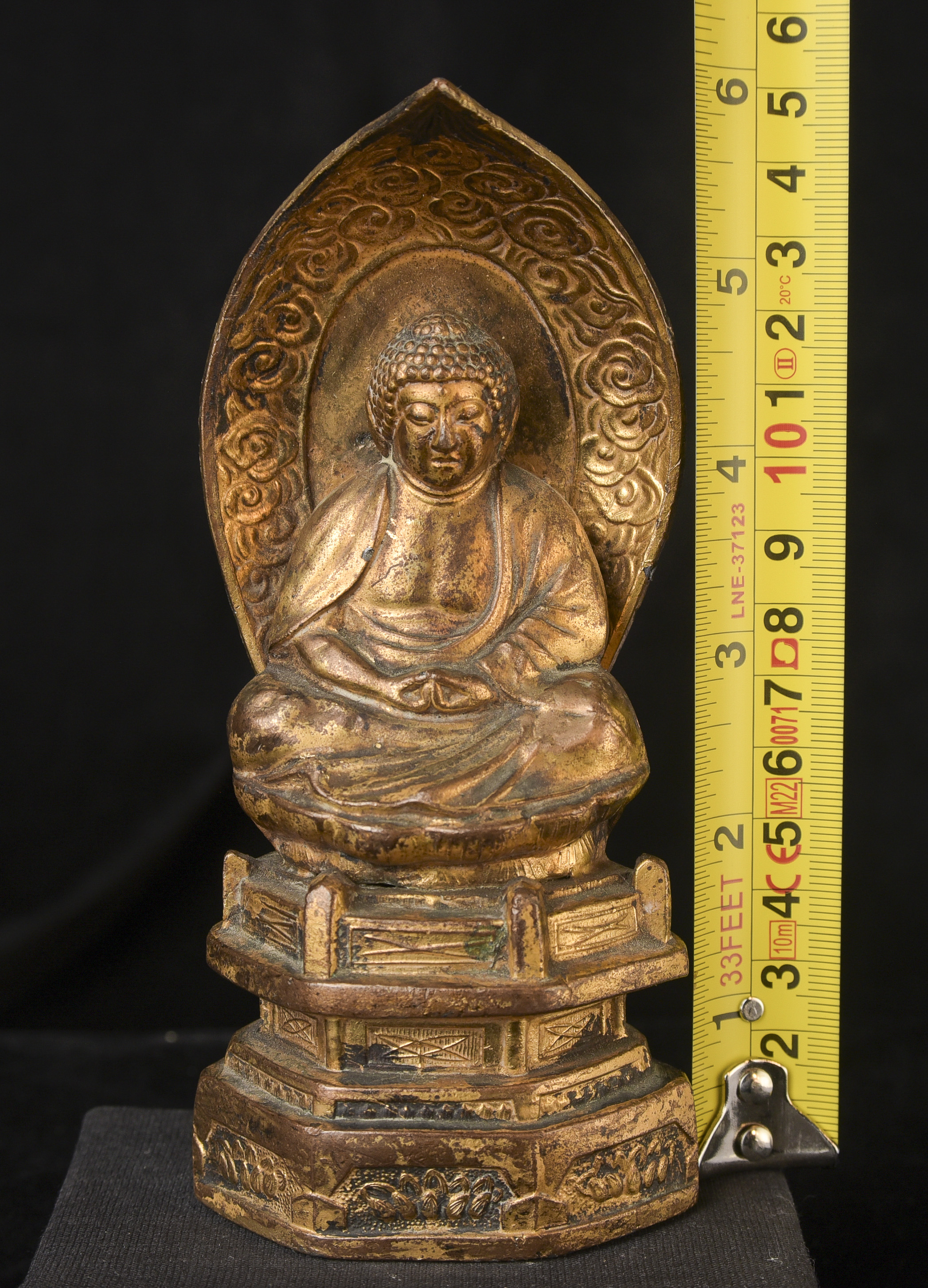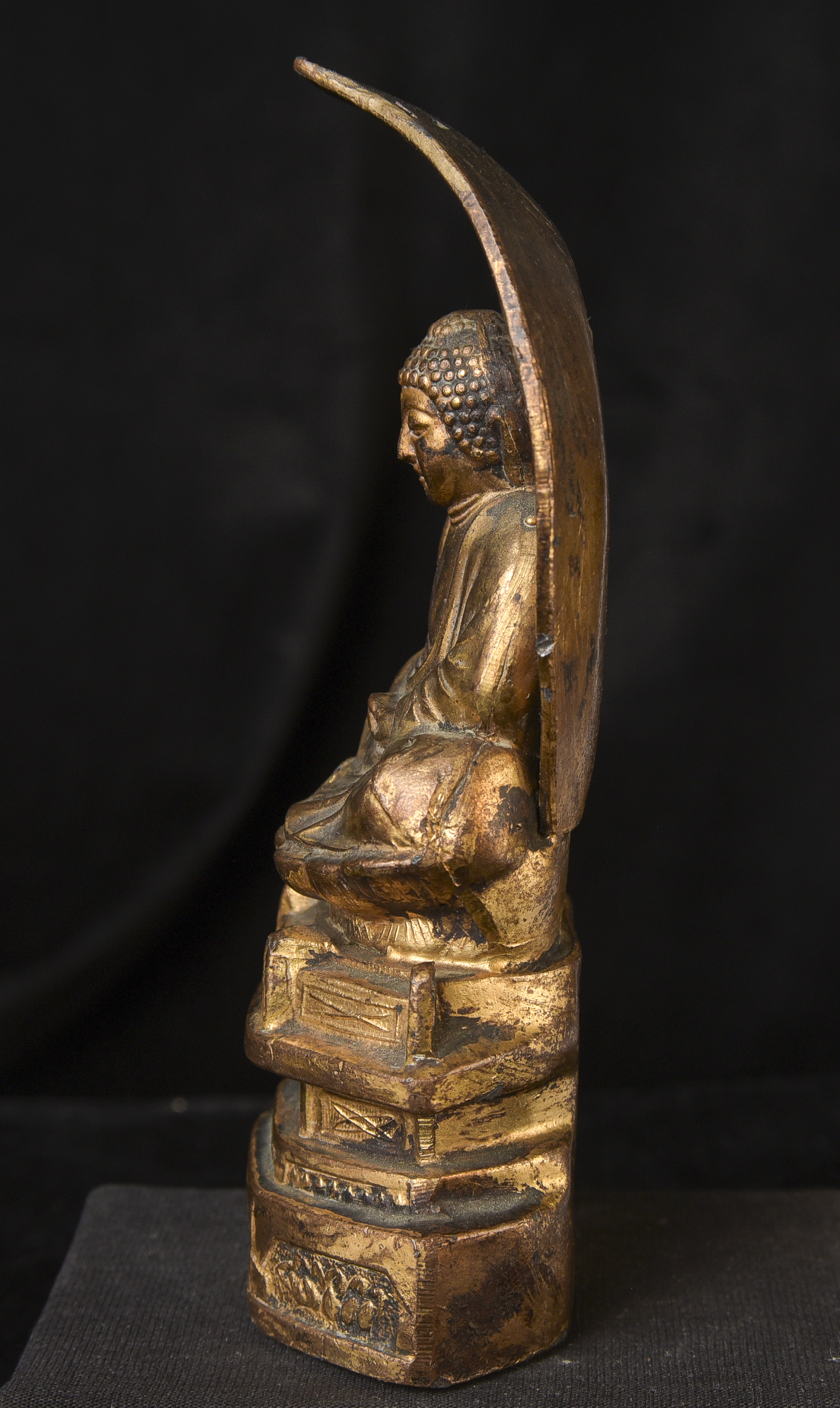 Late 19th/ 20th century Japanese Buddha. Originally would have been in a shrine box.. from a collection of late 19th and early 20th century Japanese Buddha of this type and related ones.- ( 6"H x 2.75"W x 1.5"D ) - 370g.