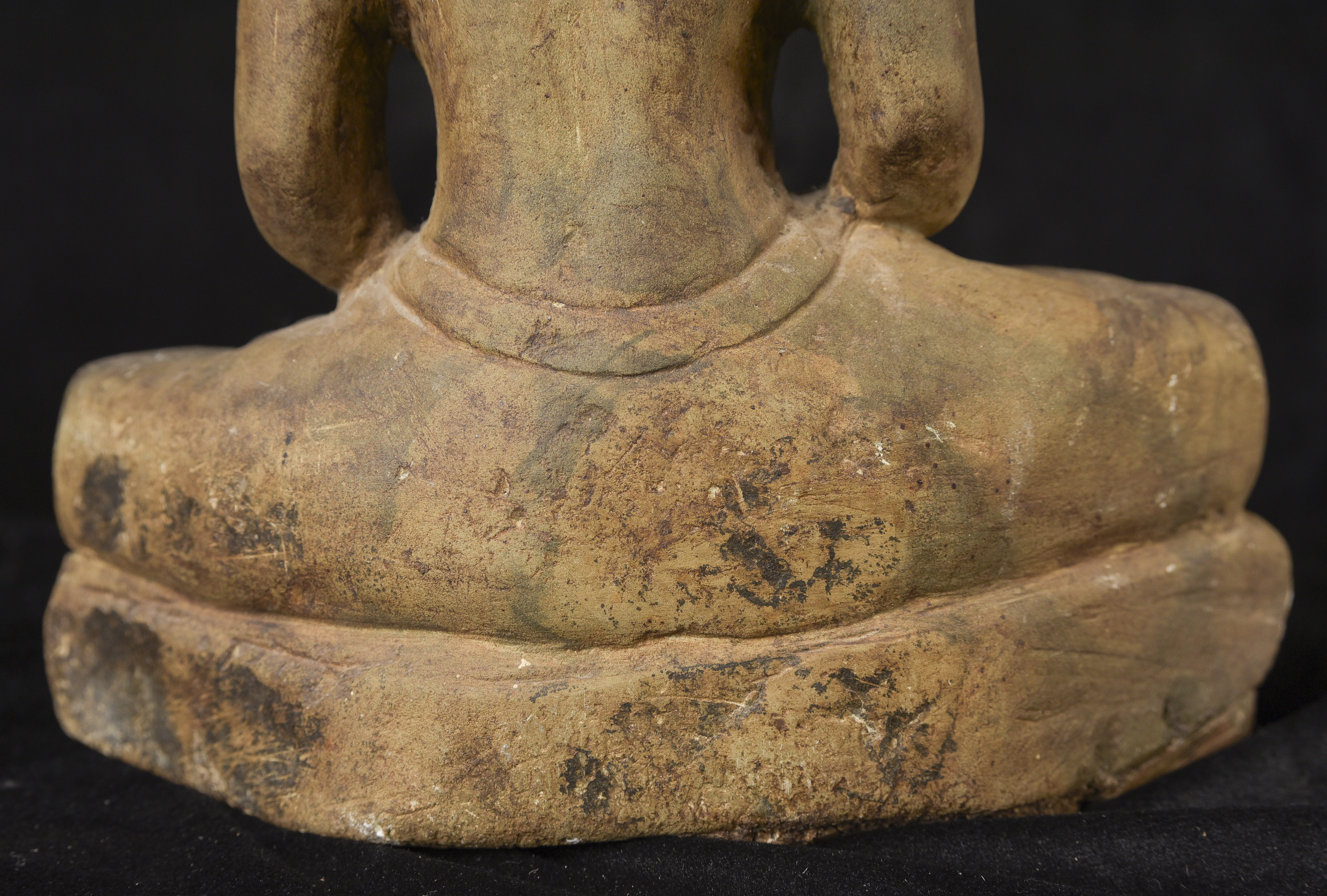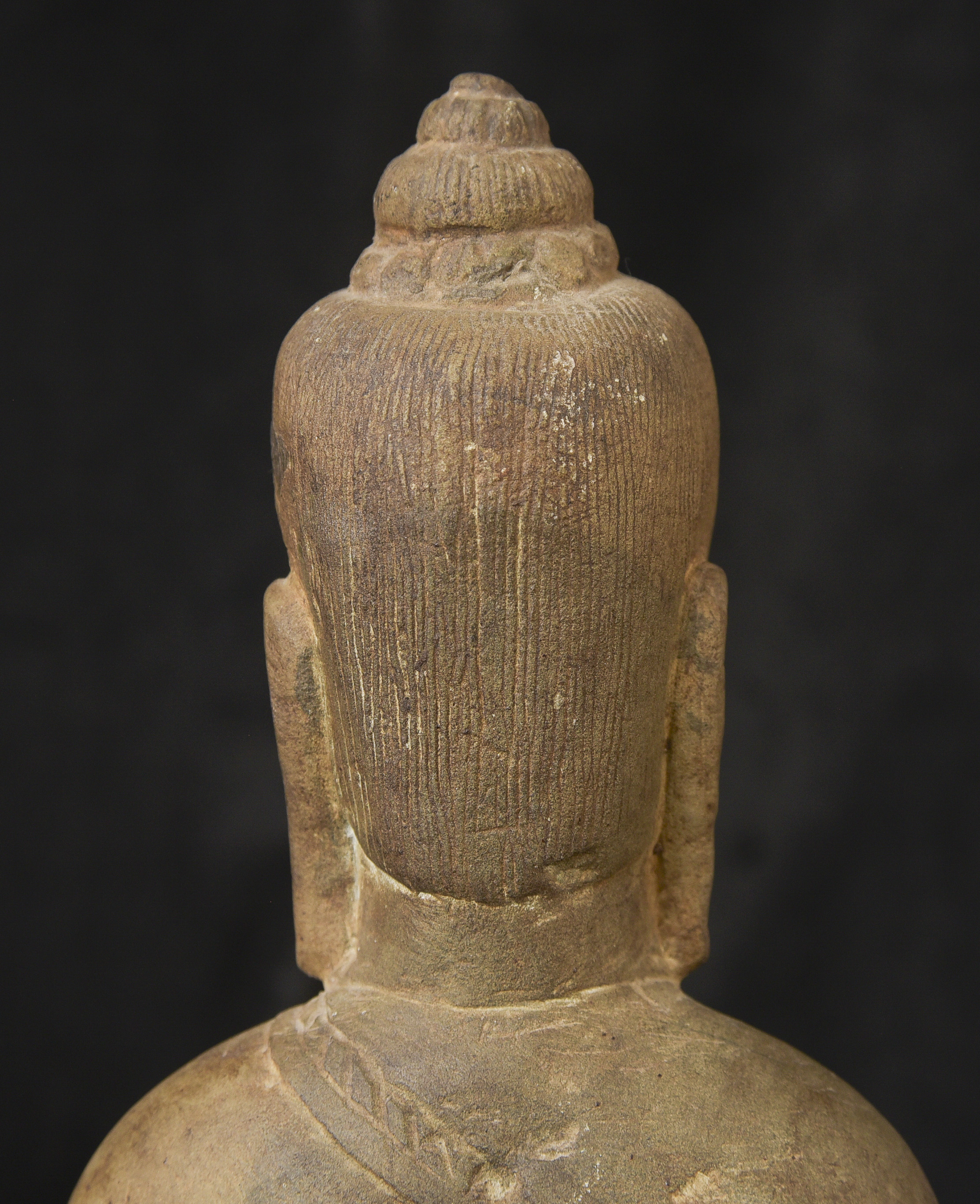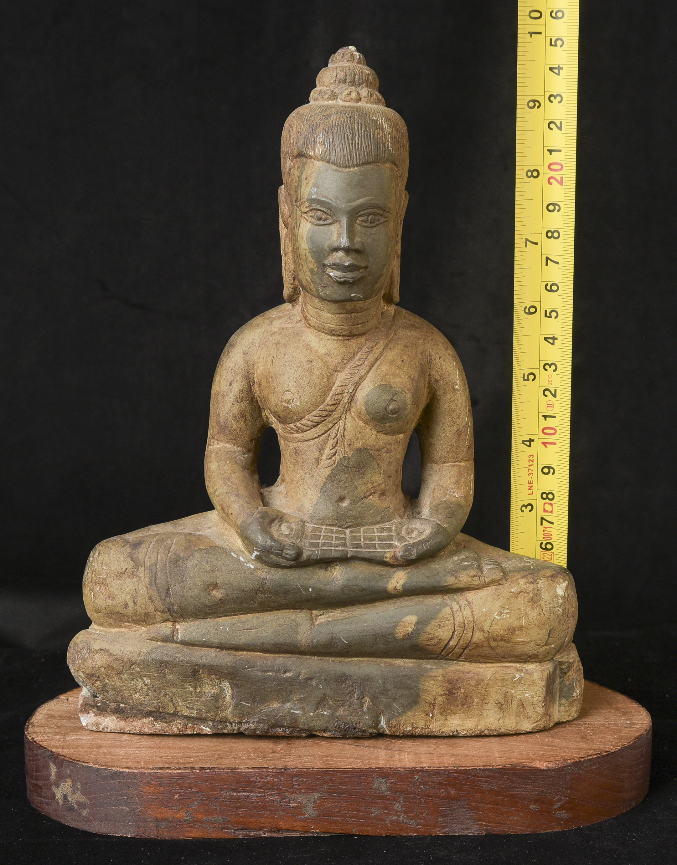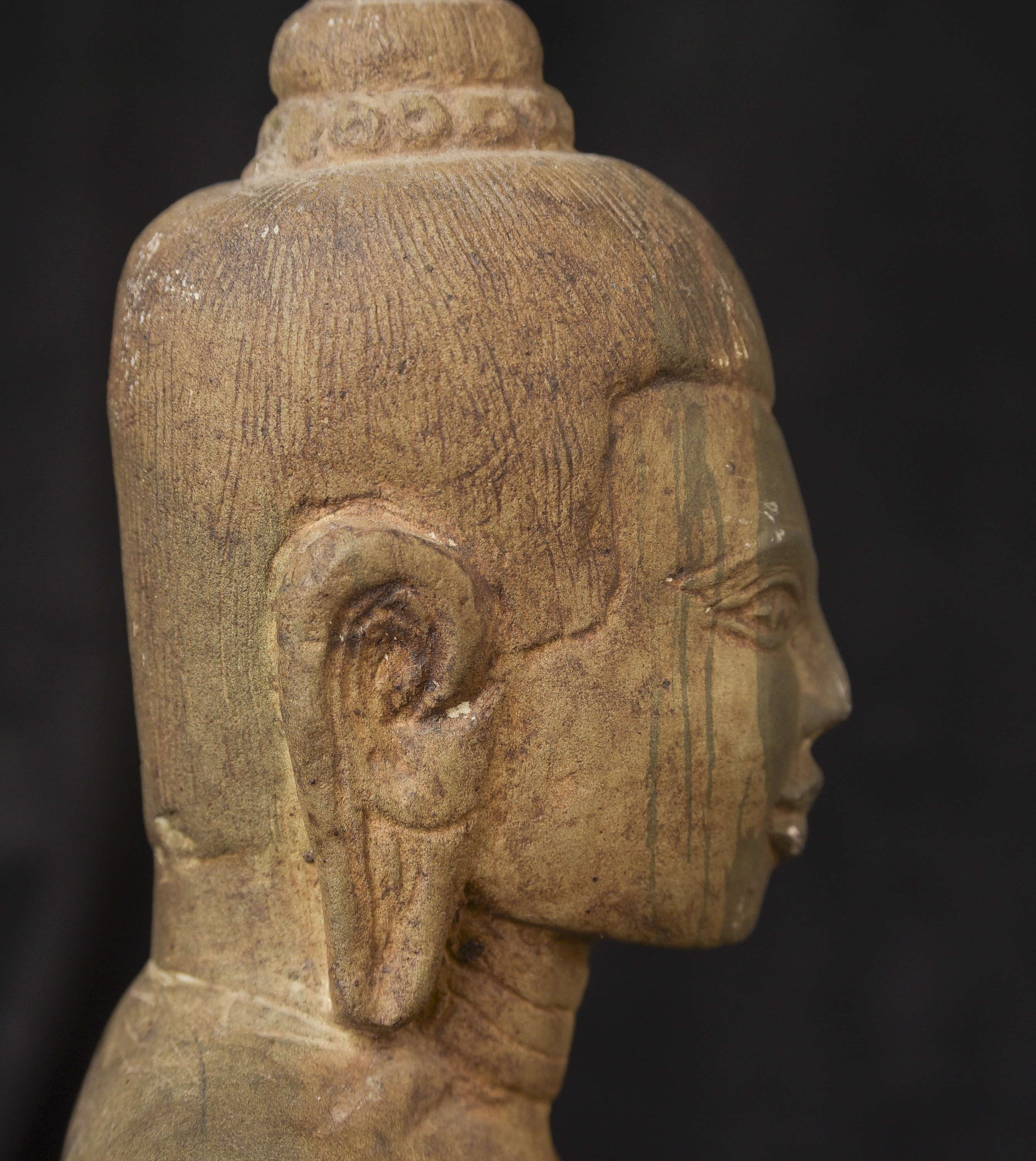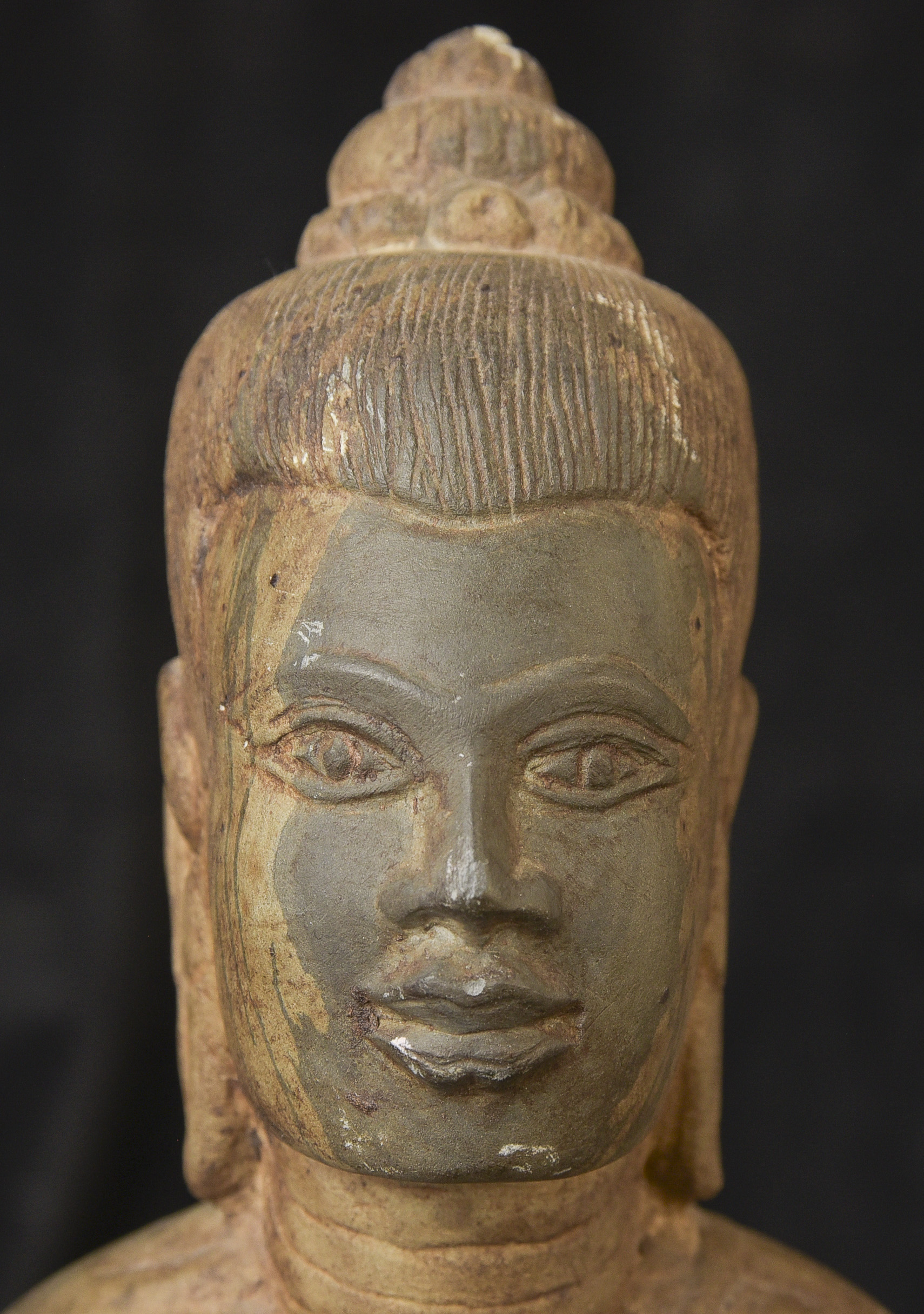 Northern Thai carved stone Buddha- I'm unsure of its age, but it's probably 20thC. Singular personality, sculpted out of a very hard stone - ( 9.5"H x 7.5"W x 3"D ) - 7 lbs. // Base: (9.25"W x 1"H )