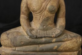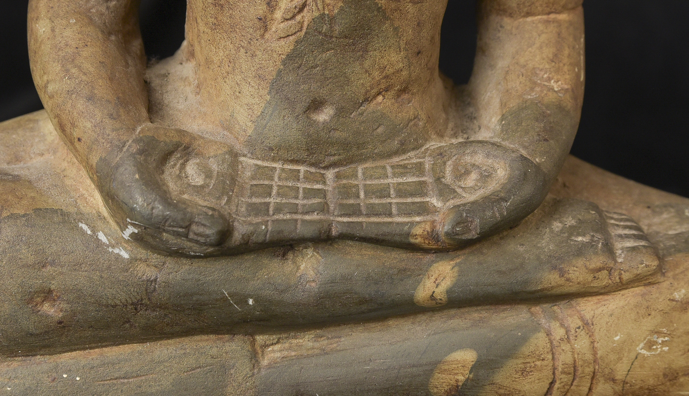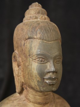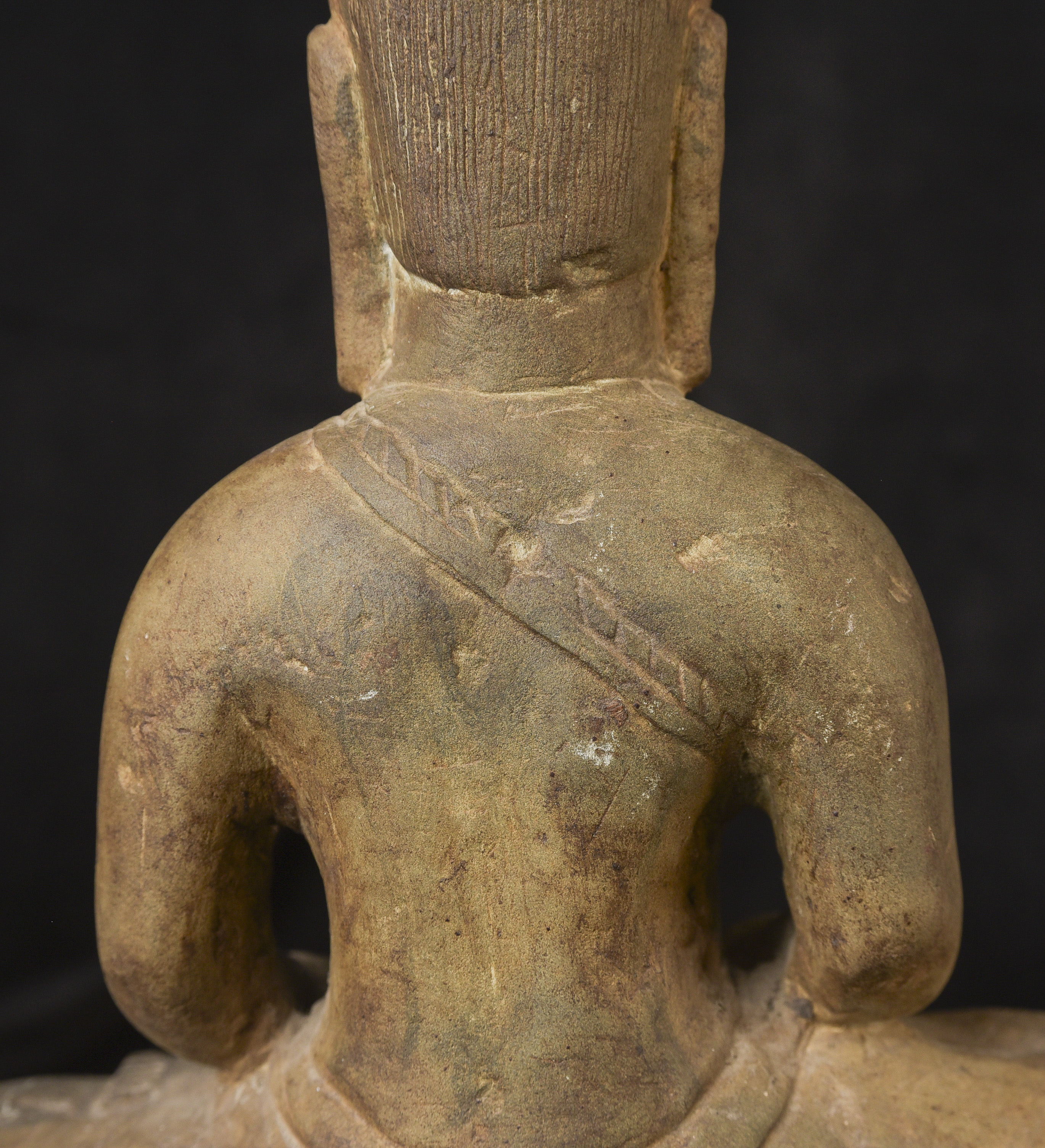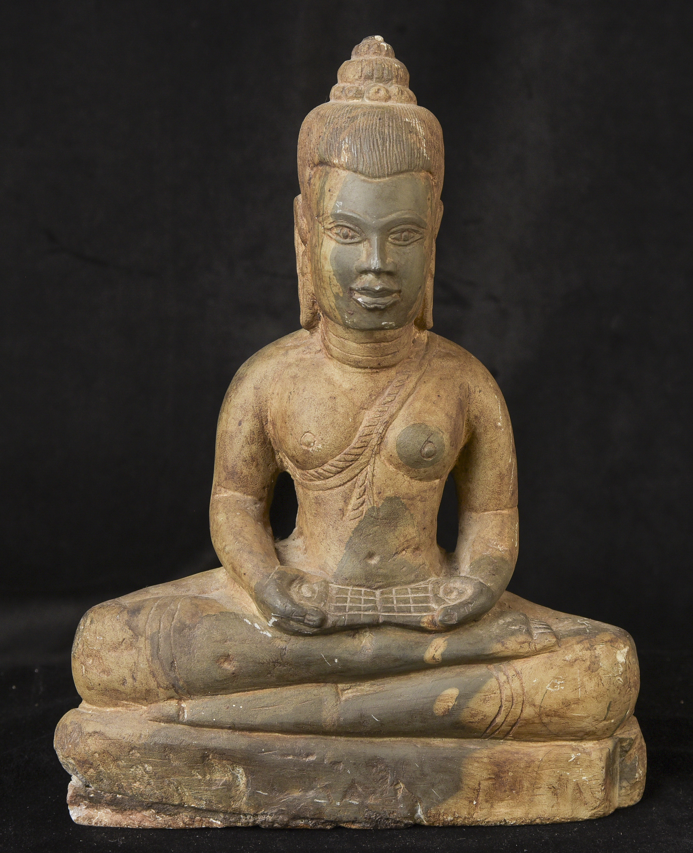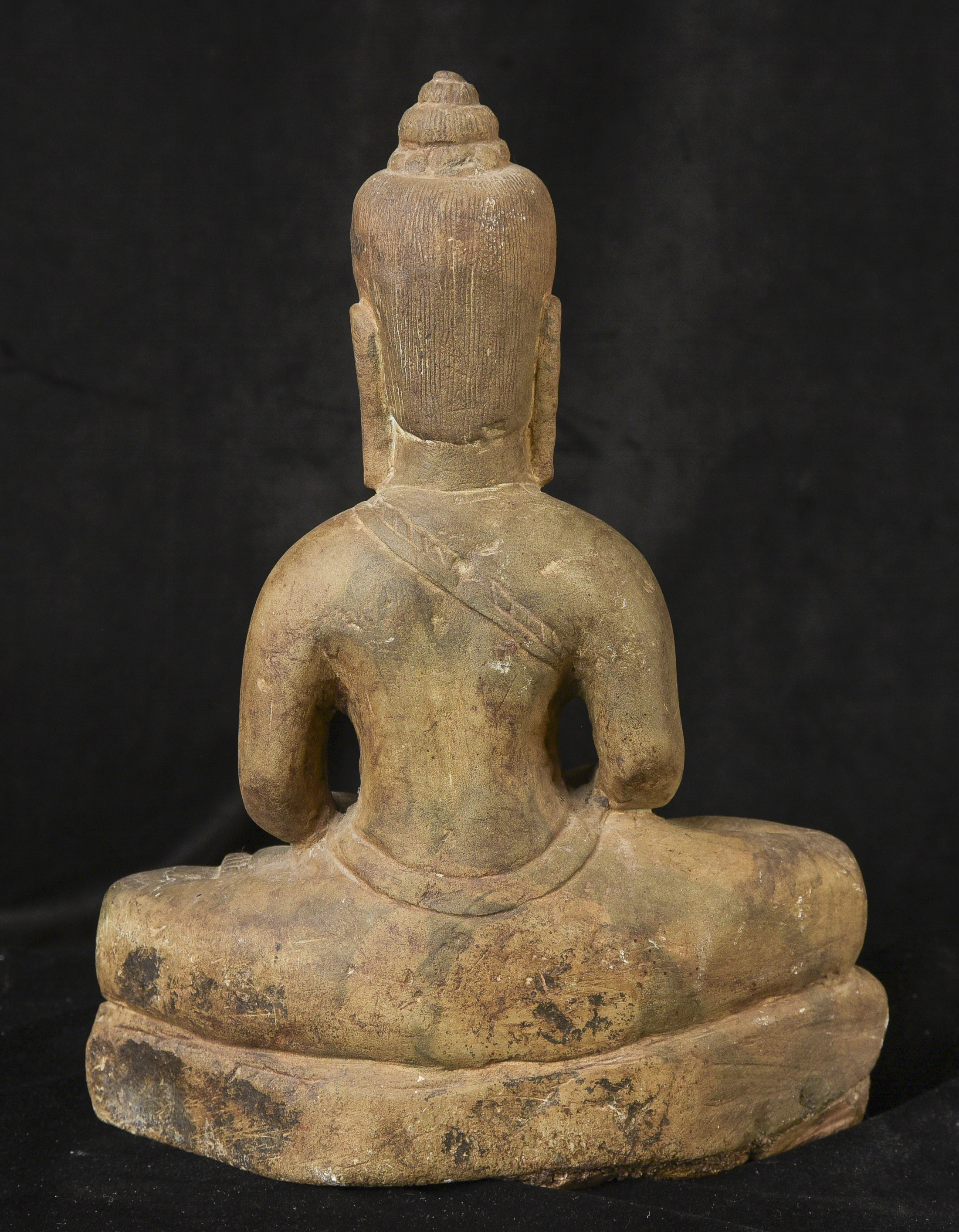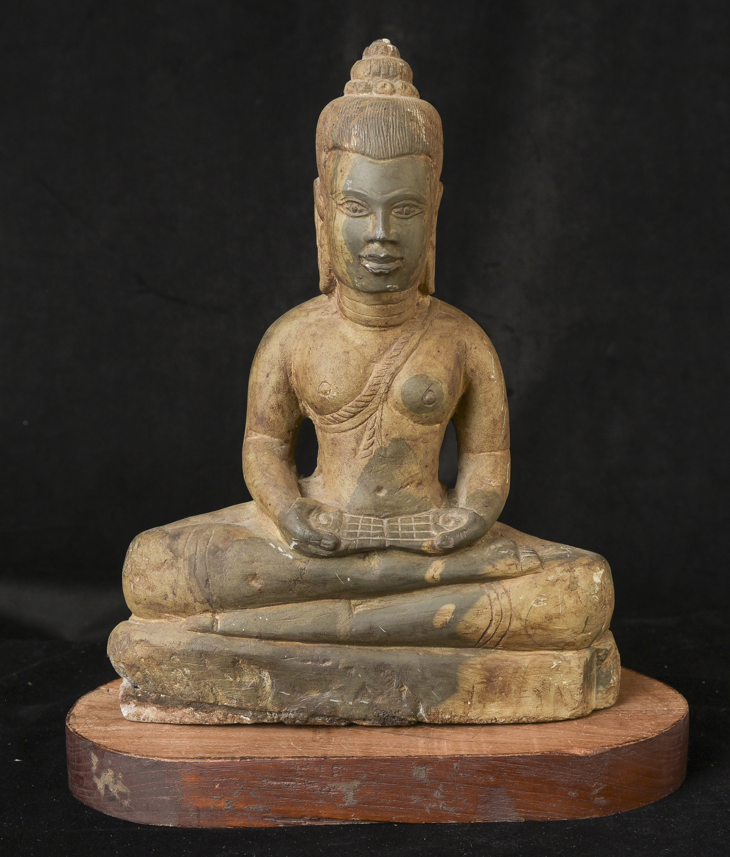 Northern Thai carved stone Buddha- I'm unsure of its age, but it's probably 20thC. Singular personality, sculpted out of a very hard stone - ( 9.5"H x 7.5"W x 3"D ) - 7 lbs. // Base: (9.25"W x 1"H )