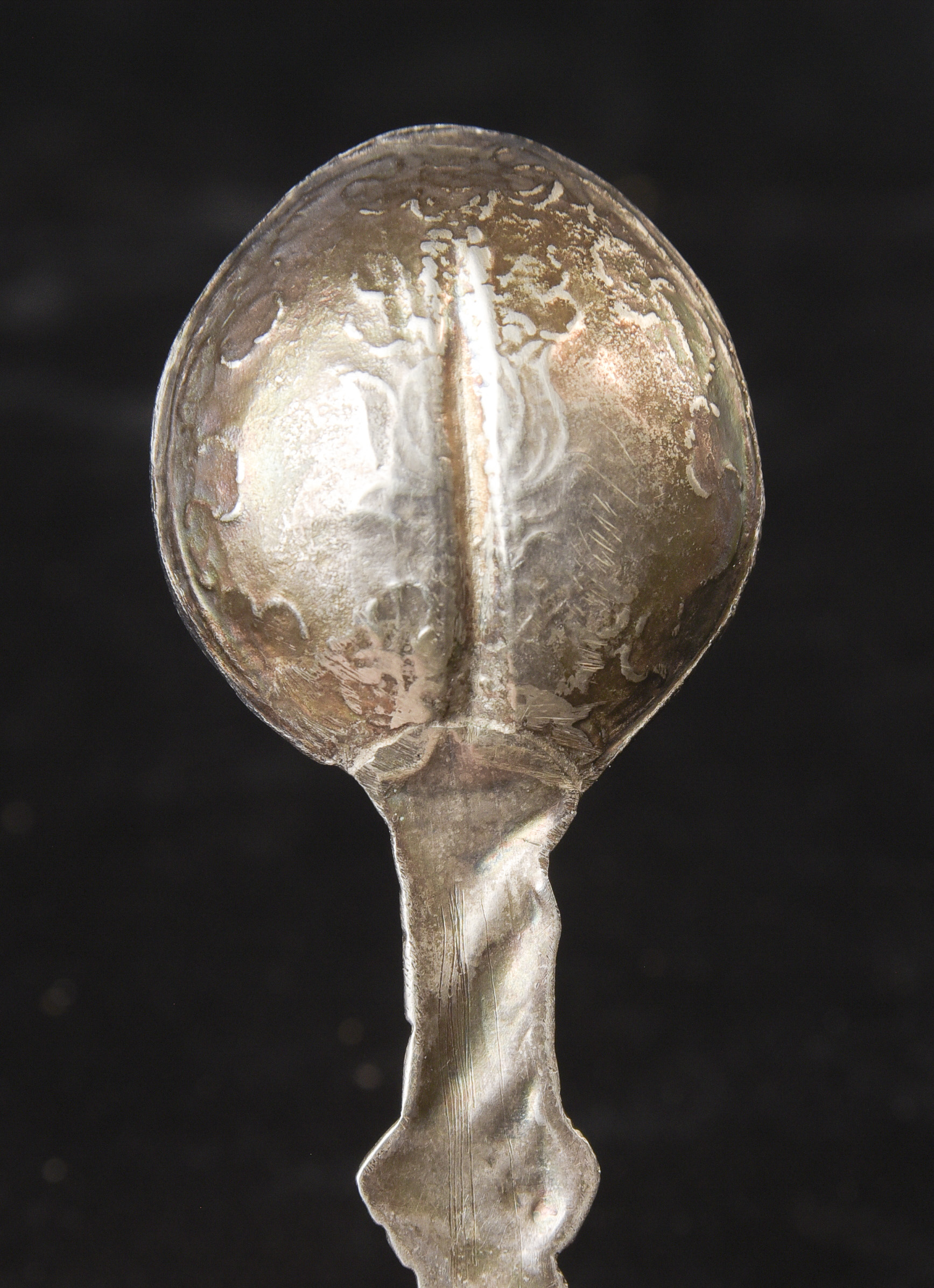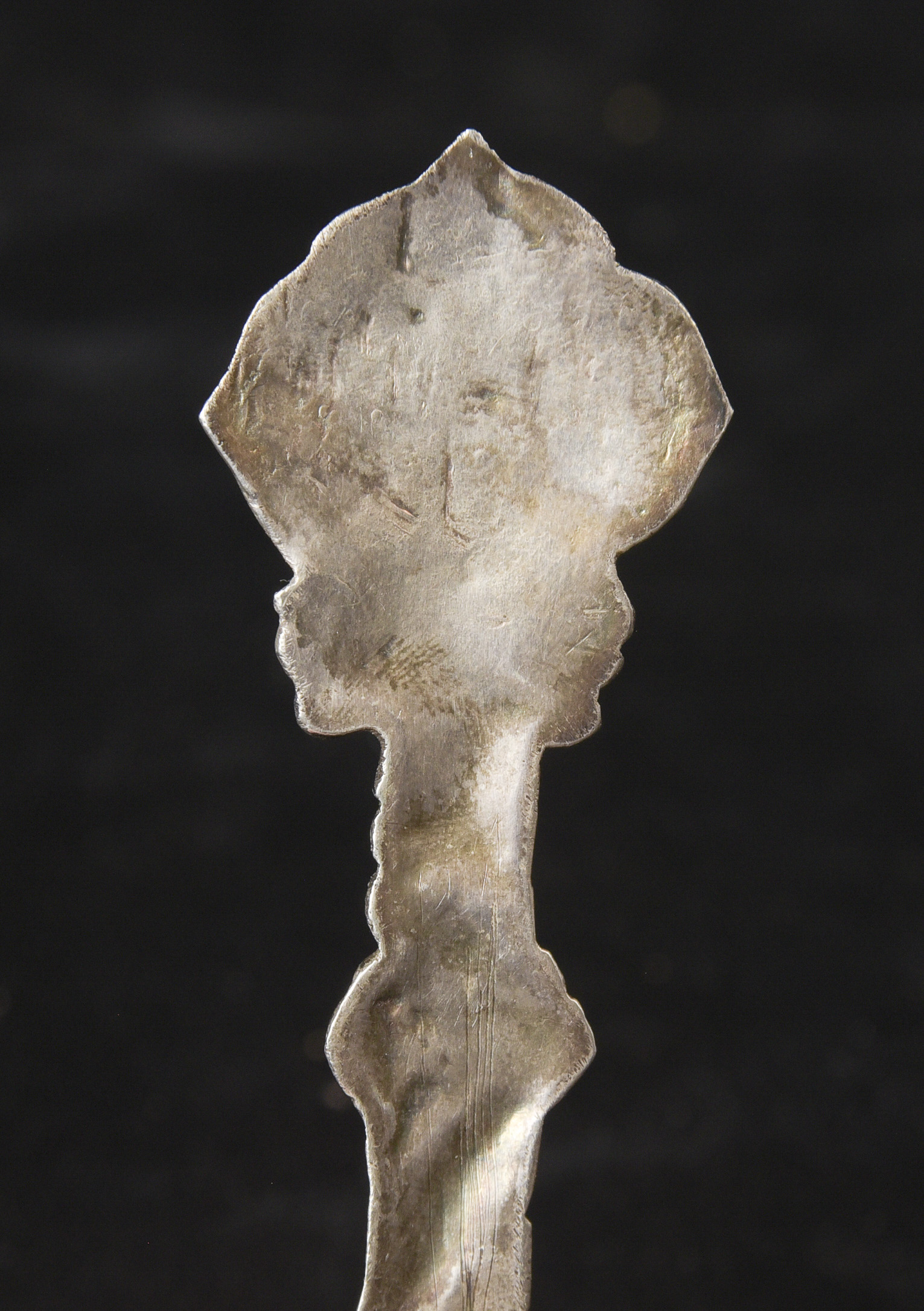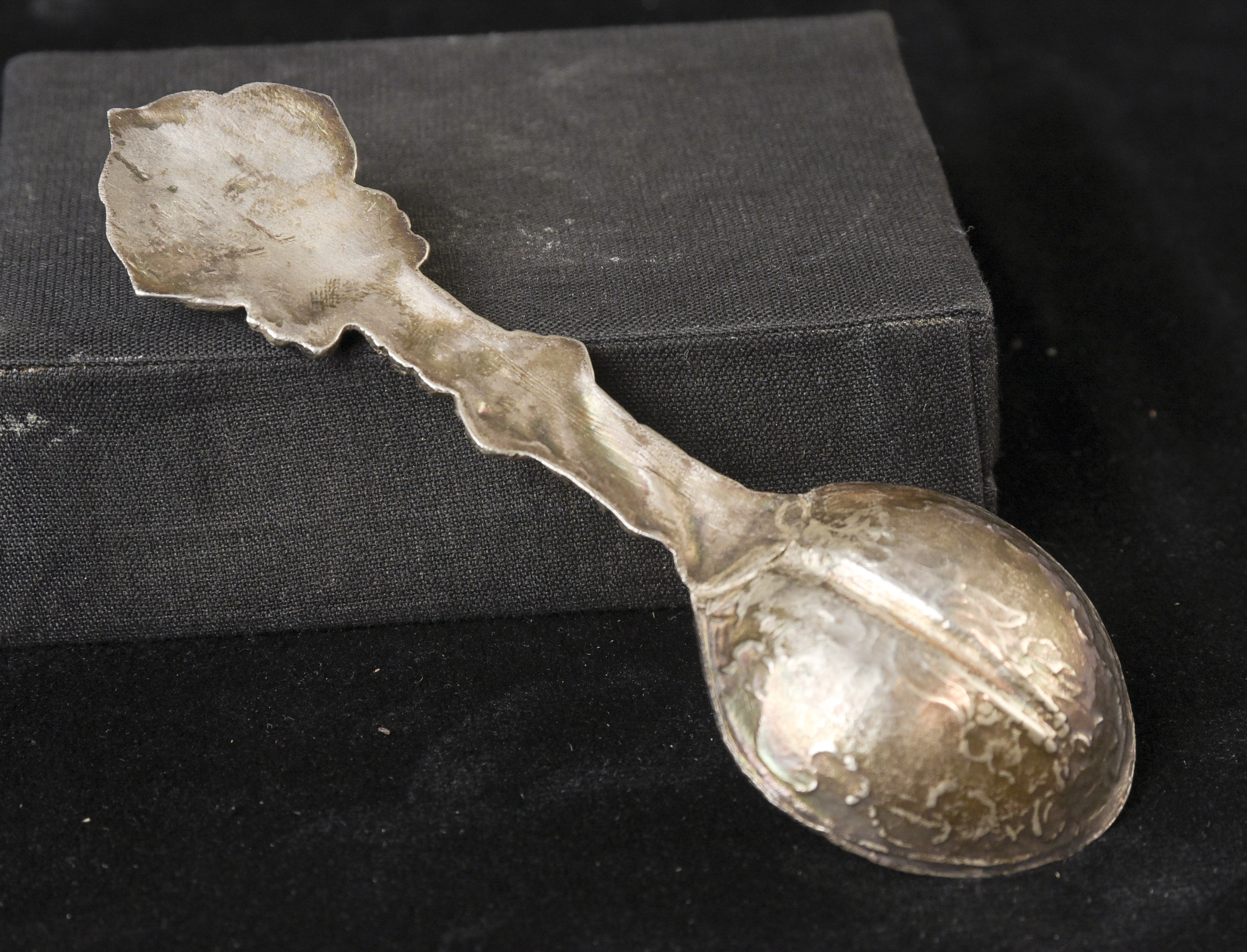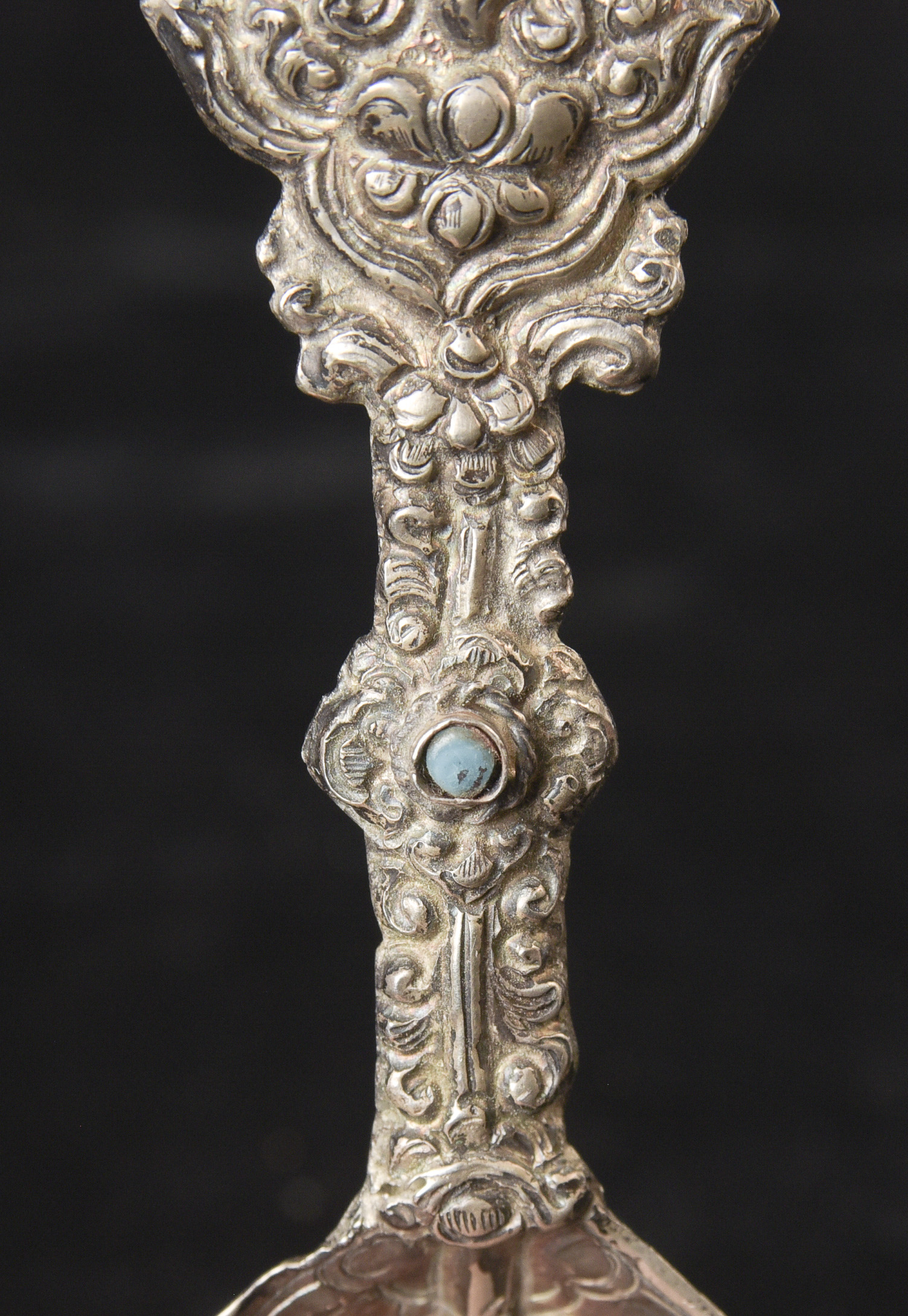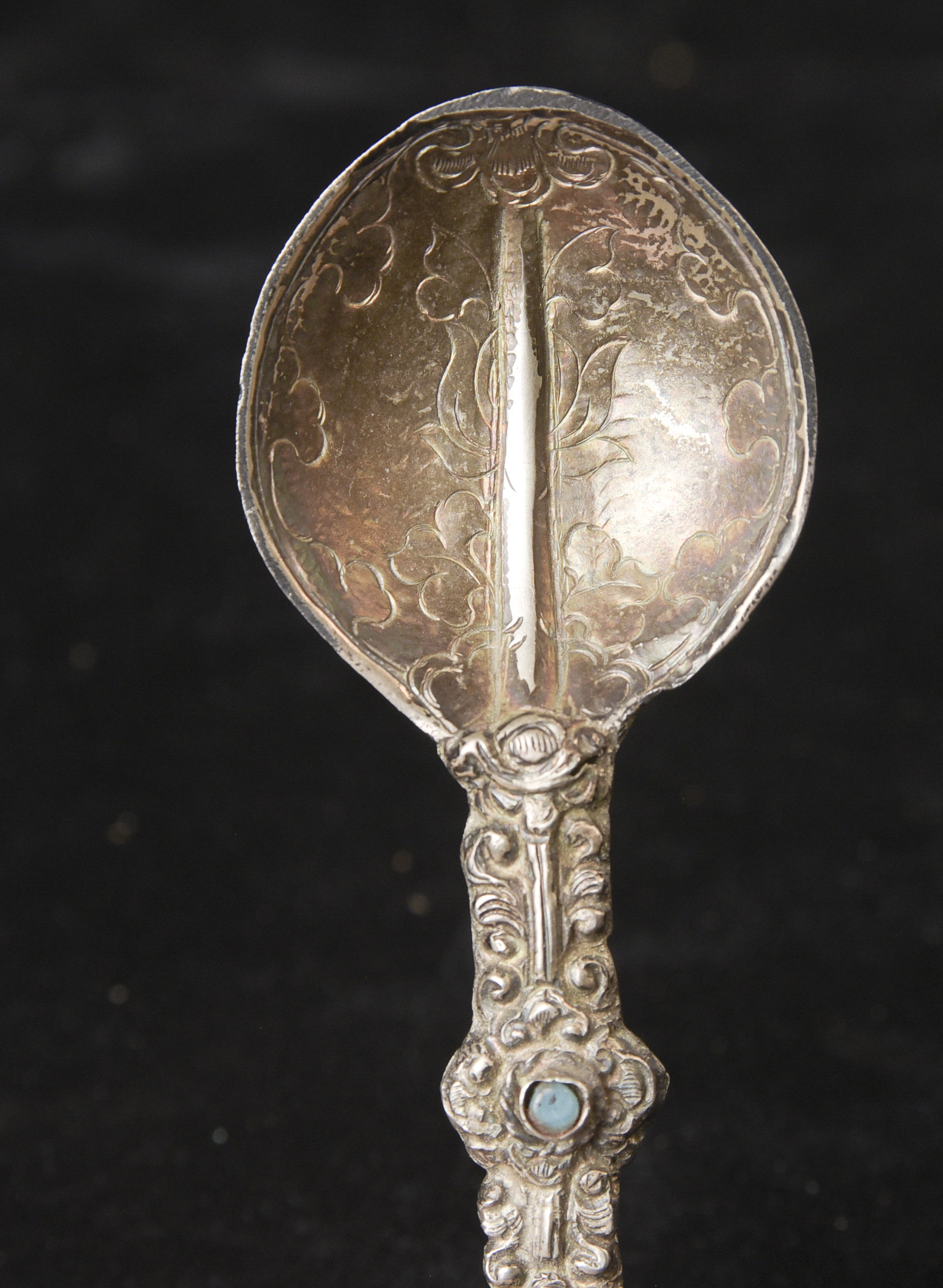 Indian handcrafted silver anointing spoon with in laid stone. Nice example.( 4.75"H x 1.5"W ) - 20.