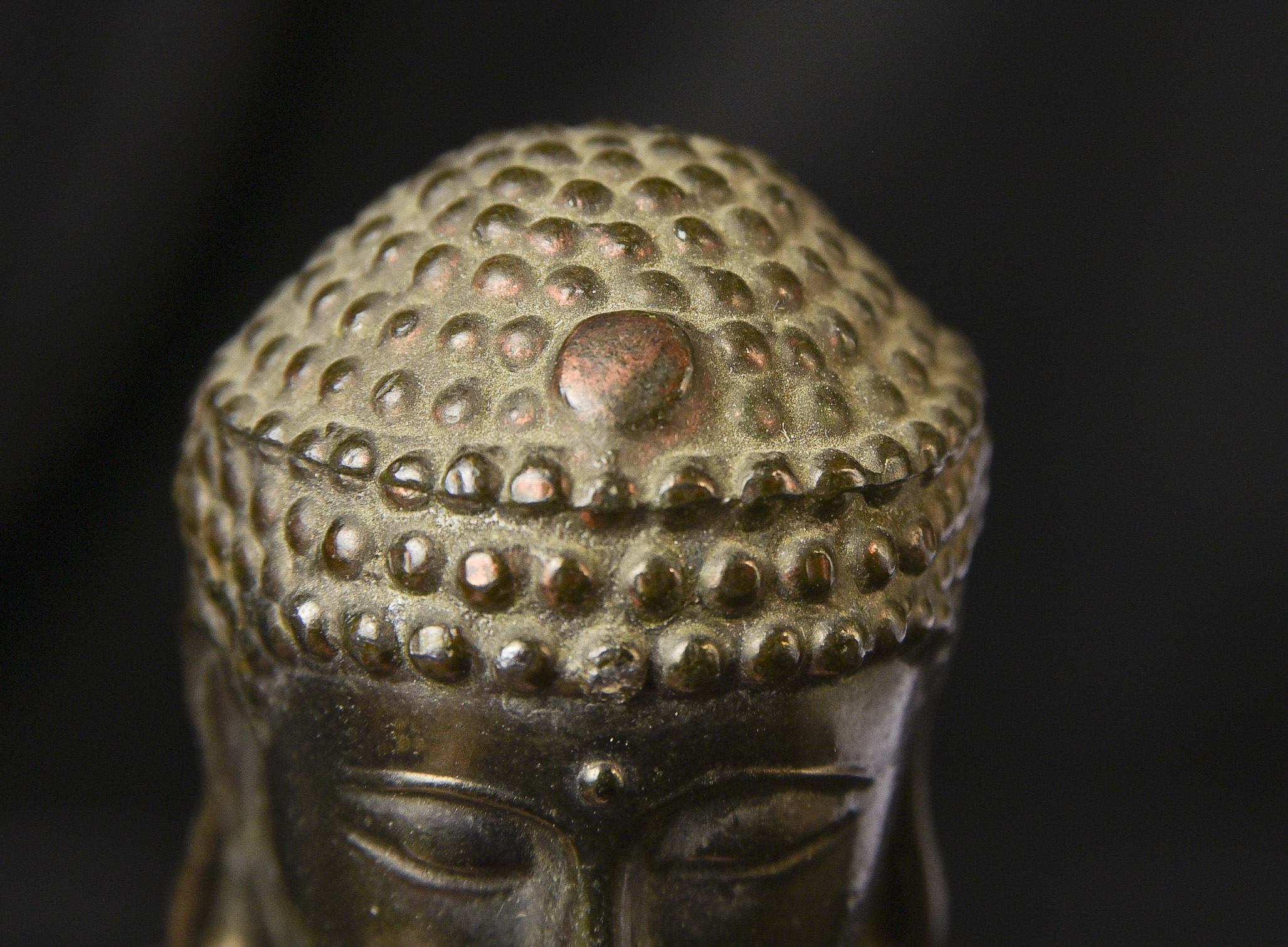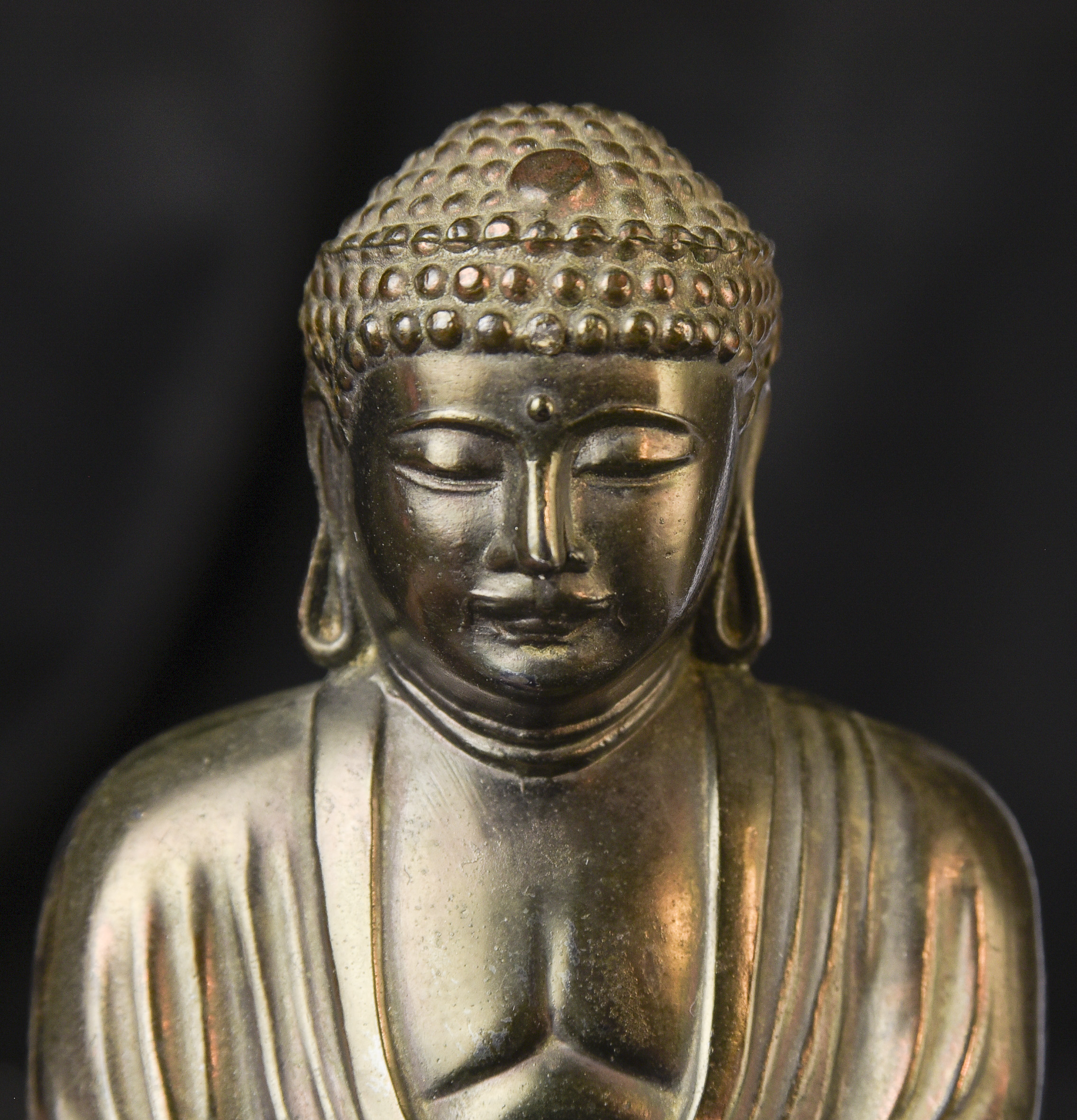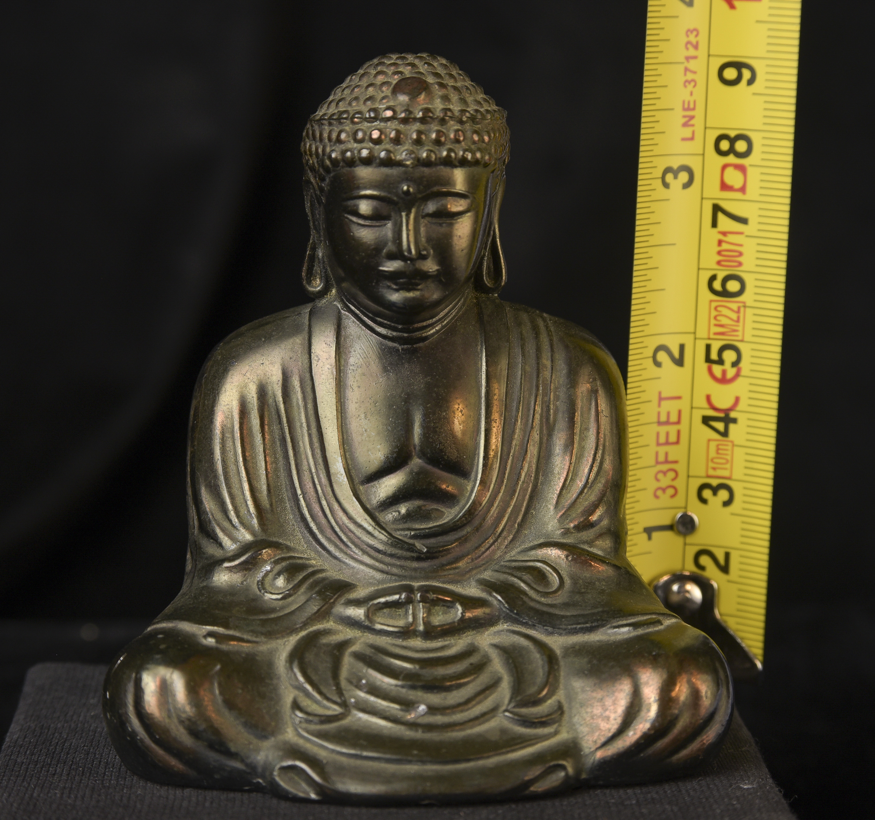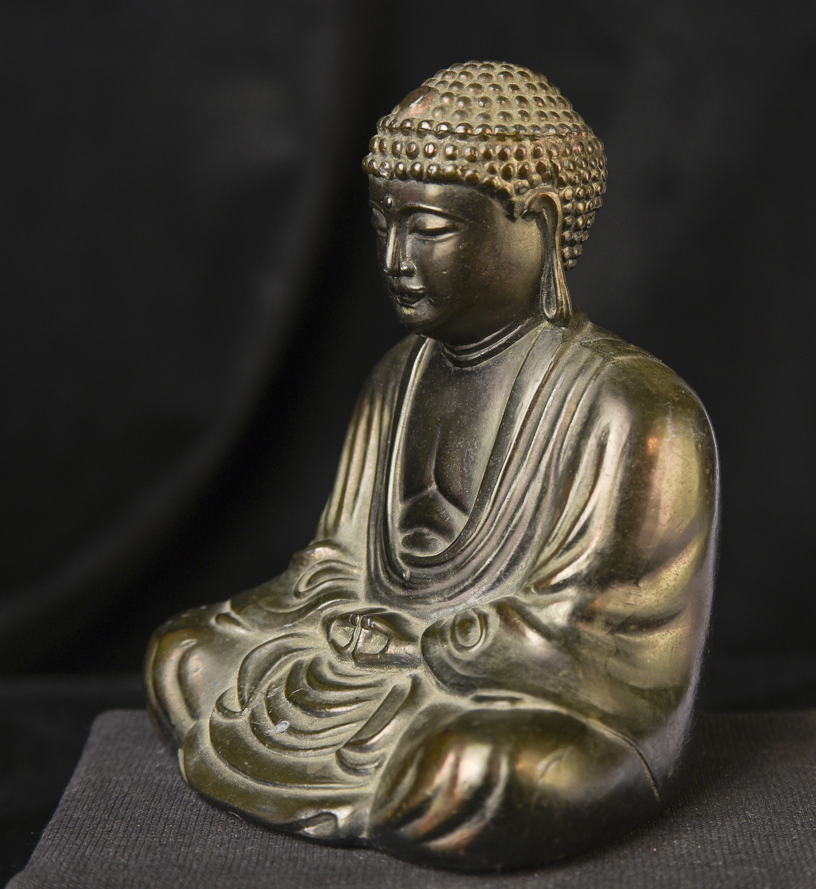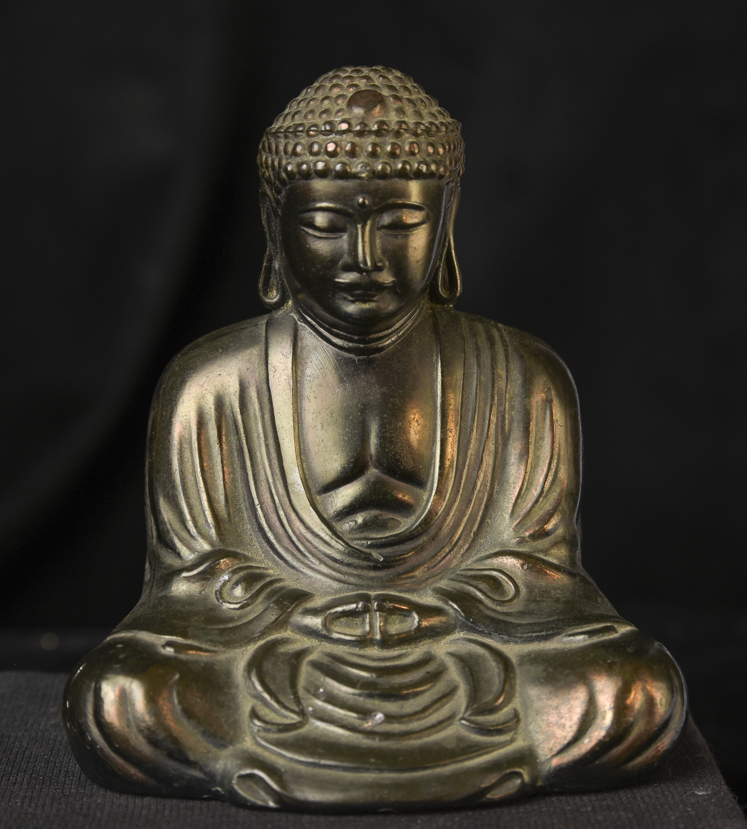 Antique Japanese Bronze Buddha-Approaching 100 years old. Fine example. From a specific temple-see the underside. ( 3.5"H x 3"W x 2.5"D ) - 230g.