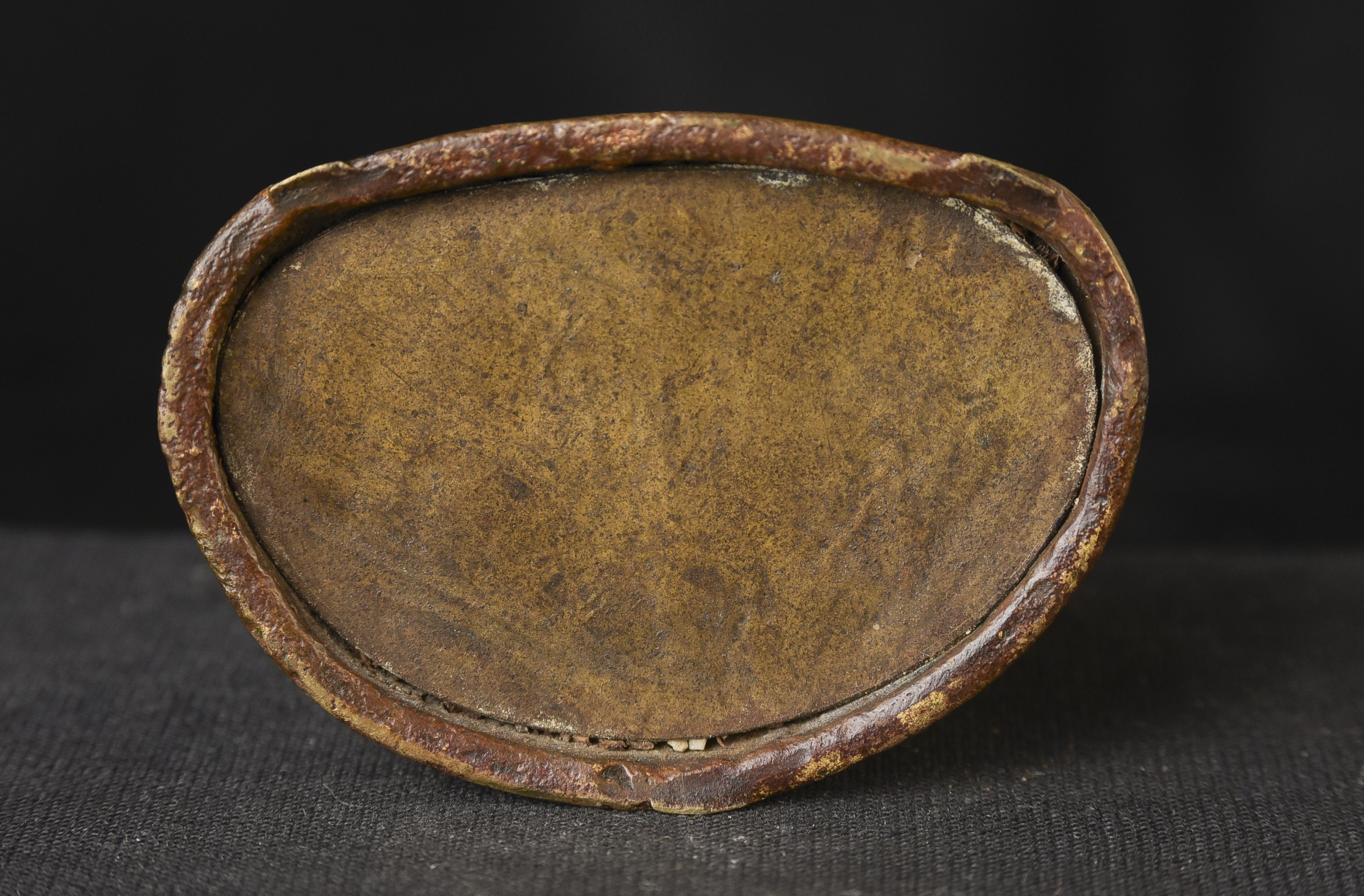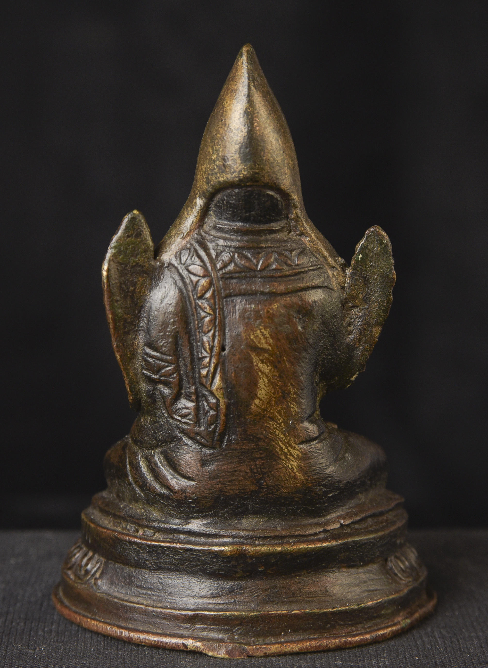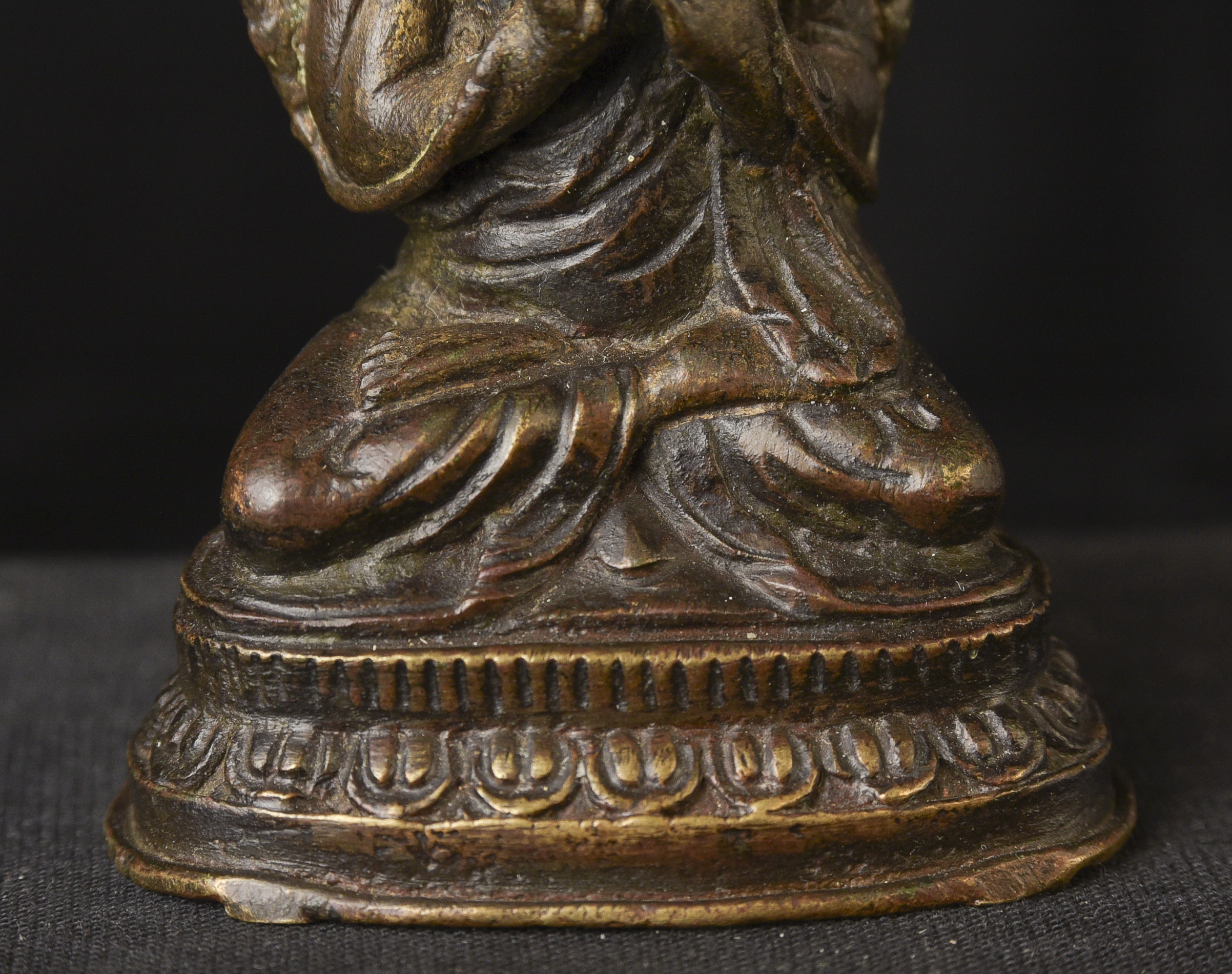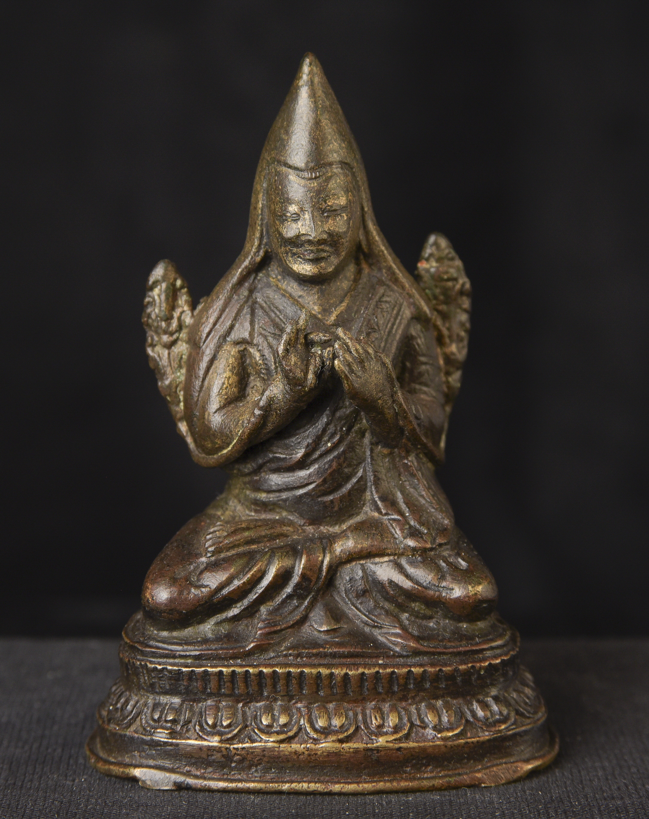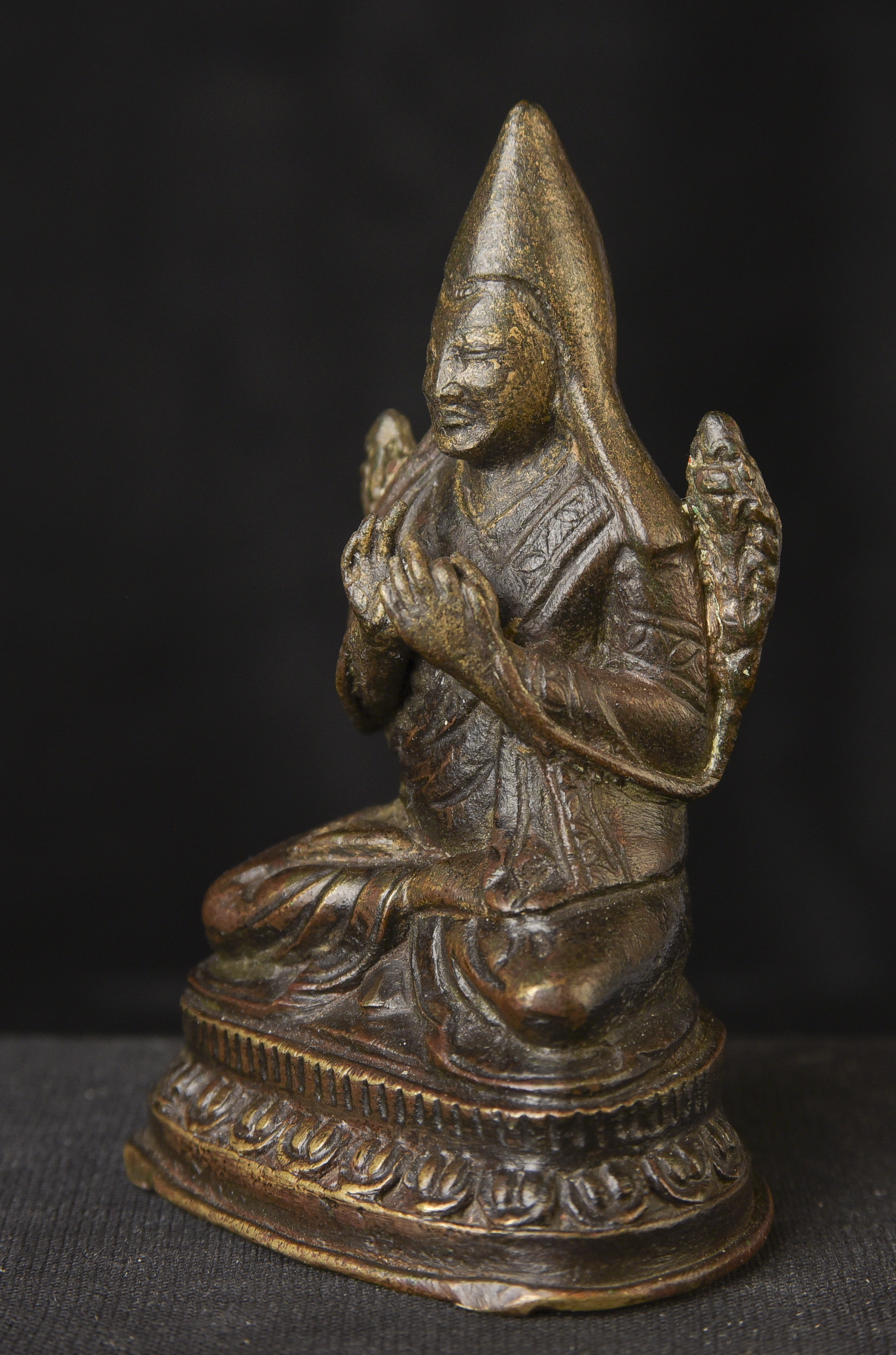 Early Tibetan Bronze Tsong-ka-pa. Sits 3 1/8 inches tall. Compelling Face. ( 3.25"H x 2.25"W x 1.5"D ) - 125g.