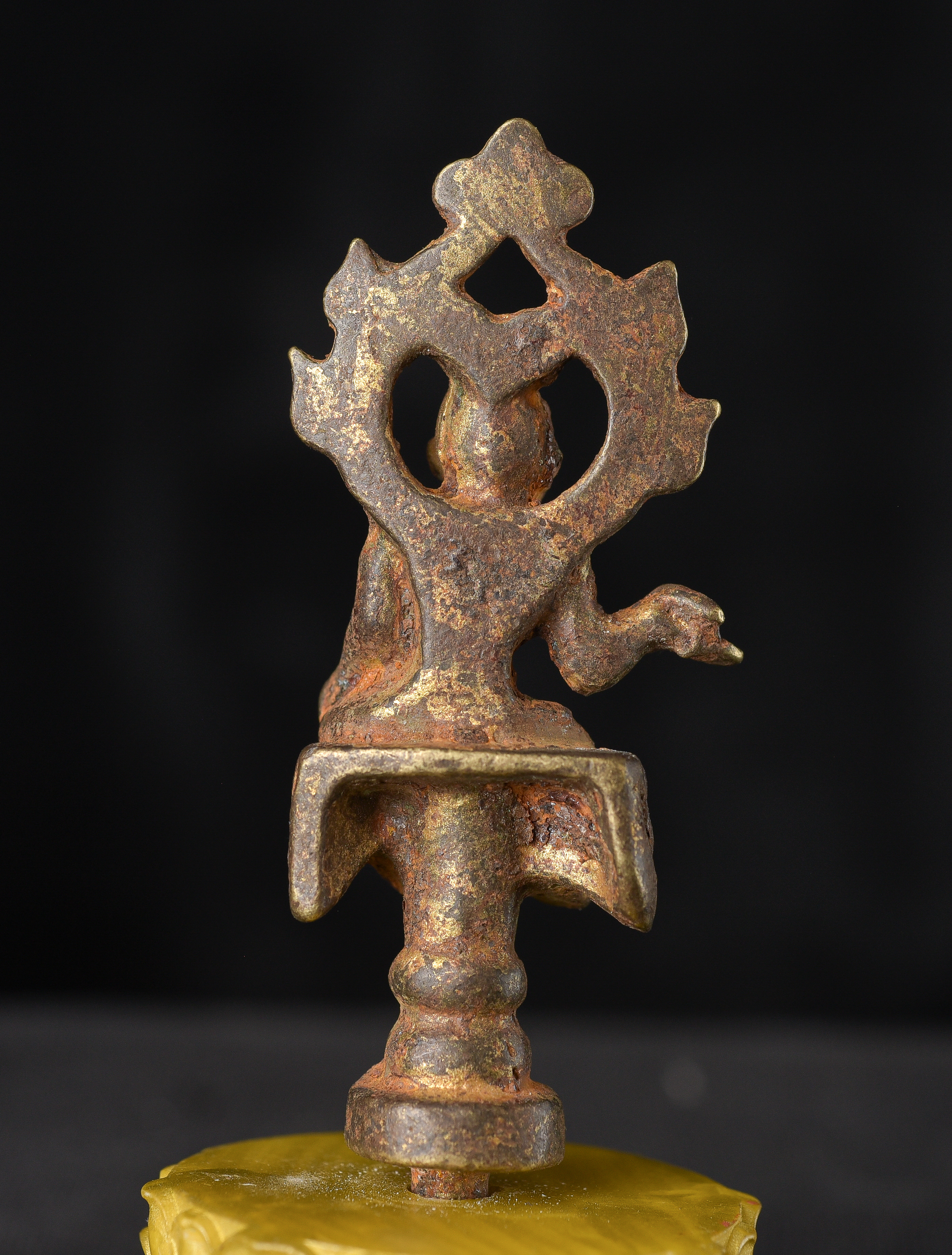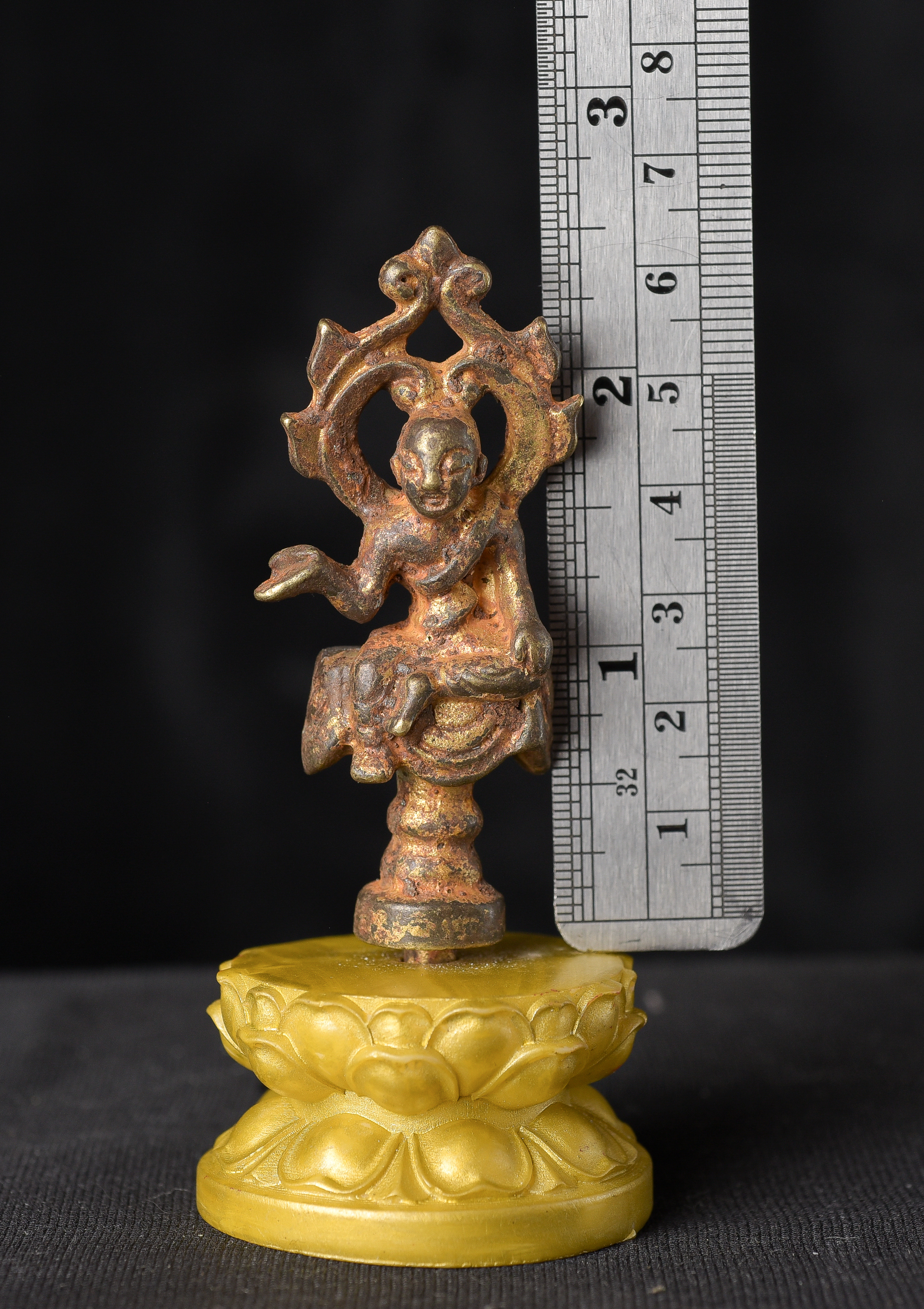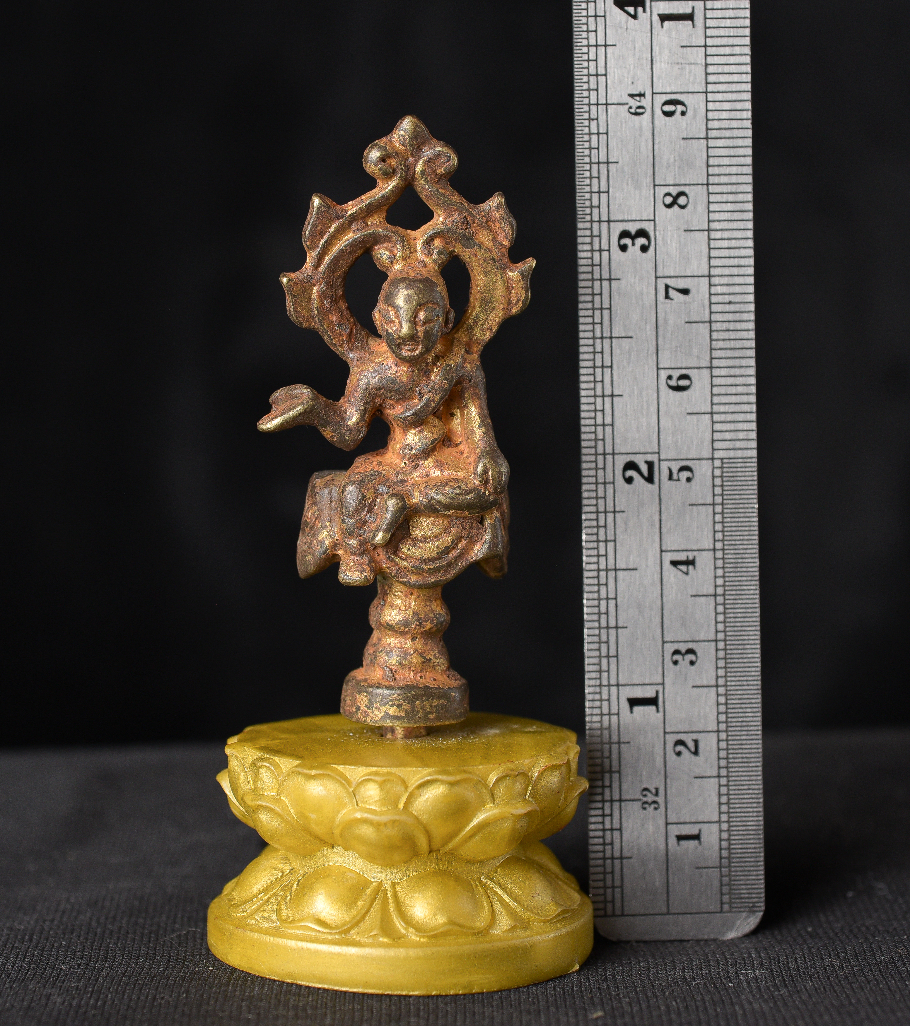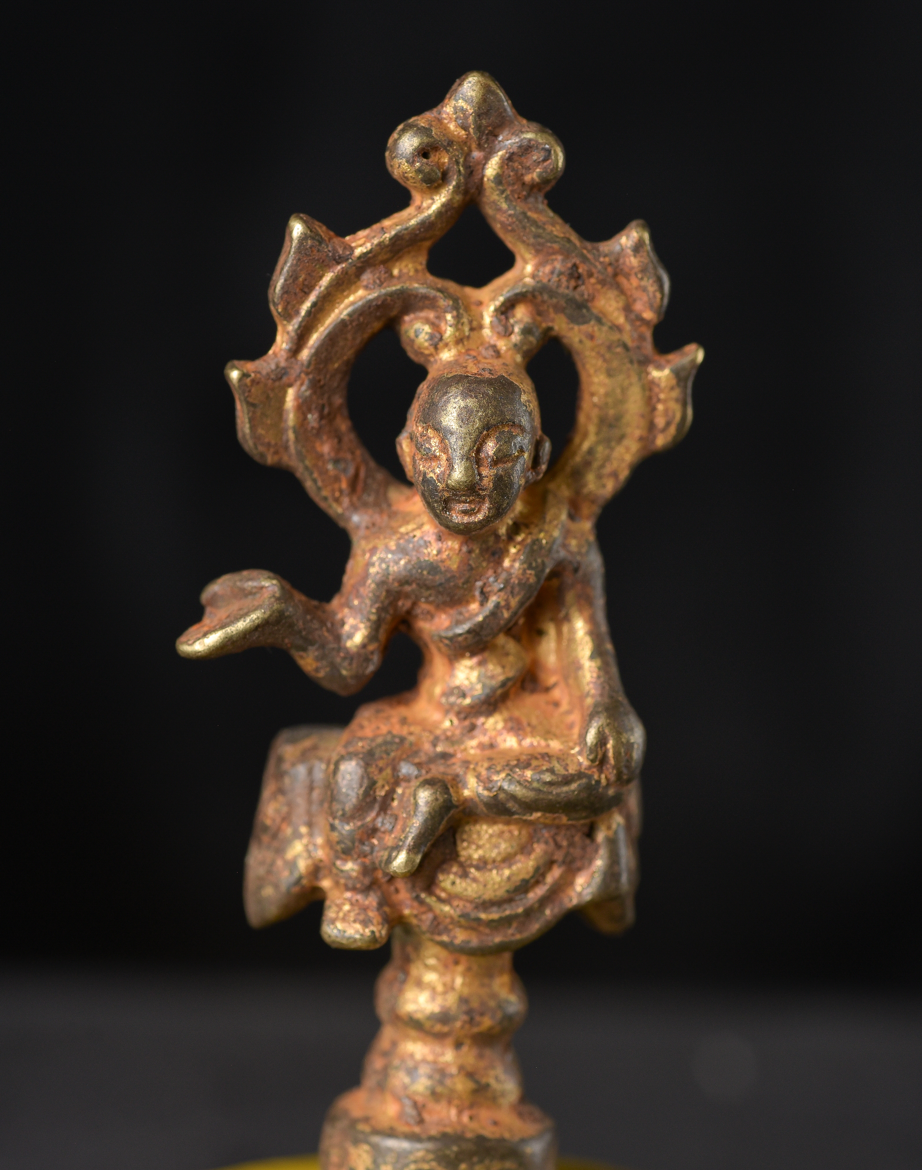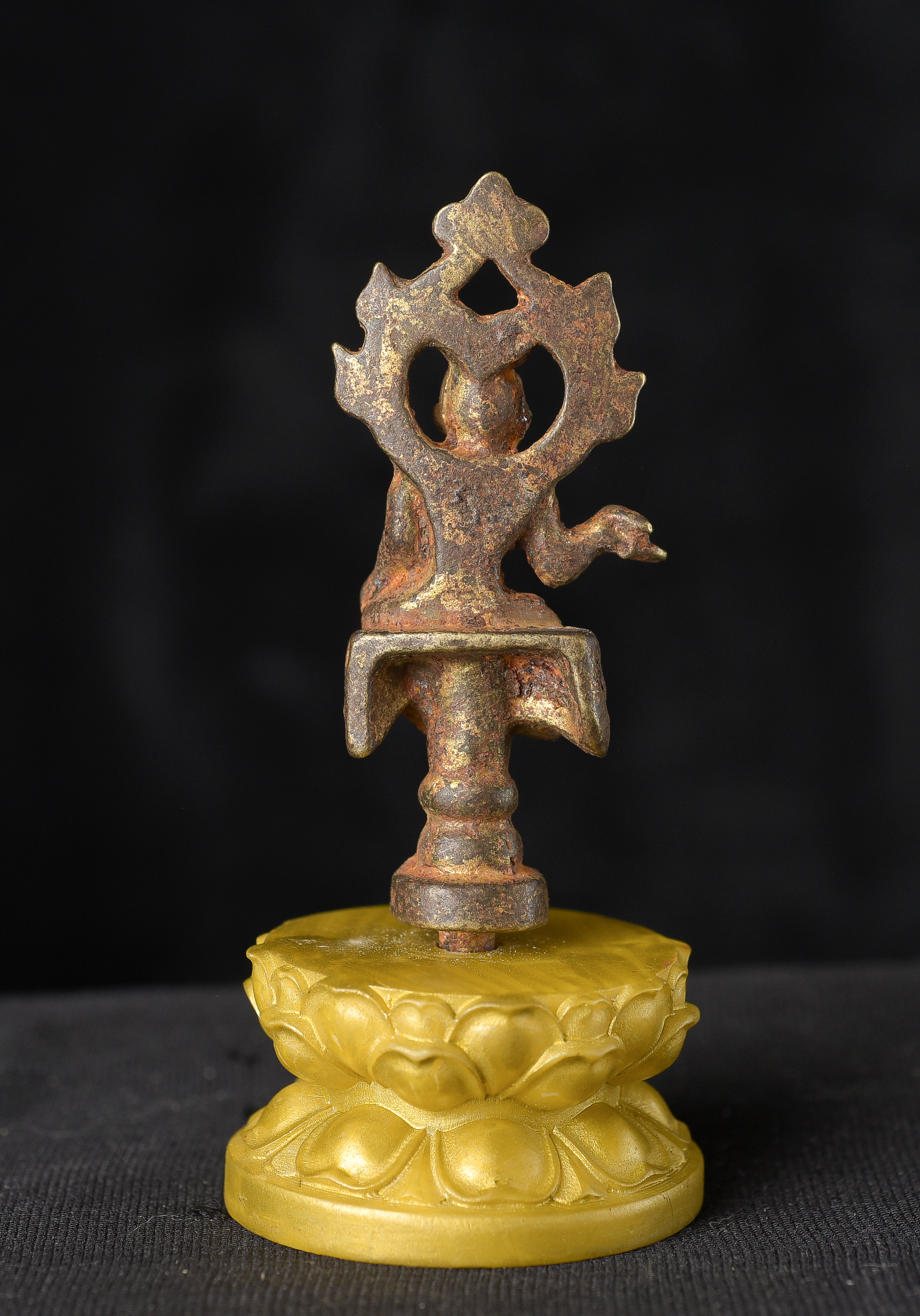 Tang bronze Quanyin or Buddha with remains of rich gilding. Nice example with excellent detail. It looks to be a lovely early example with a face that shows good detail. This type often has the face worn. (3.5"H x 1.5"W x 1.5"D ) - 85g.