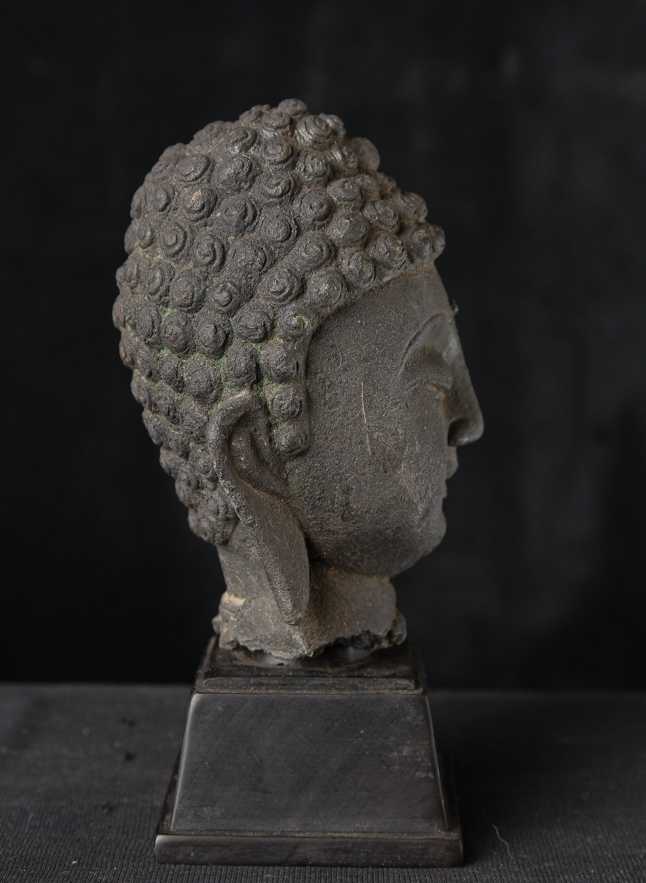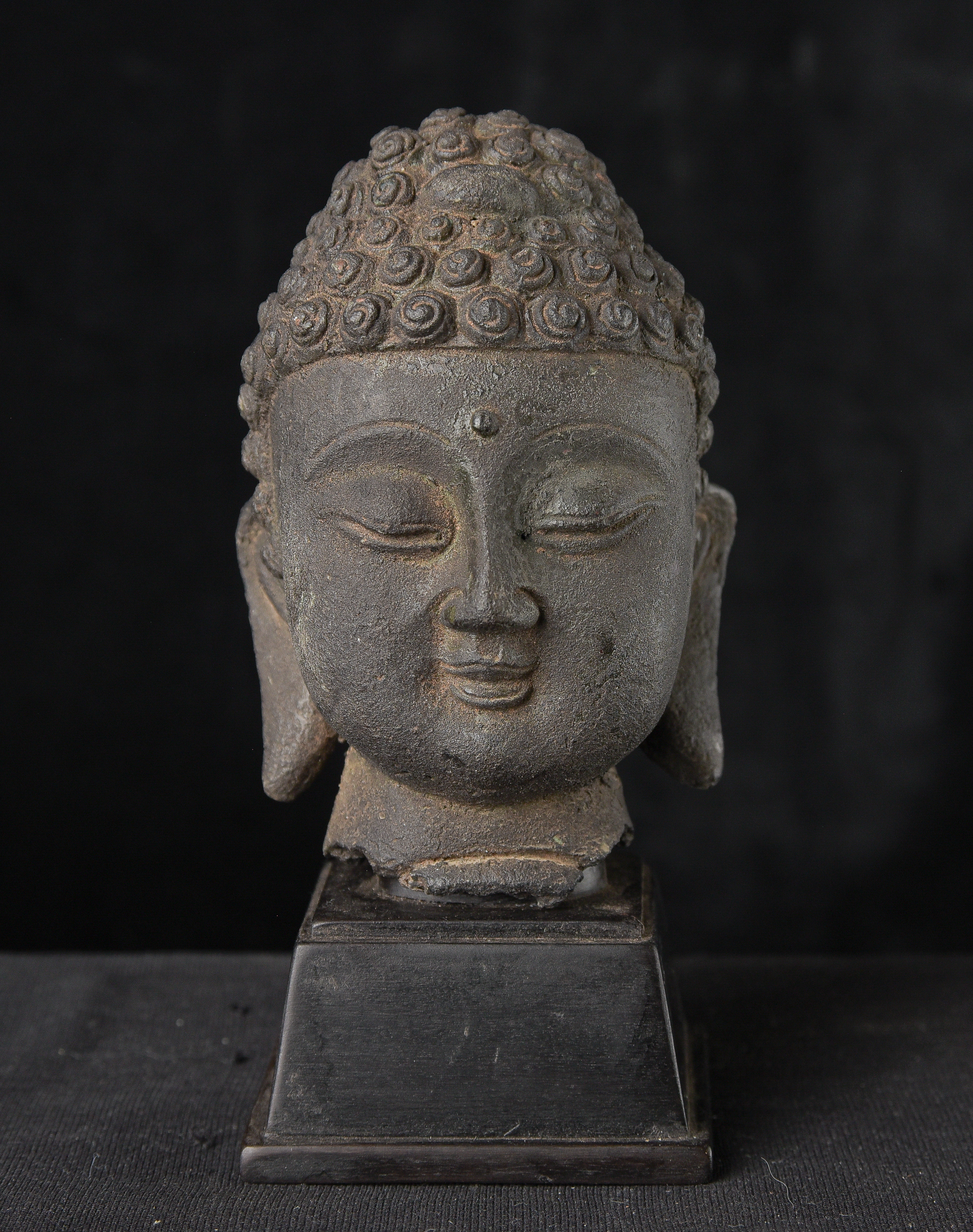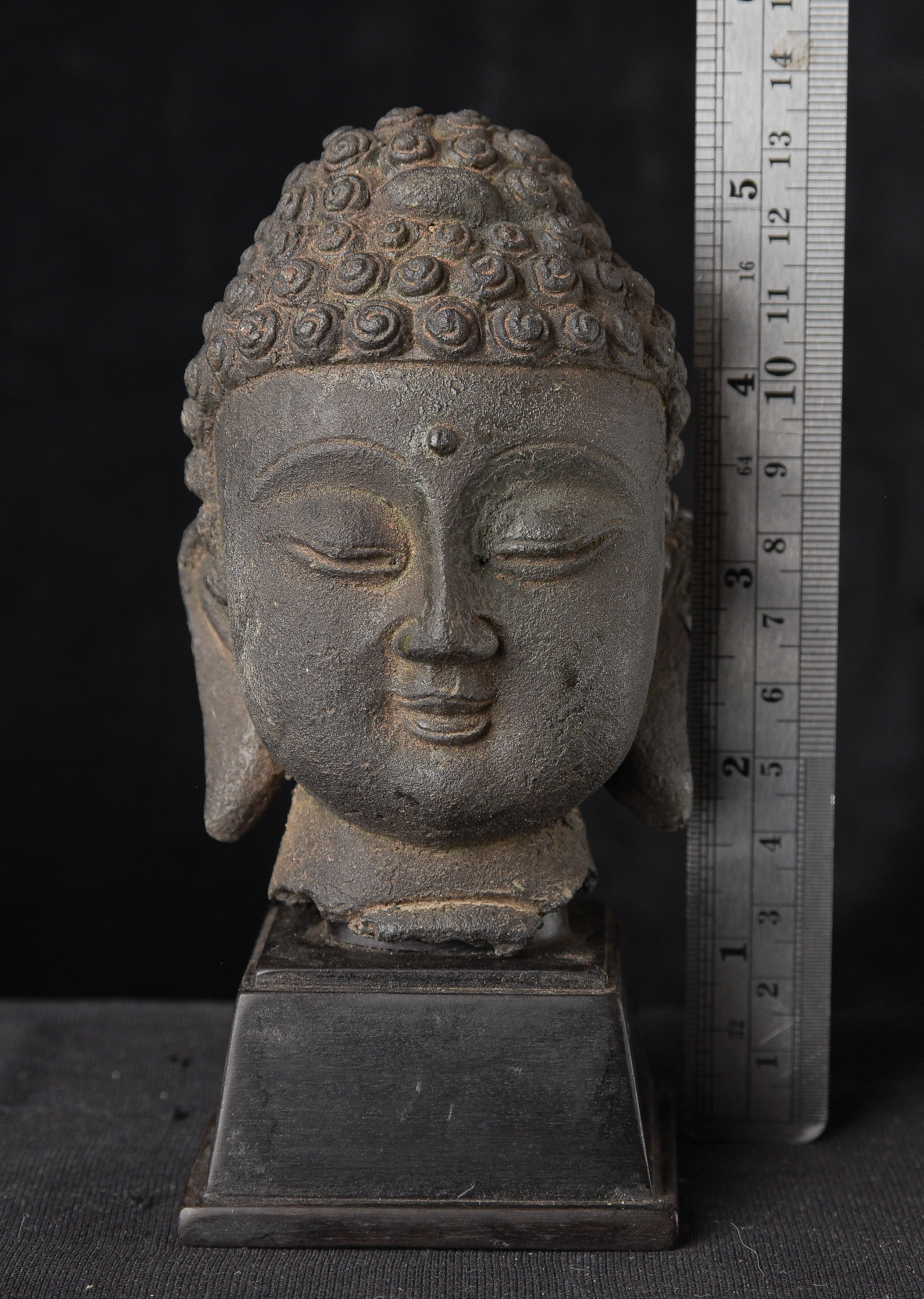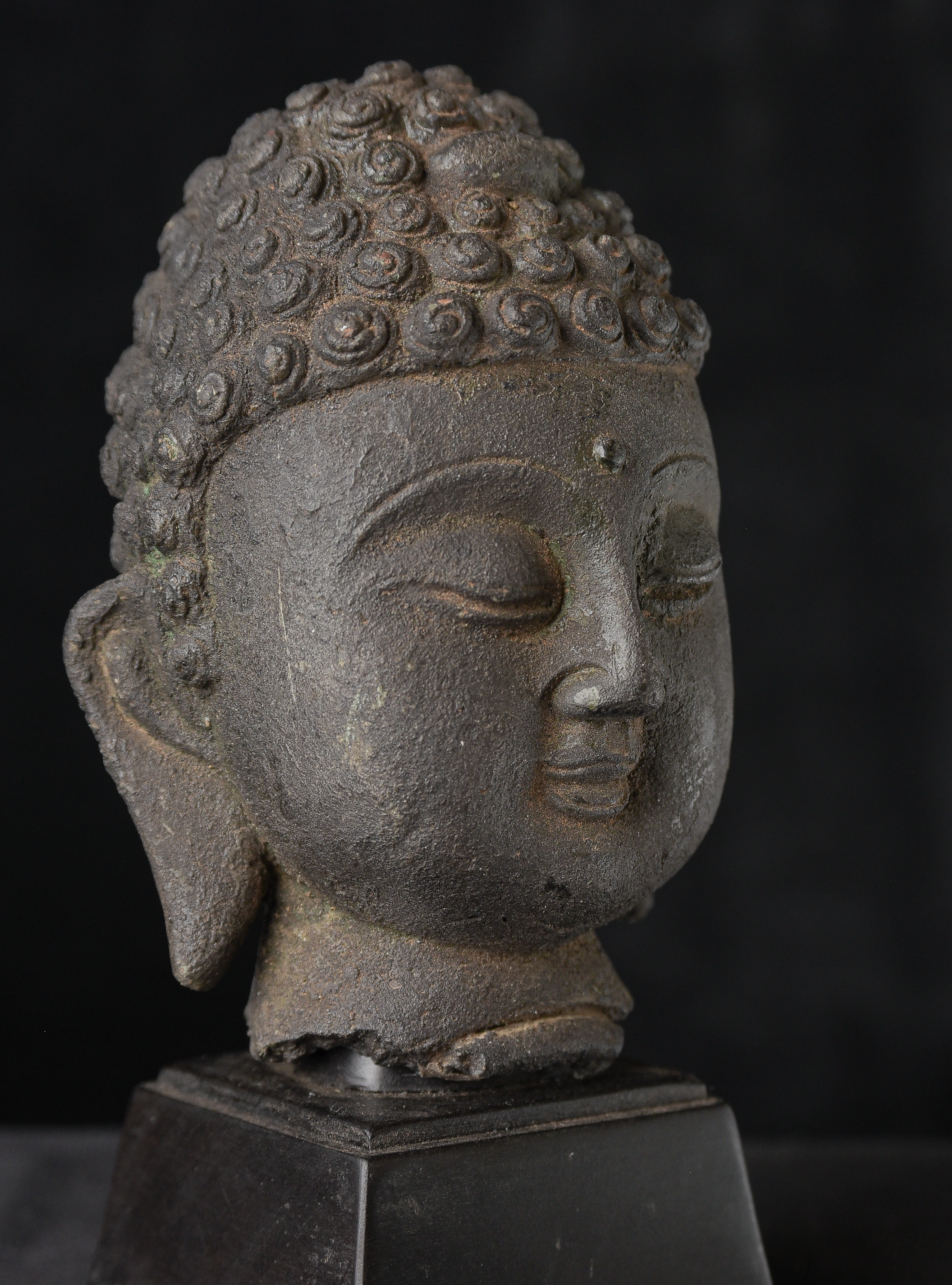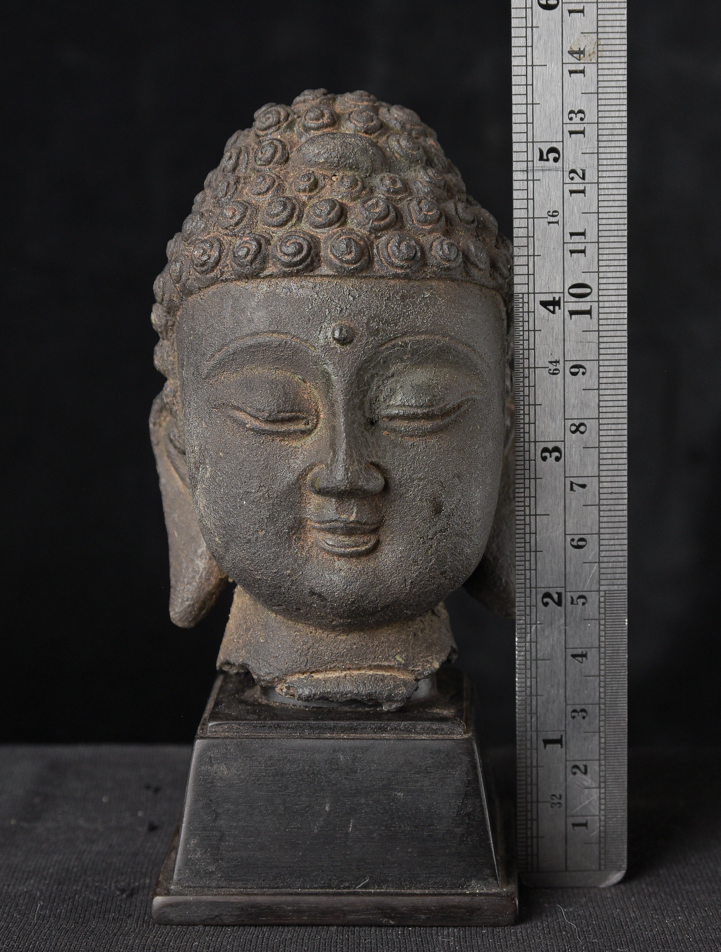 Chinese Bronze Buddha Head in an early style. Probably 20th century. Refined sculpting, casting and finishing (4"H x 2.5"W x 2.5"D ) - 1.25lbs. - Base: 2.5" x 1.25"