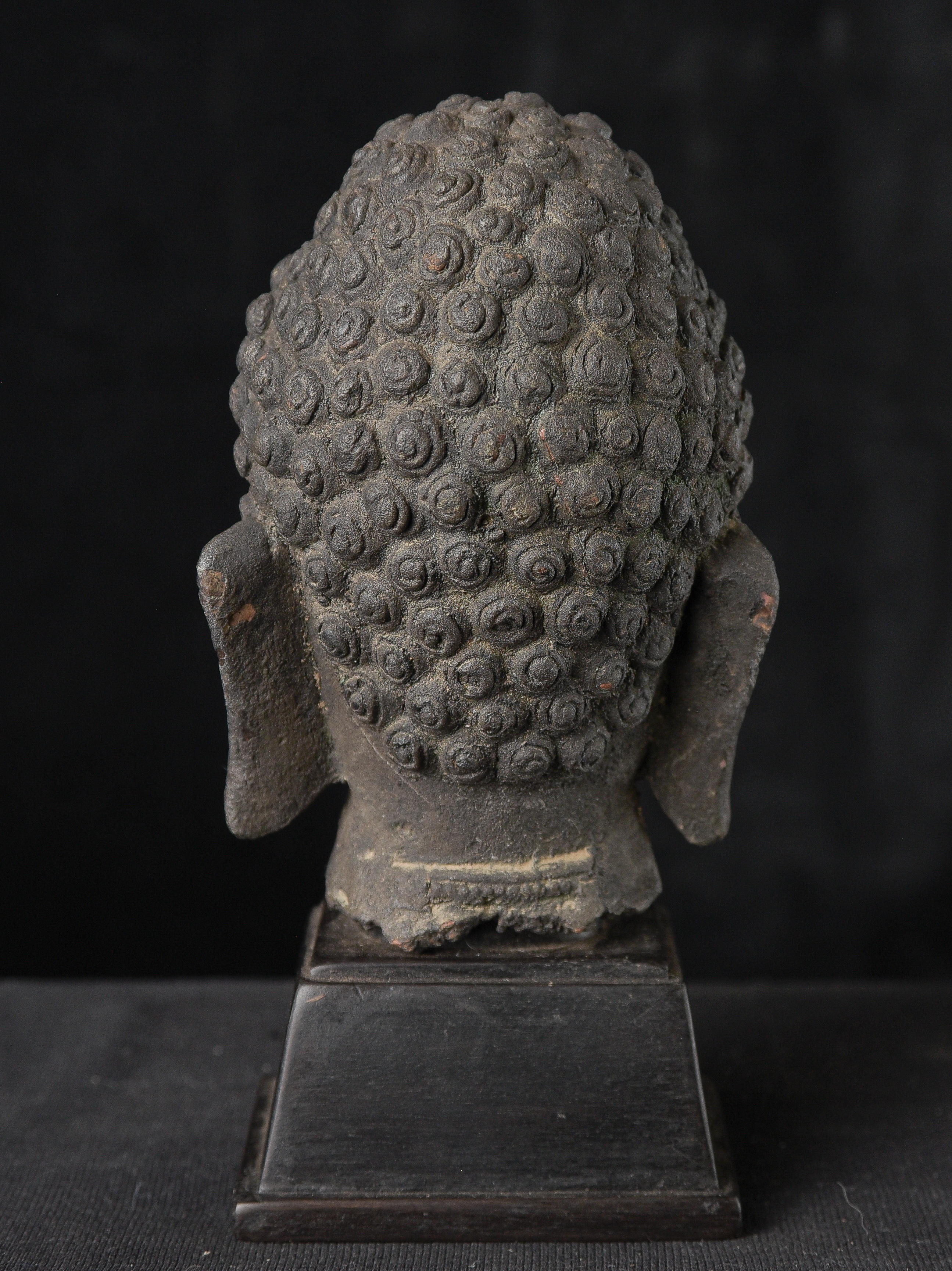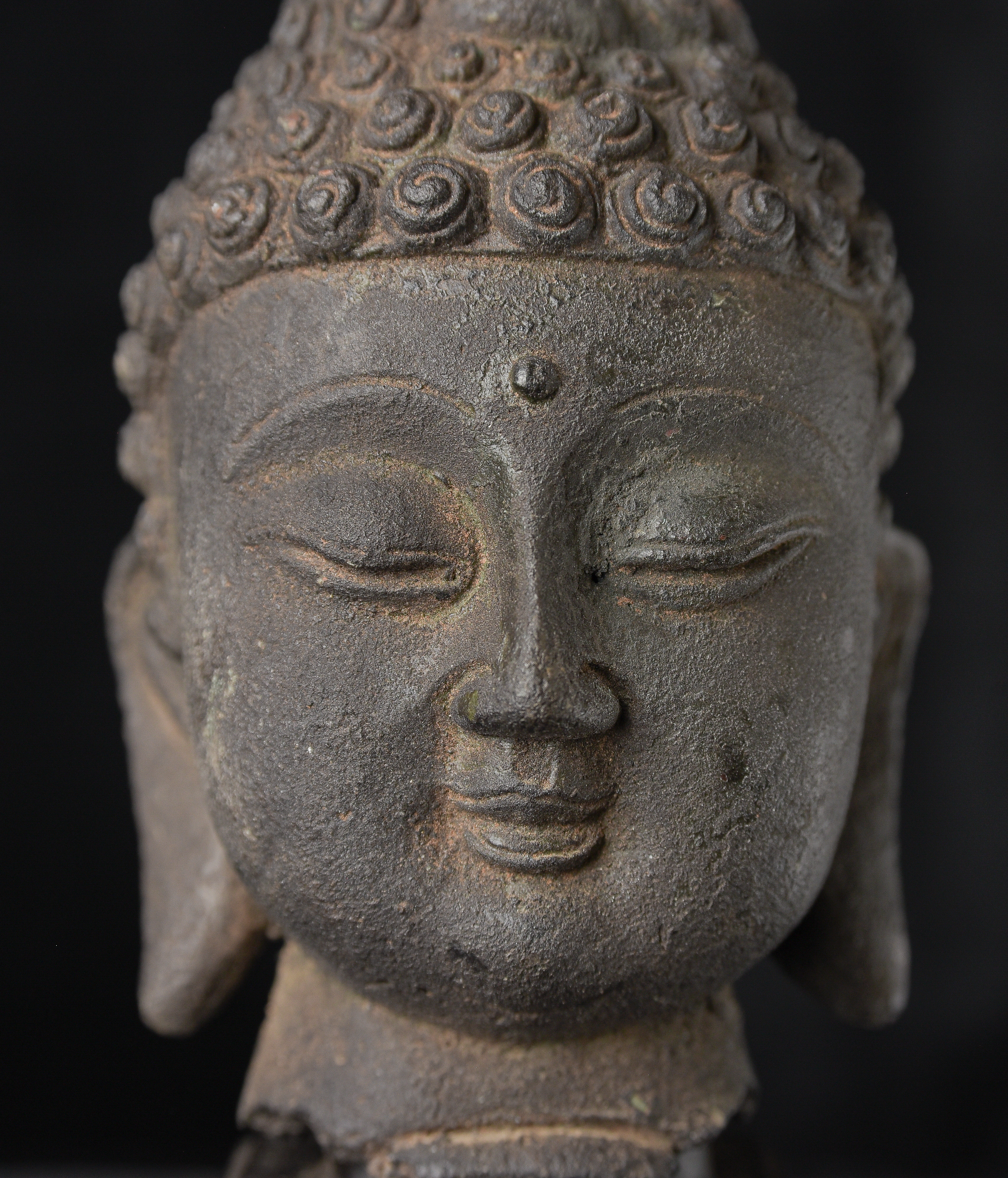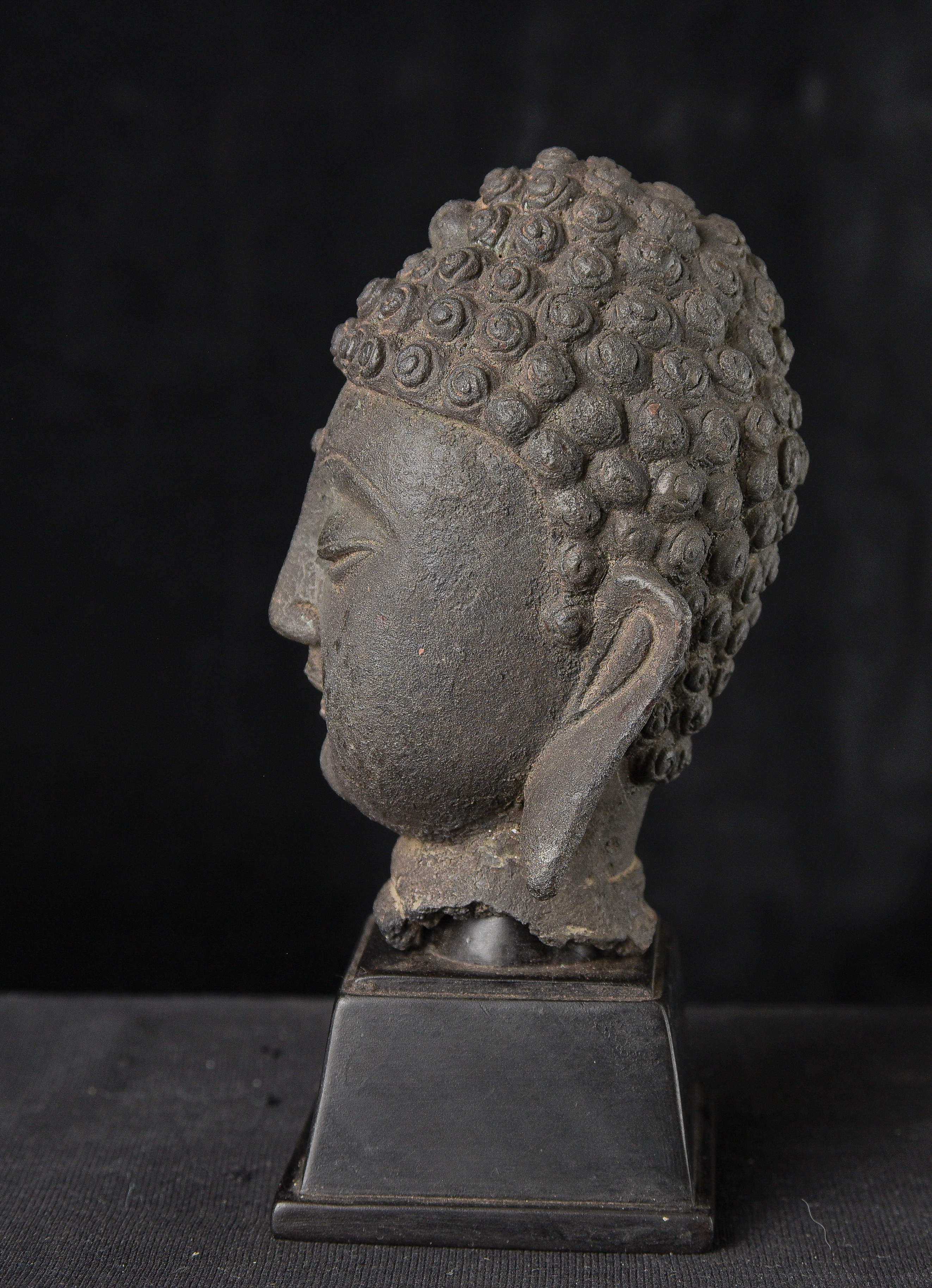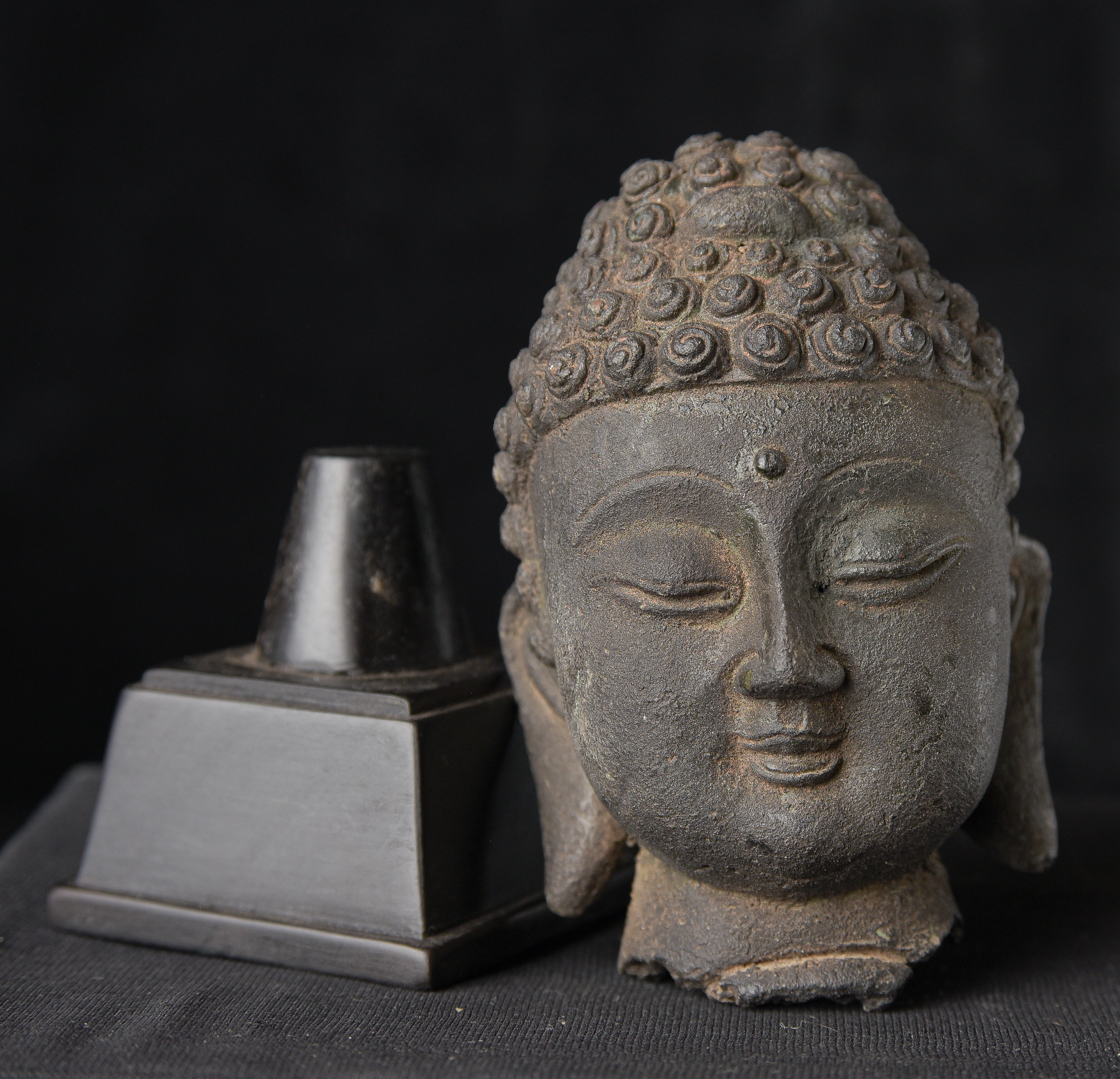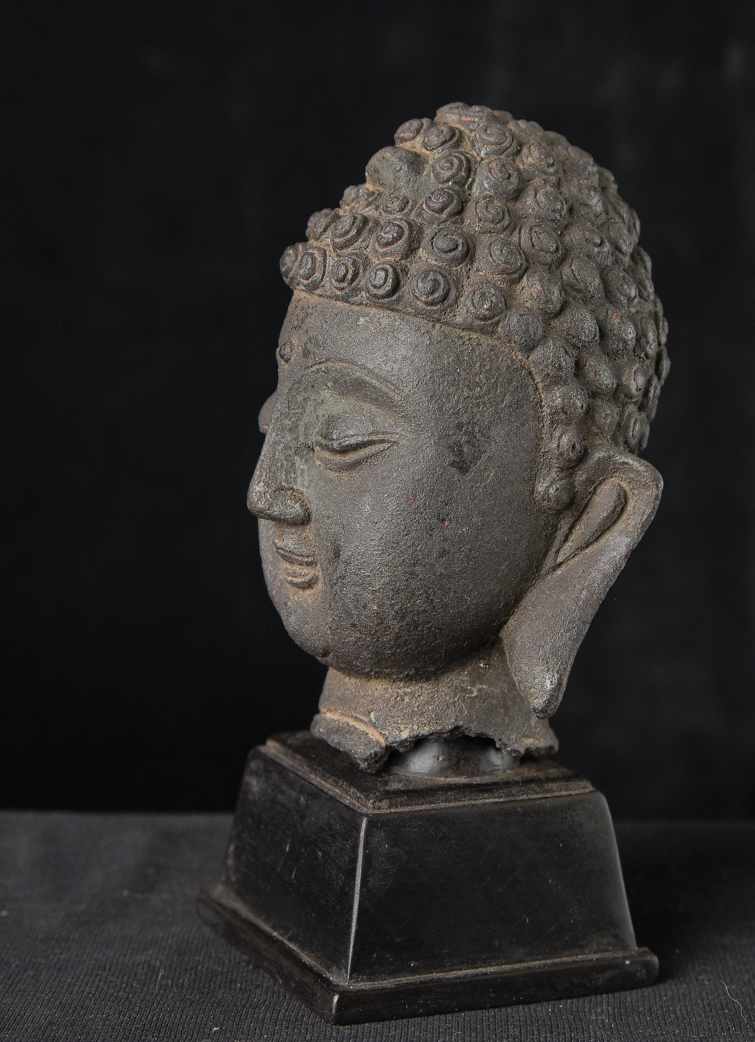 Chinese Bronze Buddha Head in an early style. Probably 20th century. Refined sculpting, casting and finishing (4"H x 2.5"W x 2.5"D ) - 1.25lbs. - Base: 2.5" x 1.25"