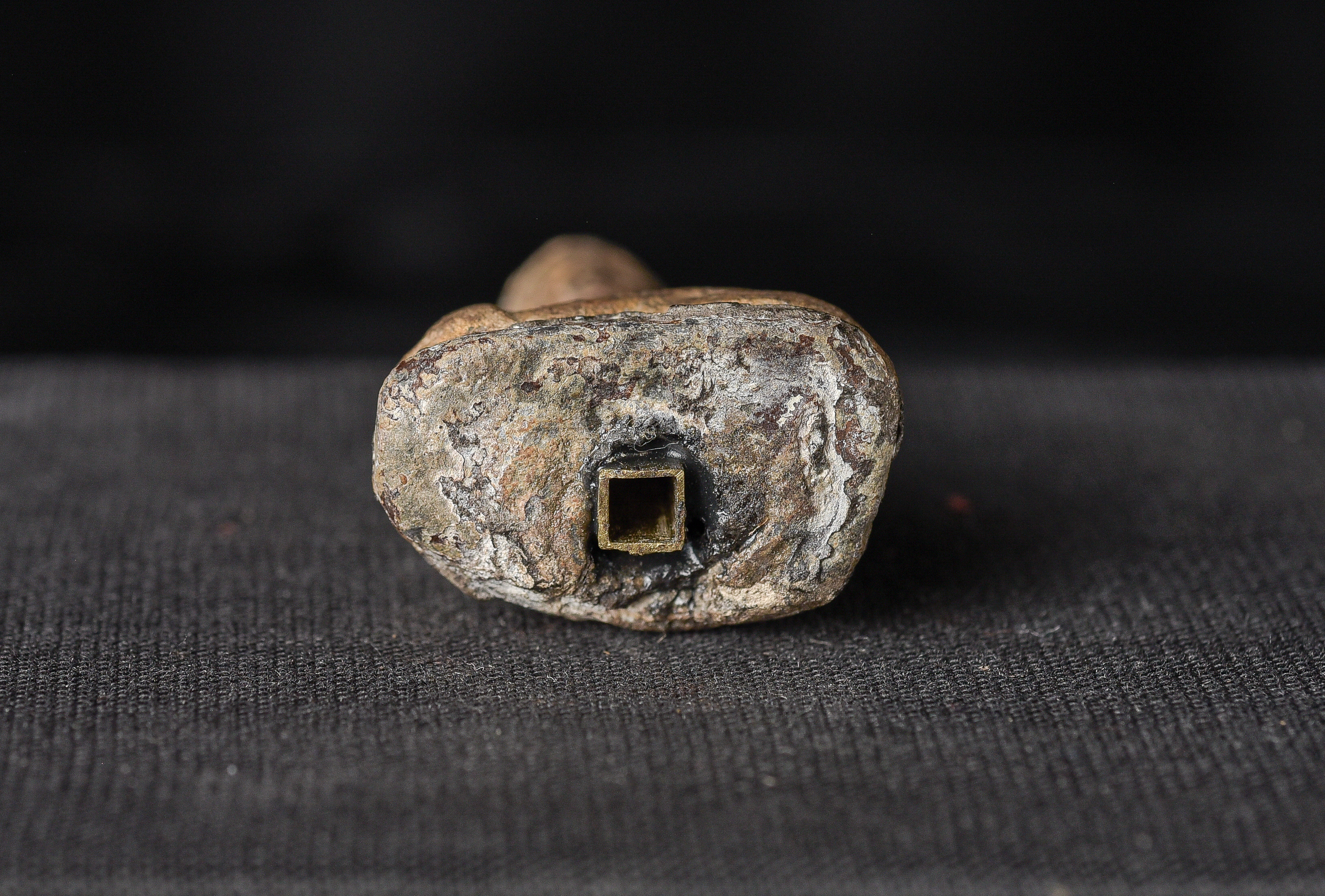 Earliest Burmese Biddha, solid cast of a lead alloy. Head either separately cast (done on some early SE Asian Buddhas) or reattached. RARE( 1.5" H x 1"W x .75"D ) - 40g. - Base: ( 1.5"W x 2.25"H )