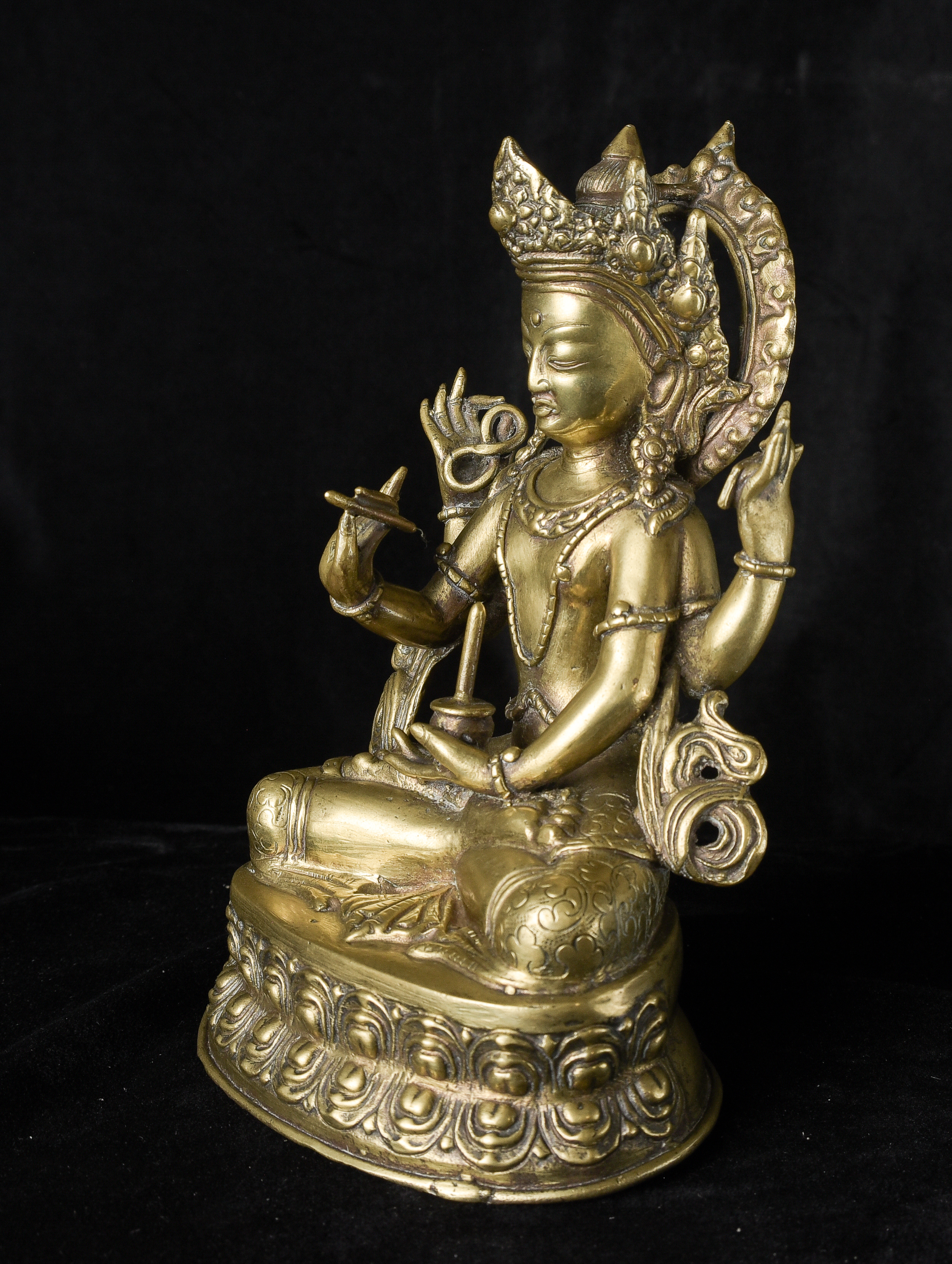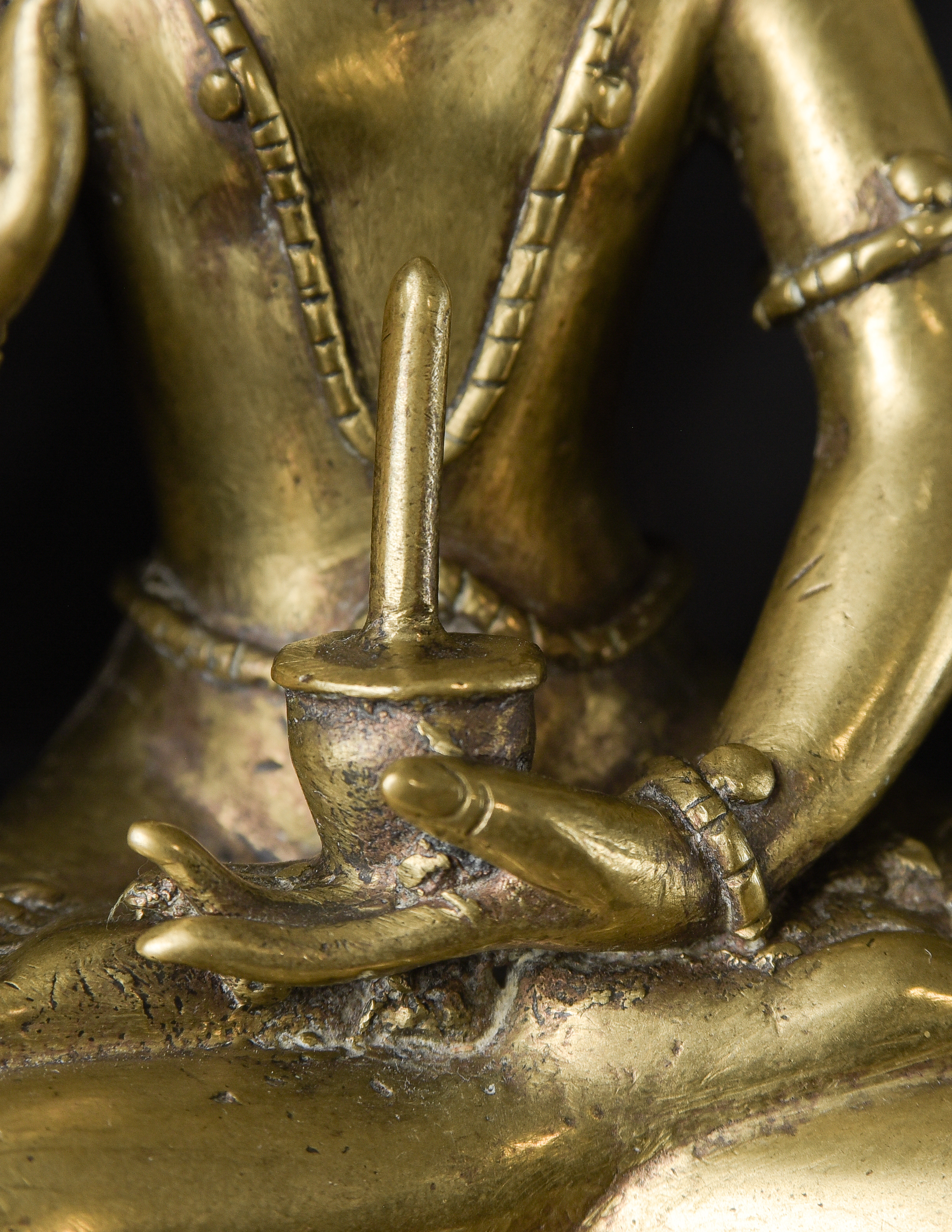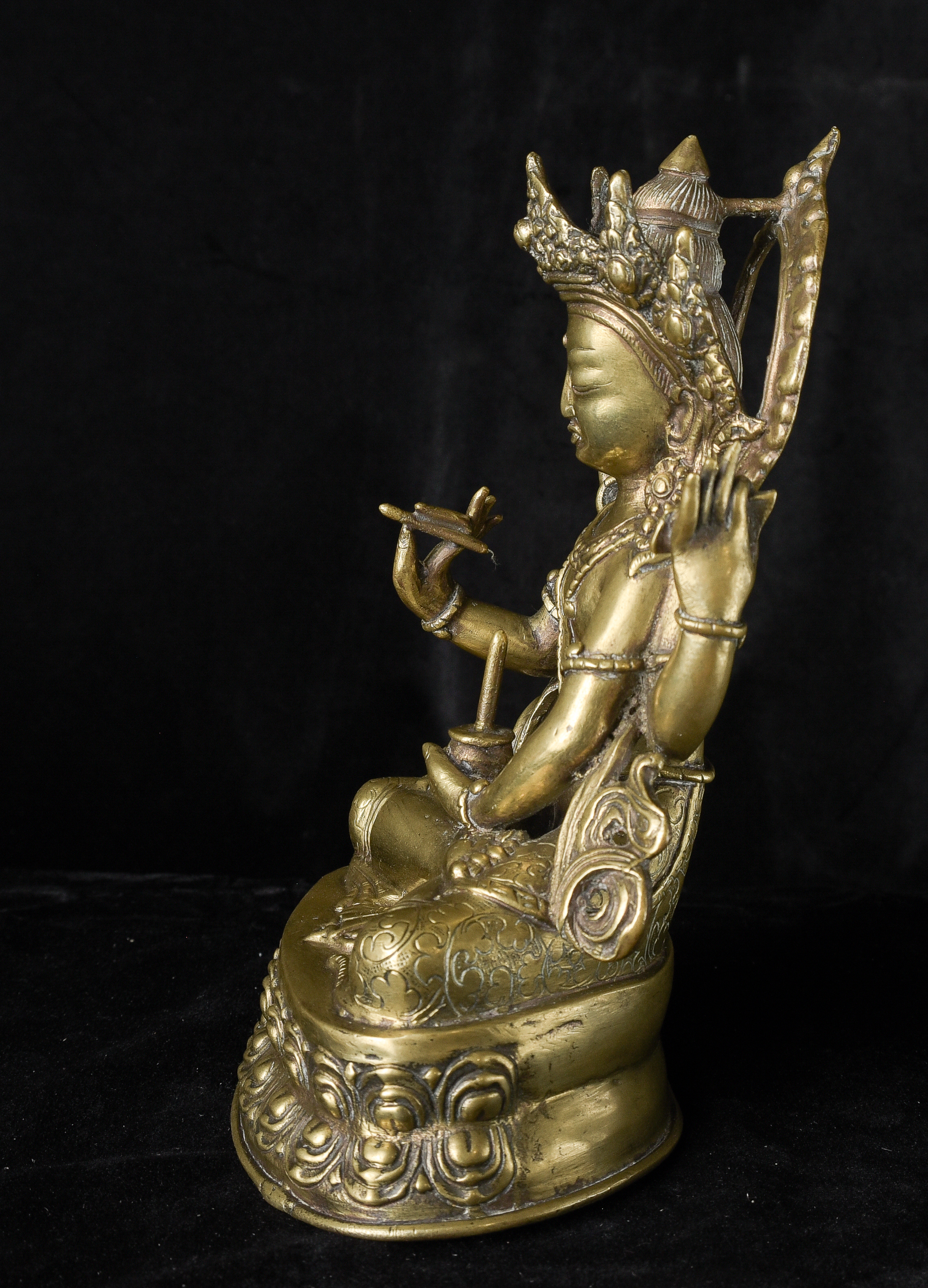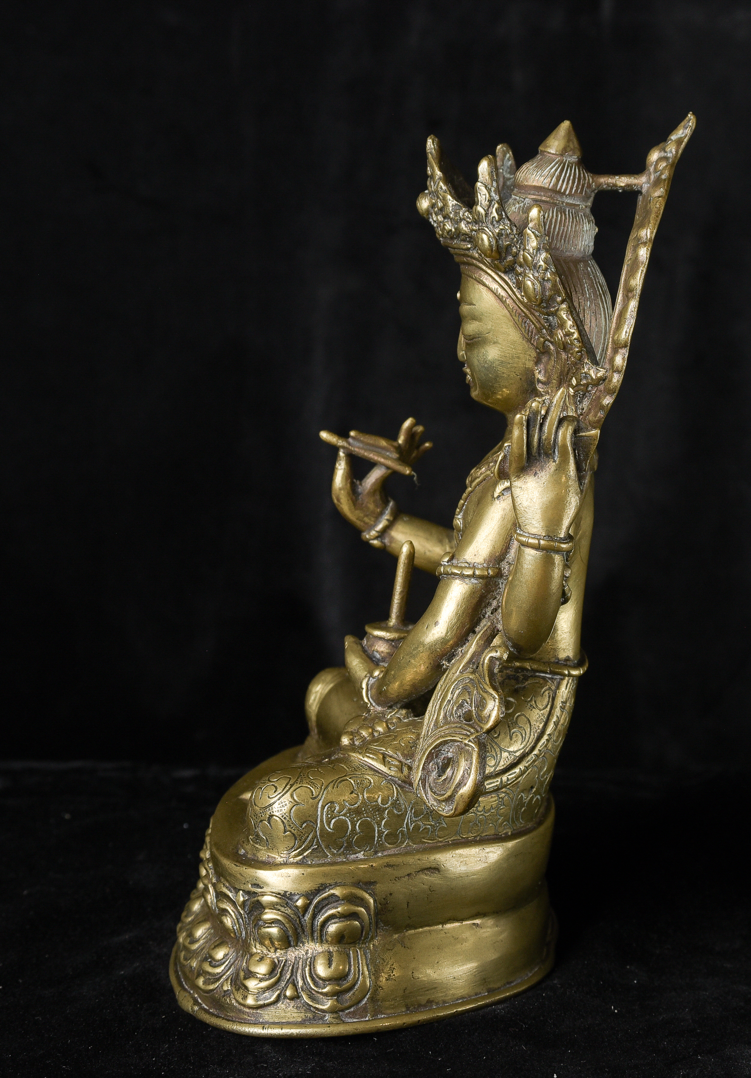 Antique Nepalese Bodhisattva. Exceptional example of it's type. May have had a prayer wheel in lap. ( 8.5"H x 5"W x 3.5"D ) - 2.52lbs