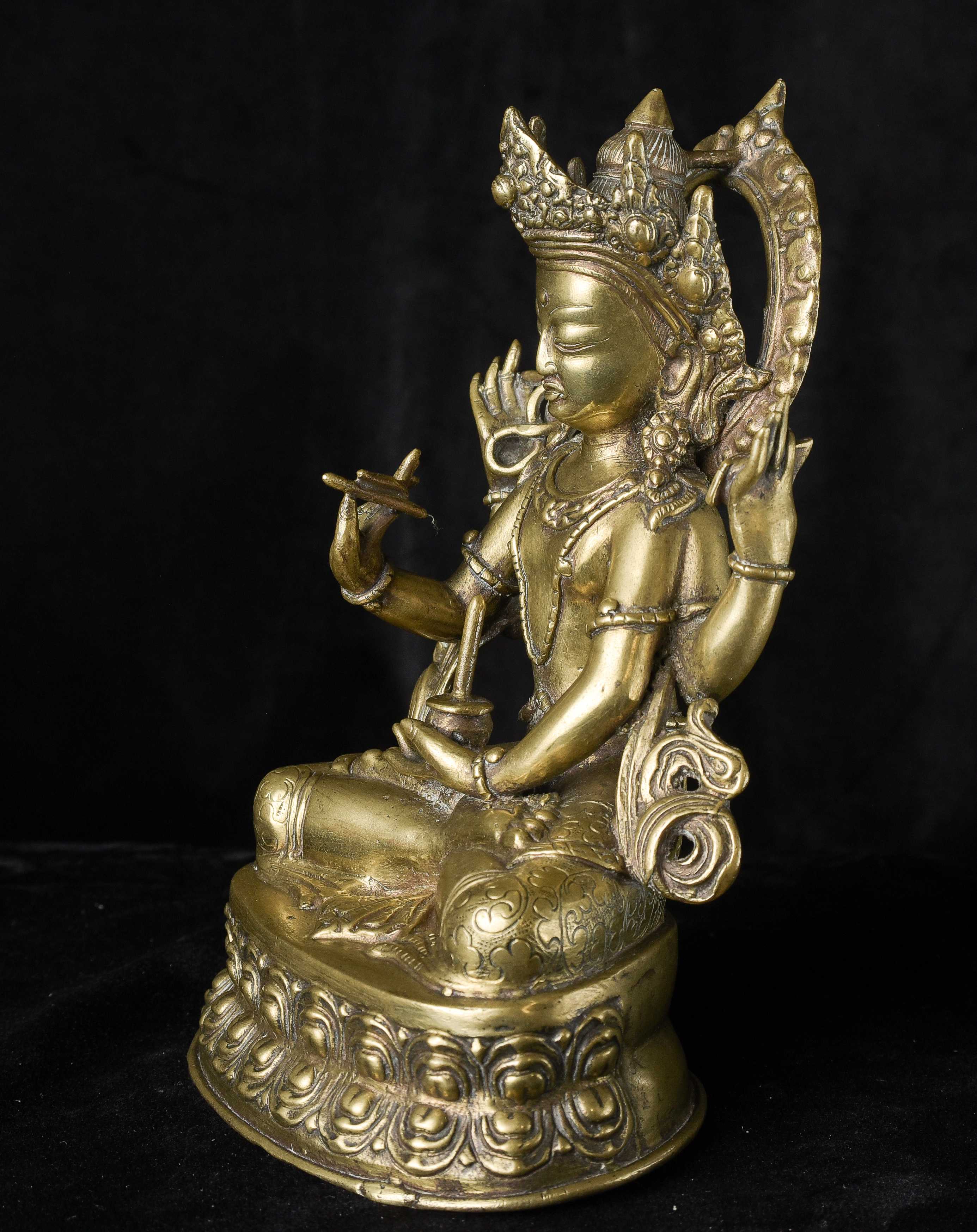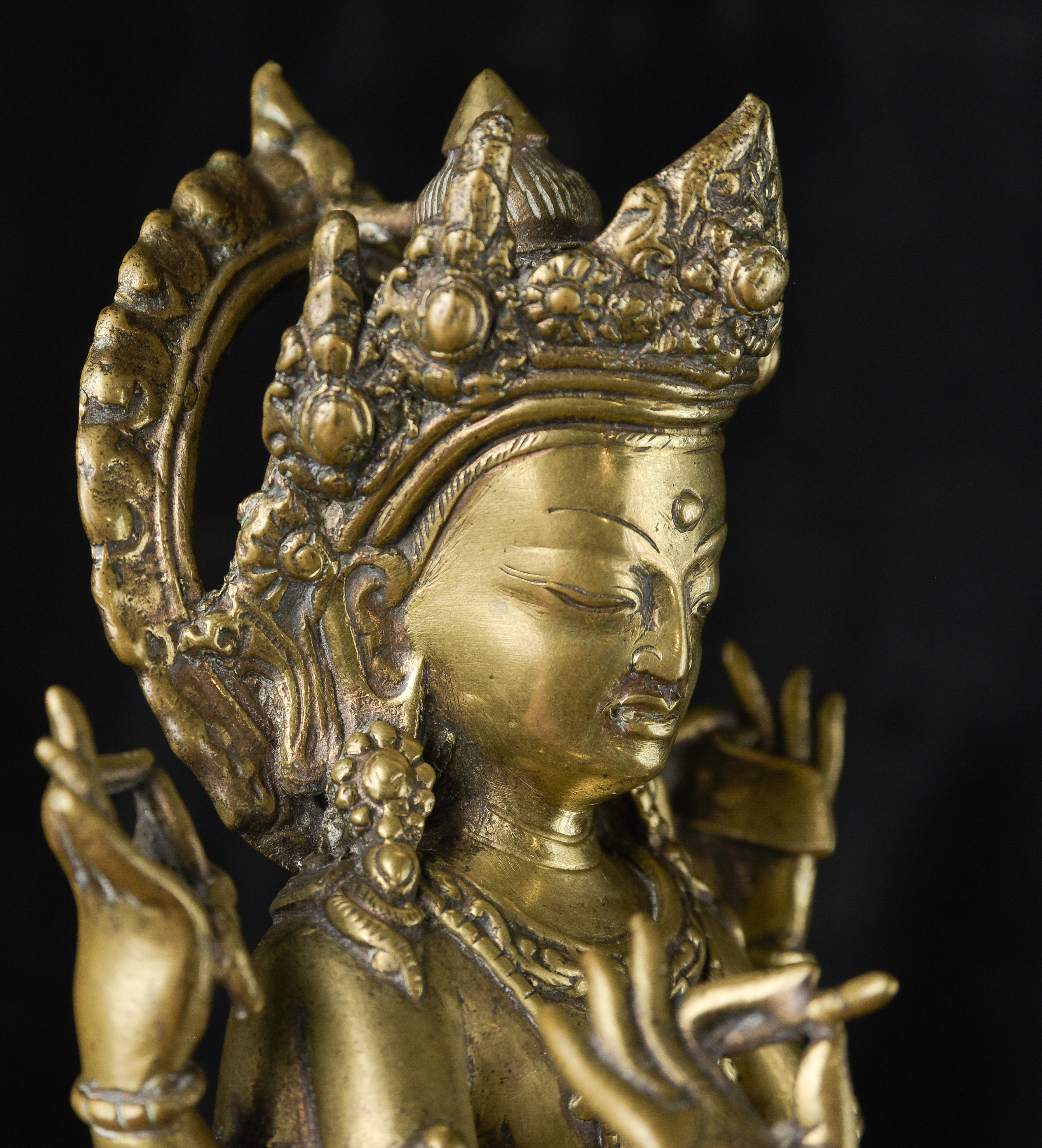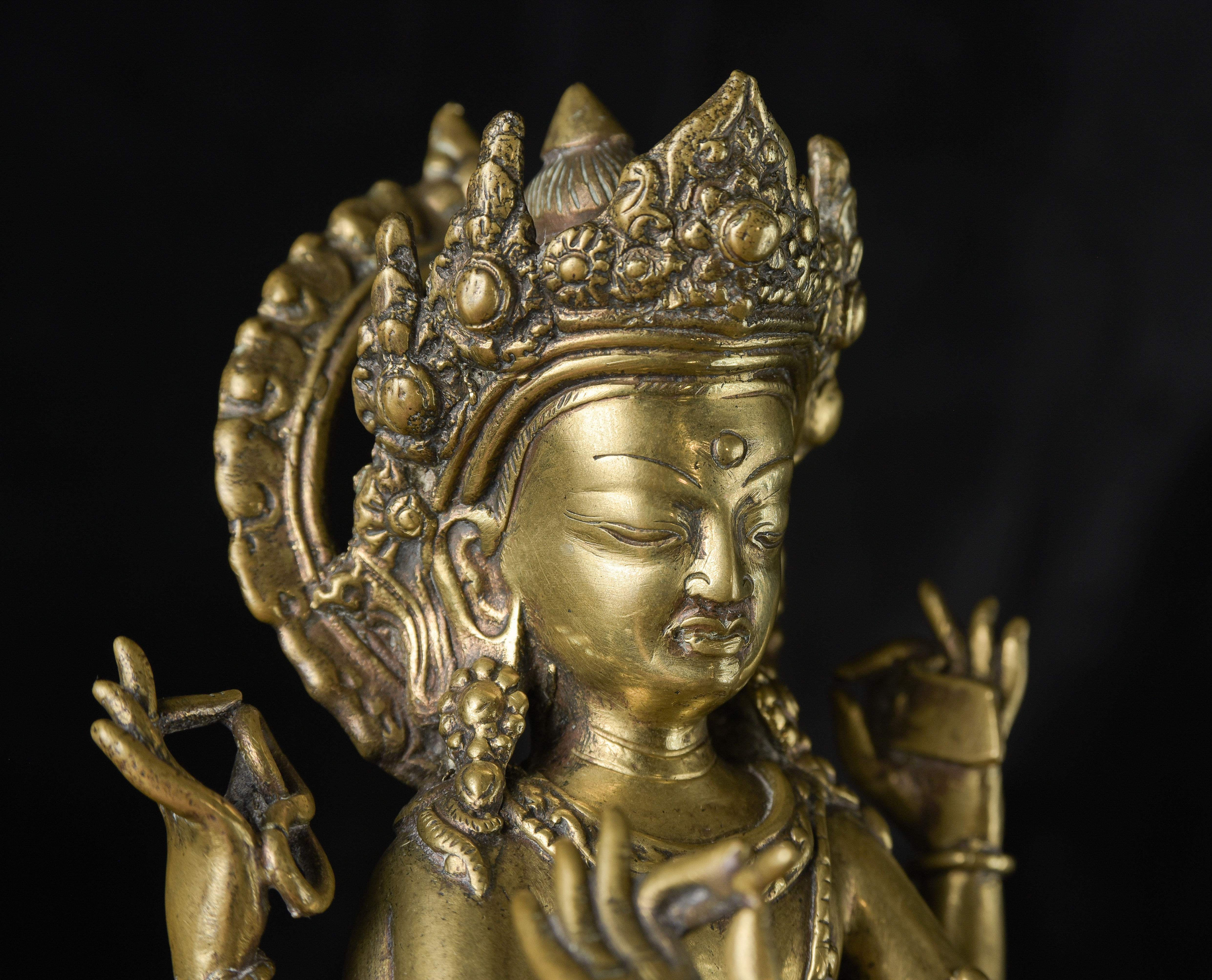 Antique Nepalese Bodhisattva. Exceptional example of it's type. May have had a prayer wheel in lap. ( 8.5"H x 5"W x 3.5"D ) - 2.52lbs