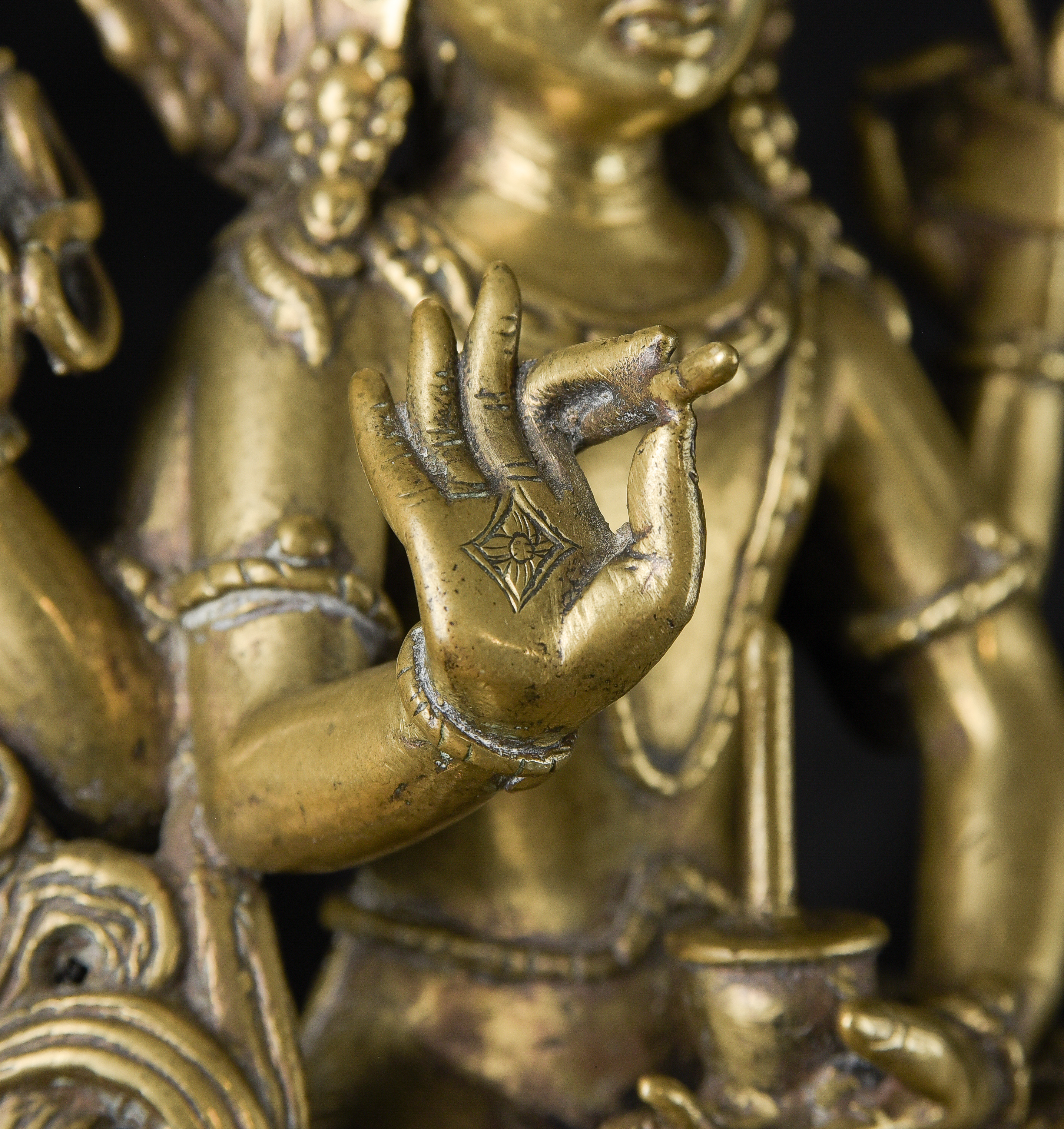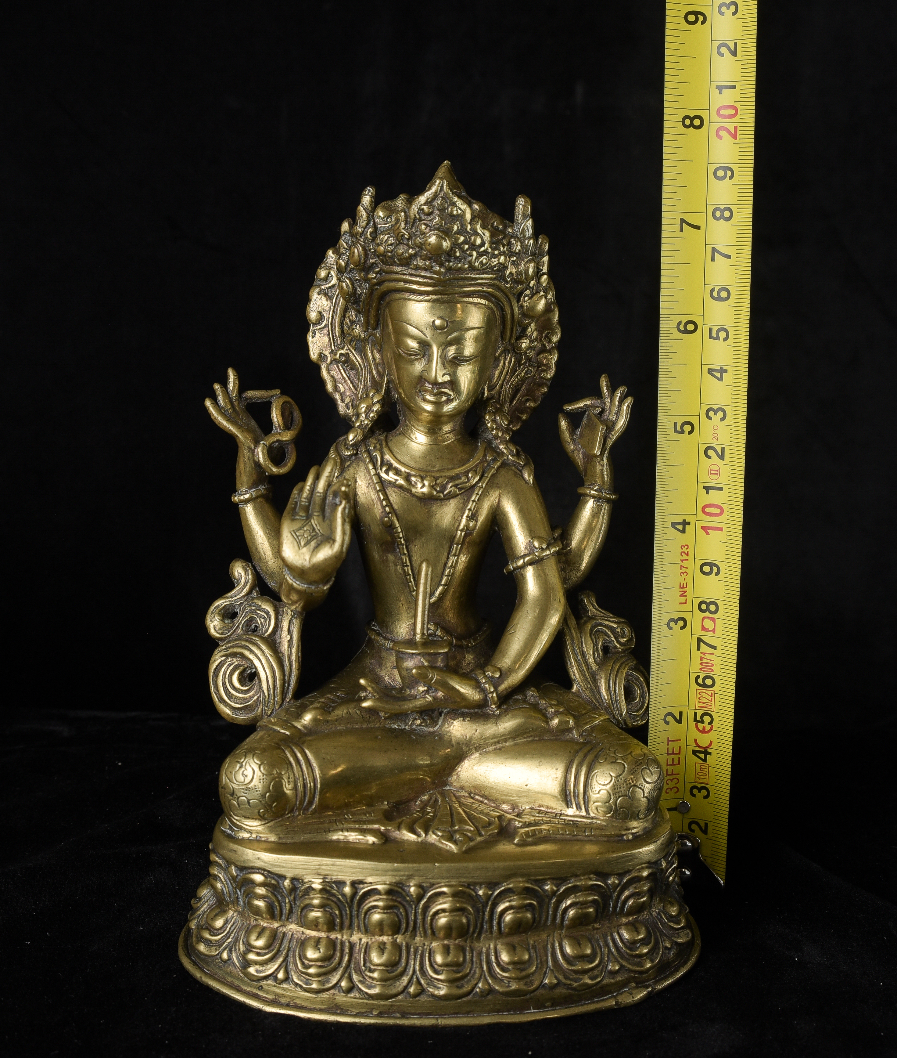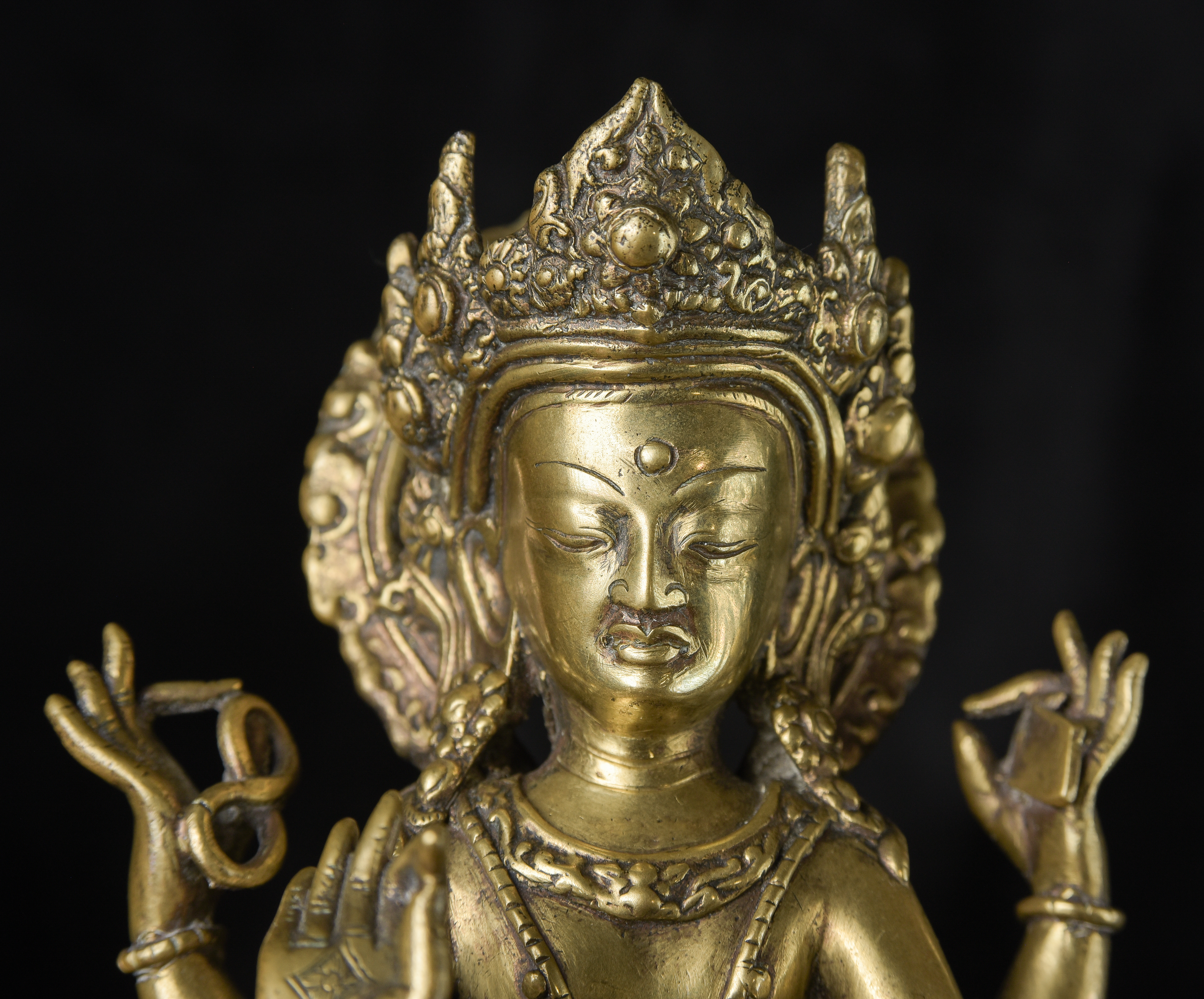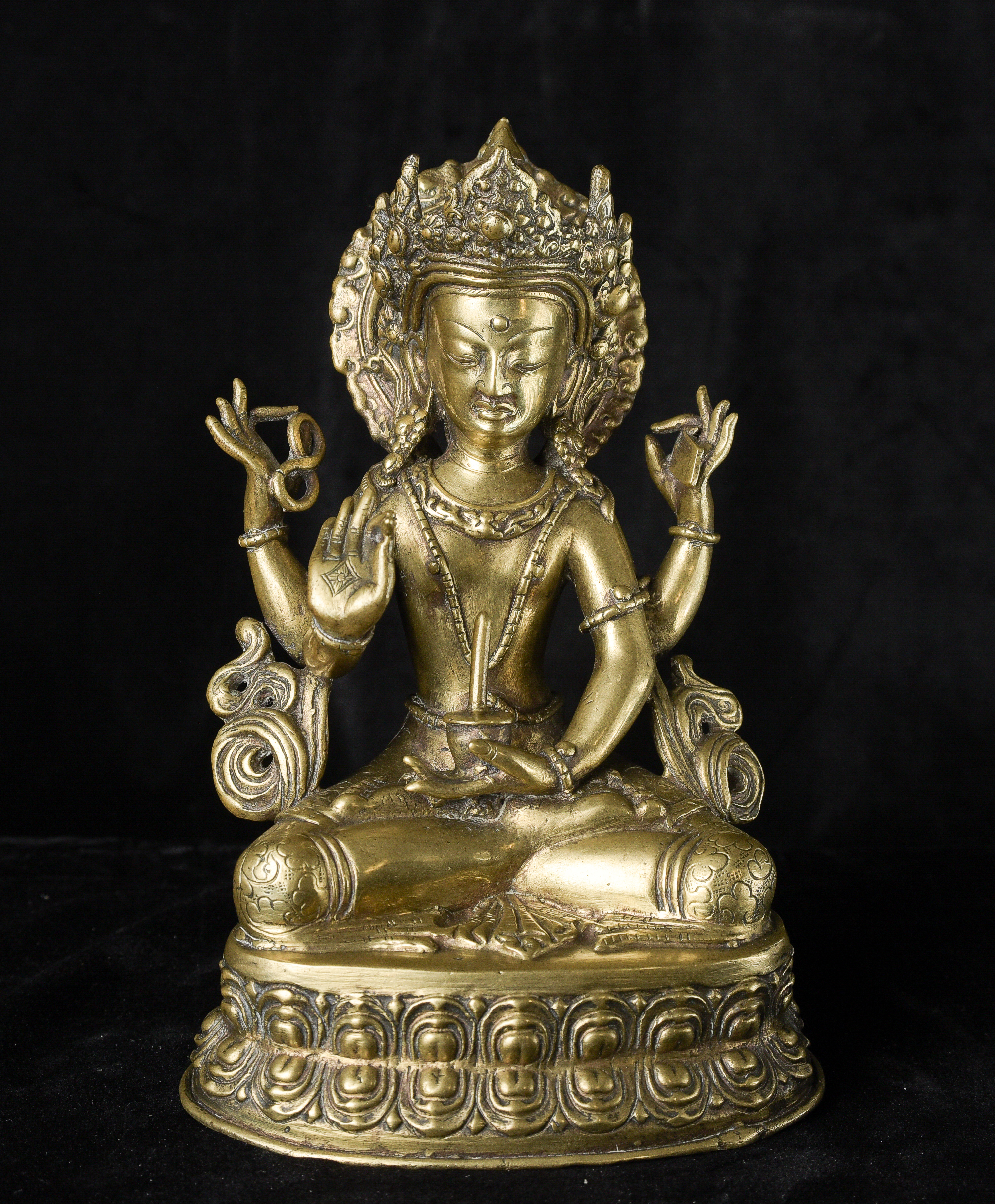 Antique Nepalese Bodhisattva. Exceptional example of it's type. May have had a prayer wheel in lap. ( 8.5"H x 5"W x 3.5"D ) - 2.52lbs