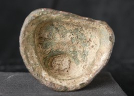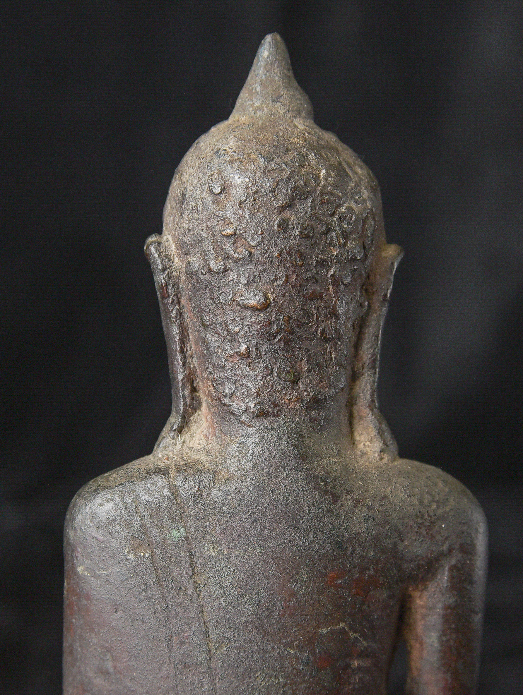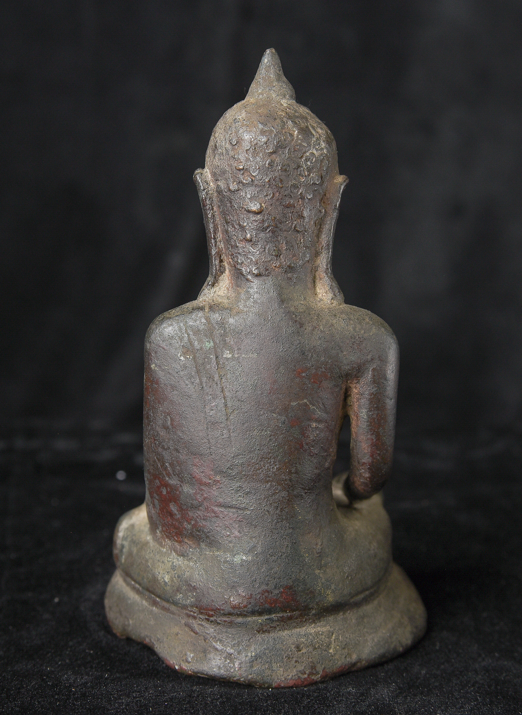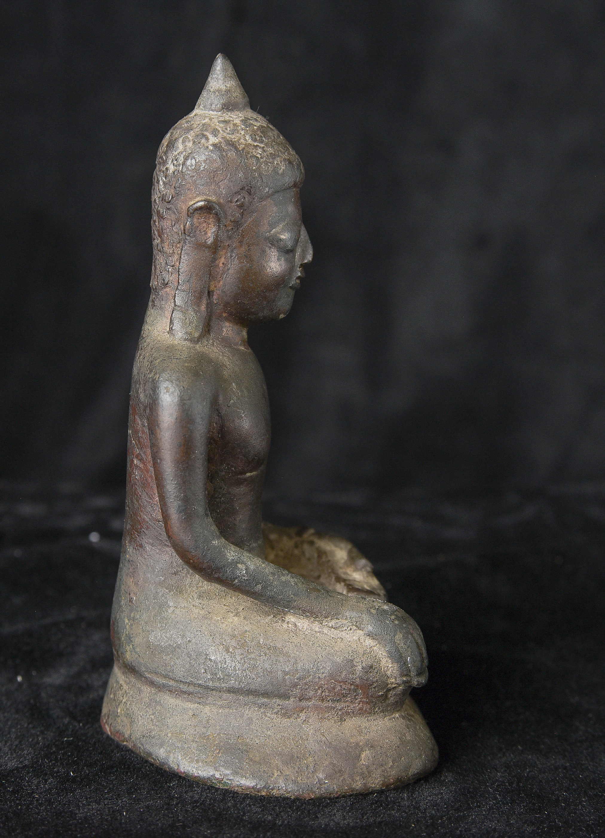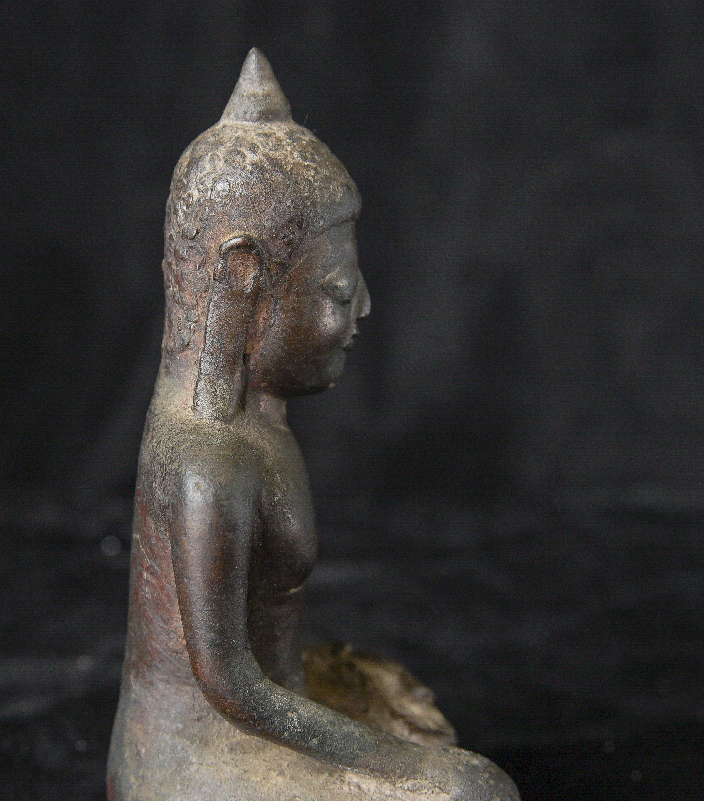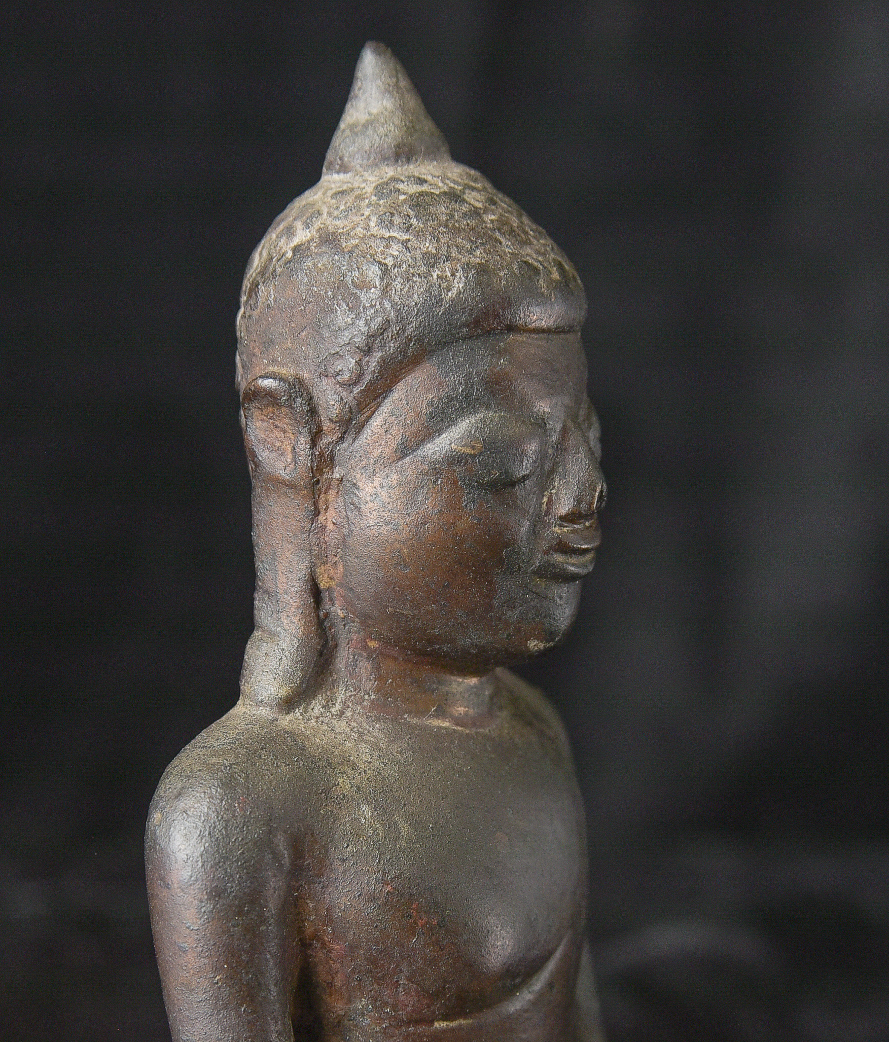 17/18thC Cambodian Buddha. Sweet face. Good condition-has a ding on the nose. Radiates joy, equanimity and contentment. Special. shows influences from different tribal groups and cultures. At first, I thought it was from Burma, but after spending time with it, I now believe it is 17/18 century, or possibly a little earlier, from Cambodia ( 4.75"H x 2.75"W x 2.25"D ) - 465g.