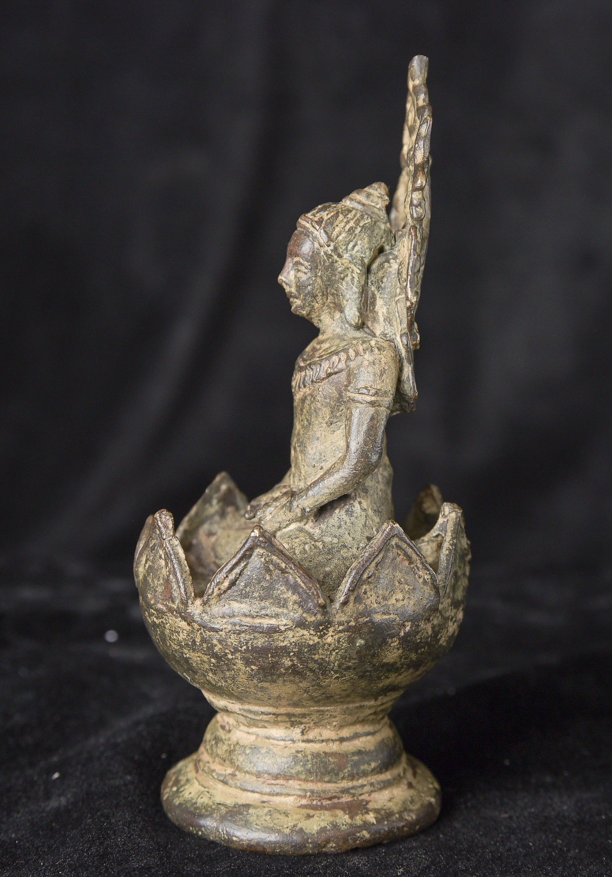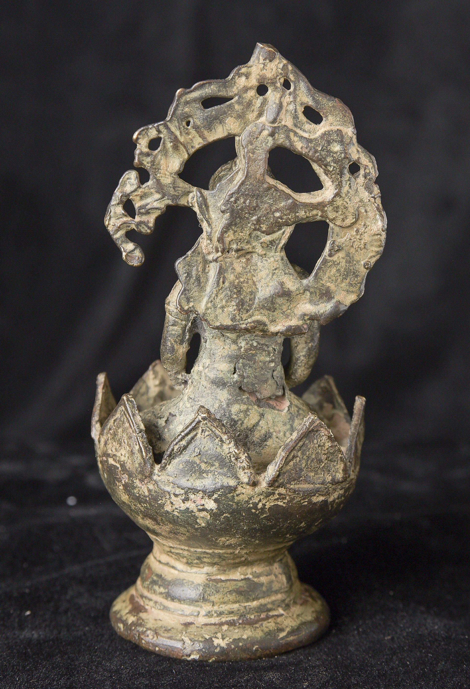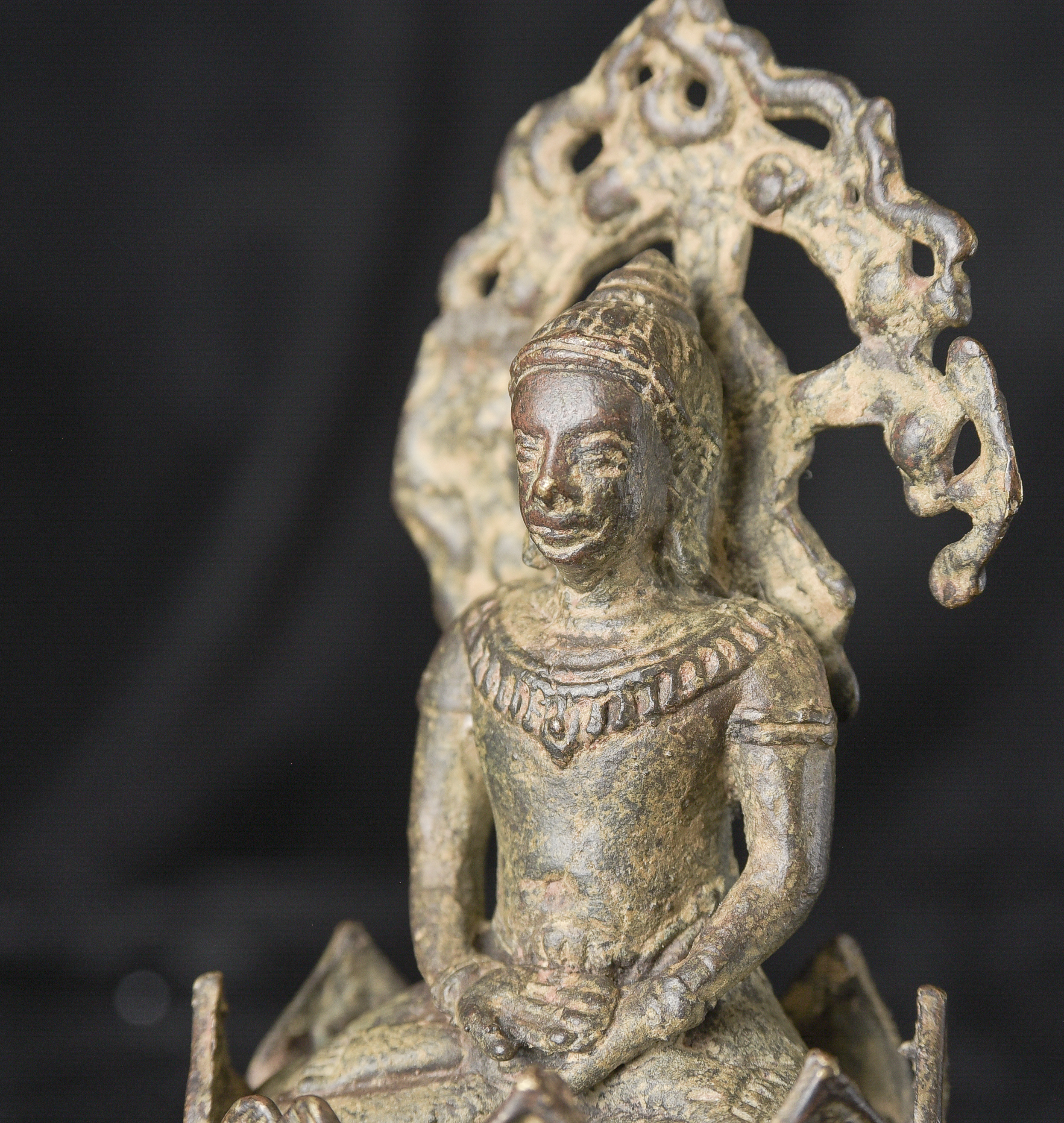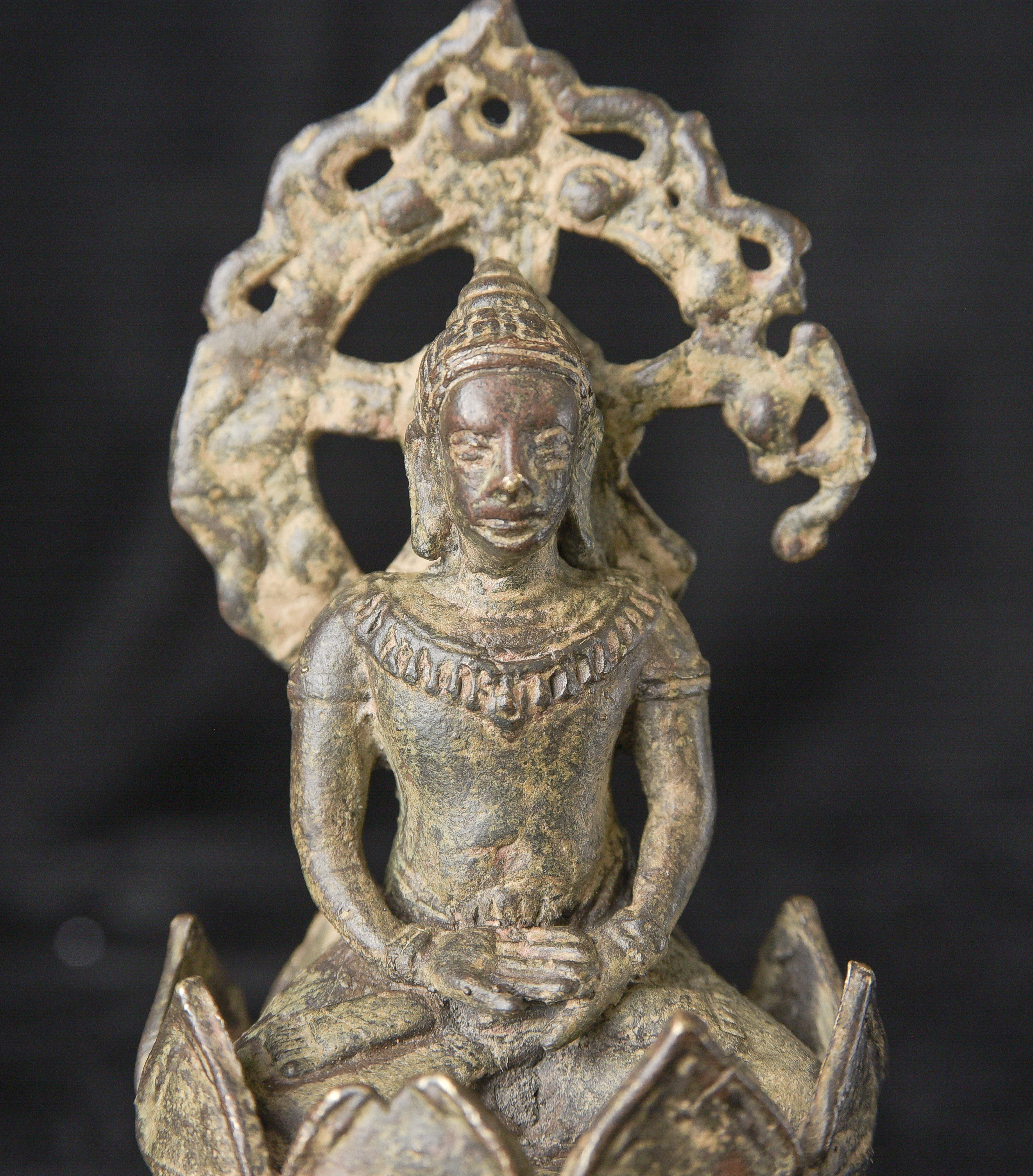 Deeply serene, unusual Java Buddha, 14th-17th Century or earlier. This is a very uncommon type. I have seen three of this type in 30+ years of searching. The last photo in the series shows two similar pieces, items 6647 and 6774. I used to believe these were Burmese, but research shows they are more likely from Java and older than I had originally thought. Domestic Packing and shipping are included. (5"H x 2.25"W x 2"D ) - 315g.