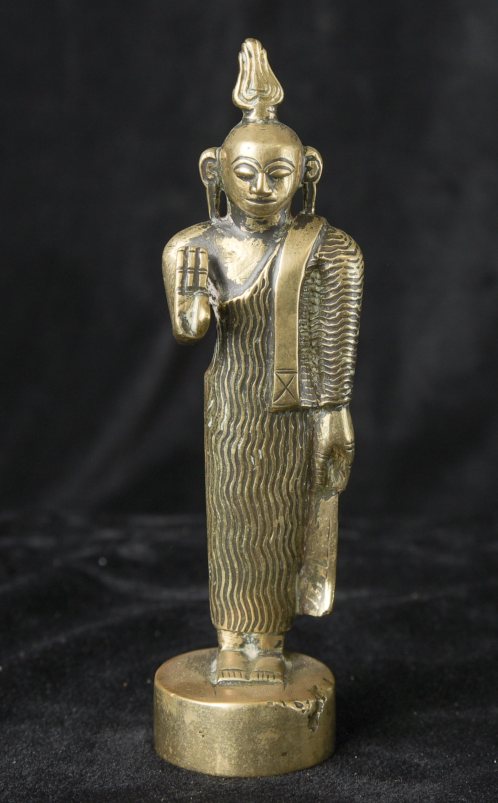18 C Sri Lankan Kandy style Buddha. Well cast classic example. ( 5.25"H x 1.5"W x 1.25"D ) - 210g.