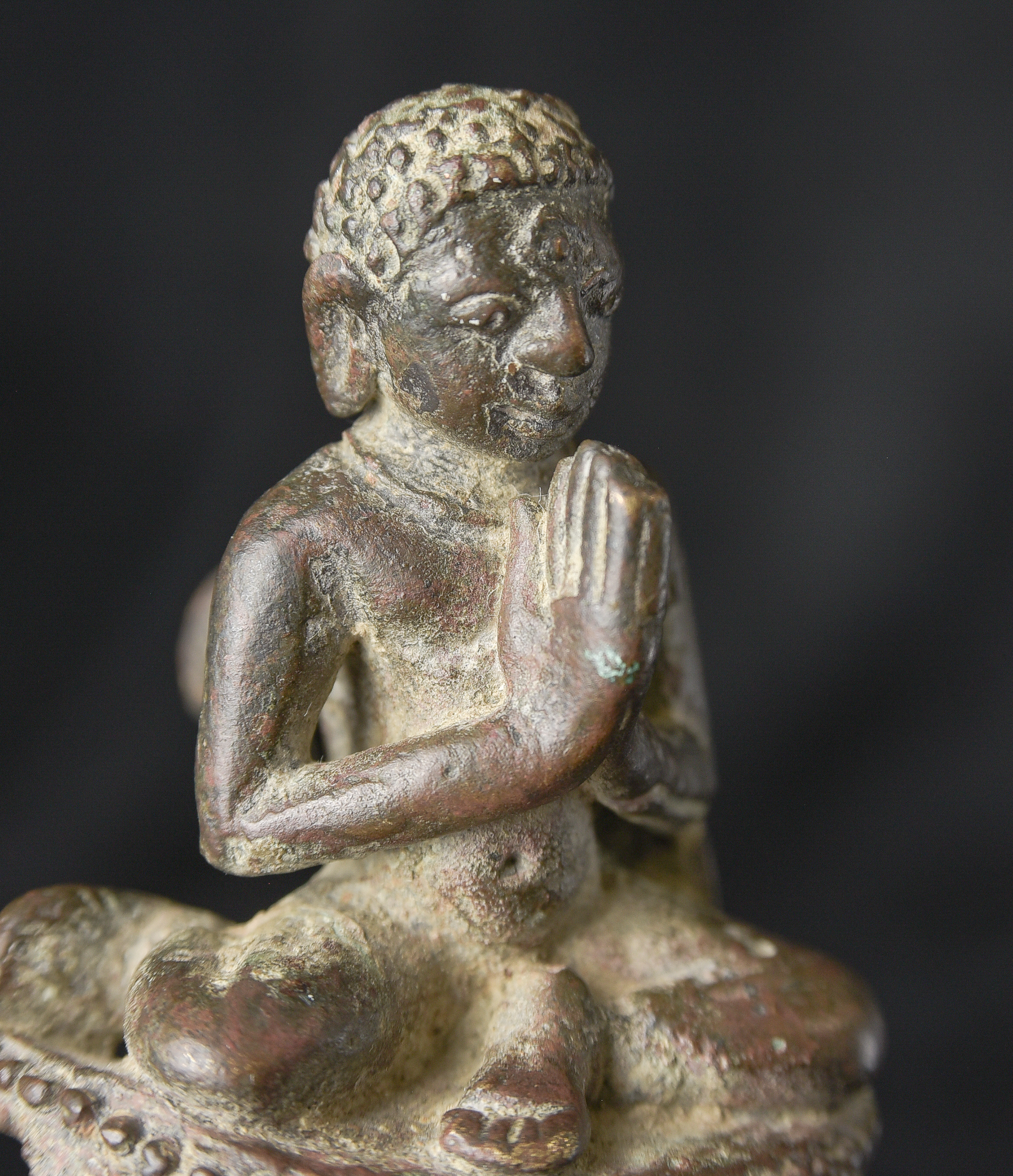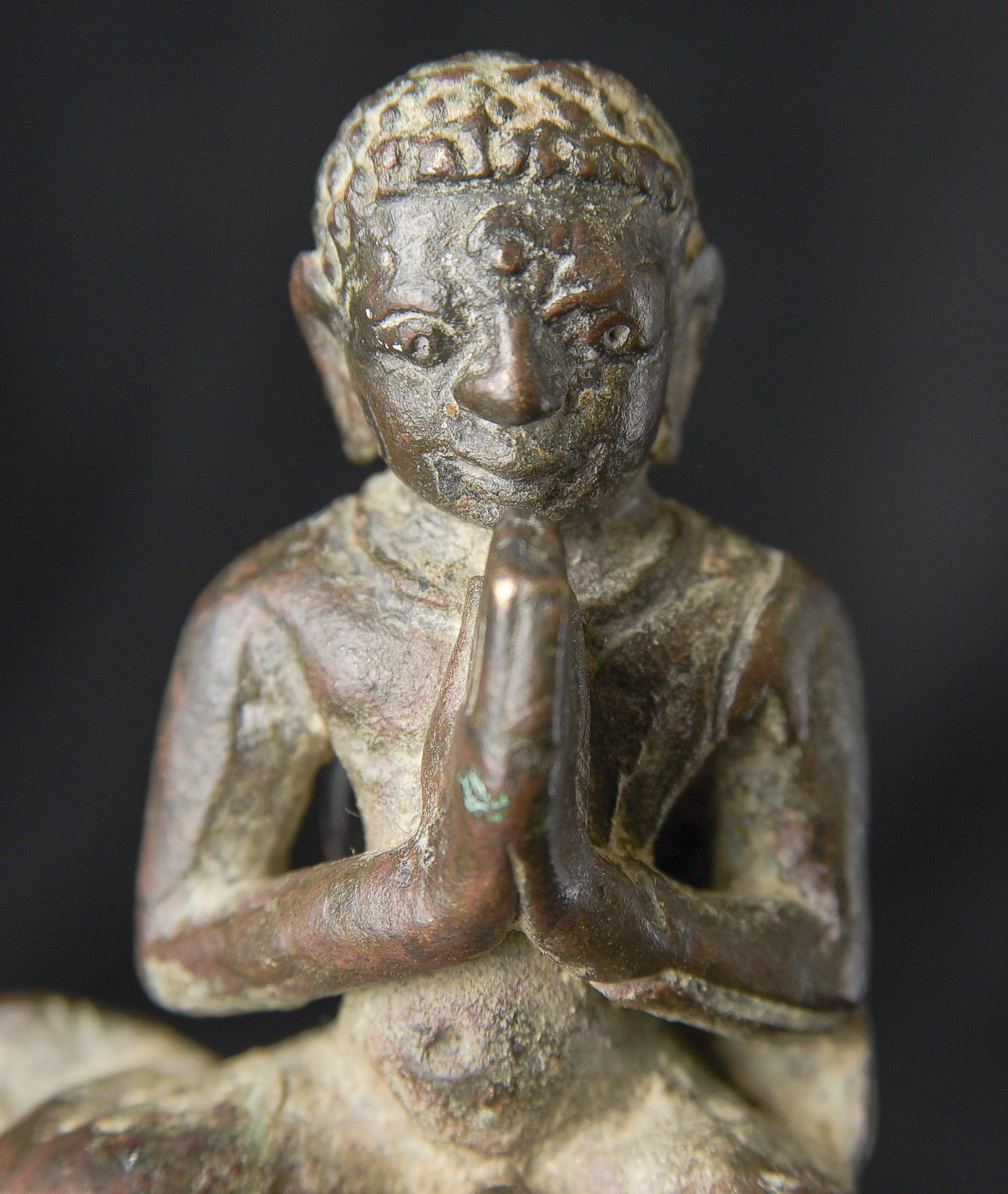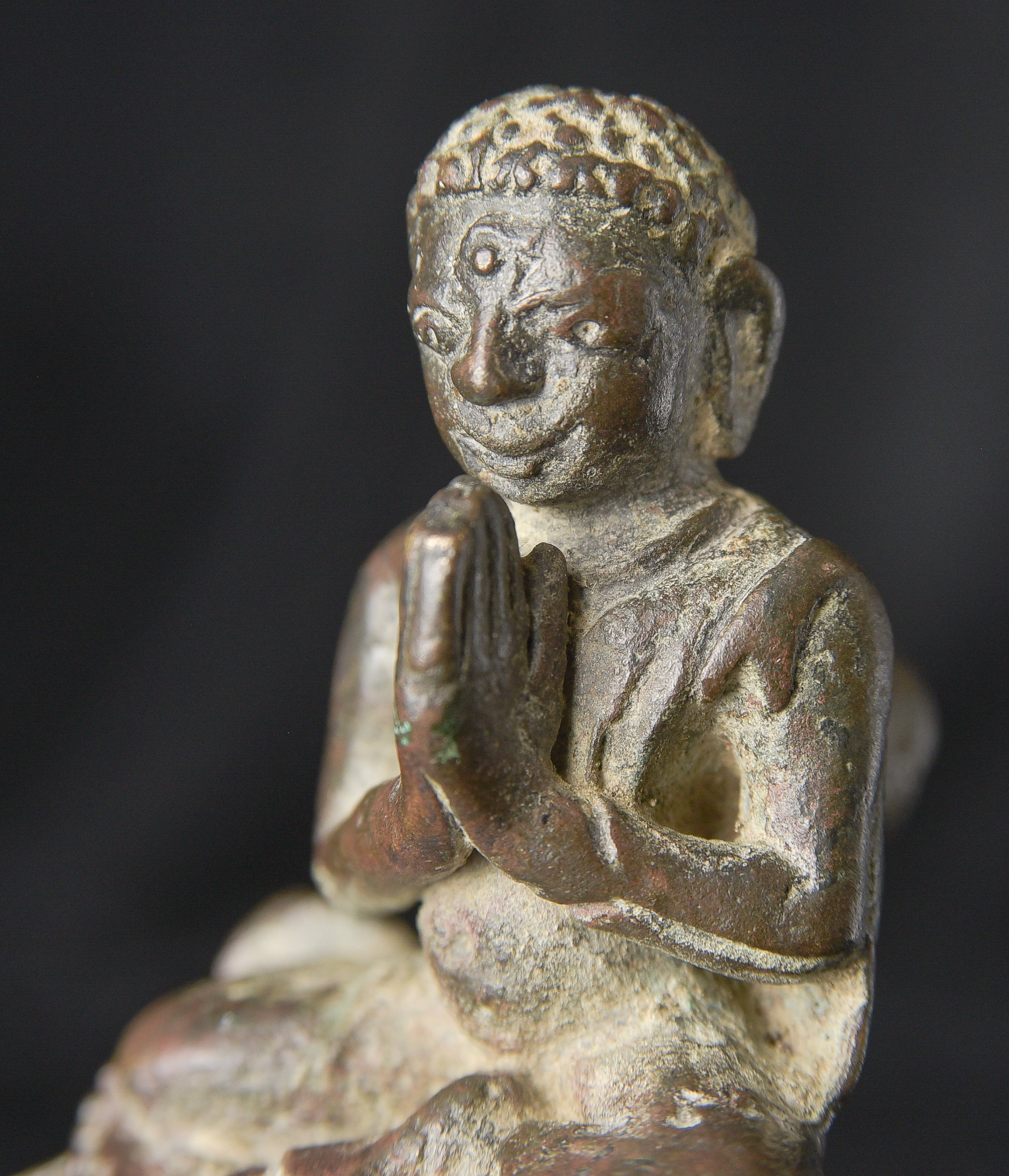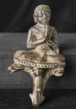 Delightful Burmese solid-cast monk is likely late Pyu/Pre Pagan , and from the ninth 10th century. Very rare example. It has an especially pleasing countenance and overall presence. While small, with its beautiful face and true charisma, it feels much larger than it actually is. I’ve never had another piece like it. ( 3.25"H x 1.75"W x 1.5"D ) - 190g.