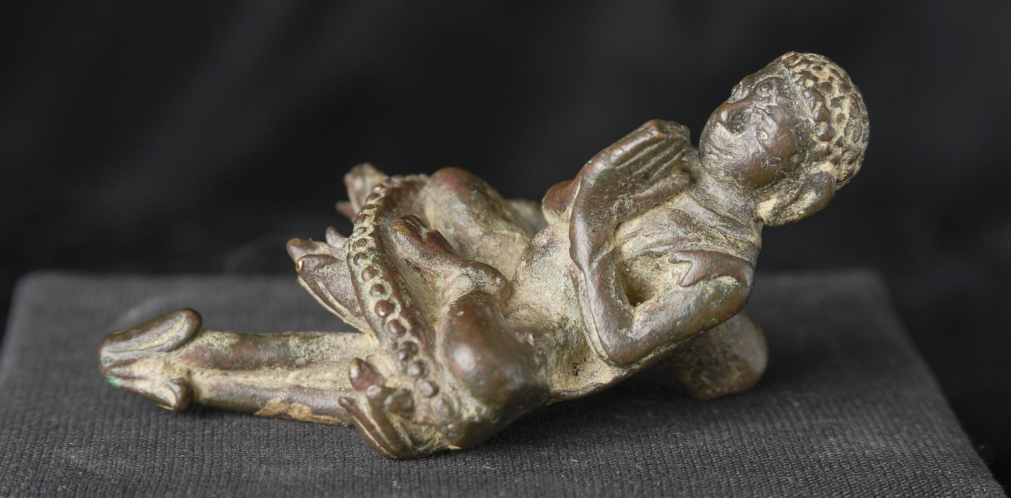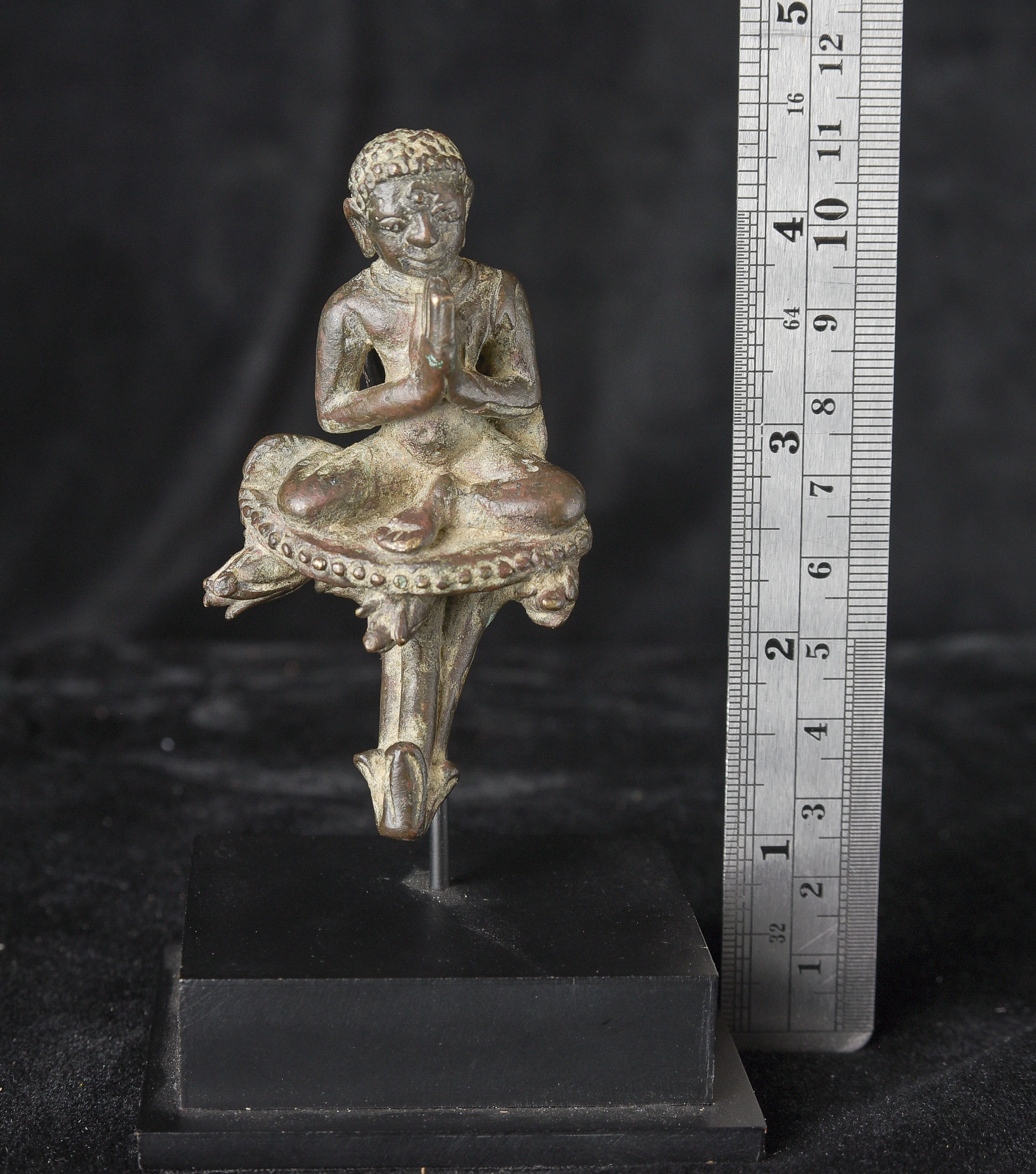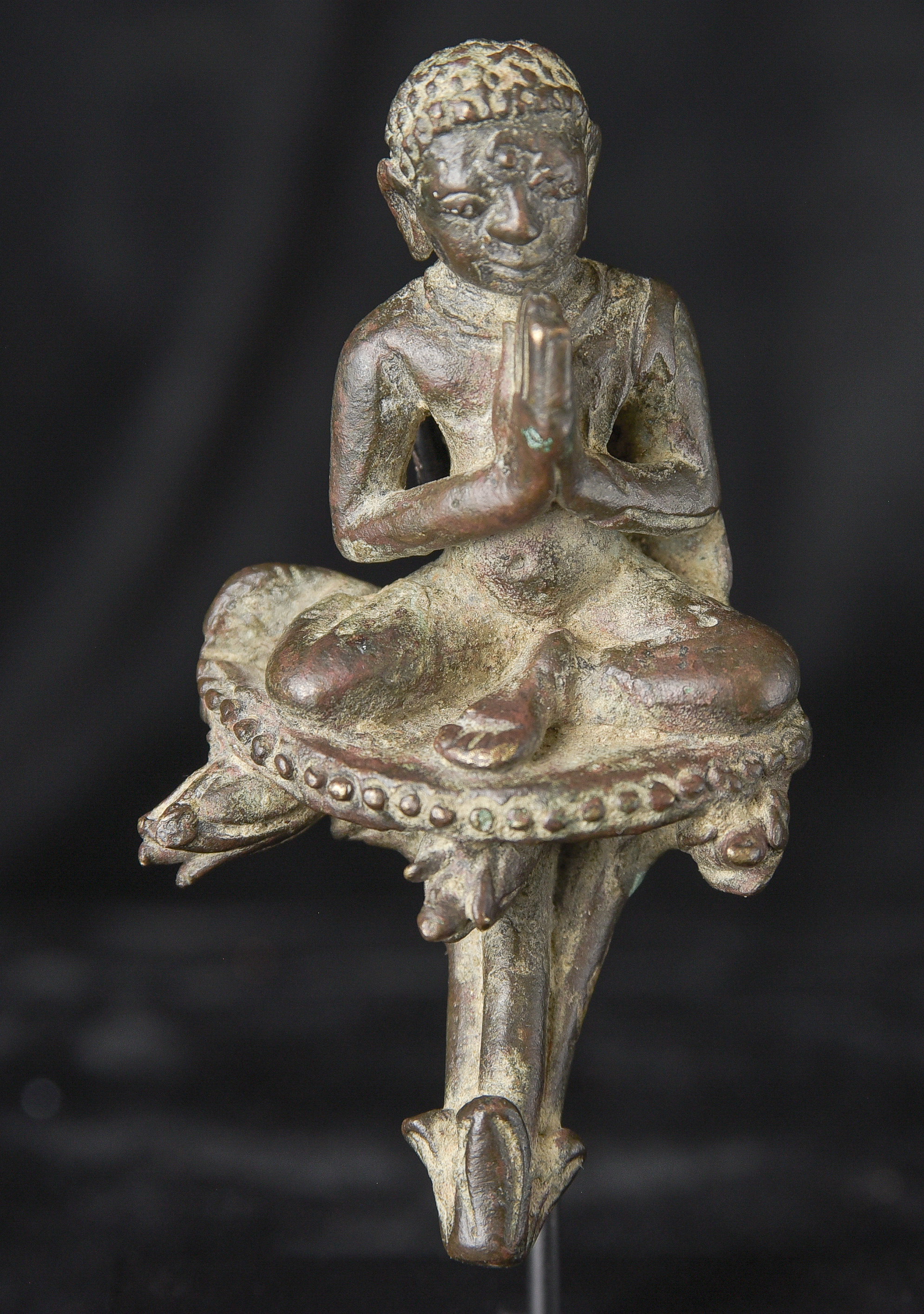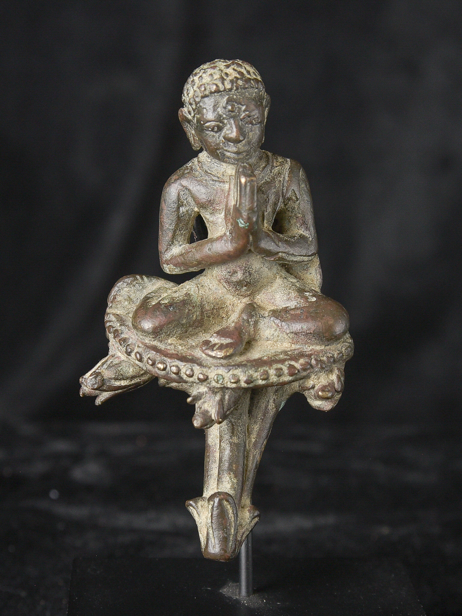 Delightful Burmese solid-cast monk is likely late Pyu/Pre Pagan , and from the ninth 10th century. Very rare example. It has an especially pleasing countenance and overall presence. While small, with its beautiful face and true charisma, it feels much larger than it actually is. I’ve never had another piece like it. ( 3.25"H x 1.75"W x 1.5"D ) - 190g.