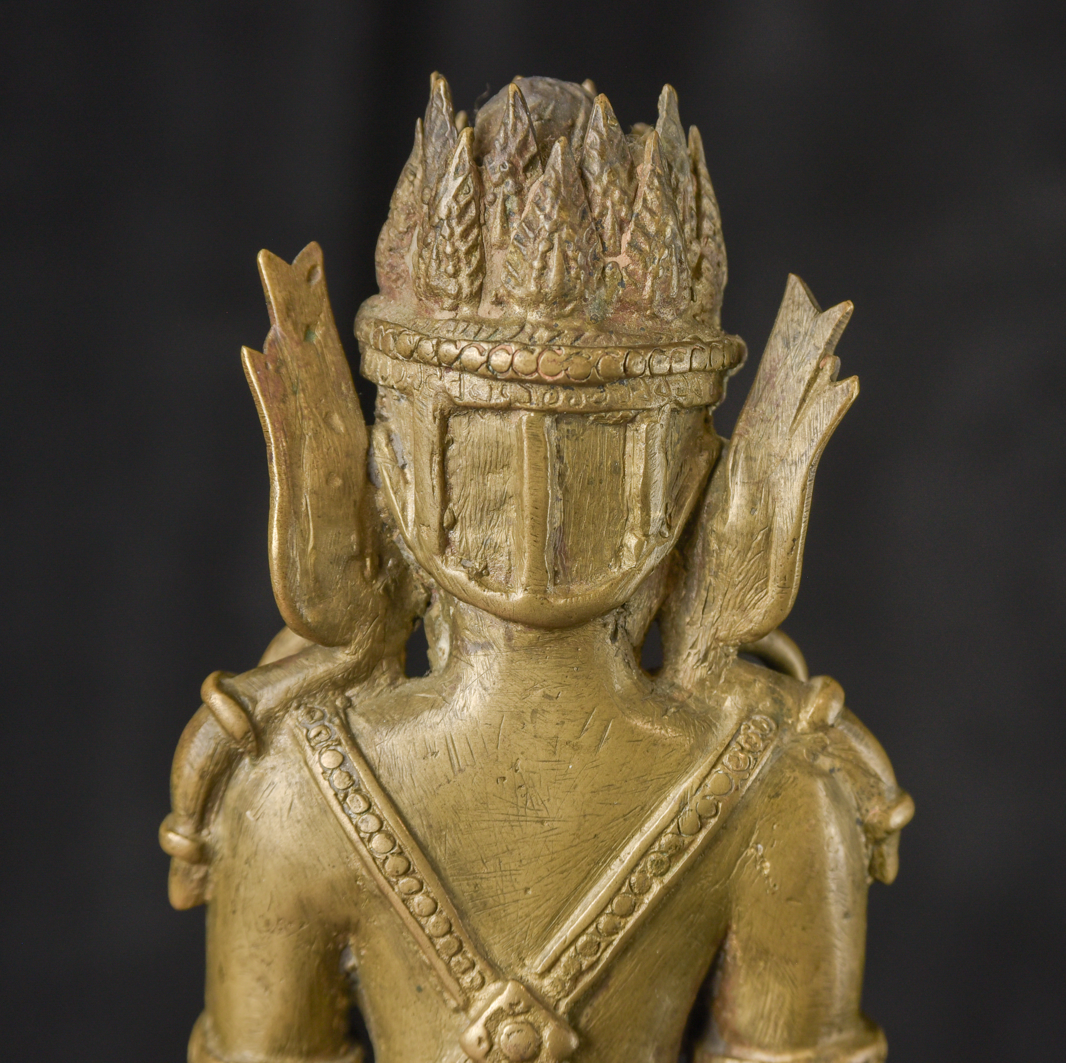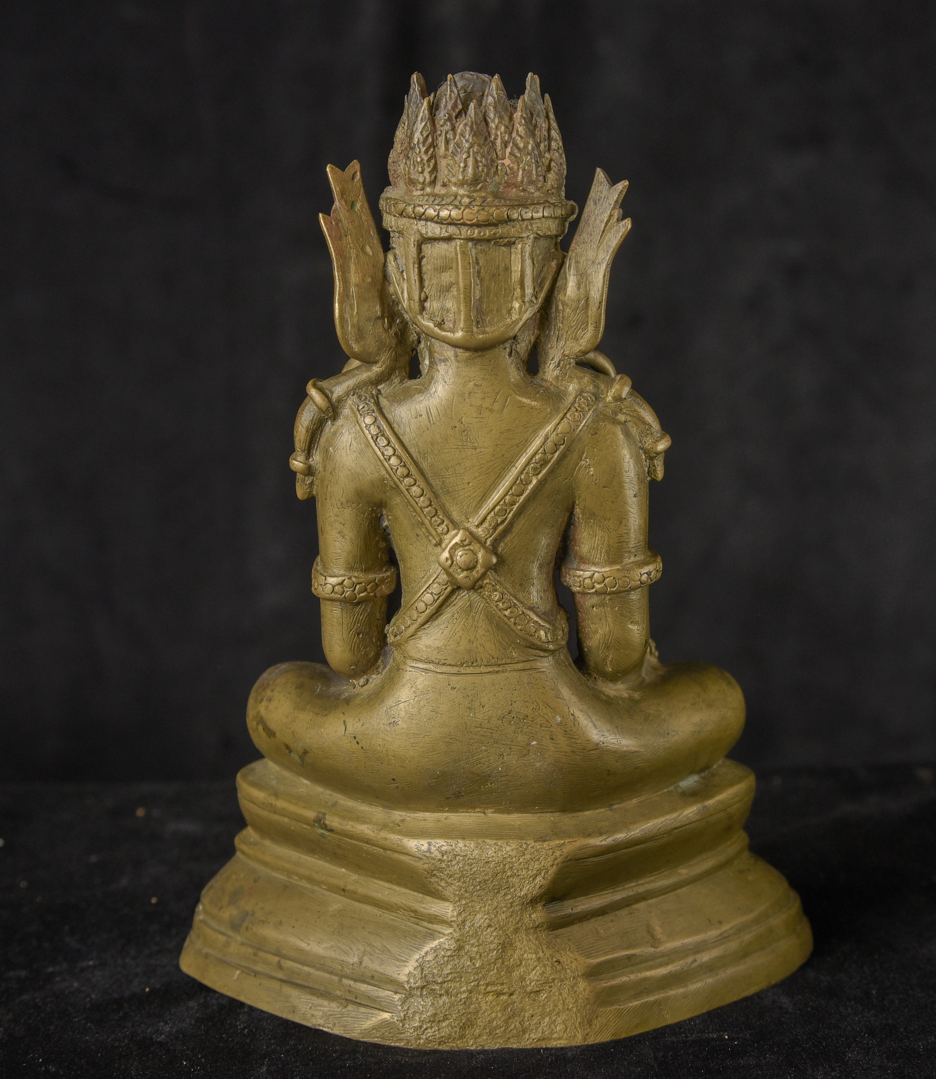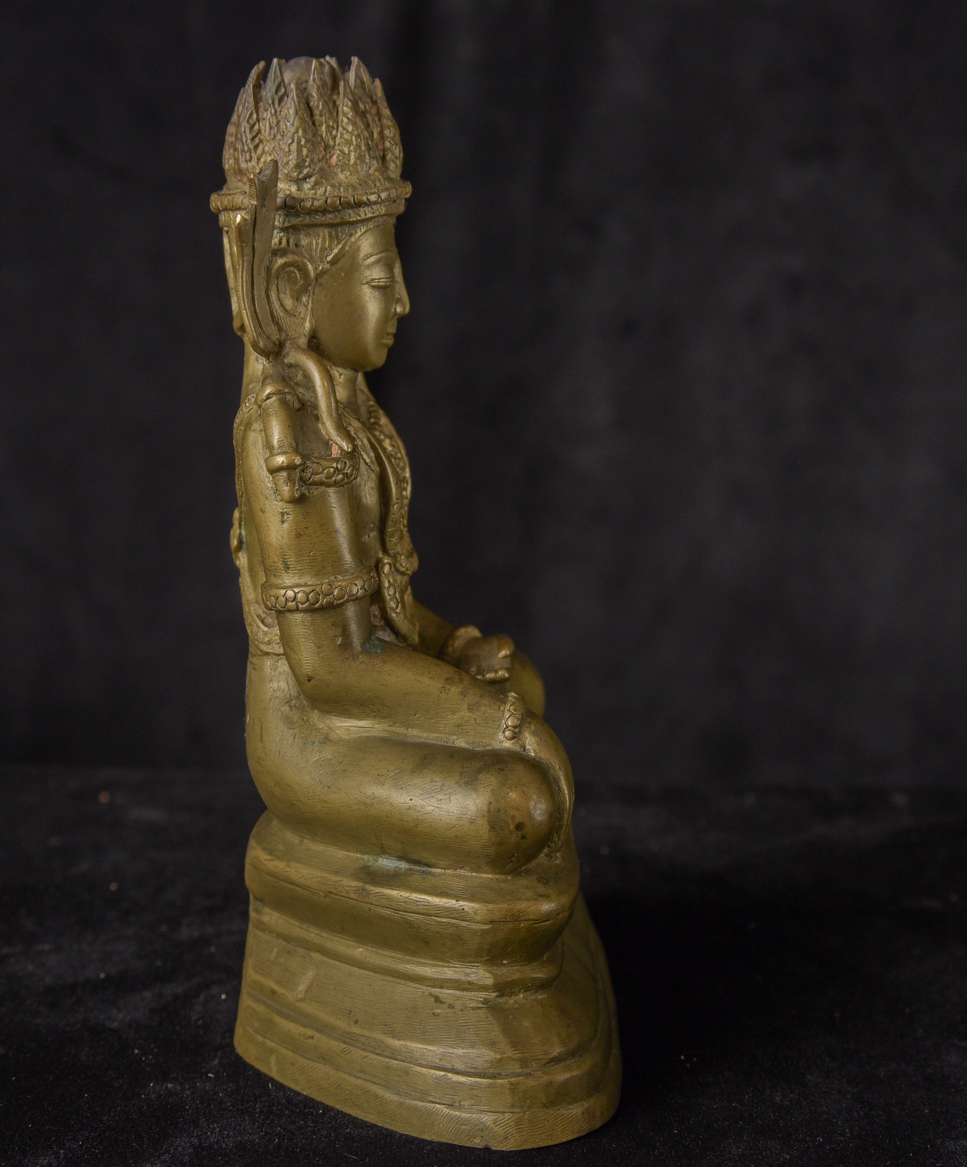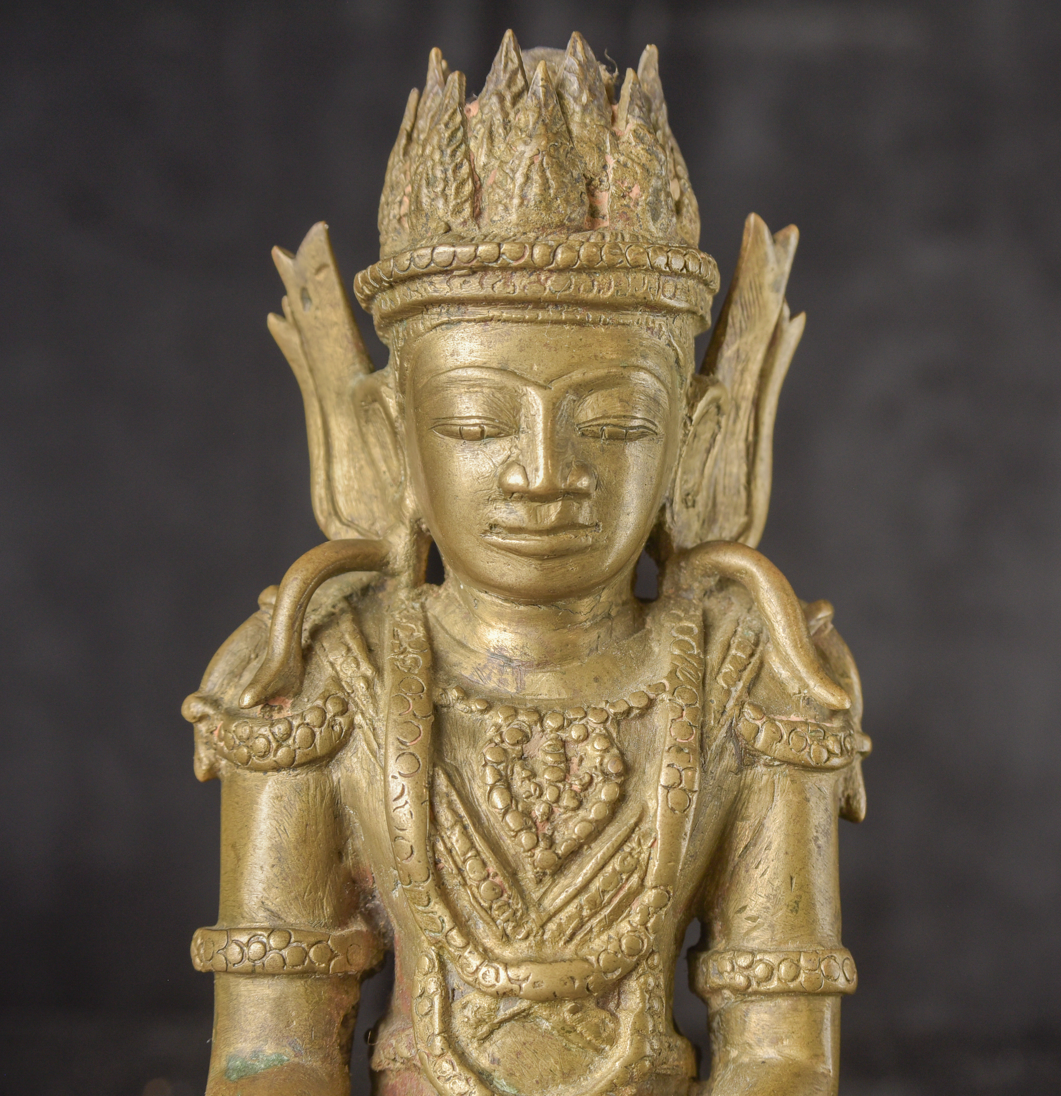 19th century Burmese, Arakan style bronze, or brass Buddha. Very nice face, very unusual and complex crown. This is an uncommon type that I’ve seen very few of over the years. A very appealing ( 6.5"H x 4.75"W x 2.5"D ) - 1.52lbs