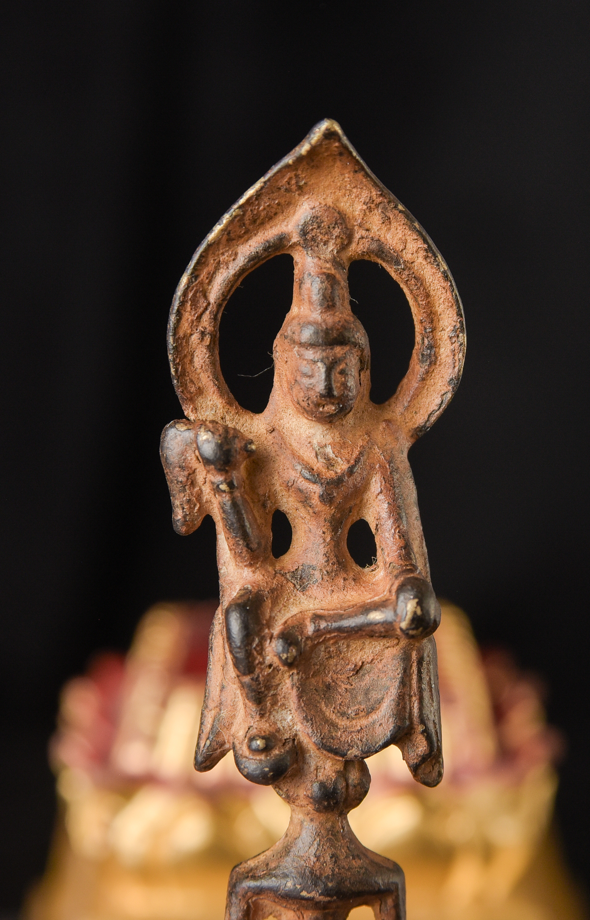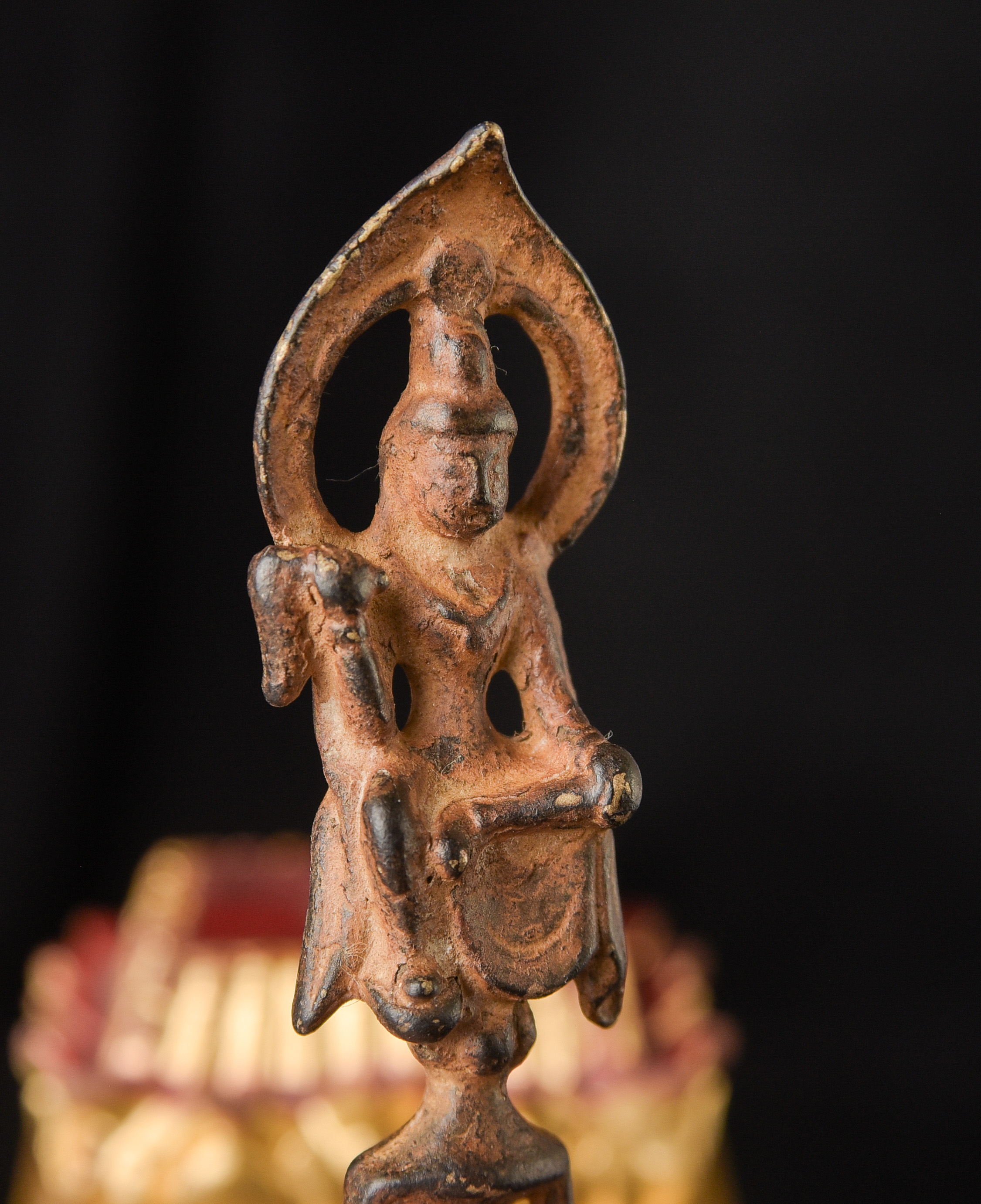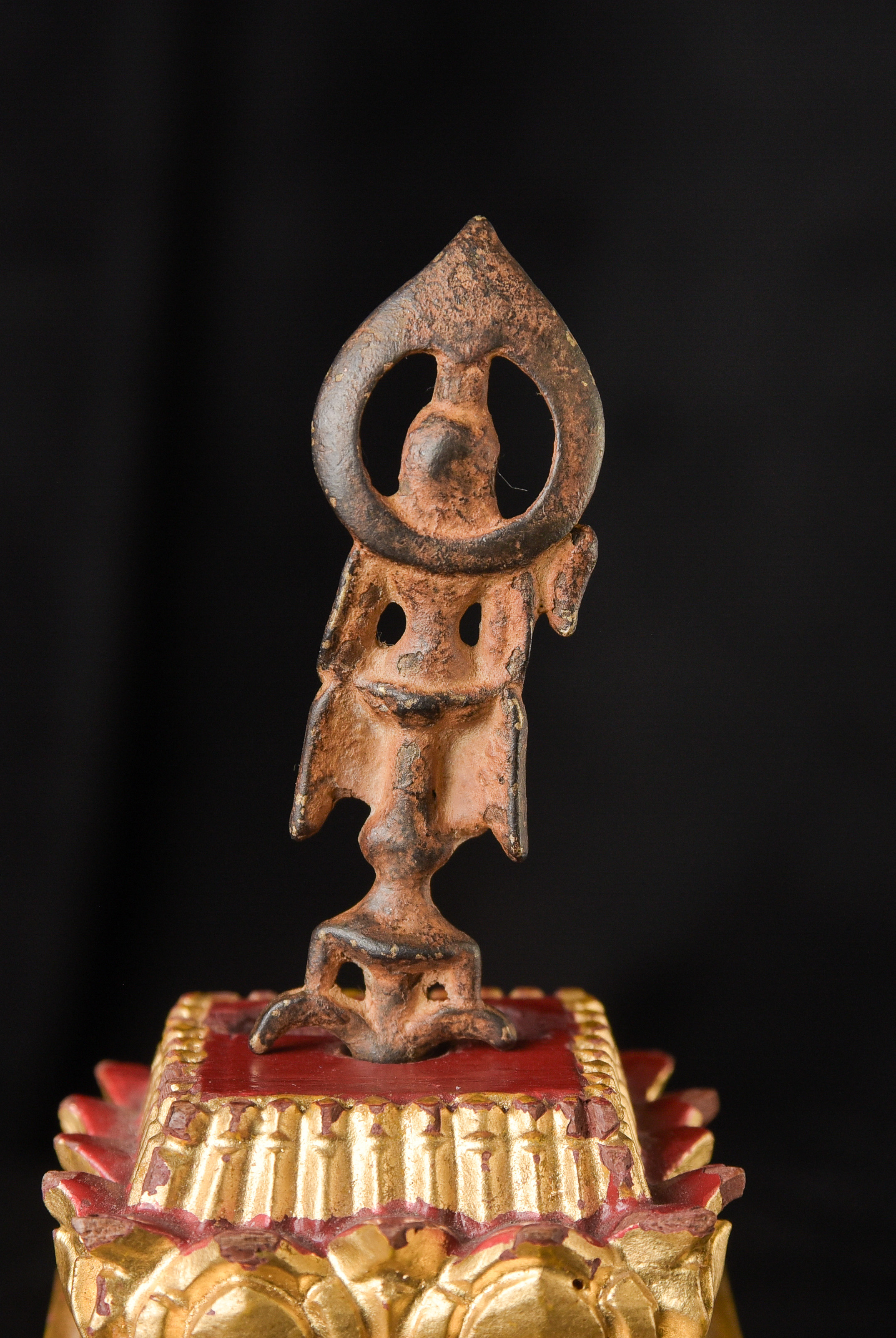 19th century Thai AMBER Saenkajai . He is a Buddhist figure who was a devotees of the Buddha, who brings good luck and good fortune. This is an amazing miniature sculpture in a number of ways. First, it is a very fine carving – if you look at the face, you can see skill of the carver. Second, the very few Buddhist Amber carvings you see are almost all carved of reconstituted Amber, which is basically melted down Amber. This is carved from a natural block of amber. Finally, it has remarkable surface to it, which shows 100+ years of devotion. I could try and describe this, but it’s better to simply look at the photos. In addition to the main figure, there is the bird which is the symbol of the Ratanakosin Dynasty carved into each side of the base. This is extremely rare and special little statue. ( 2.75"H x .75"W x .375"D ) - 20g.