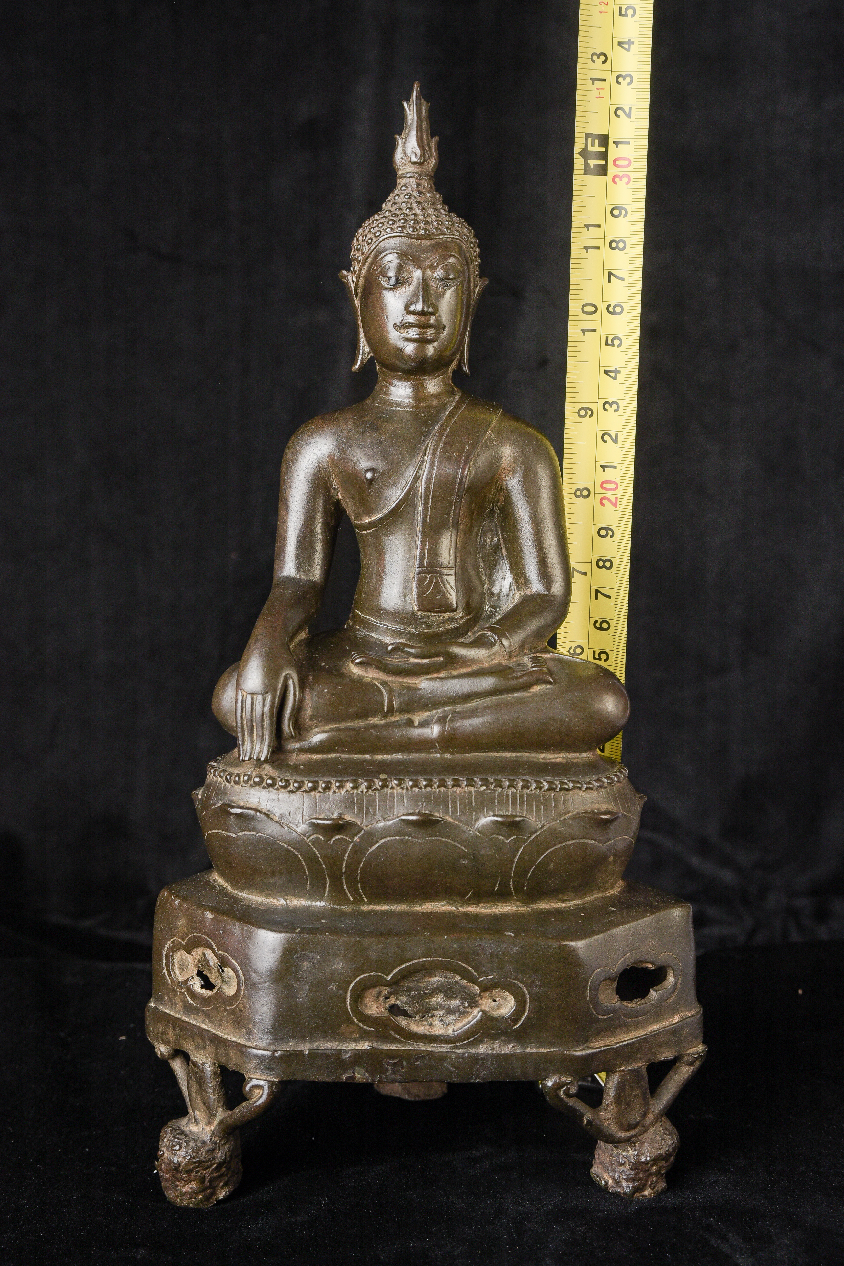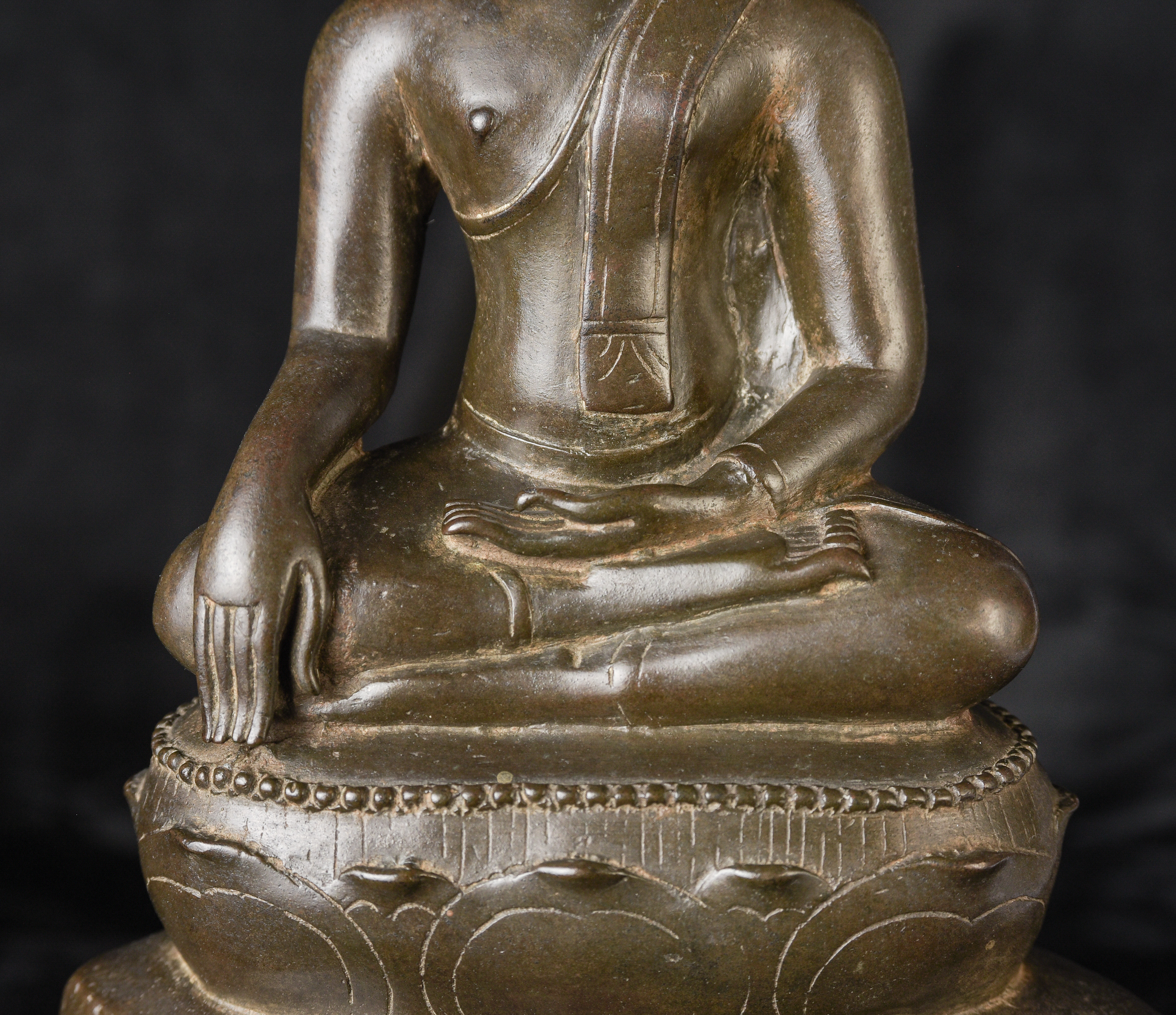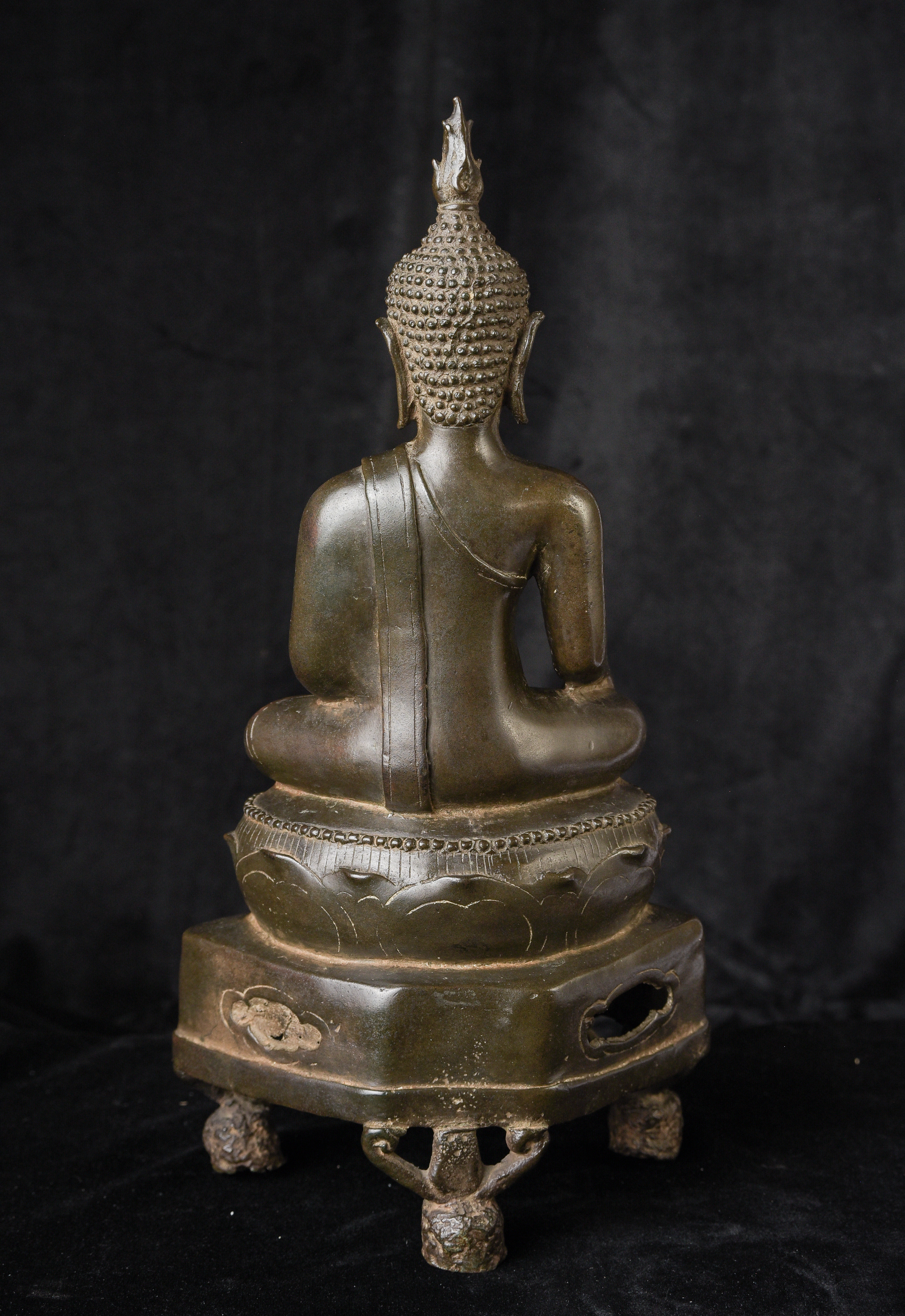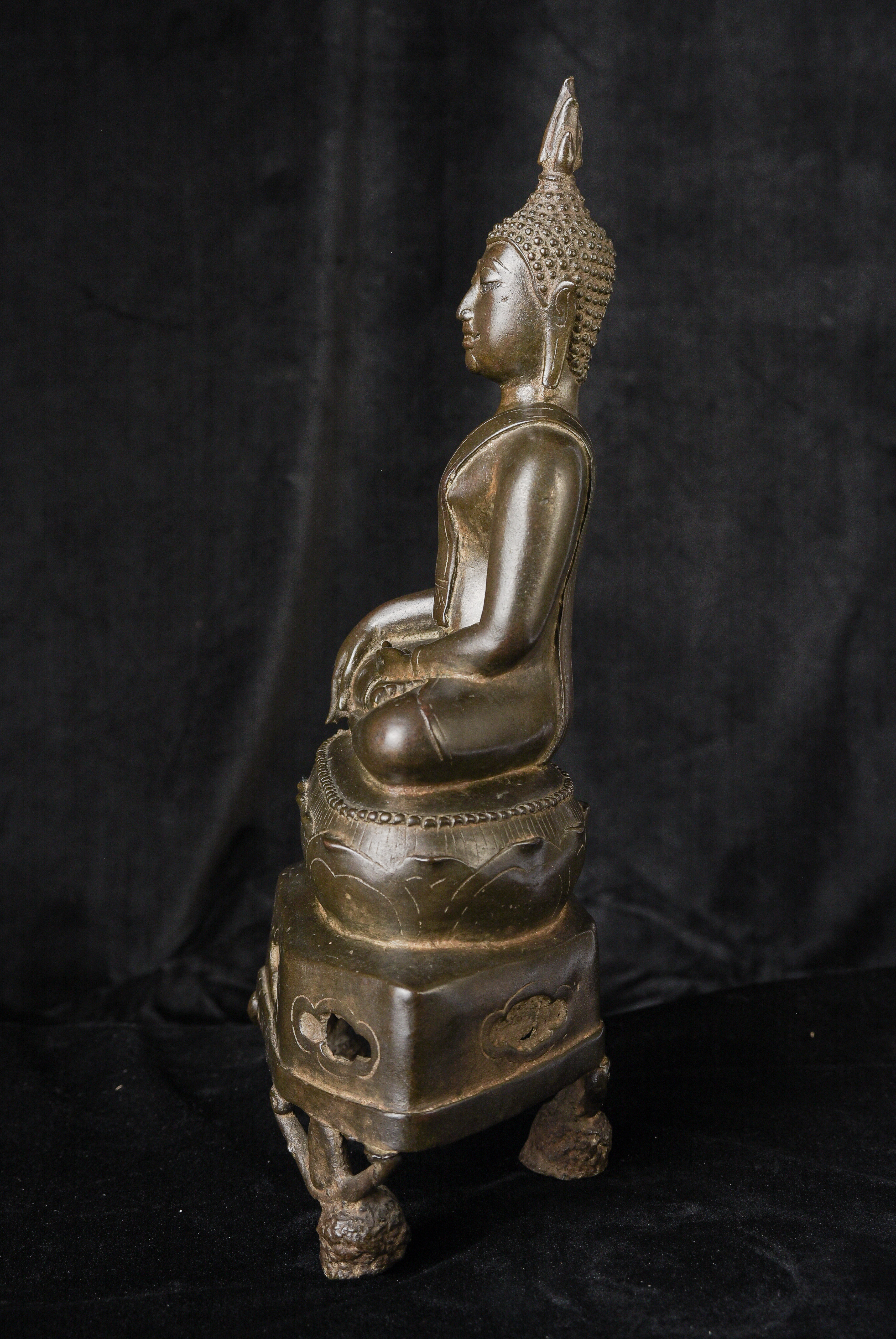 15/16th century northern Thai bronze Buddha. This is an exceptional example. Beautifully sculpted, cast, and finished. It has a superb patina with a mirror like surface. The face radiates, joy and happiness. The eyes, wow, not complete, appear original, which is rare to find. Overall, it is a superb Buddha. ( 13"H x 6.5"W x 4"D ) - 4.92lbs