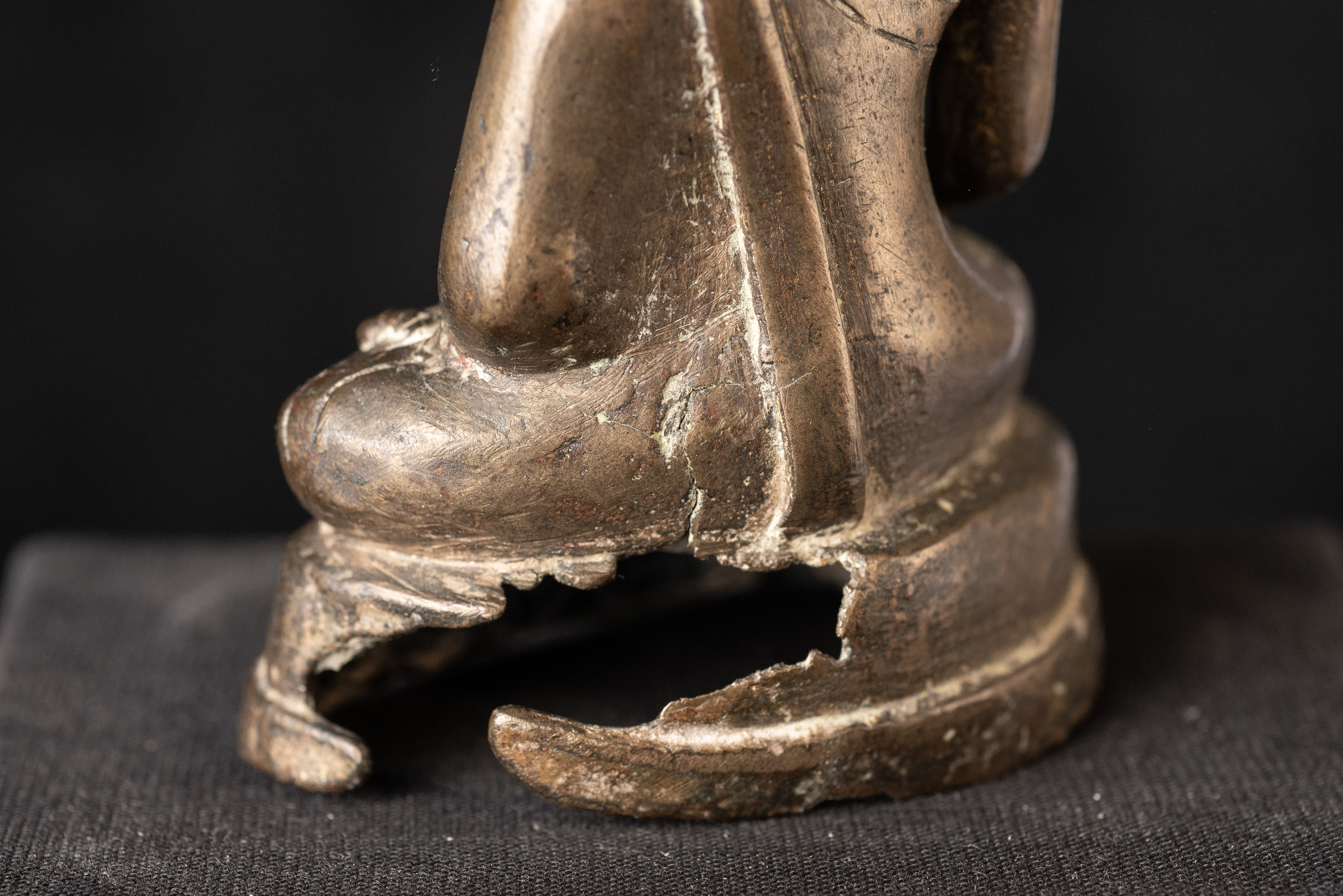 The sculpture is well cast with pleasing proportions and a confident sense of balance. Subtle wear and surface variations are consistent with age and devotional handling, contributing to the bronze’s naturally developed patina. The modeling of the torso and limbs is restrained yet elegant, allowing the purity of form and expression to take precedence over excessive ornamentation.