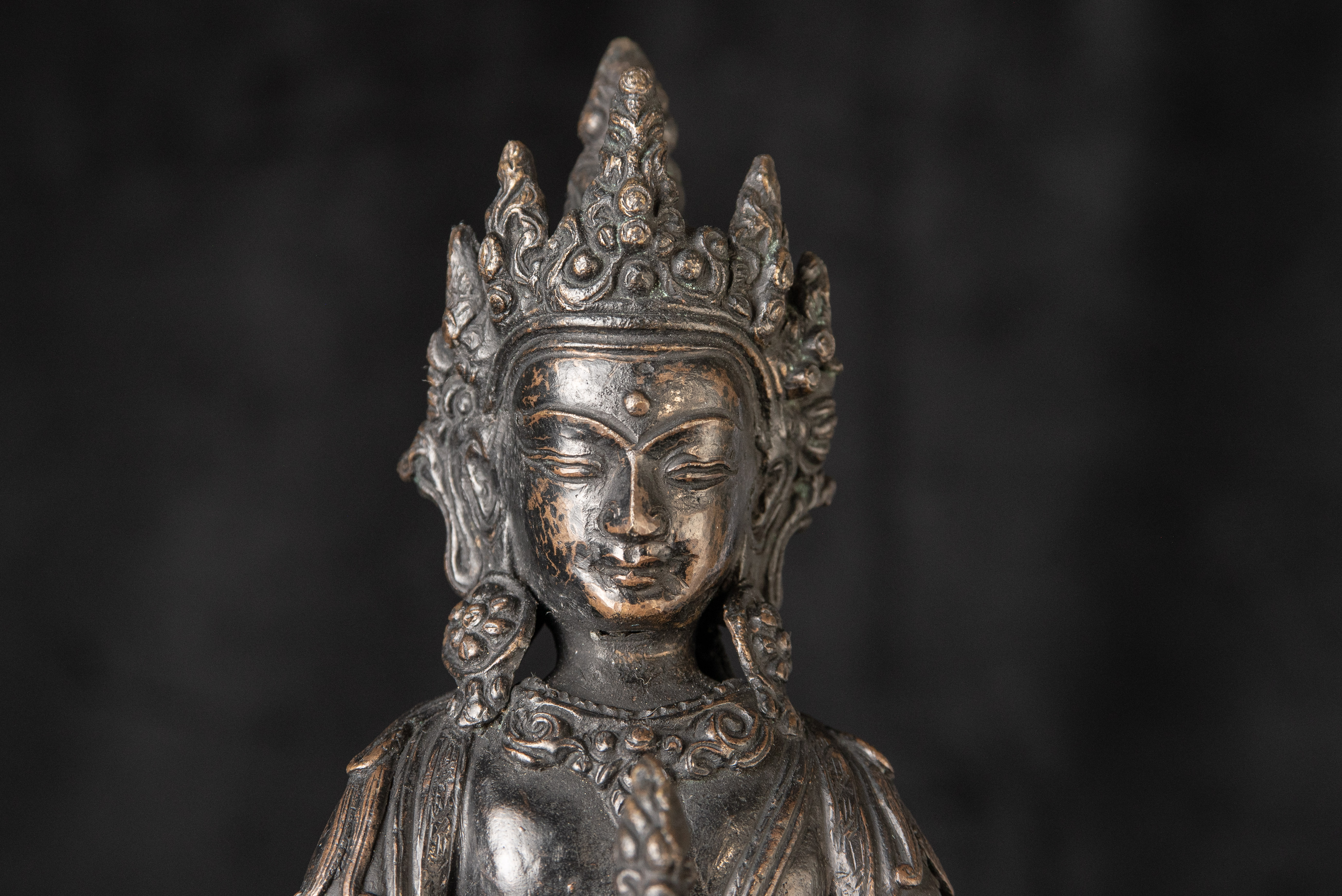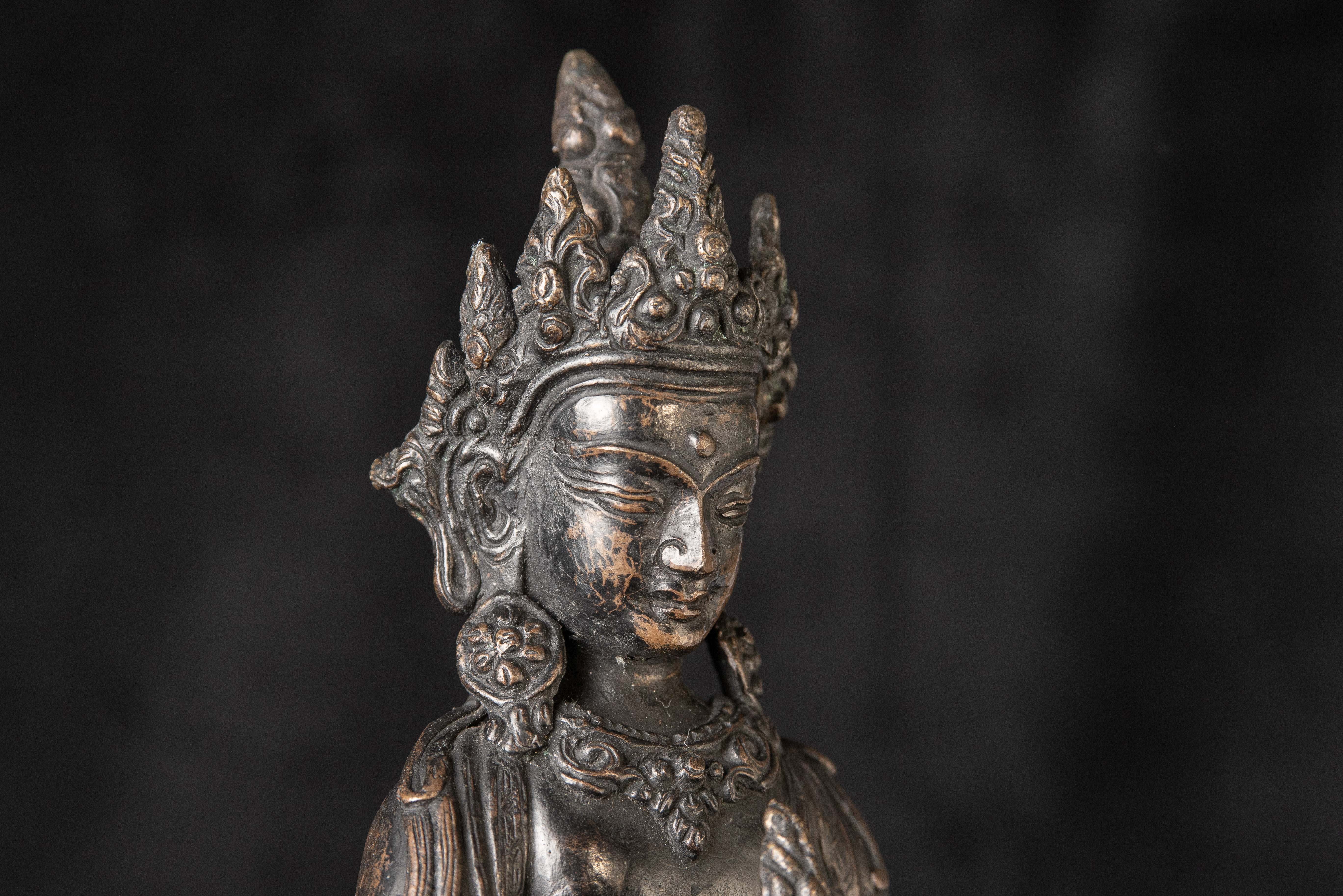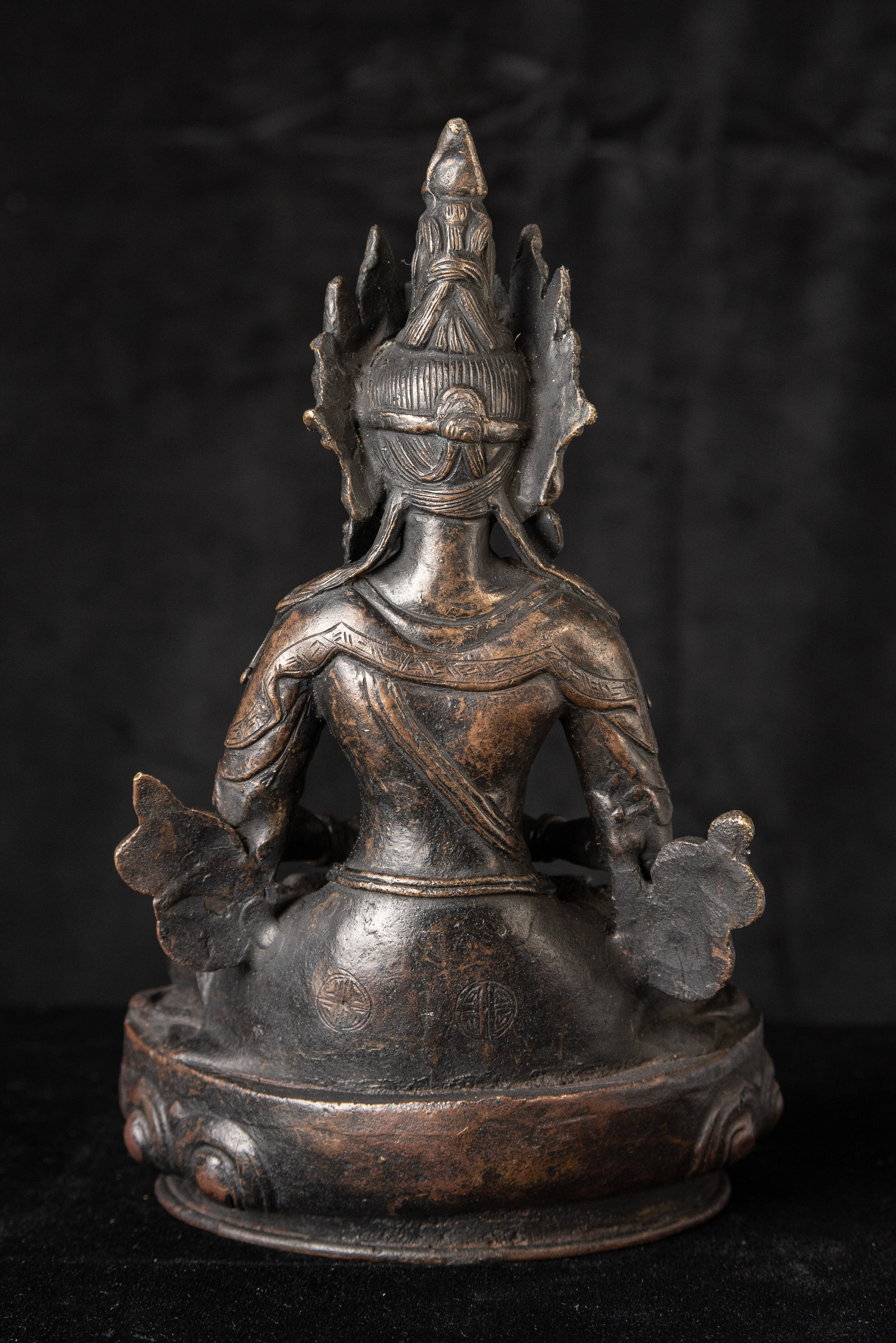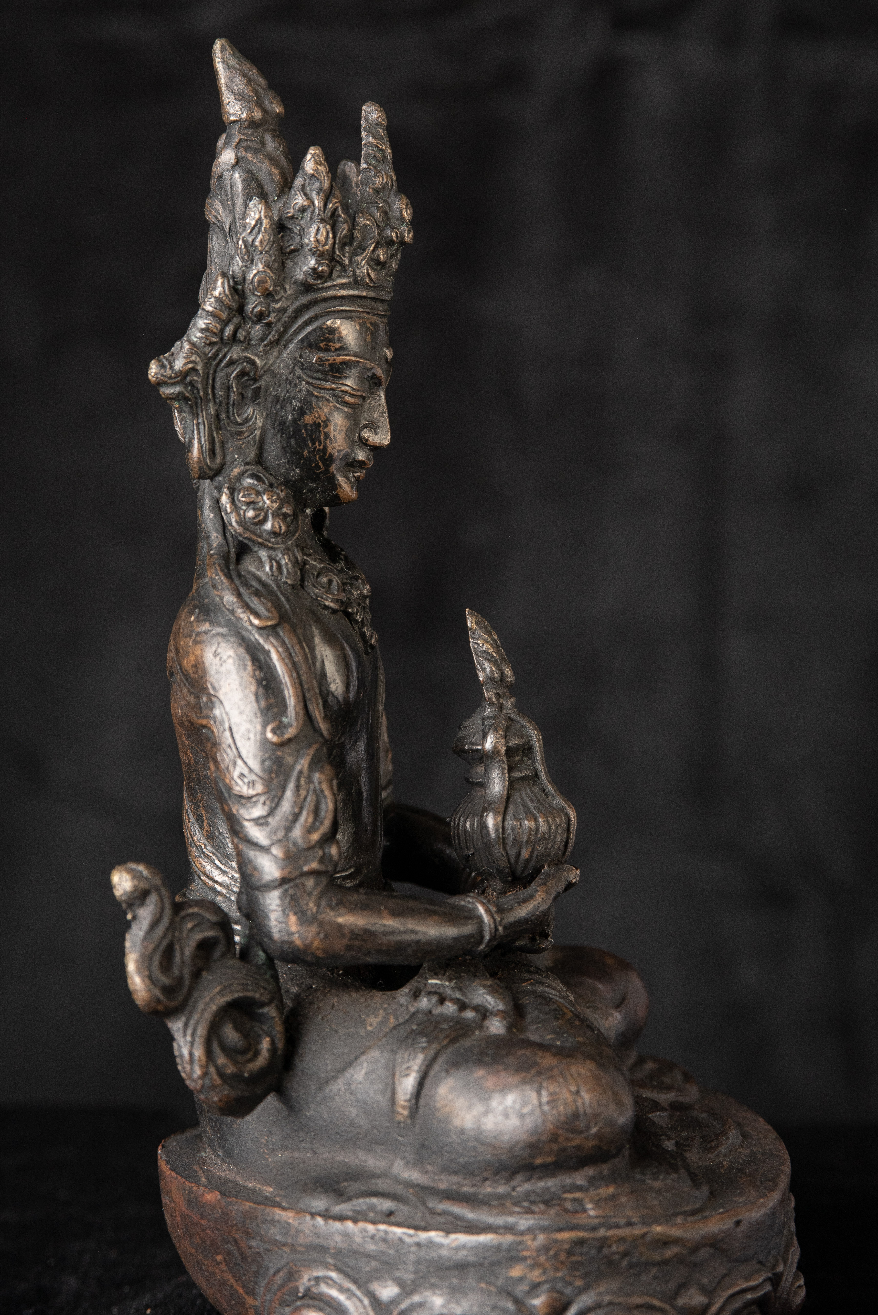 Old Nepalese Bodhisattva of Long Life (Amatayus). Very well-cast example. Good size at 7.75 inches tall. Likely had a cap that covered/consecrated the underside for much of its life. (7.75"H x 5"W x 3.75"D) - 2.18lbs