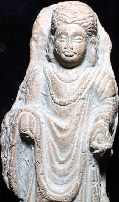 Small Gandharan Buddha from a fine old estate collection. Outside my area of expertise, but very much looks to be the real thing. Purchased with a group of early miniature and small bronze, stone, and terracotta Buddhist items collected over several decades. Several other will be listed in the near future. It is 3 inches long.