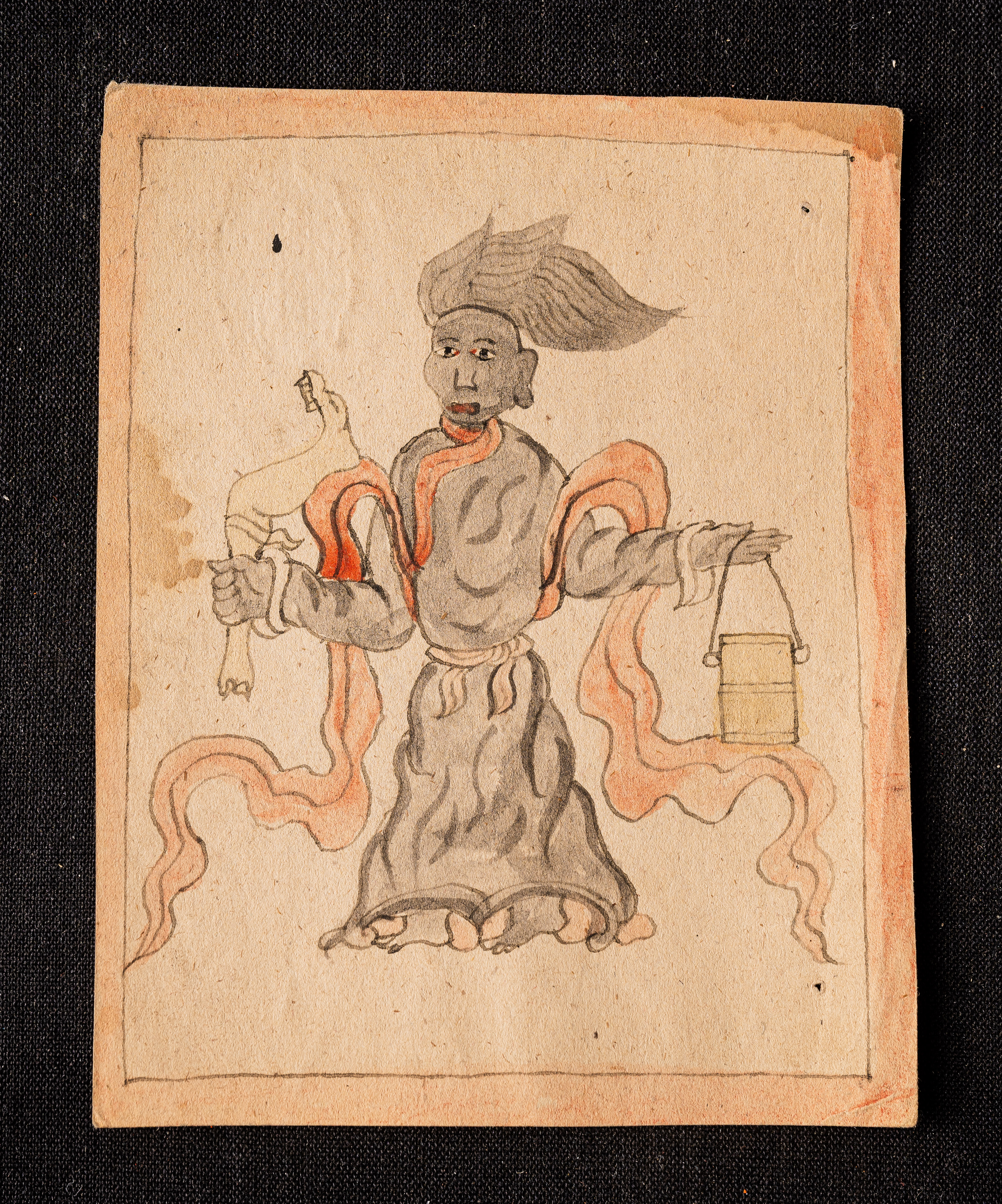 19th to early 20th century Miniature Mongolian Buddhist paintings of Folk Figures. Two of the three have writing on the back, which appears to be the name of the figure on the front. I don’t know who these are supposed to represent. Collected 40 years ago when Mongolia was opening to the west and it was possible to find sets like this. They are part of a group of Mongolian Buddhist Training cards and small Thangkas and paintingsI collected in the late 1980s and early 1990s as part of my personal collection. I had thought I had put my entire collection up for sale to the Buddha gallery website and into my recent auctions, but I recently discovered a group of more than 50 items that I had put away for safekeeping and then lost track of - they will now all go up for sale. (The price is for the set of 3. ( 4.25"H x 3.25"W )