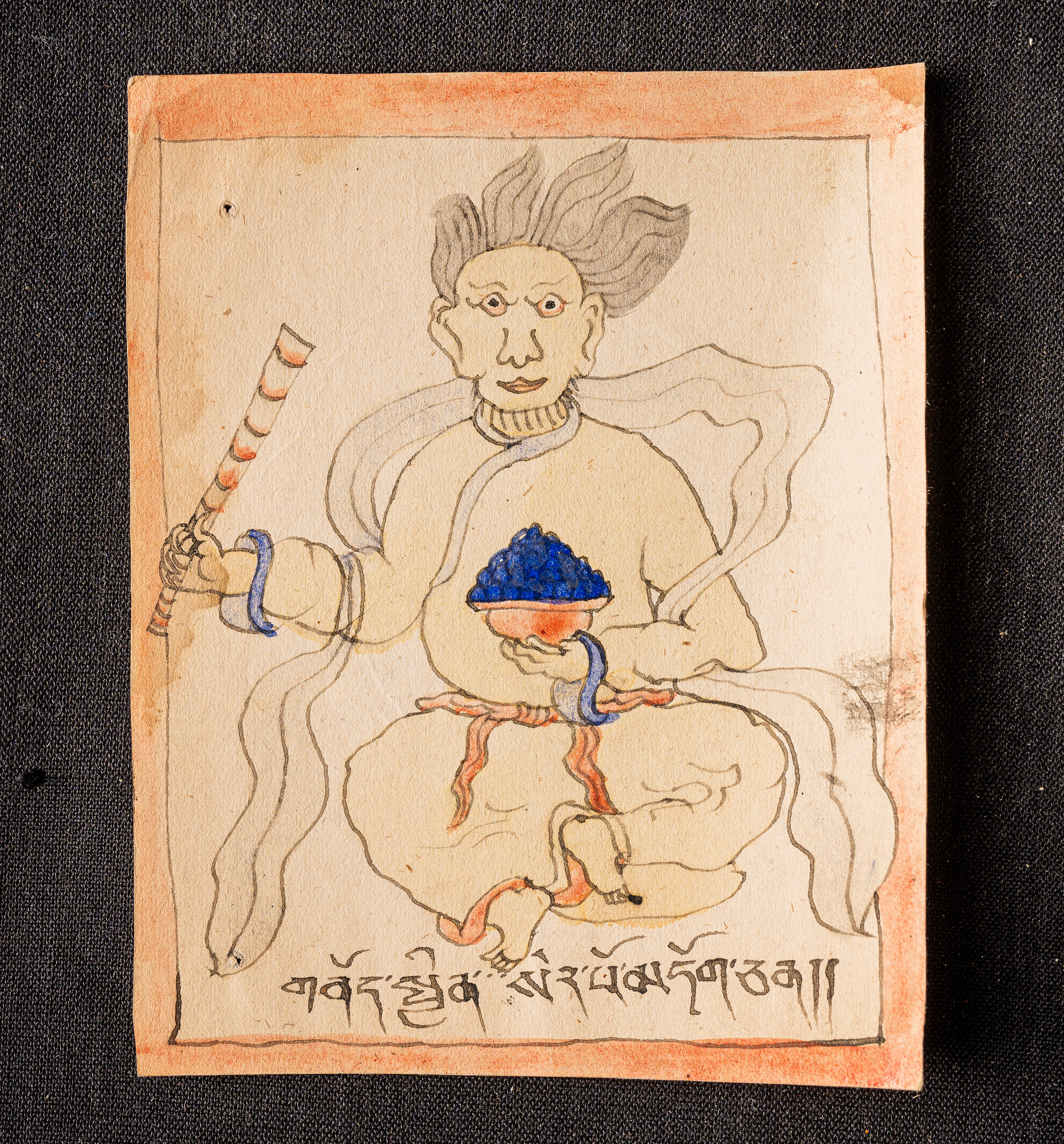 19th to early 20th century Miniature Mongolian Buddhist painting of Folk Figure. I do not know who this is supposed to represent. Collected 40 years ago when Mongolia was opening to the west and it was possible to find items like this. It is part of a group of Mongolian Buddhist Training cards and small Thangkas and paintingsI collected in the late 1980s and early 1990s as part of my personal collection. I had thought I had put my entire collection up for sale to the Buddha gallery website and into my recent auctions, but I recently discovered a group of more than 50 items that I had put away for safekeeping and then lost track of - they will now all go up for sale.( 4.25"H x 3.375"W ). this auction is for one.