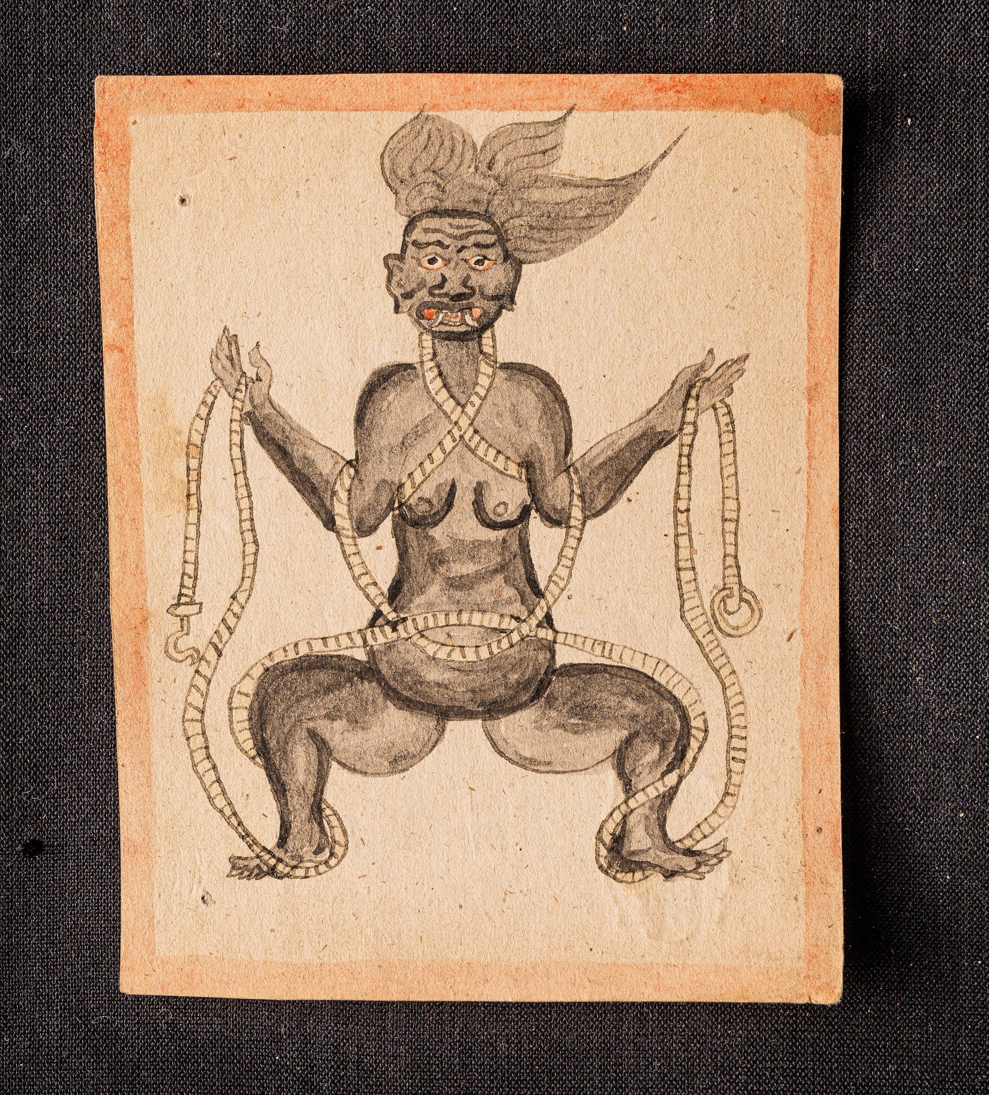 19th to early 20th century Miniature Mongolian Buddhist painting of Folk Figure. I do not know who this is supposed to represent. Collected 40 years ago when Mongolia was opening to the west and it was possible to find items like this. It is part of a group of Mongolian Buddhist Training cards and small Thangkas and paintingsI collected in the late 1980s and early 1990s as part of my personal collection. I had thought I had put my entire collection up for sale to the Buddha gallery website and into my recent auctions, but I recently discovered a group of more than 50 items that I had put away for safekeeping and then lost track of - they will now all go up for sale.( 4.25"H x 3.375"W ). this auction is for one.