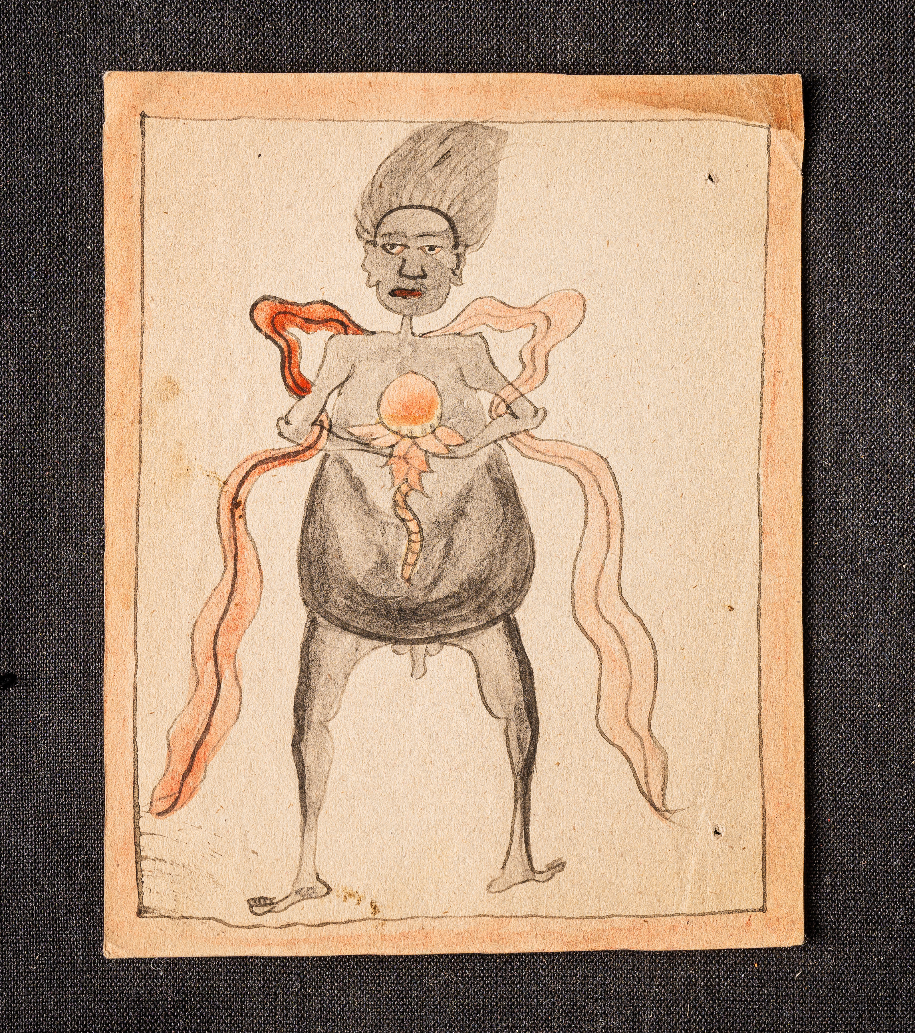 19th to early 20th century Miniature Mongolian Buddhist paintingof Folk Figure. It has writing on the back, which appears to be the name of the figure on the front. I don’t know who it is supposed to represent. Collected 40 years ago when Mongolia was opening to the west and it was possible to find sets like this. They are part of a group of Mongolian Buddhist Training cards and small Thangkas and paintingsI collected in the late 1980s and early 1990s as part of my personal collection. I had thought I had put my entire collection up for sale to the Buddha gallery website and into my recent auctions, but I recently discovered a group of more than 50 items that I had put away for safekeeping and then lost track of - they will now all go up for sale. (The price is for 1( 4.25"H x 3.25"W ) x 1