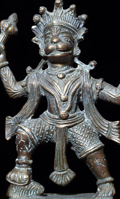 This is a lively and joyous Hanuman from India. Deeply expressive, almost everyone who sees him smiles. Probably about 100 years old. Delightful example. 6 inches tall and quite heavy.