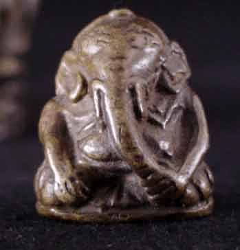 This one is a superb 17/18th C or earlier very small Ganesh with a great feel and very nice personality. He sits only one inch high. I've never seen another quite like it.