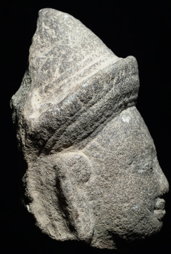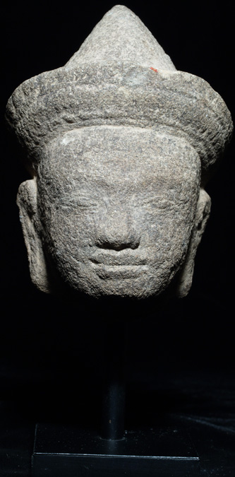 Wonderful Khmer stone head of high quality. Out of old collection- this was collected over 35 years ago. I’ve had many of this style over the years- very few were piece I felt selling comfortable as period pieces. Of those, this is one of only 2 or 3 which were in such wonderful condition. It is roughly 4.5 inches long at the longest point, and is 6.25 inches tall including the base. Condition as seen in the photos.